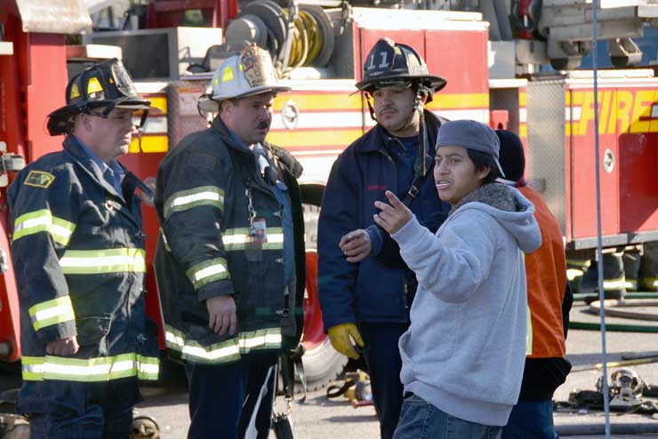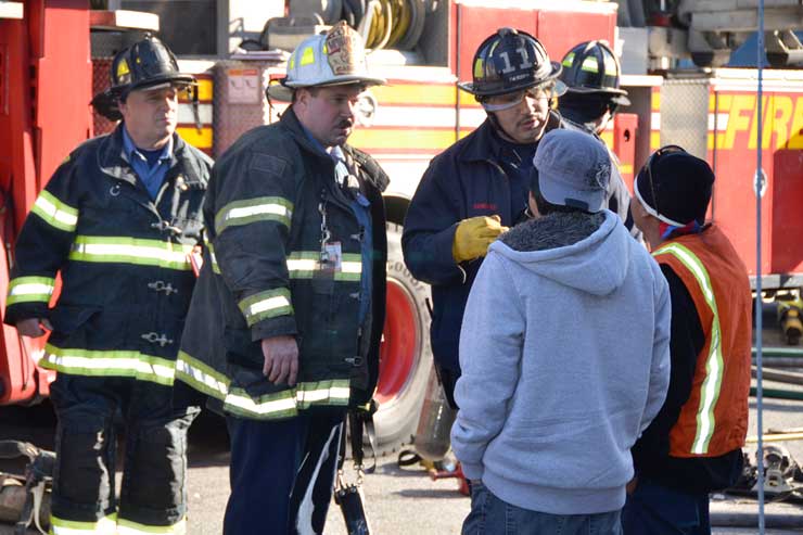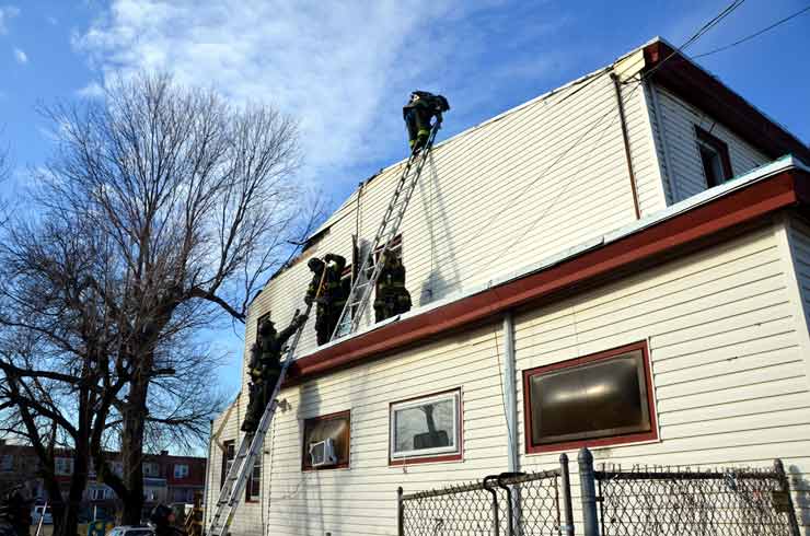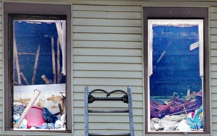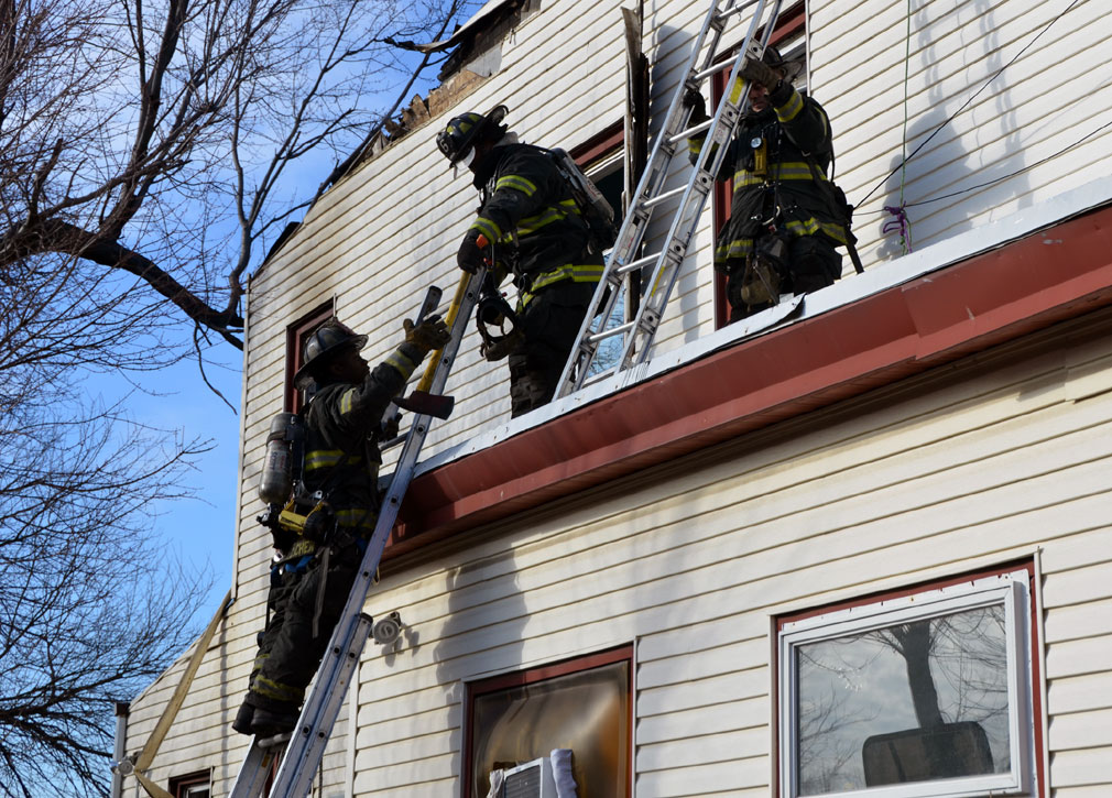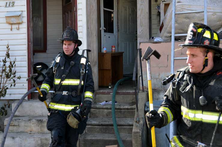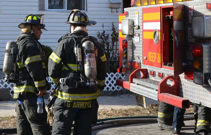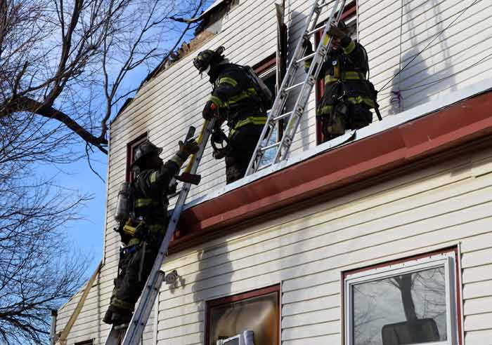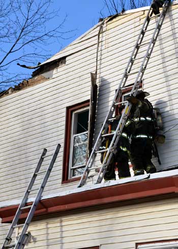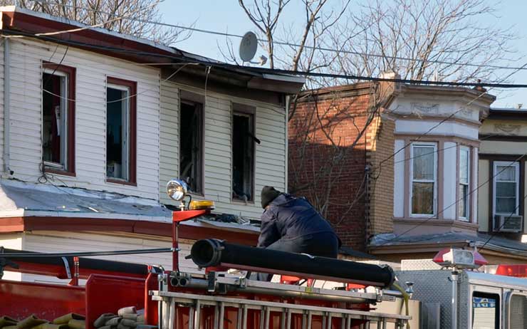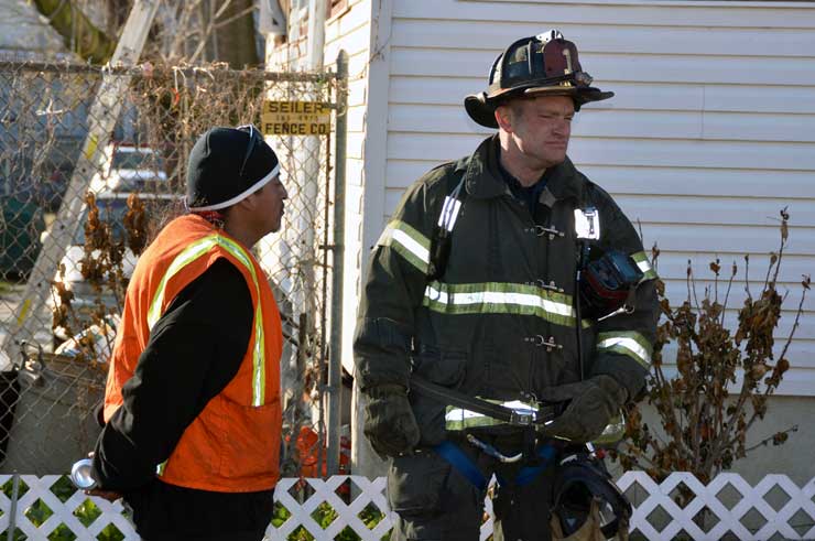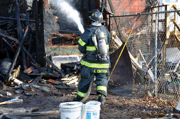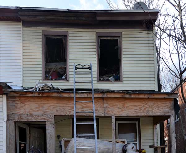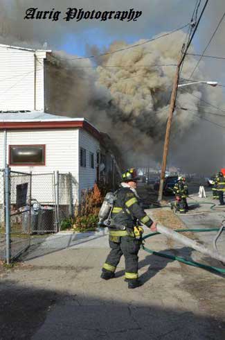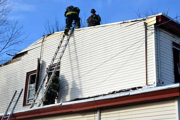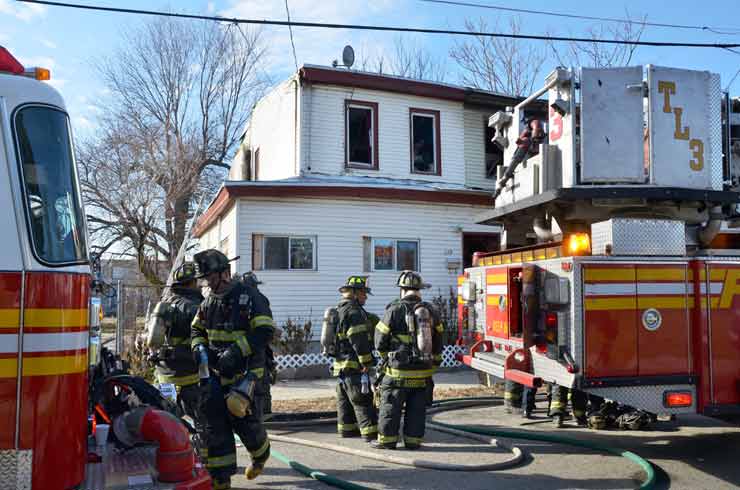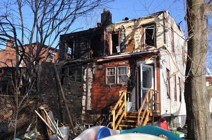 Three homes were damaged in the two-alarm blaze that left two families homeless. Click on Image to Enlarge Photo by TED AURIG Click here for more photos by Ted Aurig