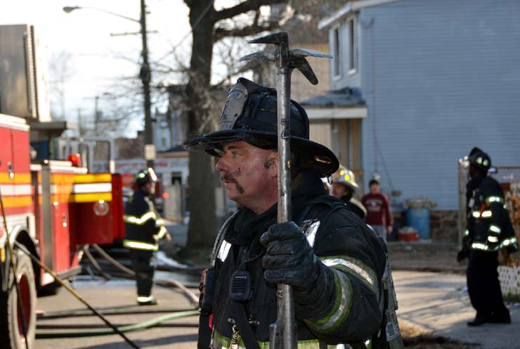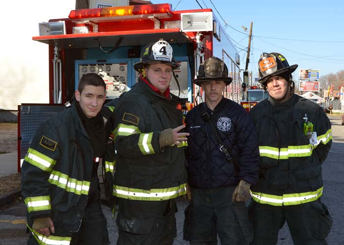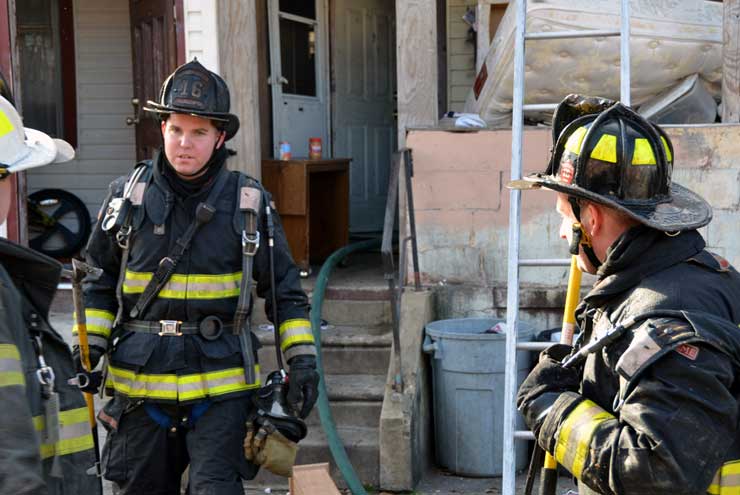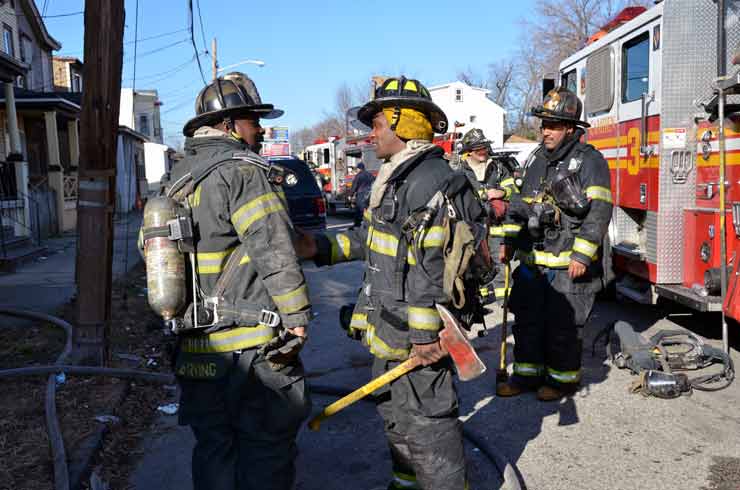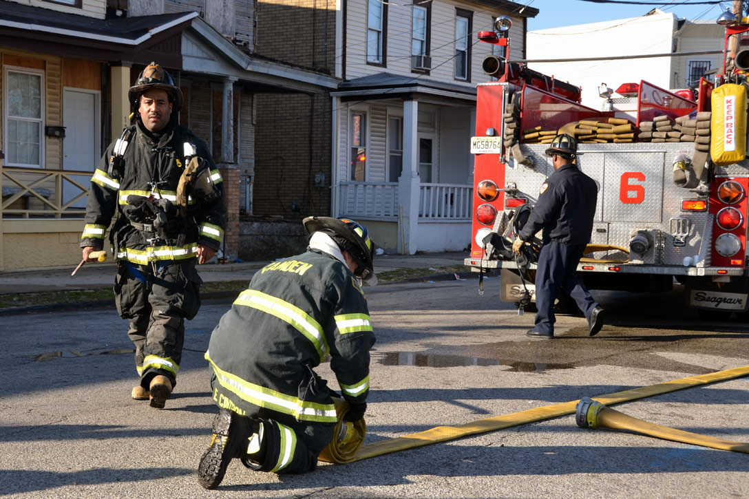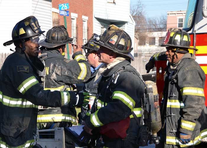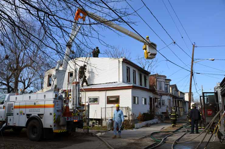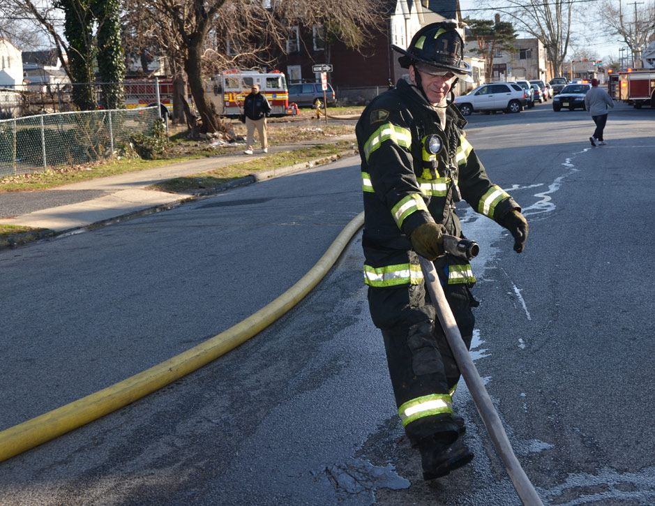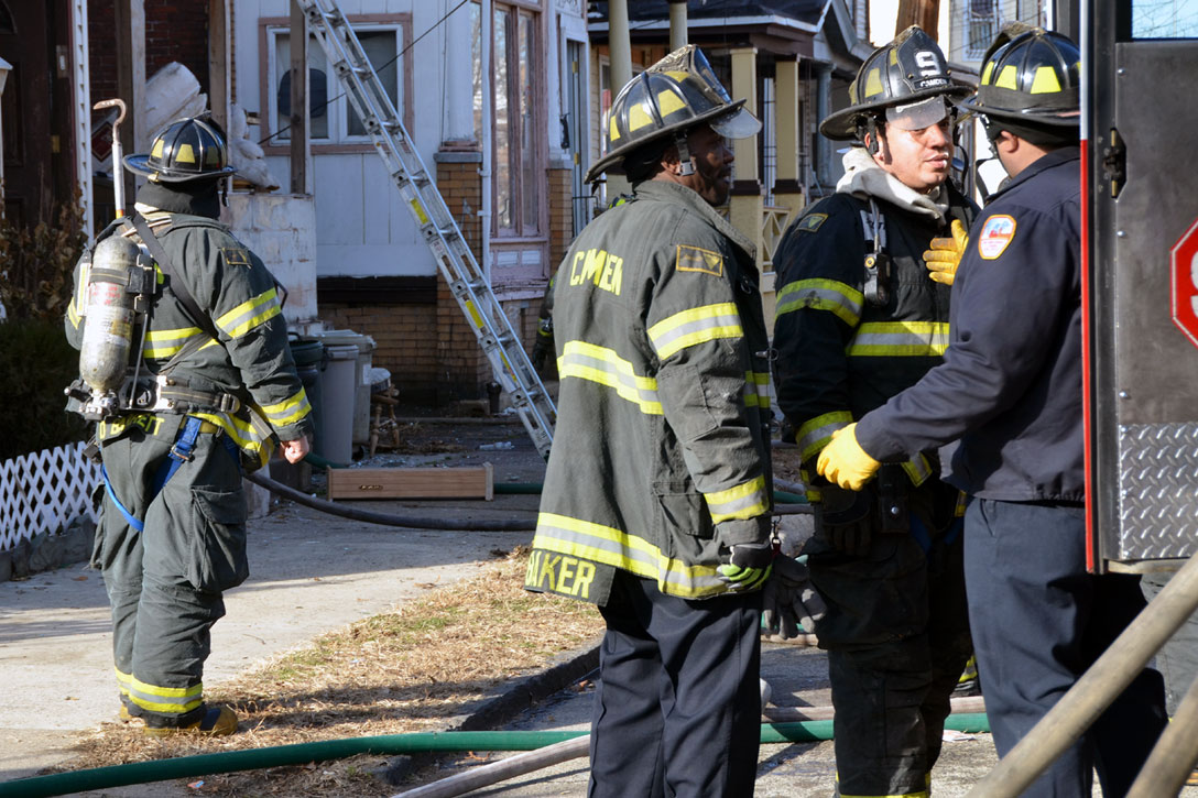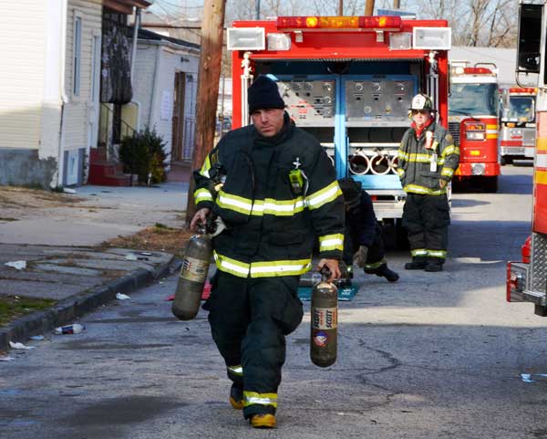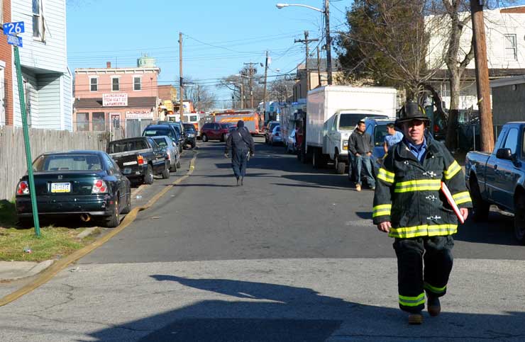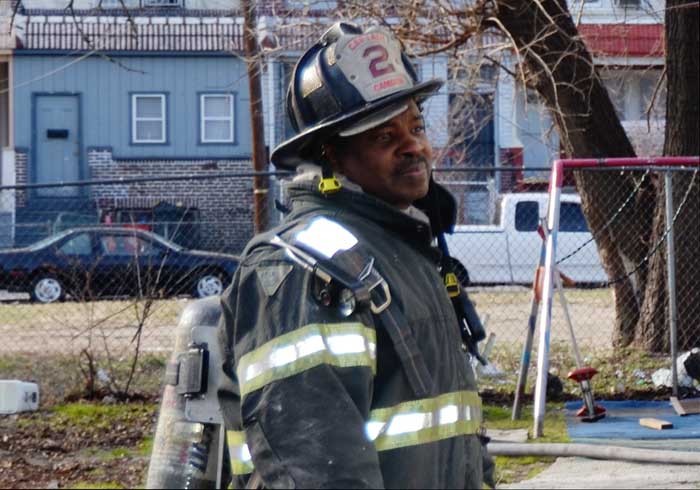 This page and the other pages in this series are the successors to the series of web-page about the Camden Fire Department that began with the page Camden Fire Department: The Fires of the Summer of 2011. On this and other pages in the series you will find pictures and information regarding different events and aspects of the fire service in Camden, New Jersey. At 12:53 PM on January 9, 2012 units of the Camden Fire Department were dispatched to 121 North 26th Street in East Camden. Battalion 2 (Battalion Chief Sam Balakas) on arrival reported that this dwelling, a two-story frame twin showed heavy fire both to the rear and side exposures. Three hose lines were in operation at the ten minute mark. Companies went into defensive operations as a second alarm was struck, and companies from Pennsauken and Collingswood were dispatched to render assistance. Both 121 and 119 North 26th Street, which was the other side of the twin structure, was badly damaged. 123 North 26th Street suffered less damage. Two families were left homeless as a result of this blaze. One firefighter was reported to have been taken to the hospital for treatment of a shoulder injury. Photographer Ted Aurig was on scene early on in the operation. Five of his photos are here and you can see more of Ted's photos from this fire by clicking here. I arrived at the scene and took my first picture at 1:42 PM. All photos are presented in the order in which they were taken. As with the web page covering other Camden Fire Department events, if you can identify anyone that I've missed, please comment at the bottom of the page. (I'm terrible at at names and faces). I'm somewhat behind as of this writing in captioning photos, as things have been quite busy since New Years Day! January 12, 2012 |