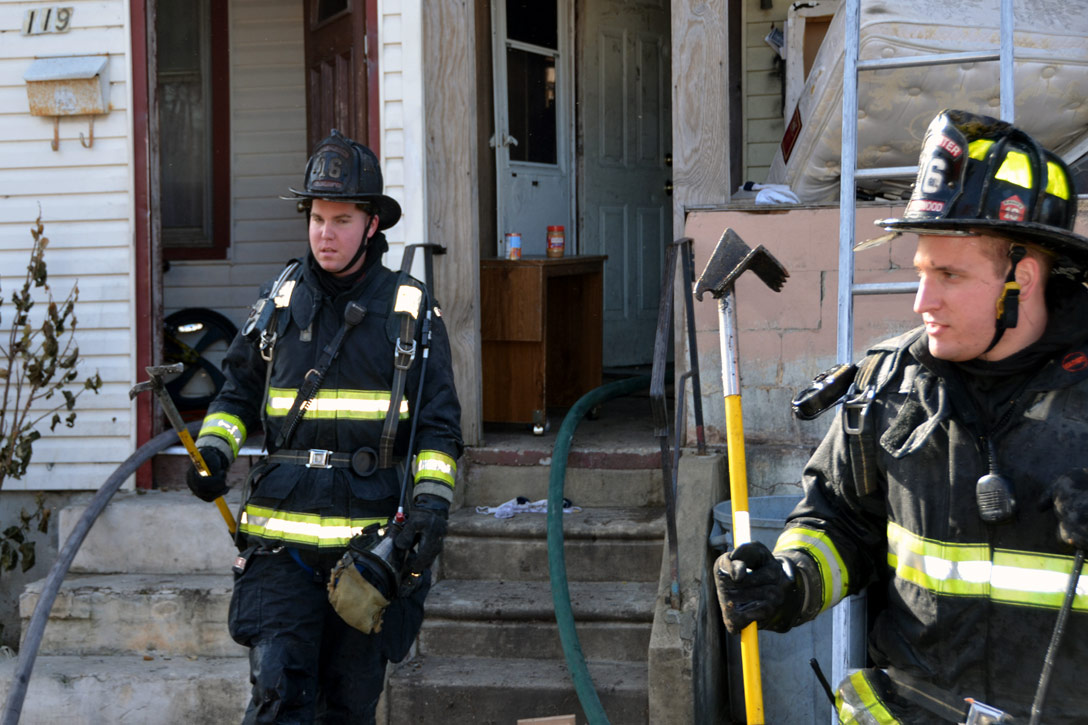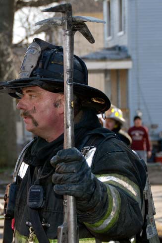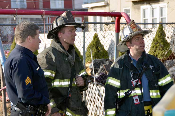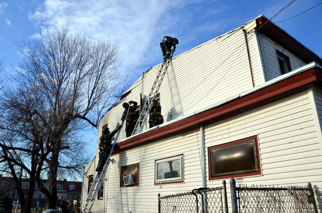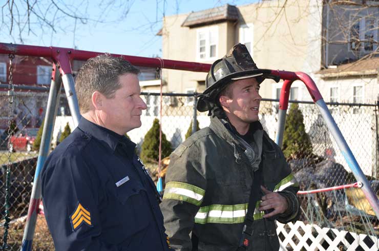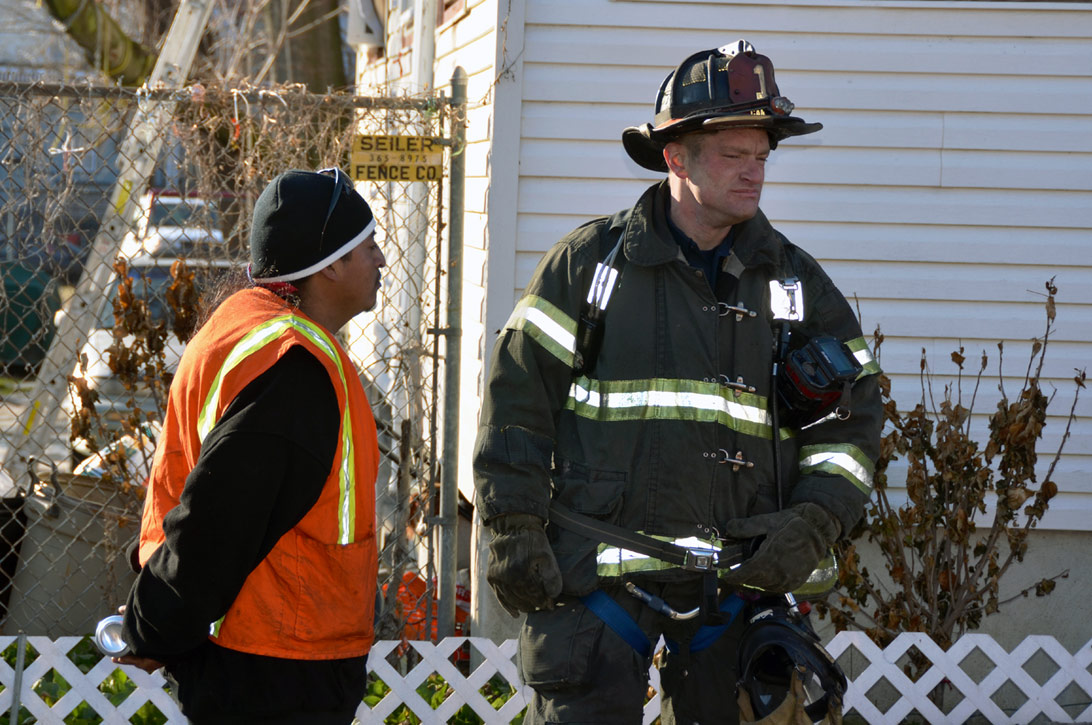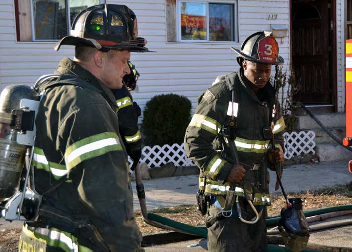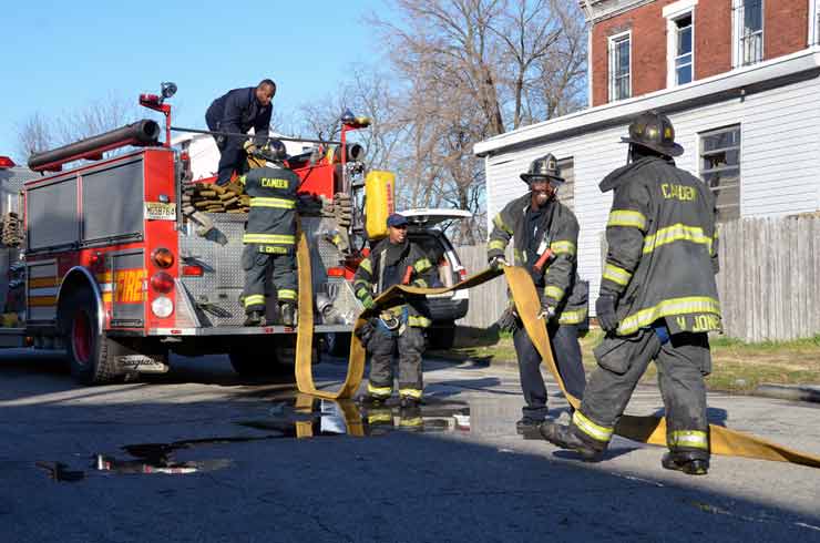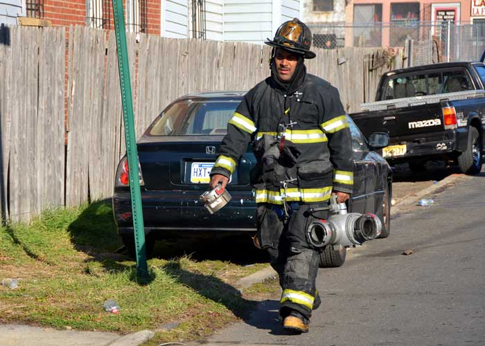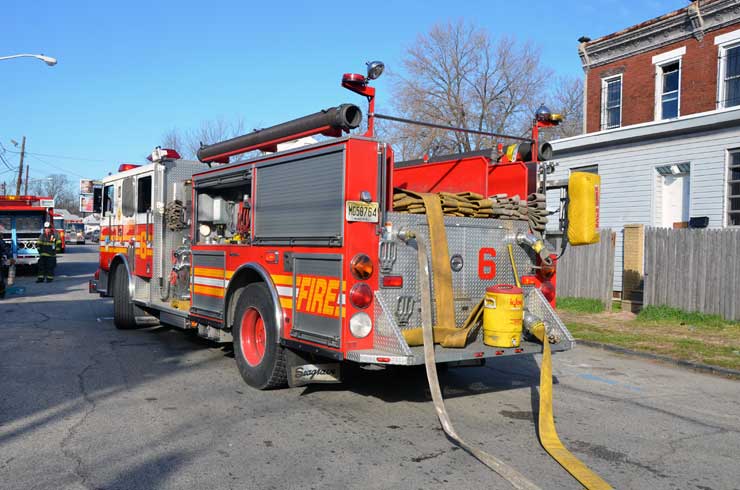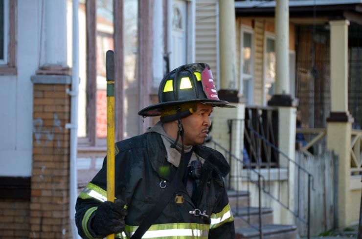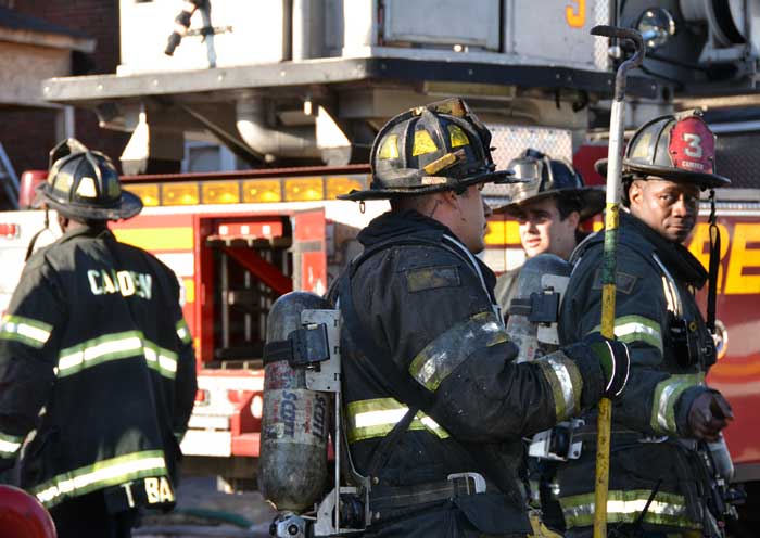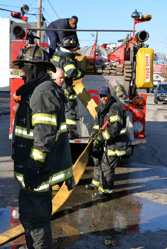 This page and the other pages in this series are the successors to the series of web-page about the Camden Fire Department that began with the page Camden Fire Department: The Fires of the Summer of 2011. On this and other pages in the series you will find pictures and information regarding different events and aspects of the fire service in Camden, New Jersey. At 12:53 PM on January 9, 2012 units of the Camden Fire Department were dispatched to 121 North 26th Street in East Camden. Battalion 2 (Battalion Chief Sam Balakas) on arrival reported that this dwelling, a two-story frame twin showed heavy fire both to the rear and side exposures. Three hose lines were in operation at the ten minute mark. Companies went into defensive operations as a second alarm was struck, and companies from Pennsauken and Collingswood were dispatched to render assistance. Both 121 and 119 North 26th Street, which was the other side of the twin structure, was badly damaged. 123 North 26th Street suffered less damage. Two families were left homeless as a result of this blaze. One firefighter was reported to have been taken to the hospital for treatment of a shoulder injury. Photographer Ted Aurig was on scene early on in the operation. Five of his photos are here and you can see more of Ted's photos from this fire by clicking here. I arrived at the scene and took my first picture at 1:42 PM. All photos are presented in the order in which they were taken. As with the web page covering other Camden Fire Department events, if you can identify anyone that I've missed, please comment at the bottom of the page. (I'm terrible at at names and faces). I'm somewhat behind as of this writing in captioning photos, as things have been quite busy since New Years Day! January 12, 2012 |
