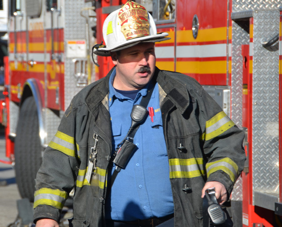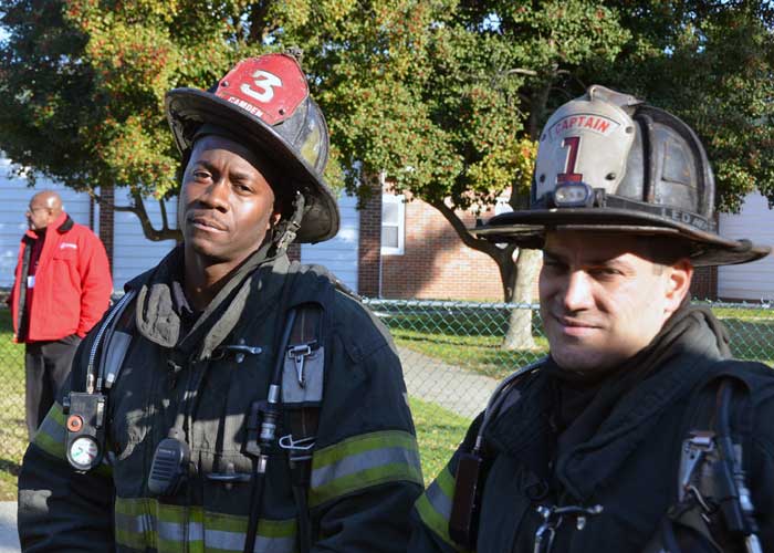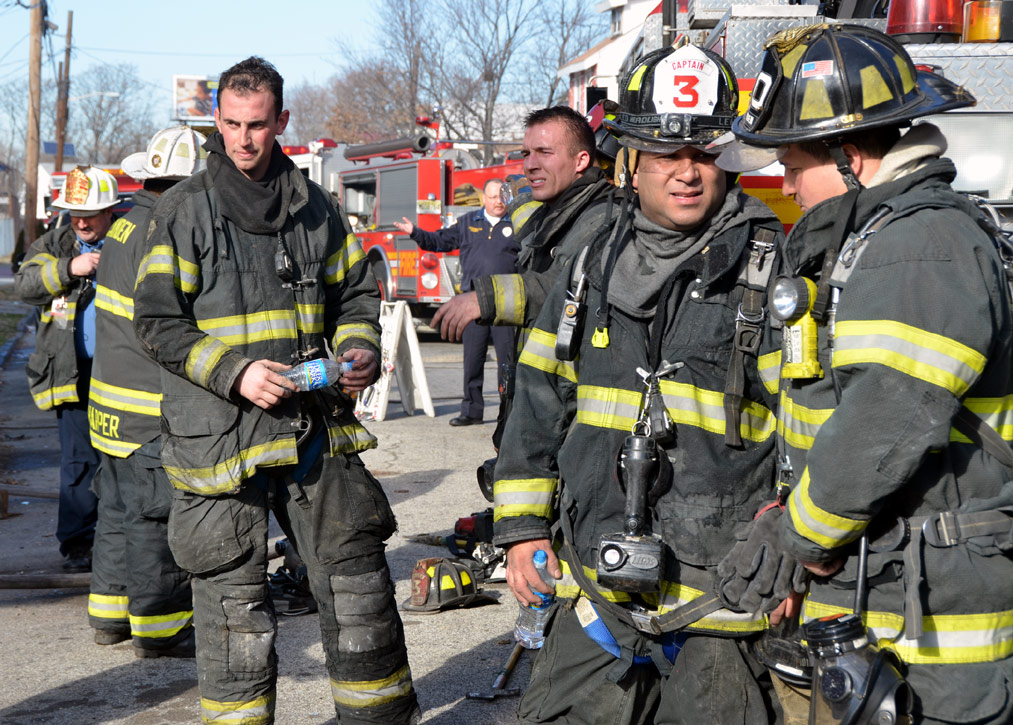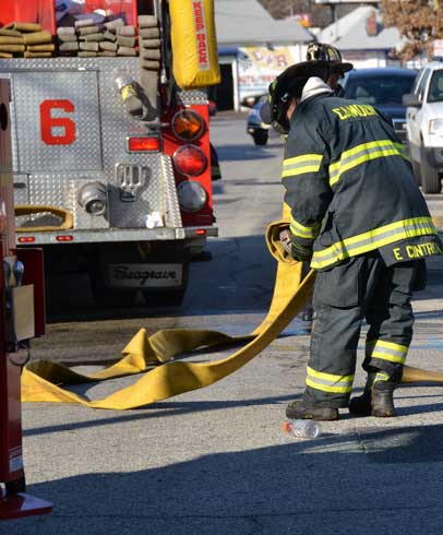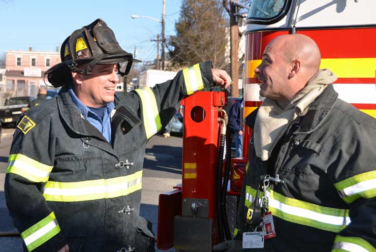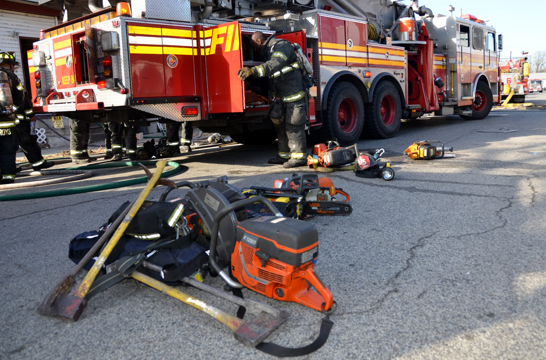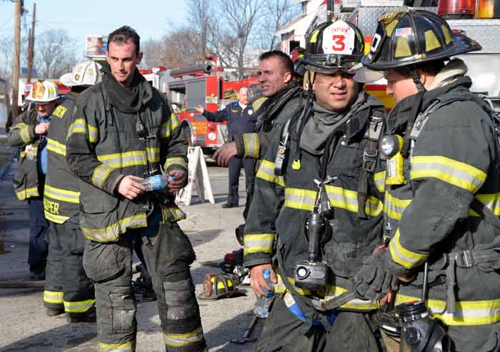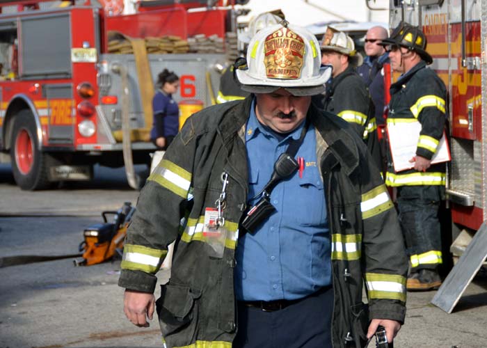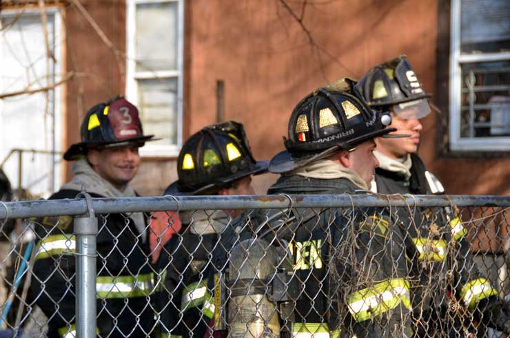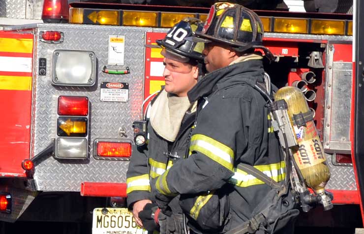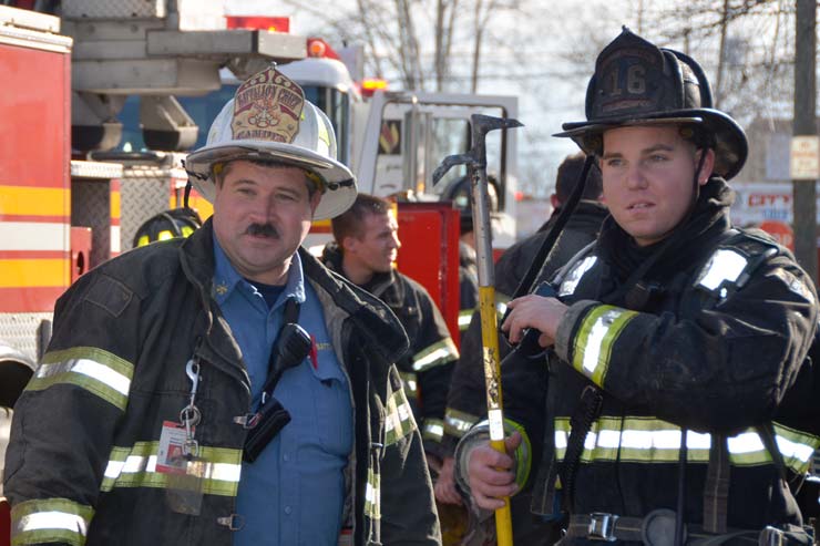 This page and the other pages in this series are the successors to the series of web-page about the Camden Fire Department that began with the page Camden Fire Department: The Fires of the Summer of 2011. On this and other pages in the series you will find pictures and information regarding different events and aspects of the fire service in Camden, New Jersey. At 12:53 PM on January 9, 2012 units of the Camden Fire Department were dispatched to 121 North 26th Street in East Camden. Battalion 2 (Battalion Chief Sam Balakas) on arrival reported that this dwelling, a two-story frame twin showed heavy fire both to the rear and side exposures. Three hose lines were in operation at the ten minute mark. Companies went into defensive operations as a second alarm was struck, and companies from Pennsauken and Collingswood were dispatched to render assistance. Both 121 and 119 North 26th Street, which was the other side of the twin structure, was badly damaged. 123 North 26th Street suffered less damage. Two families were left homeless as a result of this blaze. One firefighter was reported to have been taken to the hospital for treatment of a shoulder injury. Photographer Ted Aurig was on scene early on in the operation. Five of his photos are here and you can see more of Ted's photos from this fire by clicking here. I arrived at the scene and took my first picture at 1:42 PM. All photos are presented in the order in which they were taken. As with the web page covering other Camden Fire Department events, if you can identify anyone that I've missed, please comment at the bottom of the page. (I'm terrible at at names and faces). I'm somewhat behind as of this writing in captioning photos, as things have been quite busy since New Years Day! January 12, 2012 |
