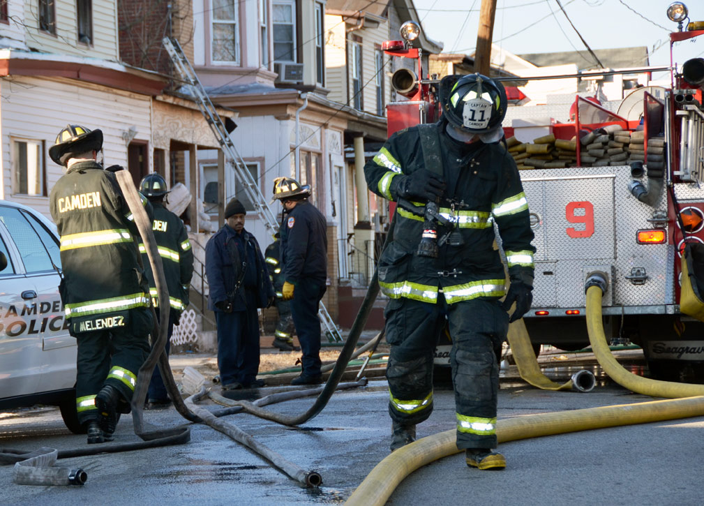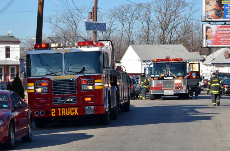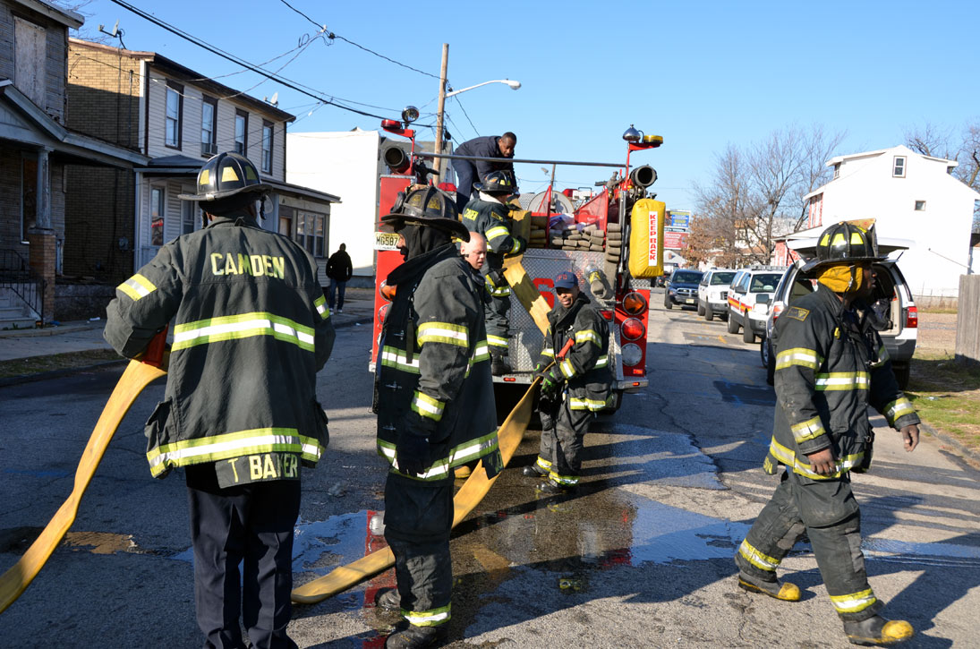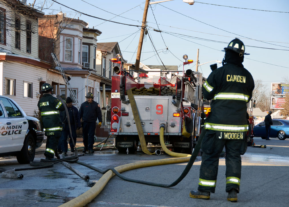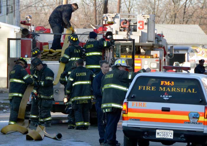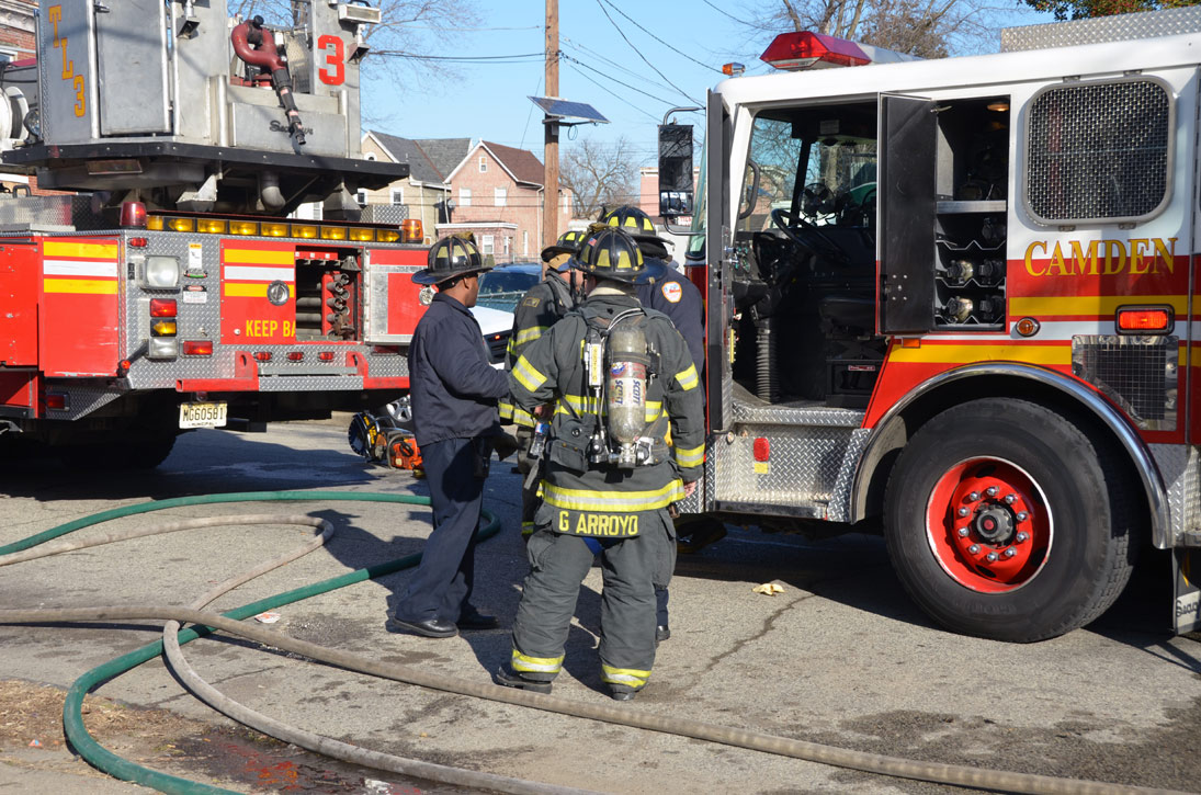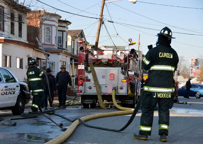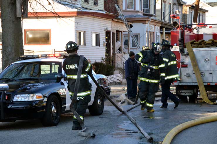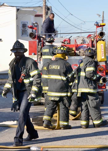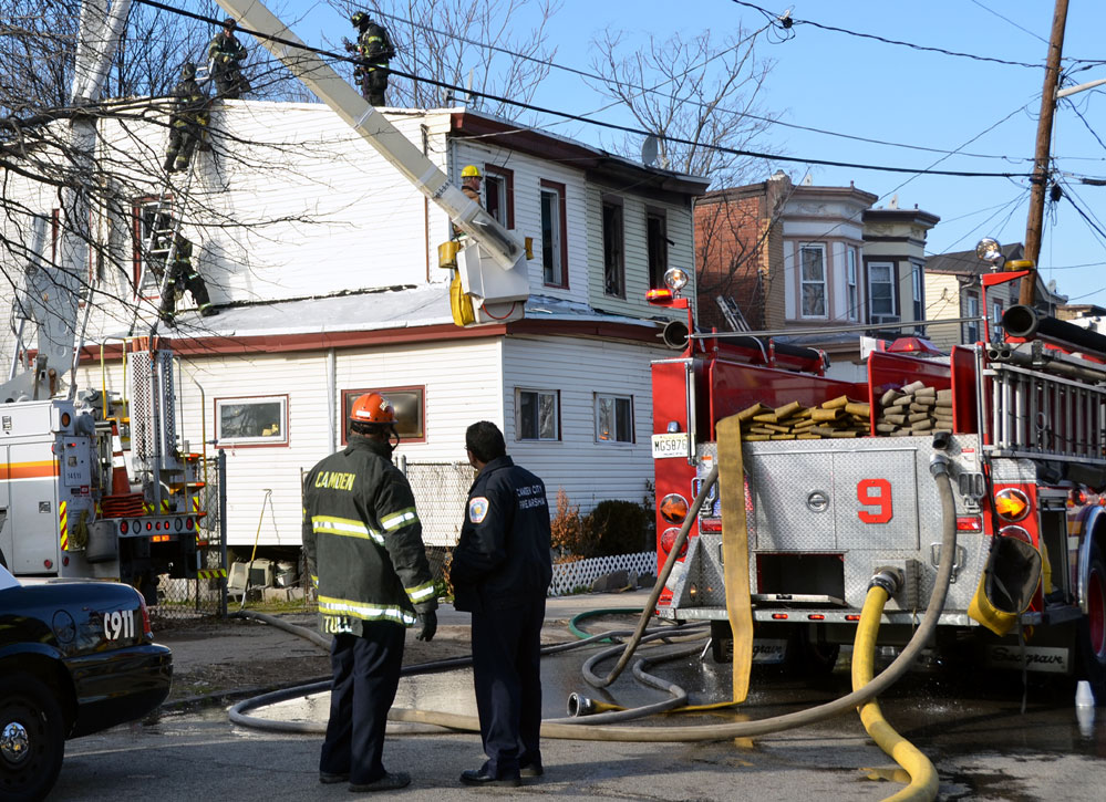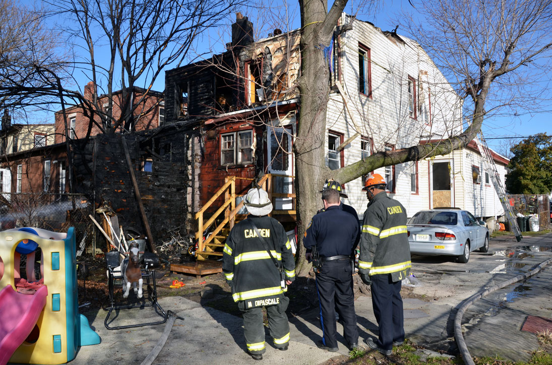 CAMDEN — Two families are homeless after a two-alarm fire in Camden’s Cramer Hill neighborhood damaged three homes Monday afternoon. The blaze, which broke out around 1:30 p.m., damaged three homes, one of which was vacant, near 26th and High streets. The fire originated in a home at 121 N. 26th St. and spread to homes on either side, according to Camden Fire Chief Michael Harper. One firefighter was taken to the hospital for treatment after injuring his shoulder. The Camden County Chapter of the American Red Cross is assisting seven adults and five children who were displaced by the blaze, according to the agency’s executive director, Cami Trinidad. The cause of the fire remains under investigation. Firefighters from Pennsauken and Collingswood assisted in battling the blaze.. |