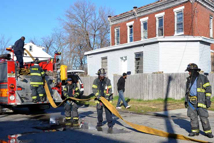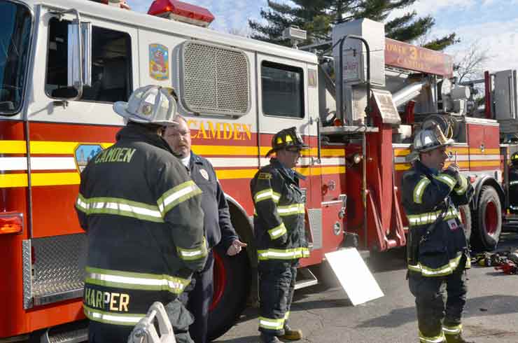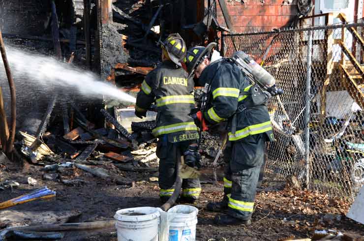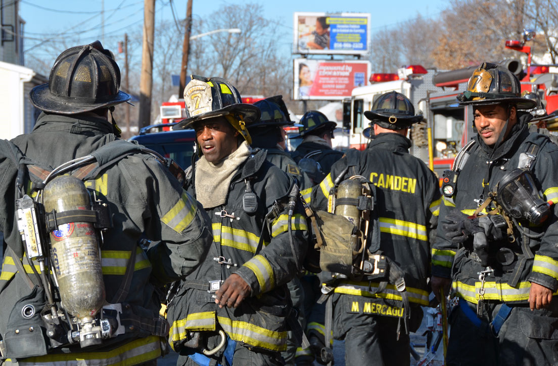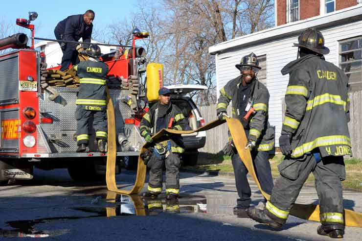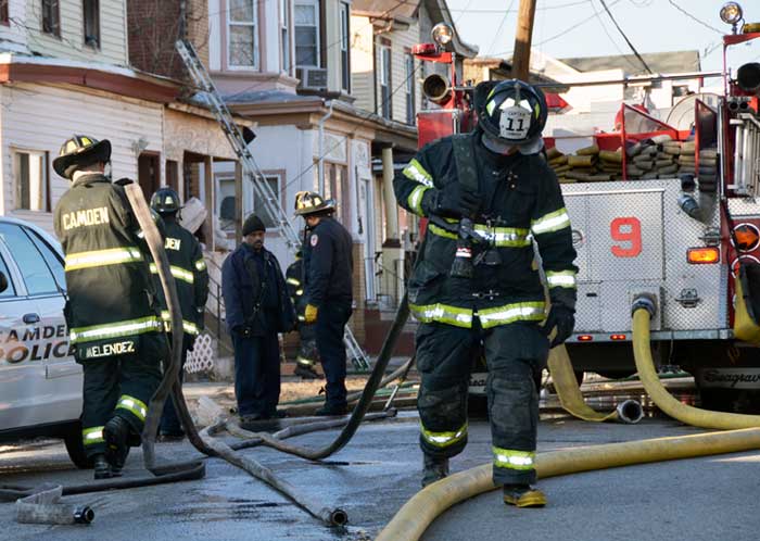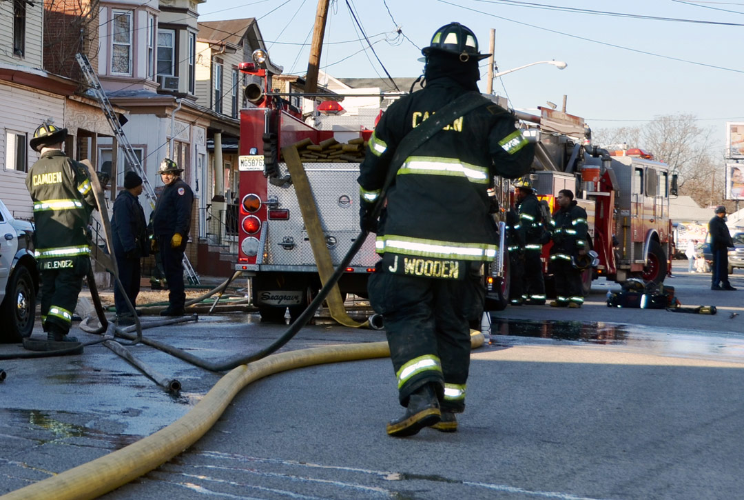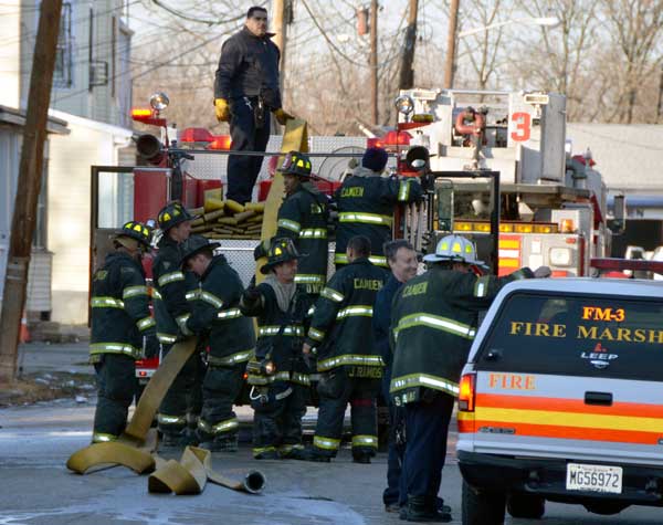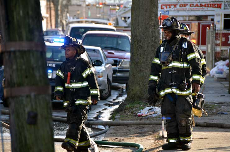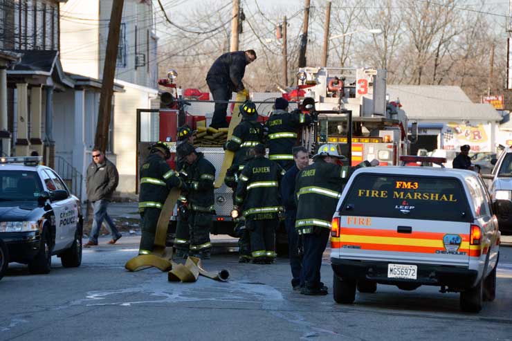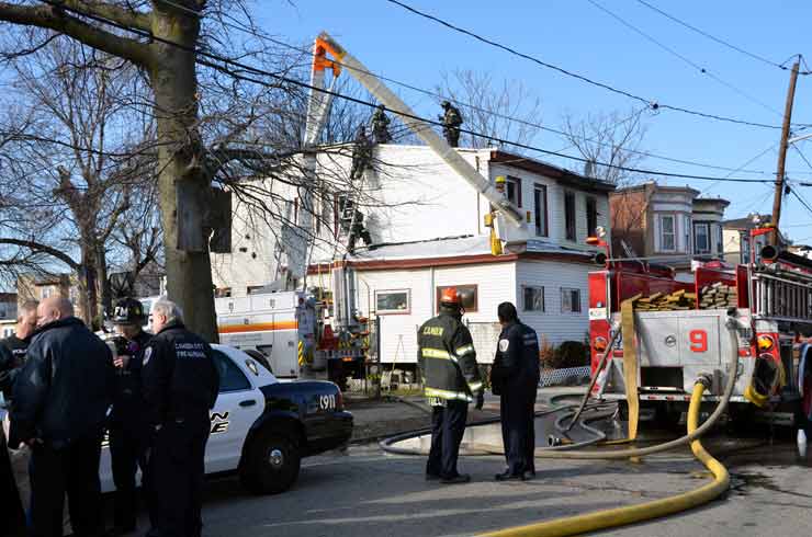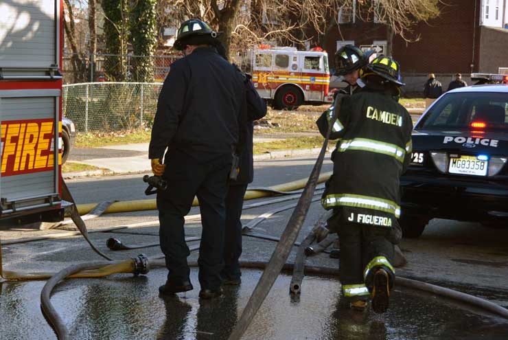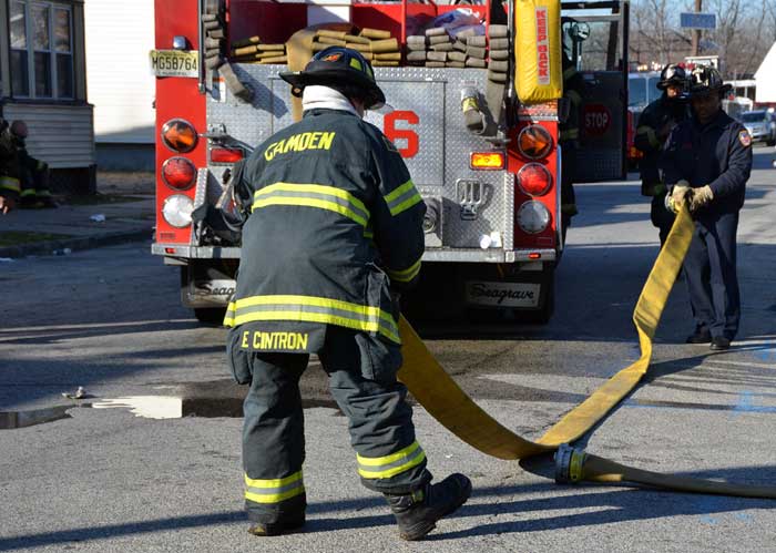 CAMDEN — Two families are homeless after a two-alarm fire in Camden’s Cramer Hill neighborhood damaged three homes Monday afternoon. The blaze, which broke out around 1:30 p.m., damaged three homes, one of which was vacant, near 26th and High streets. The fire originated in a home at 121 N. 26th St. and spread to homes on either side, according to Camden Fire Chief Michael Harper. One firefighter was taken to the hospital for treatment after injuring his shoulder. The Camden County Chapter of the American Red Cross is assisting seven adults and five children who were displaced by the blaze, according to the agency’s executive director, Cami Trinidad. The cause of the fire remains under investigation. Firefighters from Pennsauken and Collingswood assisted in battling the blaze.. |