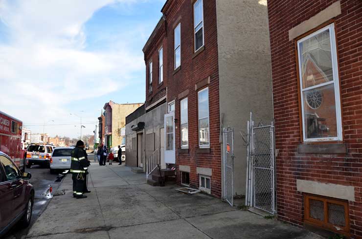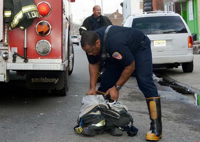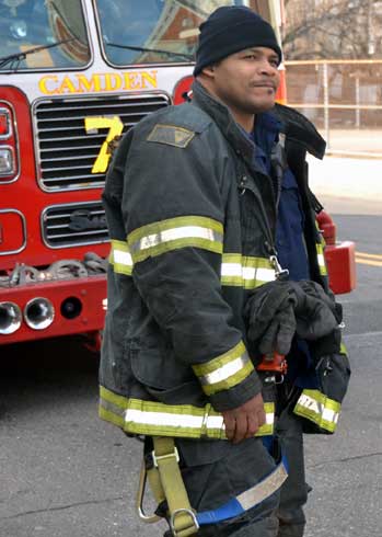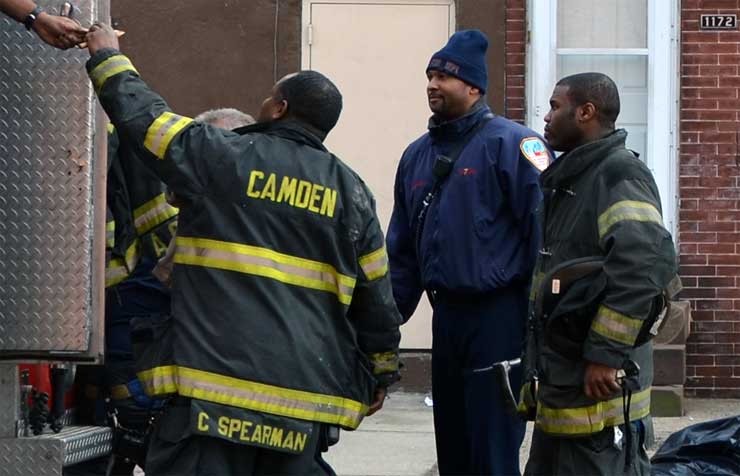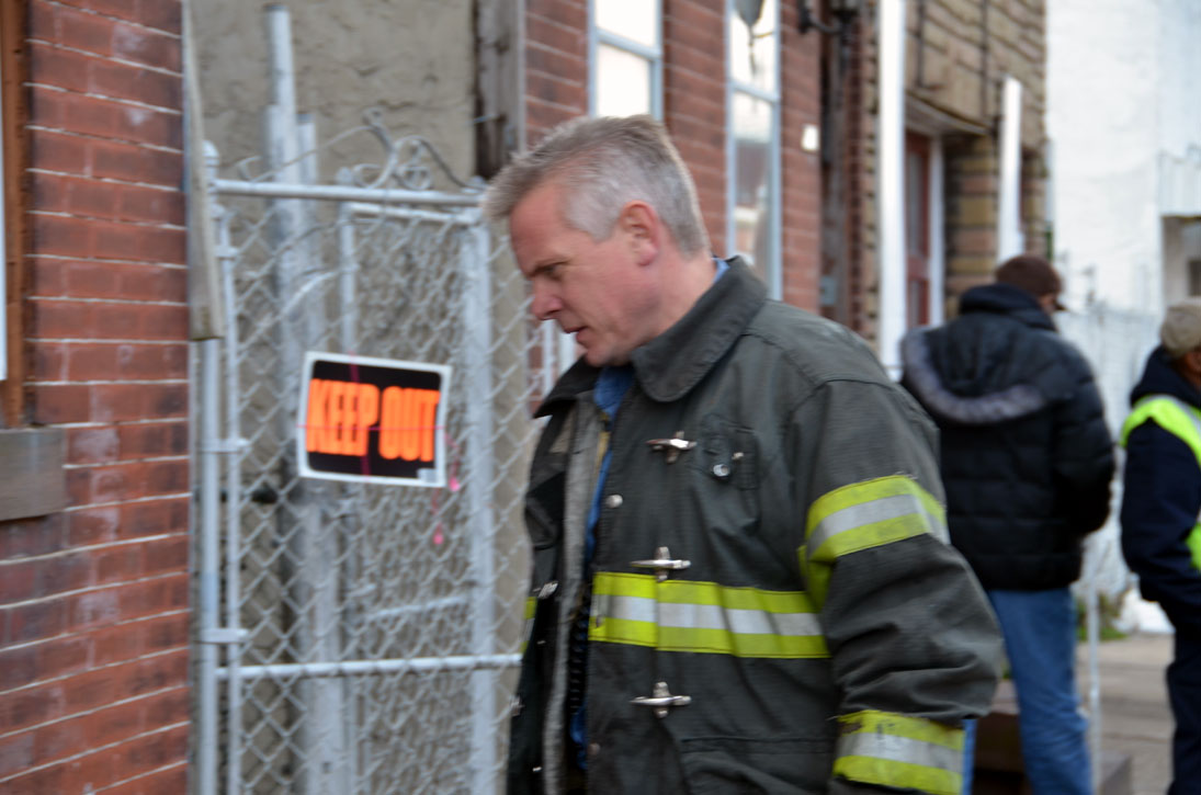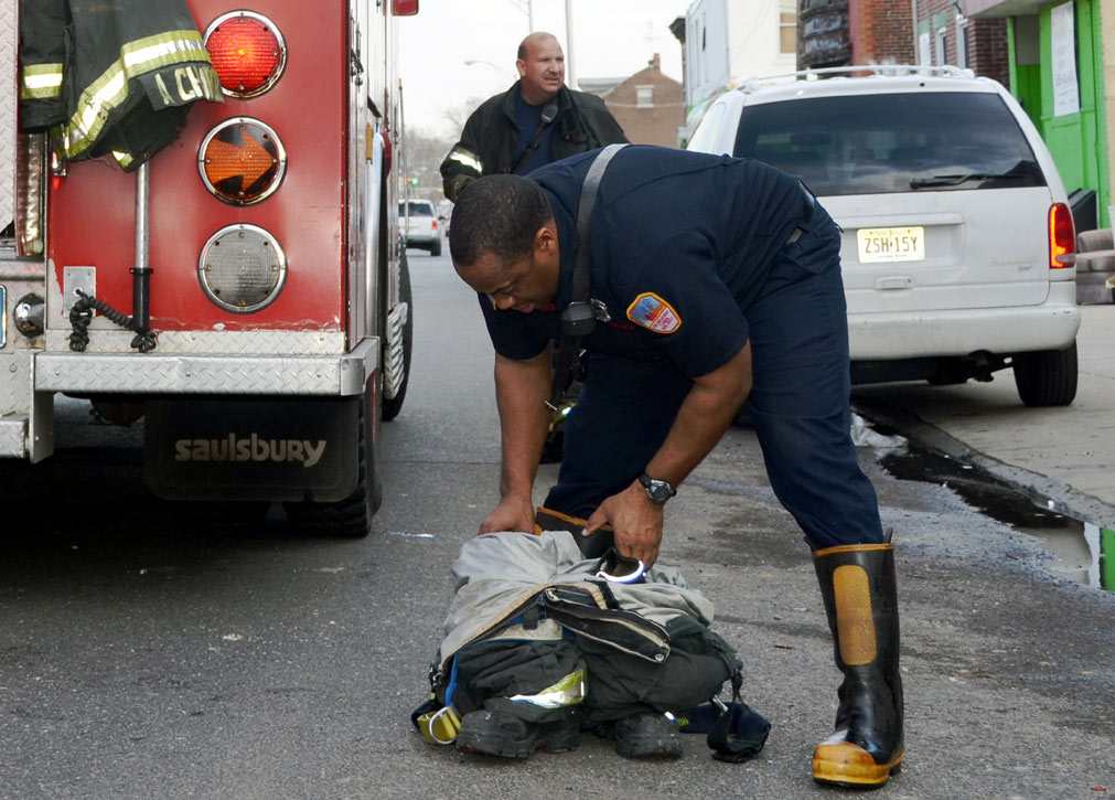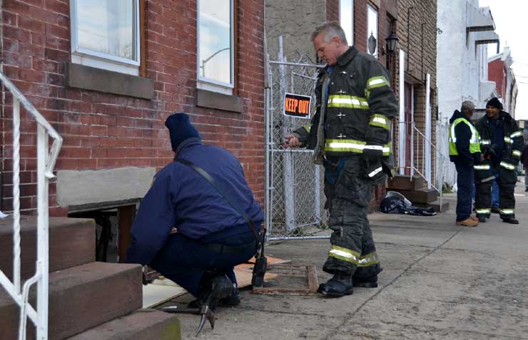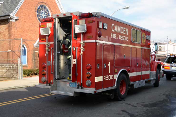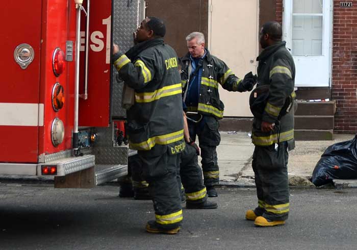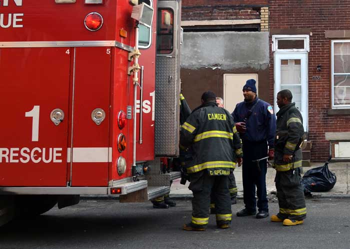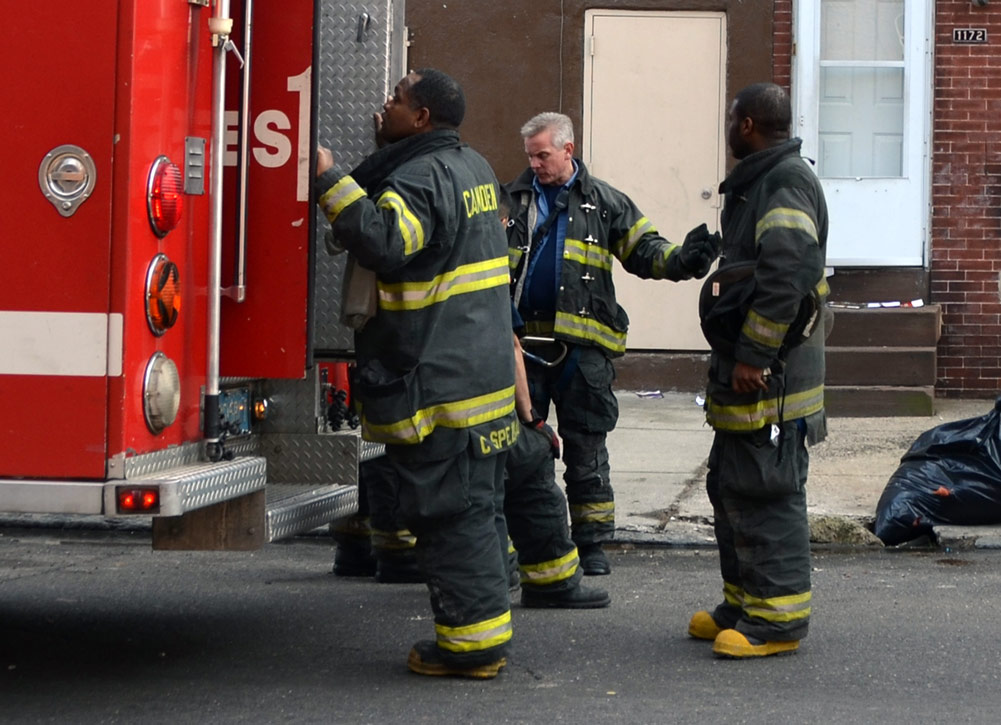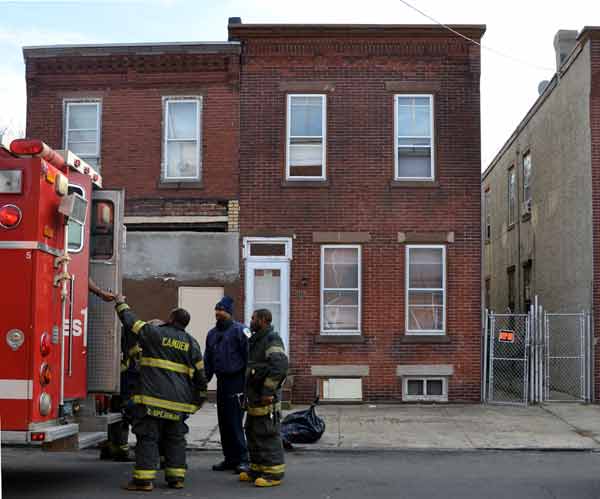 This page and the other pages in this series are the successors to the series of web-page about the Camden Fire Department that began with the page Camden Fire Department: The Fires of the Summer of 2011. On this and other pages in the series you will find pictures and information regarding different events and aspects of the fire service in Camden, New Jersey. At approximately 1:00 PM on January 24, 2012 a call came from the resident of 1170 Kaighn Avenue concerning the smell of fuel oil from the house next door at 1172 Kaighn, whose tenants had moved out recently. Battalion Chief Mark Harper, squad 7 and Rescue 1 investigated and found fuel oil leaking from a tank in the basement, and a good deal of water there as well.. All photos are presented in the order in which they were taken. As with the web page covering other Camden Fire Department events, if you can identify anyone that I've missed, please comment at the bottom of the page. (I'm terrible at at names and faces). I'm somewhat behind as of this writing in captioning photos, as things have been quite busy since New Years Day! January 30, 2012 |