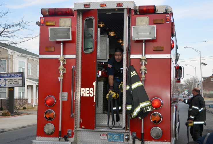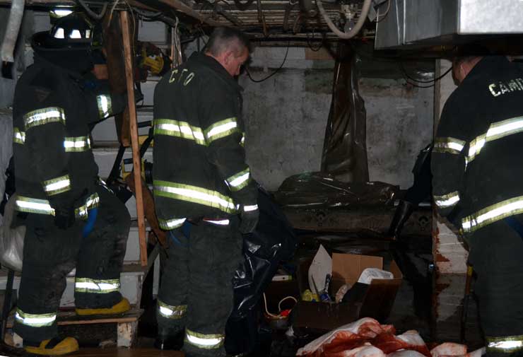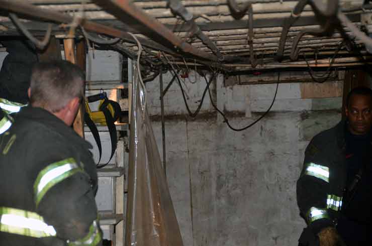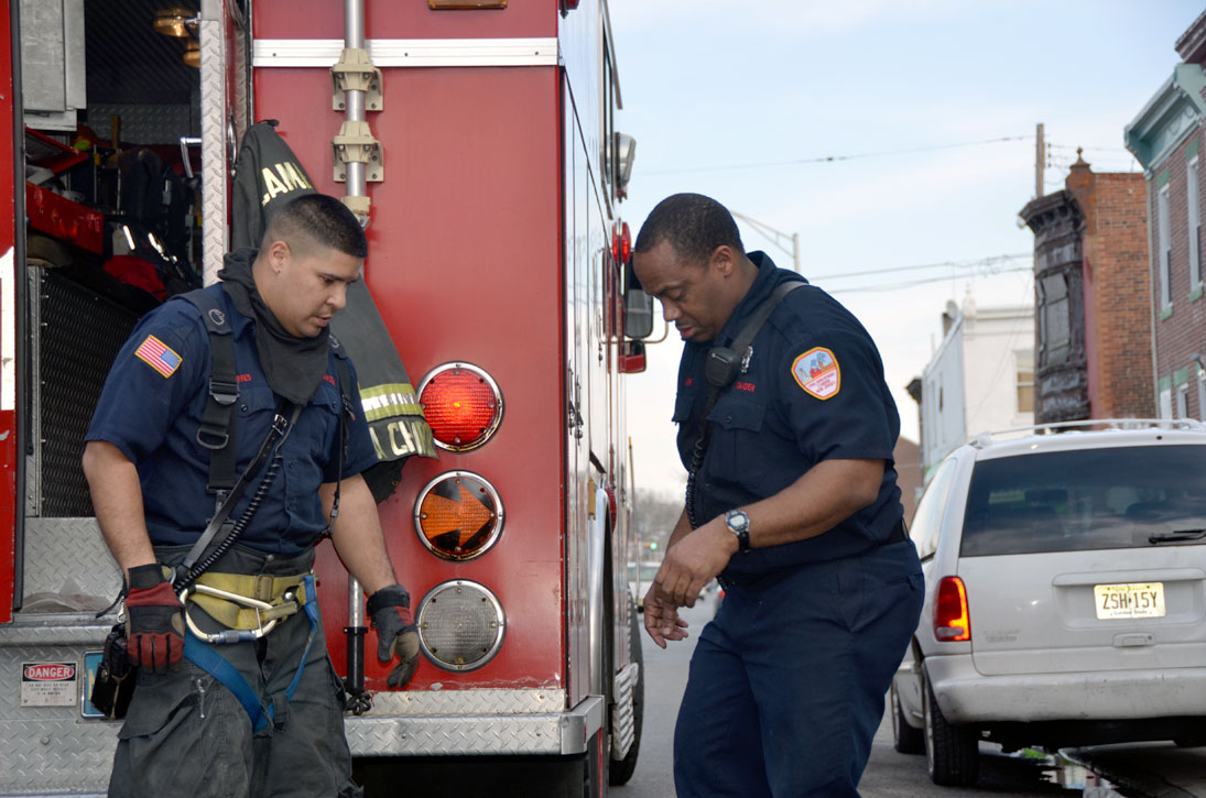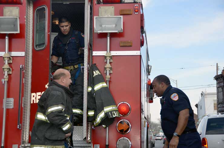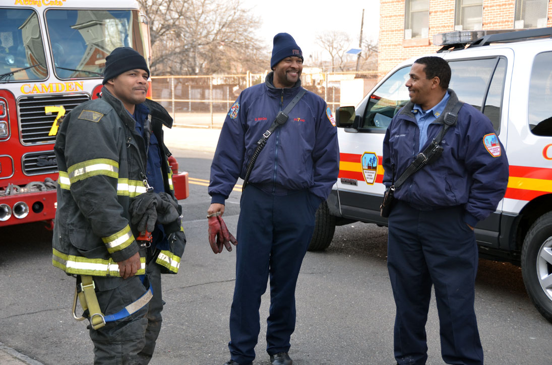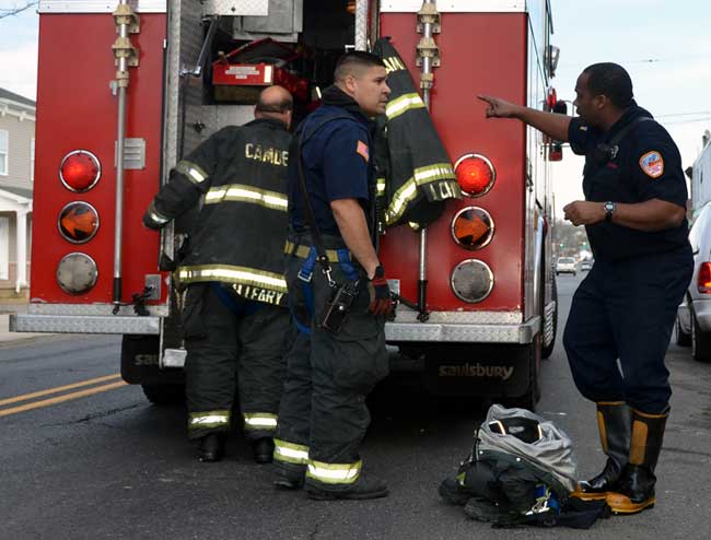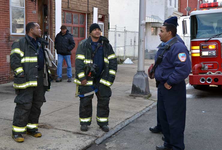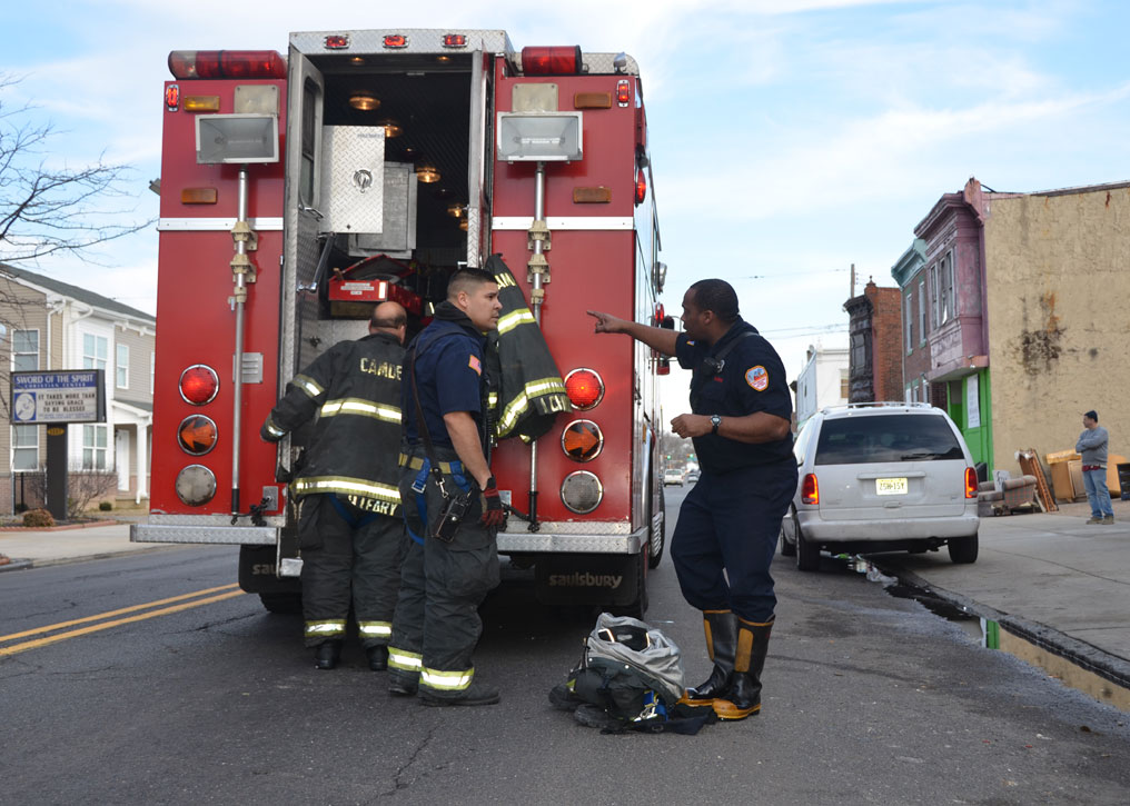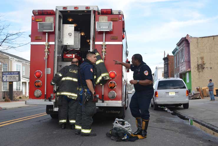 This page and the other pages in this series are the successors to the series of web-page about the Camden Fire Department that began with the page Camden Fire Department: The Fires of the Summer of 2011. On this and other pages in the series you will find pictures and information regarding different events and aspects of the fire service in Camden, New Jersey. At approximately 1:00 PM on January 24, 2012 a call came from the resident of 1170 Kaighn Avenue concerning the smell of fuel oil from the house next door at 1172 Kaighn, whose tenants had moved out recently. Battalion Chief Mark Harper, squad 7 and Rescue 1 investigated and found fuel oil leaking from a tank in the basement, and a good deal of water there as well.. All photos are presented in the order in which they were taken. As with the web page covering other Camden Fire Department events, if you can identify anyone that I've missed, please comment at the bottom of the page. (I'm terrible at at names and faces). I'm somewhat behind as of this writing in captioning photos, as things have been quite busy since New Years Day! January 30, 2012 |