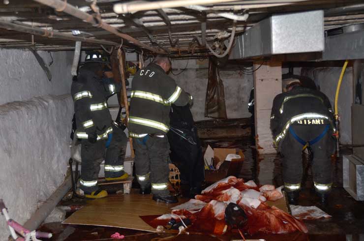 Fuel oil, water, and garbage in the basement of 1172 Kaighn Avenue |