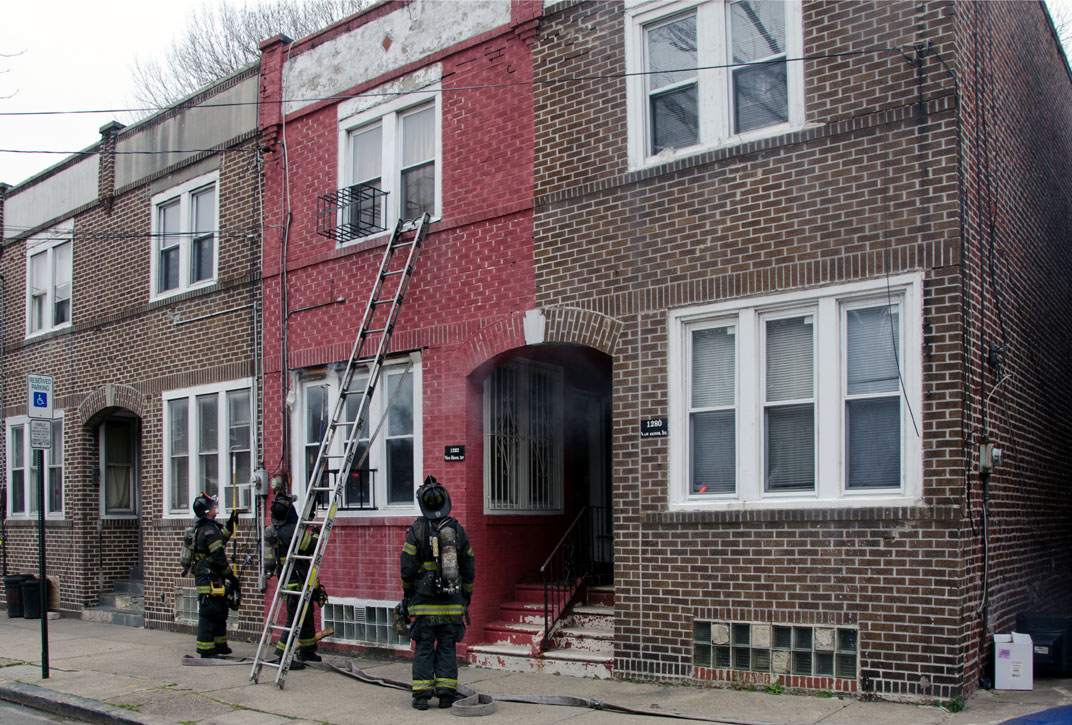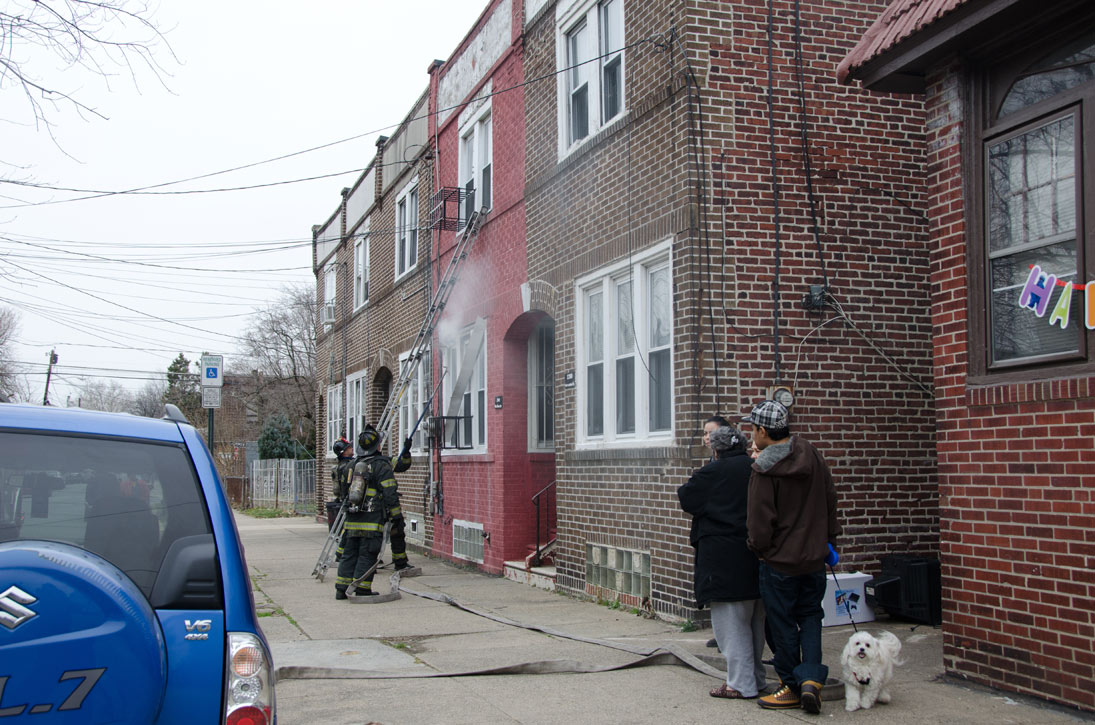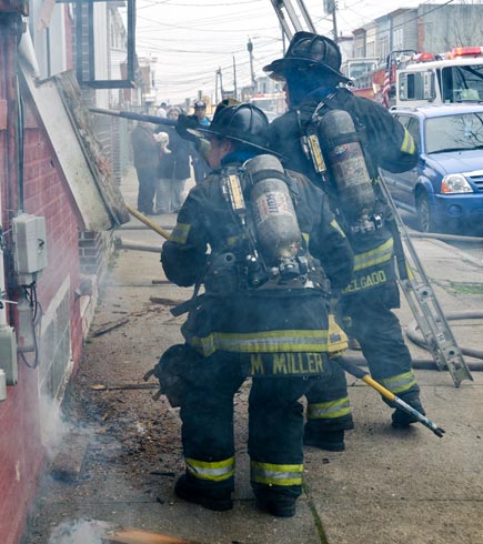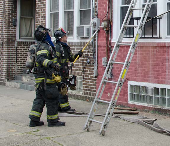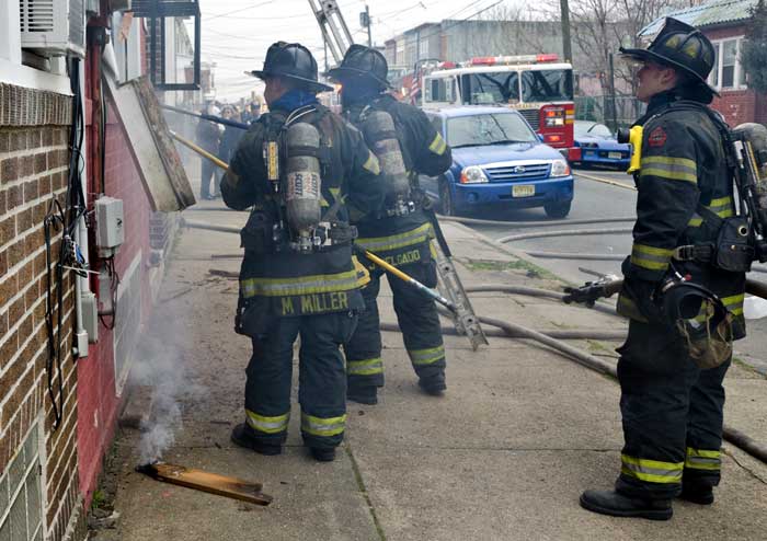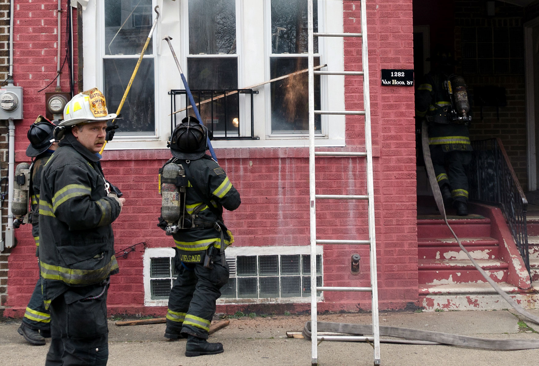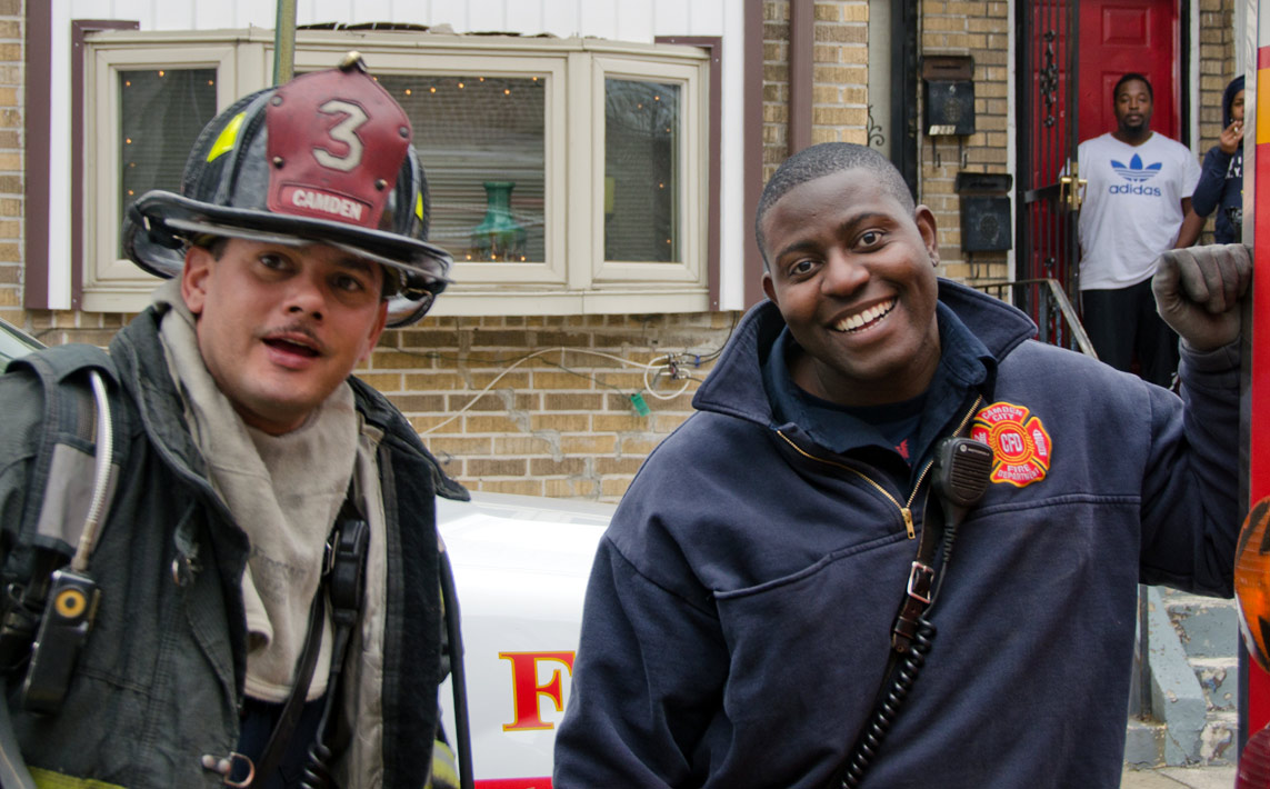 This page and the other pages in this series are the successors to the series of web-page about the Camden Fire Department that began with the page Camden Fire Department: The Fires of the Summer of 2011. On this and other pages in the series you will find pictures and information regarding different events and aspects of the fire service in Camden, New Jersey. On Saturday morning, February 4, 2012 I had eaten breakfast with two good friends, Jim Bessing and Robert Earl Crim, at the diner on Route 130 and Browning Road in Brooklawn. On the way back, I stopped at Liberty Station. Finding no one there, headed north to Fire headquarters, where I spent a little time shooting the breeze with Firefighter Eshu Ryan, who was on the watch desk. At noon it was time to break for lunch, with the men from Engine 1 and Ladder 1 present. Engine 1 that day consisted of Captain Jose Berrios and Firefighters Tyrone Baker, Ed Mendez, and Eshu Ryan; Ladder 2 was staffed by Captain Joel Bain and Firefighters, Johnnie Broadwater, Chris Broccoli, and Pete Perez. Battalion Chief Ed Glassmann was on his way back to Fire Headquarters as we sat down.. I was two bites into a chicken sandwich when Chris Broccoli said "Something's burning, I smell smoke". A quick look out the window confirmed that, with smoke coming out the second floor windows of 333-335 Arch Street. This building, at the corner of North 4th and Arch Street is literally at the entrance to Fire Headquarters parking lot and rear garage doors, and literally is within a stone's throw from Fire Headquarters' kitchen. I grabbed my camera, coat and hat and started shooting while the men brought the apparatus around the block. The one occupant of the building had already gotten out, and told me that there was no one else inside. The fire, most likely cause by careless smoking, was quickly dealt with. The resident was treated for smoke inhalation and taken to the hospital as a precautionary measure. After wrapping up, the thought was to finish lunch… and then beep-beep-beep… "1282 Carl Miller Boulevard, a dwelling"… I caught a ride with Ladder 1. By the time we got there things had been taken care of, apparently this was a first floor electrical fire soewhat complicated as the foire had gotten into the from wall of the living room. Engine 10 and Ladder 2 were operating when we arrived. All photos are presented in the order in which they were taken. There are so many images for this fire that I have split coverage of this fire into two parts, this being Page 2. There is a link below to return to Page 1. As with the web page covering other Camden Fire Department events, if you can identify anyone that I've missed, please comment at the bottom of the page. (I'm terrible at at names and faces).. February 22, 2012 |