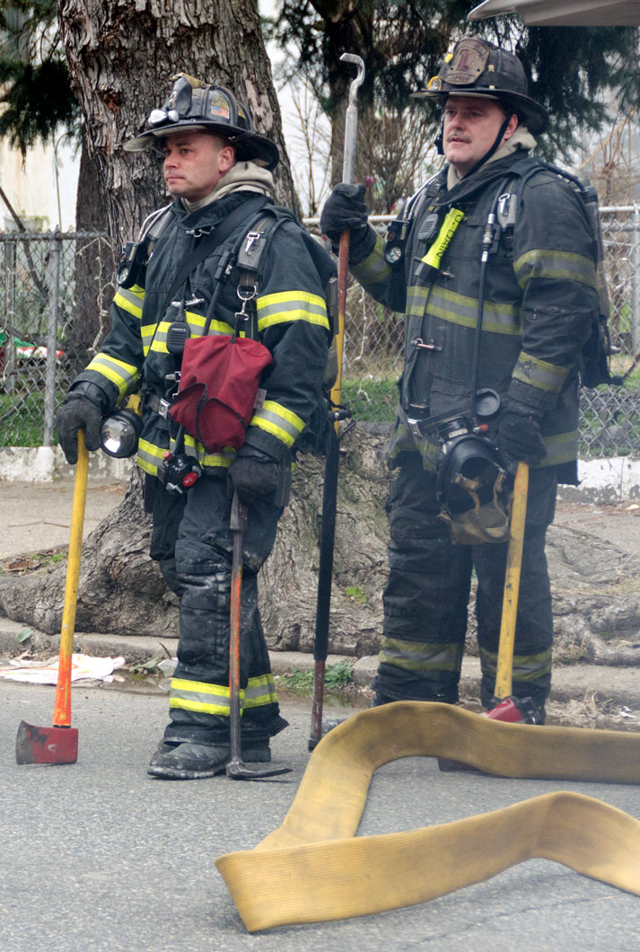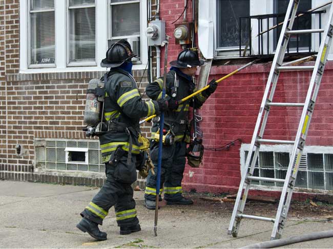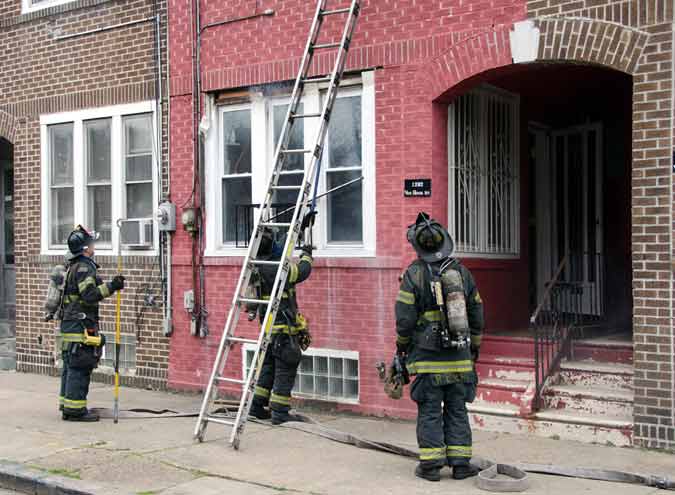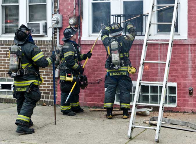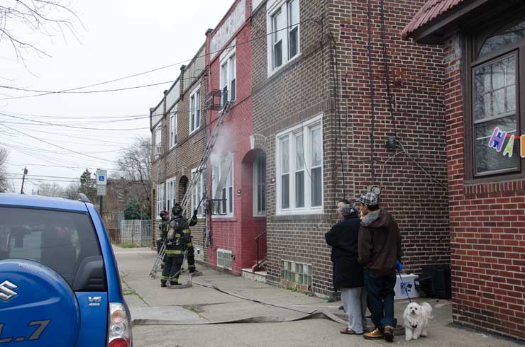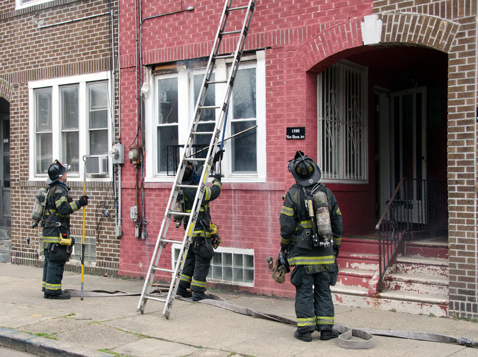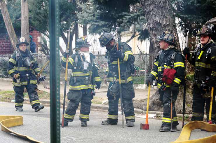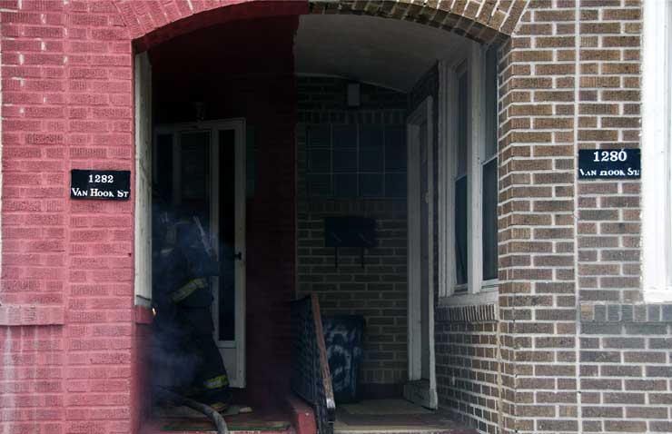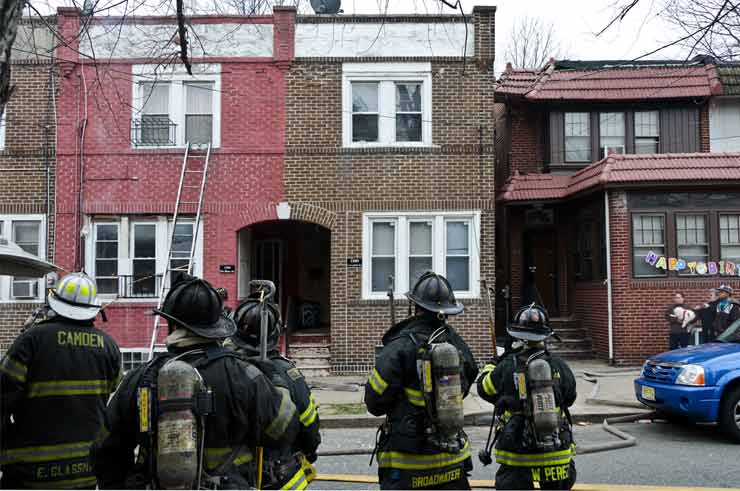 This page and the other pages in this series are the successors to the series of web-page about the Camden Fire Department that began with the page Camden Fire Department: The Fires of the Summer of 2011. On this and other pages in the series you will find pictures and information regarding different events and aspects of the fire service in Camden, New Jersey. On Saturday morning, February 4, 2012 I had eaten breakfast with two good friends, Jim Bessing and Robert Earl Crim, at the diner on Route 130 and Browning Road in Brooklawn. On the way back, I stopped at Liberty Station. Finding no one there, headed north to Fire headquarters, where I spent a little time shooting the breeze with Firefighter Eshu Ryan, who was on the watch desk. At noon it was time to break for lunch, with the men from Engine 1 and Ladder 1 present. Engine 1 that day consisted of Captain Jose Berrios and Firefighters Tyrone Baker, Ed Mendez, and Eshu Ryan; Ladder 2 was staffed by Captain Joel Bain and Firefighters, Johnnie Broadwater, Chris Broccoli, and Pete Perez. Battalion Chief Ed Glassmann was on his way back to Fire Headquarters as we sat down.. I was two bites into a chicken sandwich when Chris Broccoli said "Something's burning, I smell smoke". A quick look out the window confirmed that, with smoke coming out the second floor windows of 333-335 Arch Street. This building, at the corner of North 4th and Arch Street is literally at the entrance to Fire Headquarters parking lot and rear garage doors, and literally is within a stone's throw from Fire Headquarters' kitchen. I grabbed my camera, coat and hat and started shooting while the men brought the apparatus around the block. The one occupant of the building had already gotten out, and told me that there was no one else inside. The fire, most likely cause by careless smoking, was quickly dealt with. The resident was treated for smoke inhalation and taken to the hospital as a precautionary measure. After wrapping up, the thought was to finish lunch… and then beep-beep-beep… "1282 Carl Miller Boulevard, a dwelling"… I caught a ride with Ladder 1. By the time we got there things had been taken care of, apparently this was a first floor electrical fire soewhat complicated as the foire had gotten into the from wall of the living room. Engine 10 and Ladder 2 were operating when we arrived. All photos are presented in the order in which they were taken. There are so many images for this fire that I have split coverage of this fire into two parts, this being Page 2. There is a link below to return to Page 1. As with the web page covering other Camden Fire Department events, if you can identify anyone that I've missed, please comment at the bottom of the page. (I'm terrible at at names and faces).. February 22, 2012 |