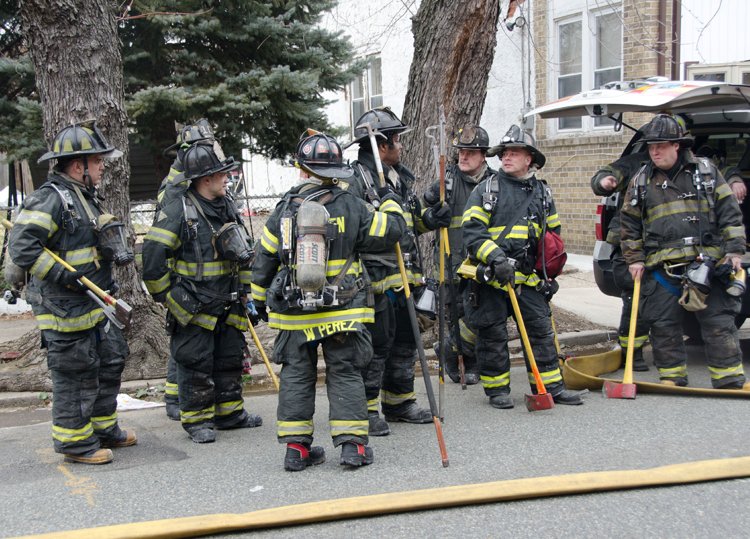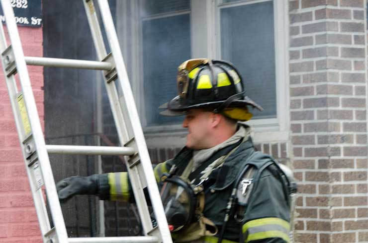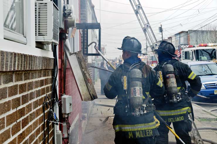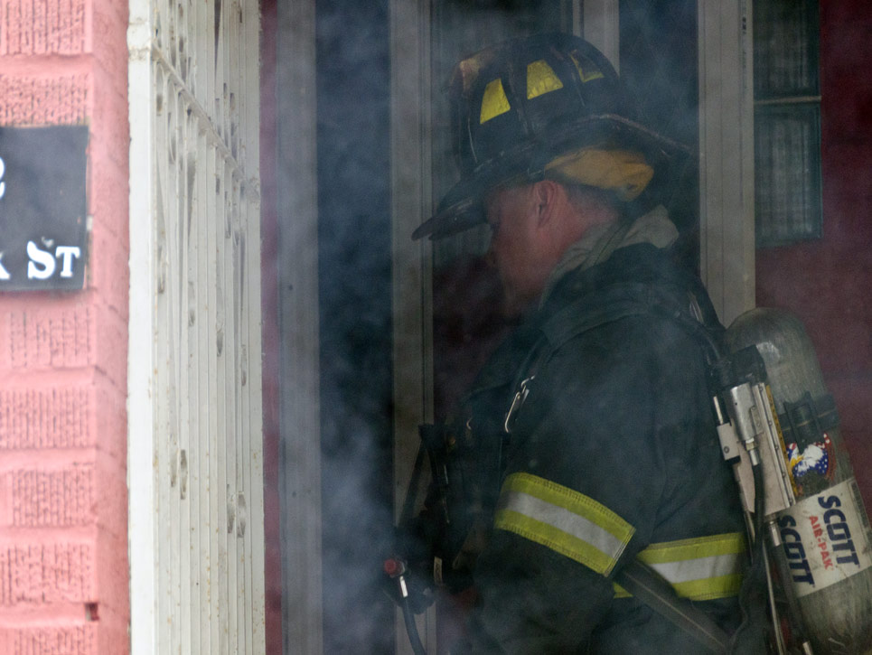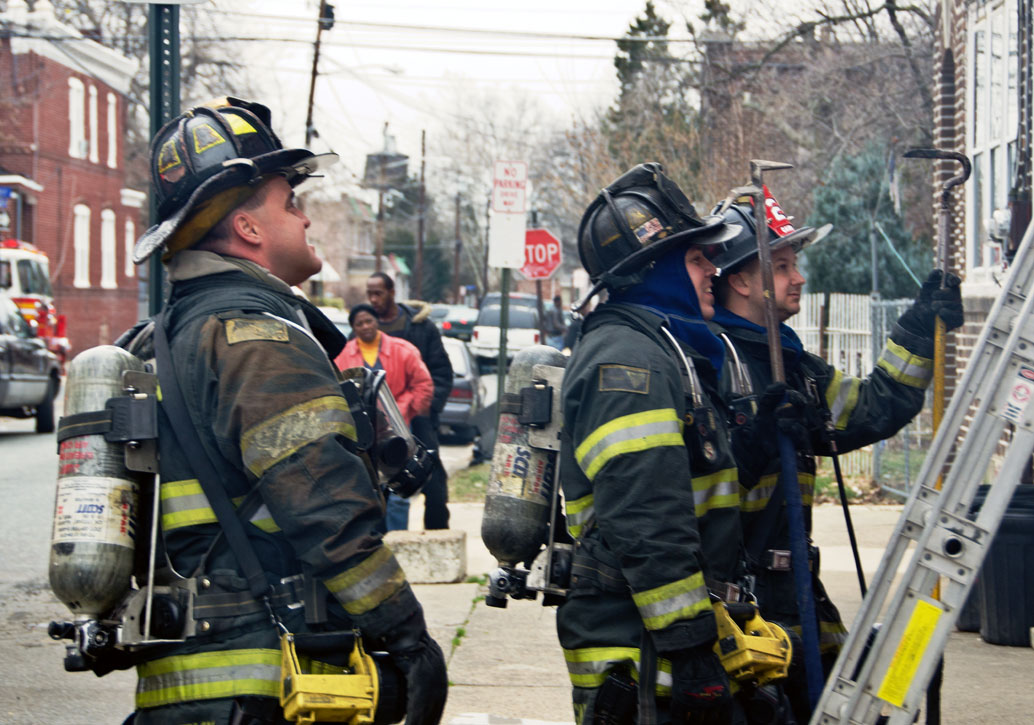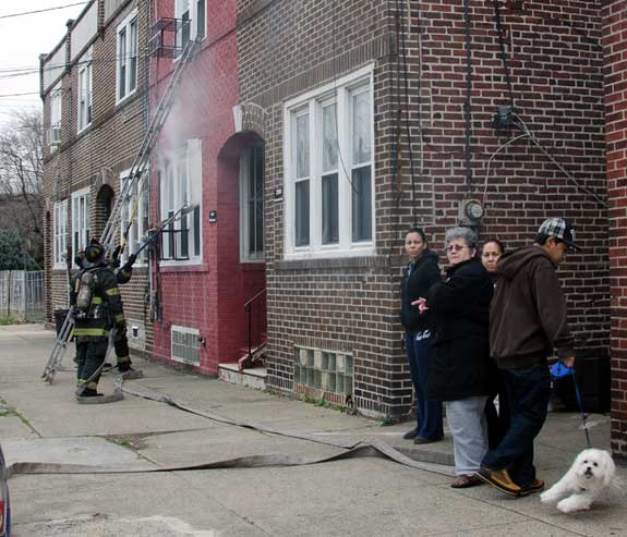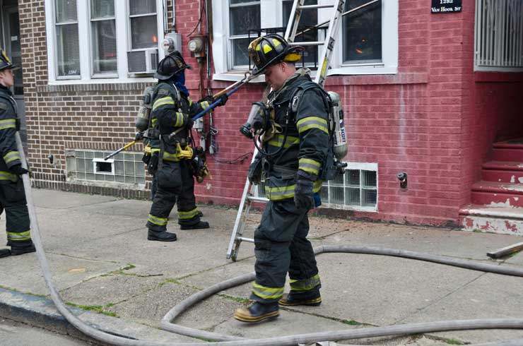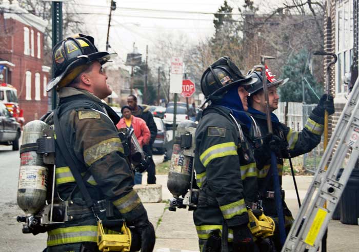 This page and the other pages in this series are the successors to the series of web-page about the Camden Fire Department that began with the page Camden Fire Department: The Fires of the Summer of 2011. On this and other pages in the series you will find pictures and information regarding different events and aspects of the fire service in Camden, New Jersey. On Saturday morning, February 4, 2012 I had eaten breakfast with two good friends, Jim Bessing and Robert Earl Crim, at the diner on Route 130 and Browning Road in Brooklawn. On the way back, I stopped at Liberty Station. Finding no one there, headed north to Fire headquarters, where I spent a little time shooting the breeze with Firefighter Eshu Ryan, who was on the watch desk. At noon it was time to break for lunch, with the men from Engine 1 and Ladder 1 present. Engine 1 that day consisted of Captain Jose Berrios and Firefighters Tyrone Baker, Ed Mendez, and Eshu Ryan; Ladder 2 was staffed by Captain Joel Bain and Firefighters, Johnnie Broadwater, Chris Broccoli, and Pete Perez. Battalion Chief Ed Glassmann was on his way back to Fire Headquarters as we sat down.. I was two bites into a chicken sandwich when Chris Broccoli said "Something's burning, I smell smoke". A quick look out the window confirmed that, with smoke coming out the second floor windows of 333-335 Arch Street. This building, at the corner of North 4th and Arch Street is literally at the entrance to Fire Headquarters parking lot and rear garage doors, and literally is within a stone's throw from Fire Headquarters' kitchen. I grabbed my camera, coat and hat and started shooting while the men brought the apparatus around the block. The one occupant of the building had already gotten out, and told me that there was no one else inside. The fire, most likely cause by careless smoking, was quickly dealt with. The resident was treated for smoke inhalation and taken to the hospital as a precautionary measure. After wrapping up, the thought was to finish lunch… and then beep-beep-beep… "1282 Carl Miller Boulevard, a dwelling"… I caught a ride with Ladder 1. By the time we got there things had been taken care of, apparently this was a first floor electrical fire soewhat complicated as the foire had gotten into the from wall of the living room. Engine 10 and Ladder 2 were operating when we arrived. All photos are presented in the order in which they were taken. There are so many images for this fire that I have split coverage of this fire into two parts, this being Page 2. There is a link below to return to Page 1. As with the web page covering other Camden Fire Department events, if you can identify anyone that I've missed, please comment at the bottom of the page. (I'm terrible at at names and faces).. February 22, 2012 |