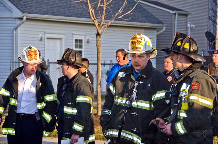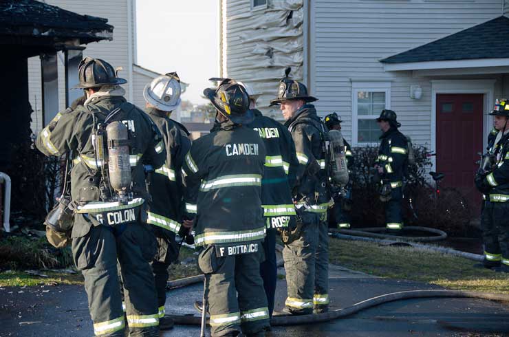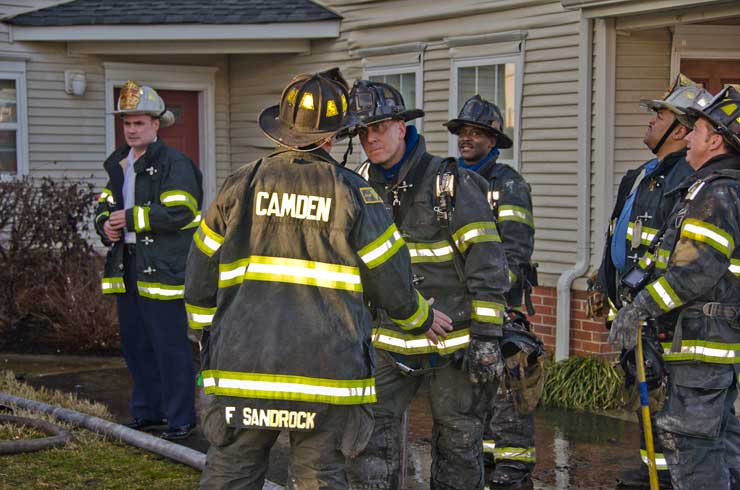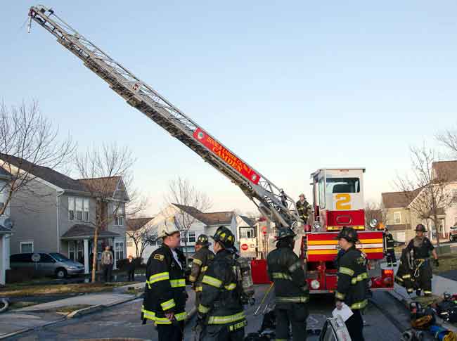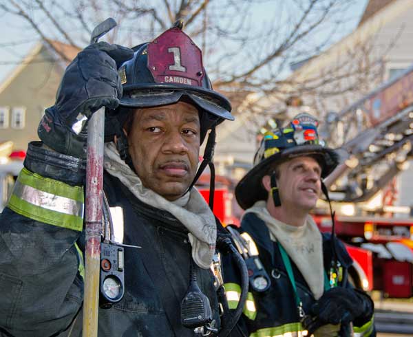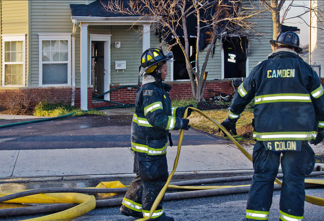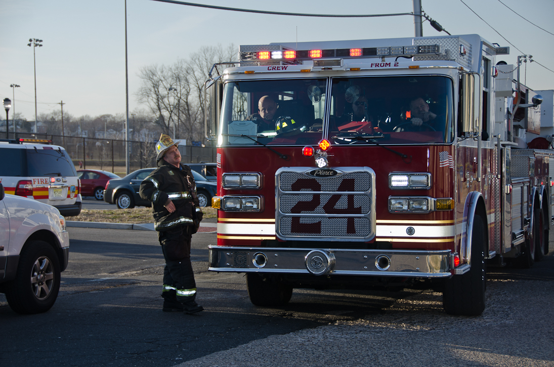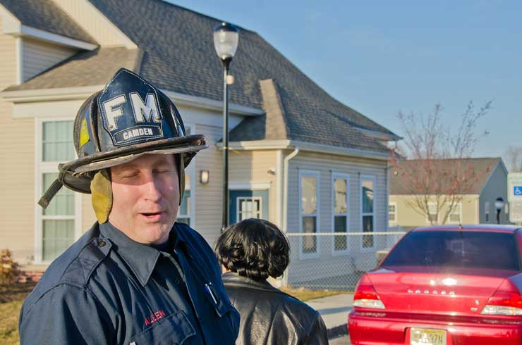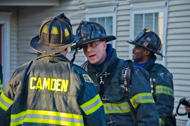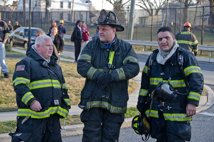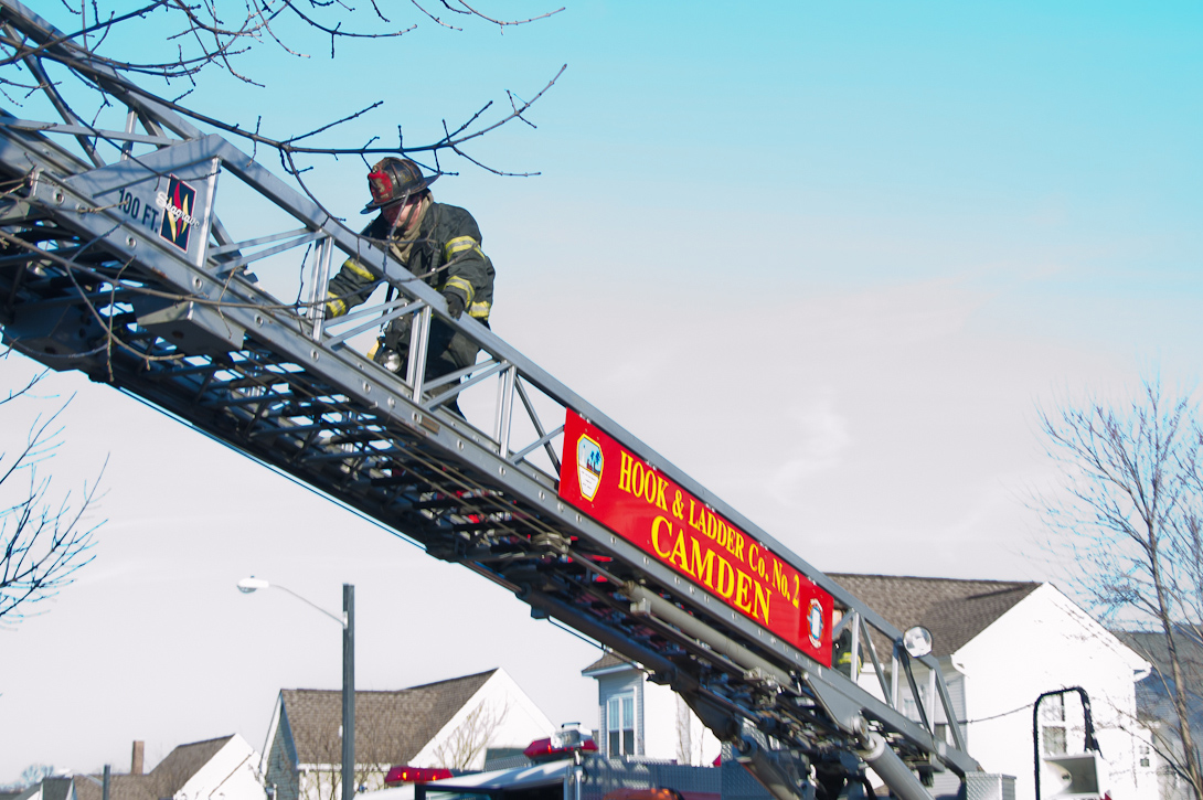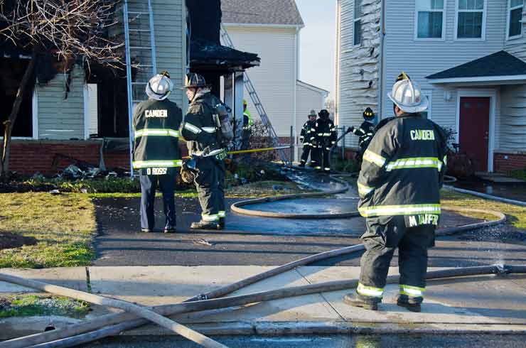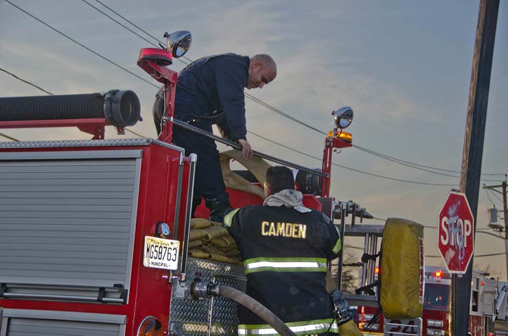 This page and the other pages in this series are the successors to the series of web-page about the Camden Fire Department that began with the page Camden Fire Department: The Fires of the Summer of 2011. On this and other pages in the series you will find pictures and information regarding different events and aspects of the fire service in Camden, New Jersey. On the evening of February 28, 2012 I was in Cherry Hill, New Jersey headed to my father's house to pick him up as we had plans to go to dinner. I was about 50 yards from his house when an alarm sounded for a house fire at 3133 Saunders Street in East Camden. This house was built about ten years ago on the site of the former Westfield Acres public housing project, and was located on the corner of Saunders Street and Rosedale Avenue. I stopped, got my father, and off we went to Camden. It took awhile to get there as it was rush hour and we had to come down Chapel Avenue in Cherry Hill, then down Maple Avenue in Merchantville to get to East Camden. The fire was under control when we arrived but there was still much to photograph. Camden Fire Department companies arrived with heavy fire conditions showing from the second story wood frame twin dwelling. Command struck a 2nd Alarm as crews operated in a defensive operation. Units from Collingswood and Pennsauken were also called on to rend assistance. As with the web page covering other Camden Fire Department events, if you can identify anyone that I've missed, please comment at the bottom of the page. (I'm terrible at at names and faces).. March 6, 2012 |