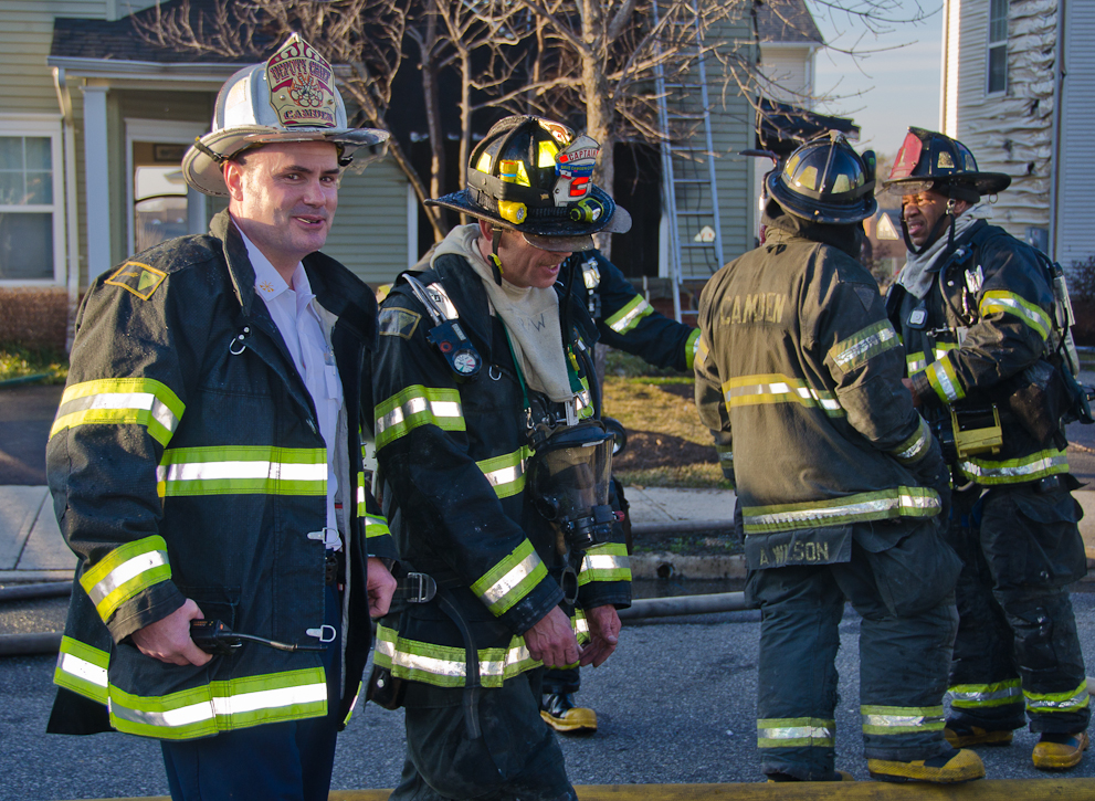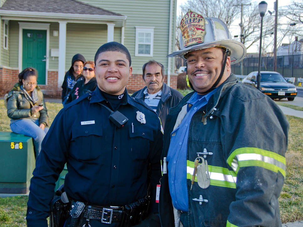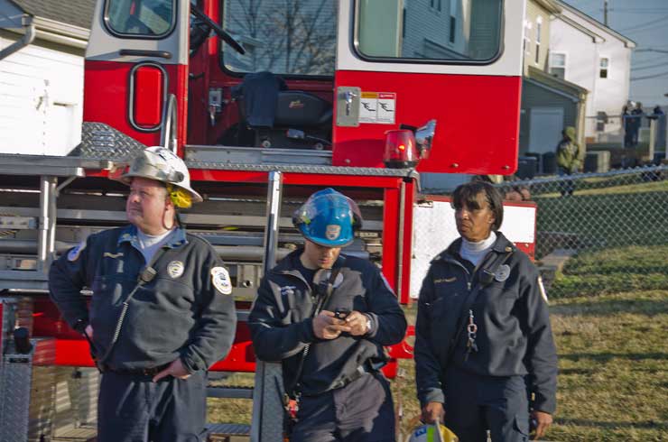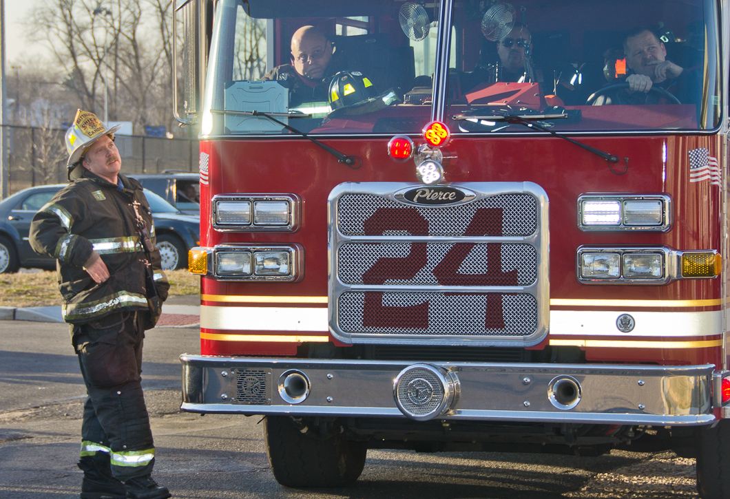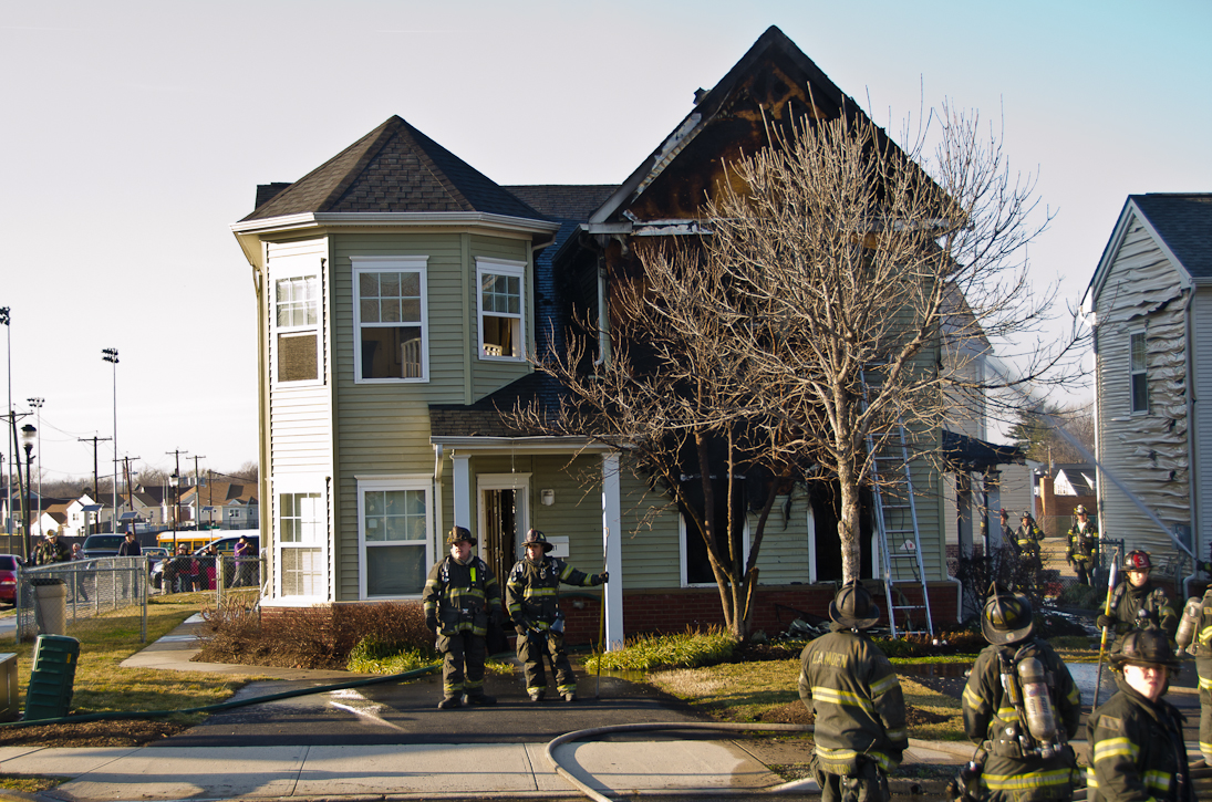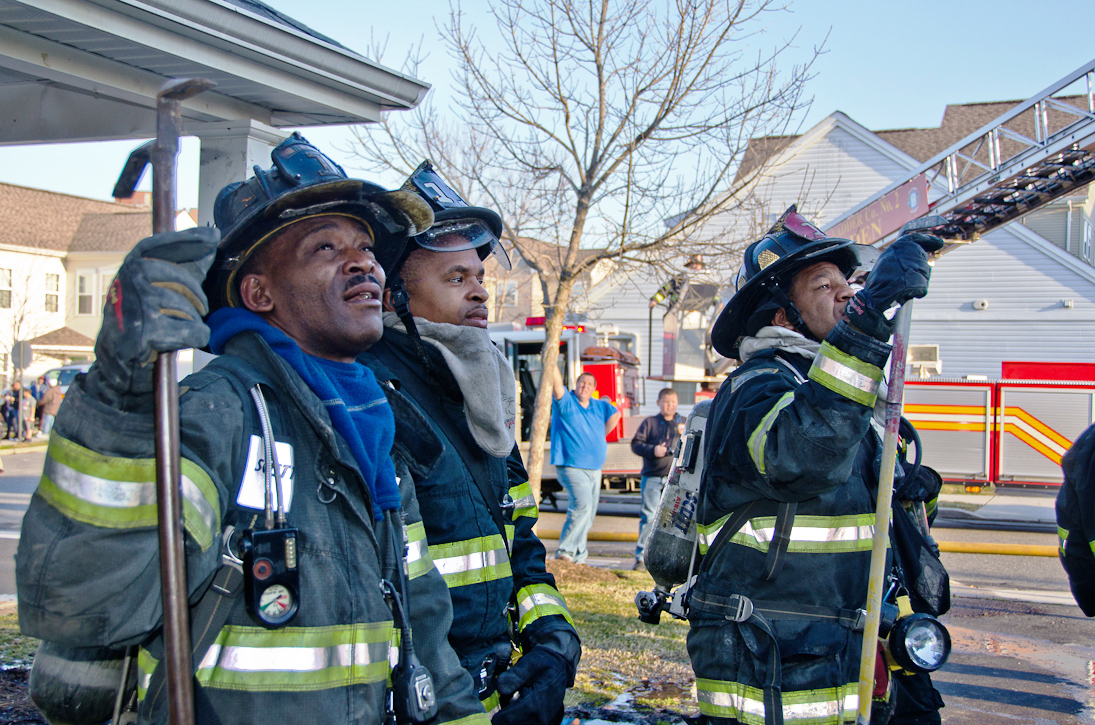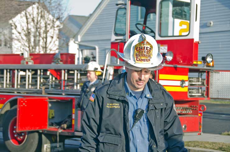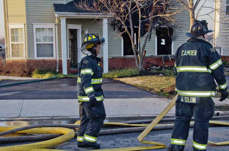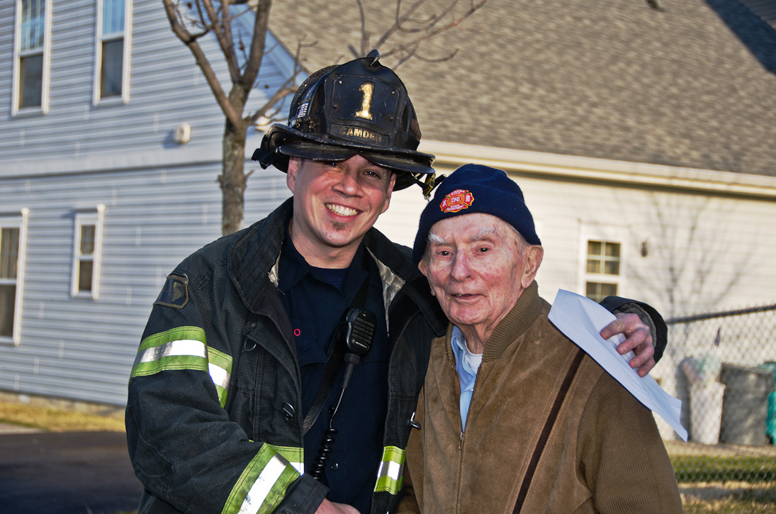 This page and the other pages in this series are the successors to the series of web-page about the Camden Fire Department that began with the page Camden Fire Department: The Fires of the Summer of 2011. On this and other pages in the series you will find pictures and information regarding different events and aspects of the fire service in Camden, New Jersey. On the evening of February 28, 2012 I was in Cherry Hill, New Jersey headed to my father's house to pick him up as we had plans to go to dinner. I was about 50 yards from his house when an alarm sounded for a house fire at 3133 Saunders Street in East Camden. This house was built about ten years ago on the site of the former Westfield Acres public housing project, and was located on the corner of Saunders Street and Rosedale Avenue. I stopped, got my father, and off we went to Camden. It took awhile to get there as it was rush hour and we had to come down Chapel Avenue in Cherry Hill, then down Maple Avenue in Merchantville to get to East Camden. The fire was under control when we arrived but there was still much to photograph. Camden Fire Department companies arrived with heavy fire conditions showing from the second story wood frame twin dwelling. Command struck a 2nd Alarm as crews operated in a defensive operation. Units from Collingswood and Pennsauken were also called on to rend assistance. As with the web page covering other Camden Fire Department events, if you can identify anyone that I've missed, please comment at the bottom of the page. (I'm terrible at at names and faces).. March 6, 2012 |