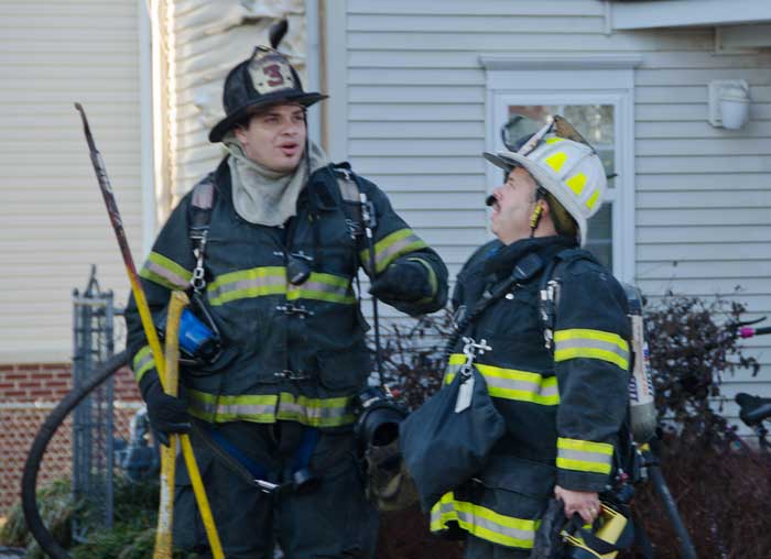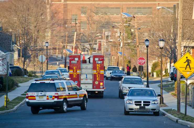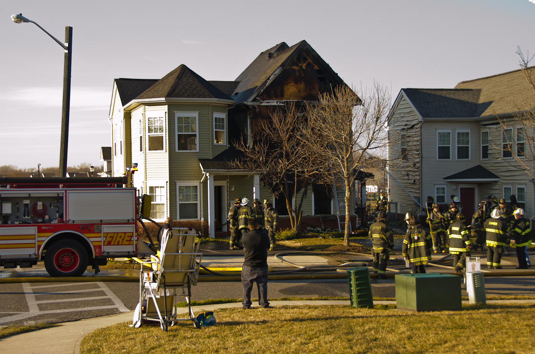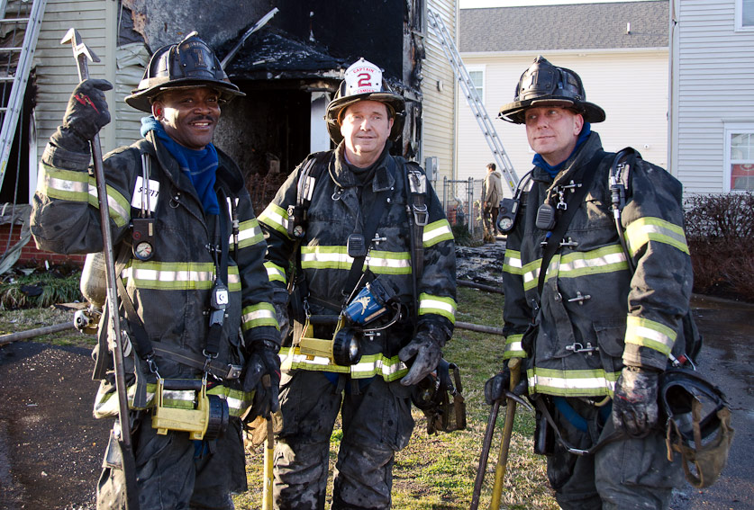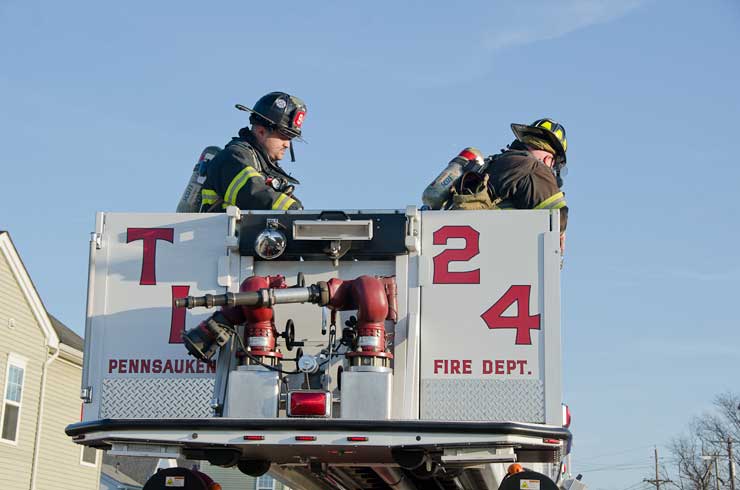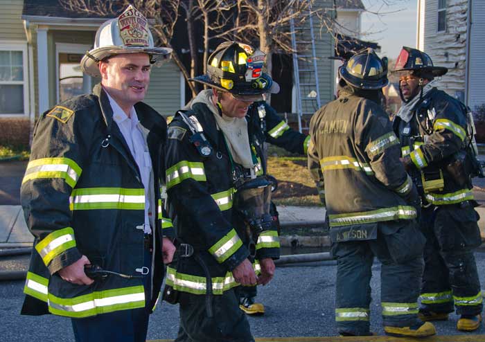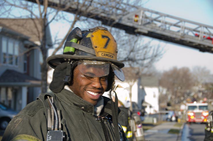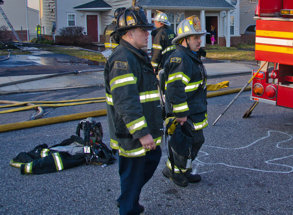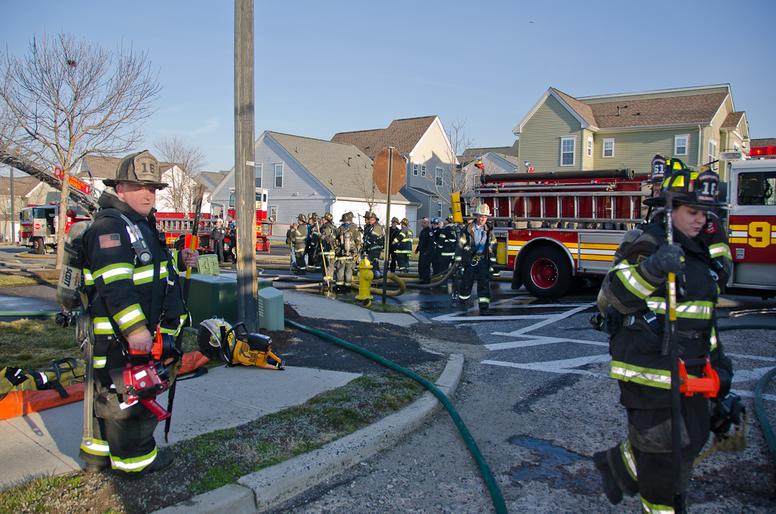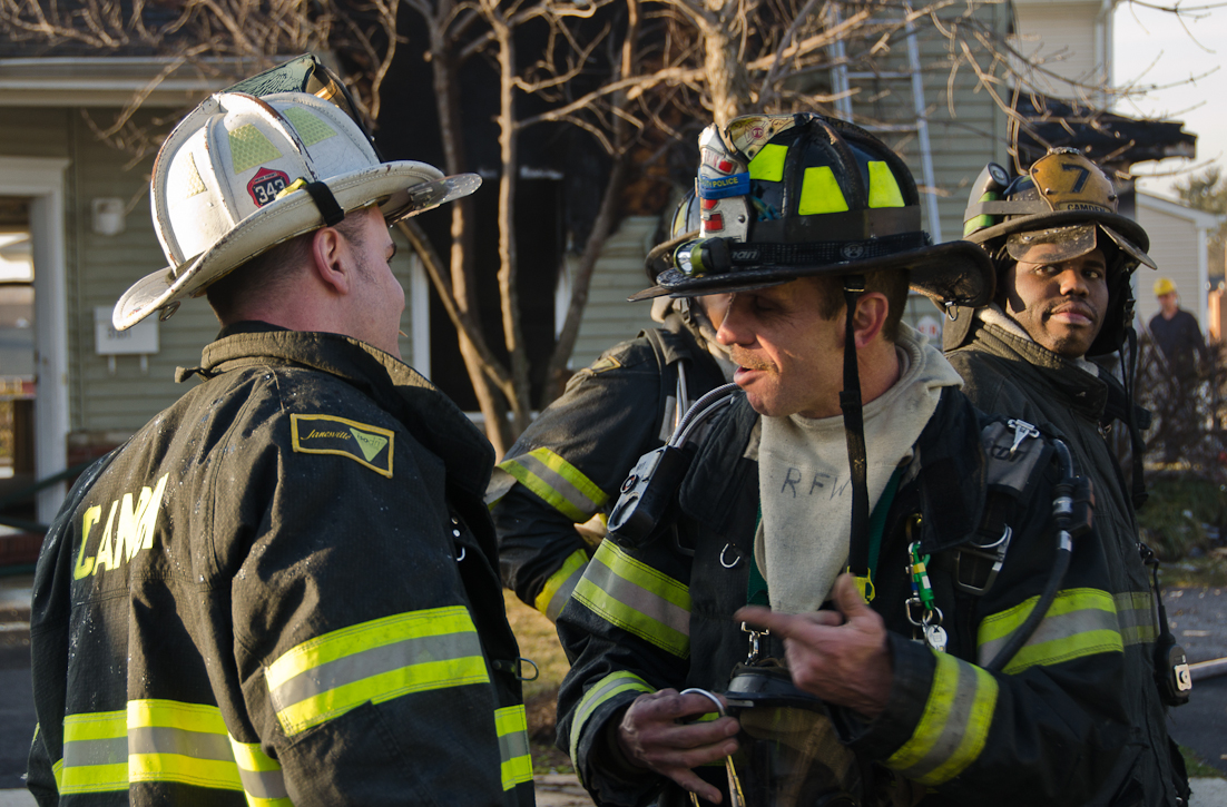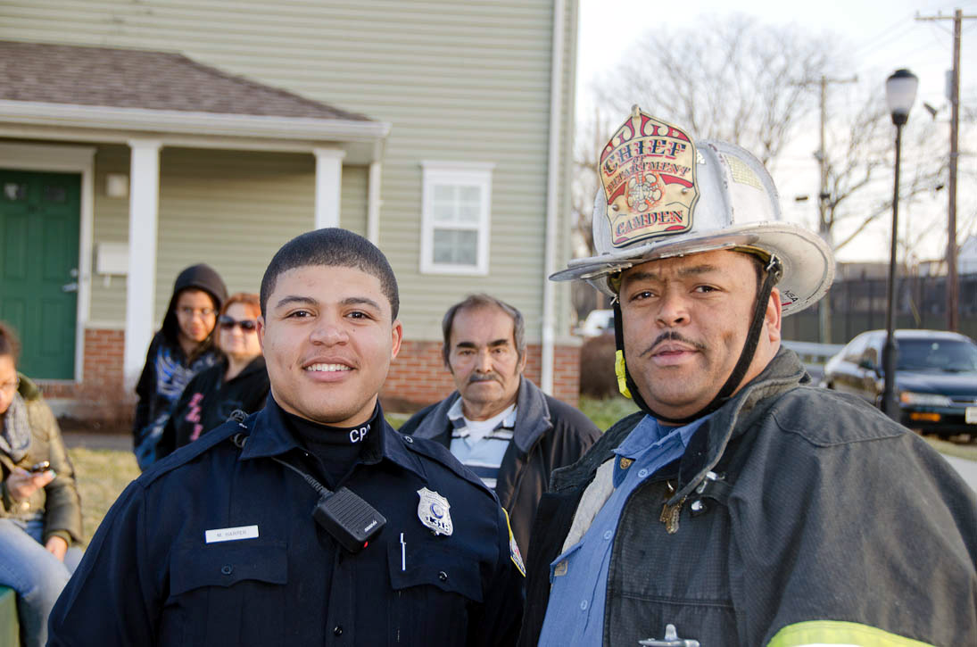 This page and the other pages in this series are the successors to the series of web-page about the Camden Fire Department that began with the page Camden Fire Department: The Fires of the Summer of 2011. On this and other pages in the series you will find pictures and information regarding different events and aspects of the fire service in Camden, New Jersey. On the evening of February 28, 2012 I was in Cherry Hill, New Jersey headed to my father's house to pick him up as we had plans to go to dinner. I was about 50 yards from his house when an alarm sounded for a house fire at 3133 Saunders Street in East Camden. This house was built about ten years ago on the site of the former Westfield Acres public housing project, and was located on the corner of Saunders Street and Rosedale Avenue. I stopped, got my father, and off we went to Camden. It took awhile to get there as it was rush hour and we had to come down Chapel Avenue in Cherry Hill, then down Maple Avenue in Merchantville to get to East Camden. The fire was under control when we arrived but there was still much to photograph. Camden Fire Department companies arrived with heavy fire conditions showing from the second story wood frame twin dwelling. Command struck a 2nd Alarm as crews operated in a defensive operation. Units from Collingswood and Pennsauken were also called on to rend assistance. As with the web page covering other Camden Fire Department events, if you can identify anyone that I've missed, please comment at the bottom of the page. (I'm terrible at at names and faces).. March 6, 2012 |