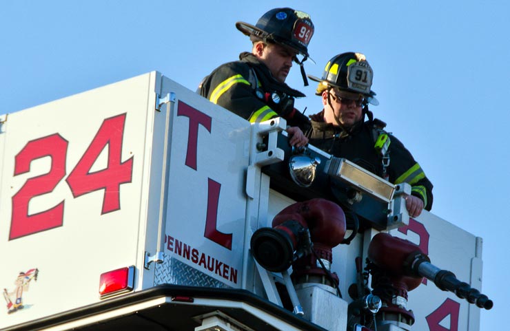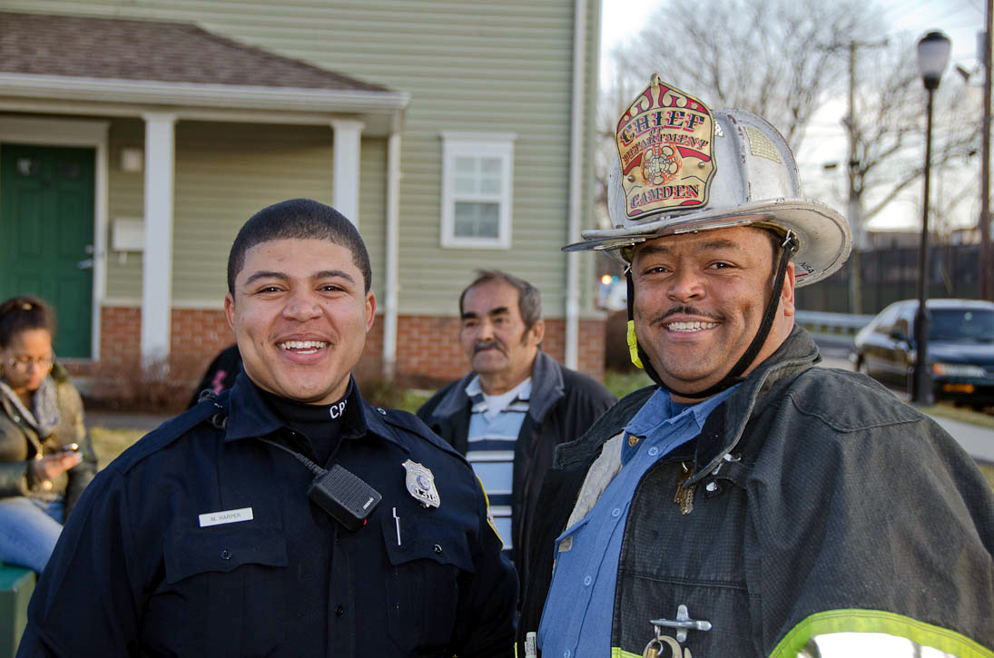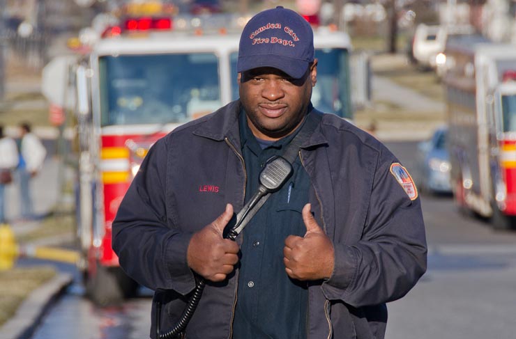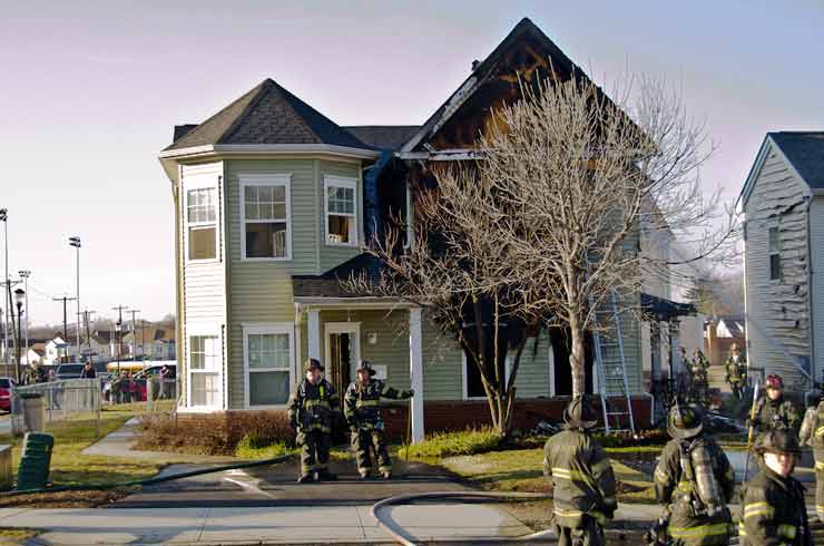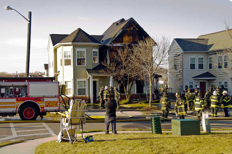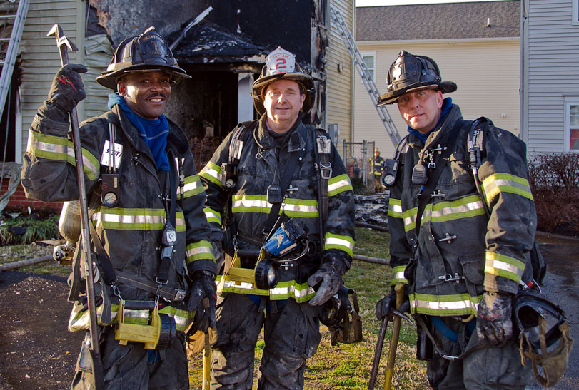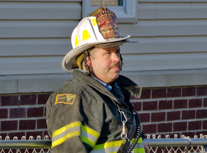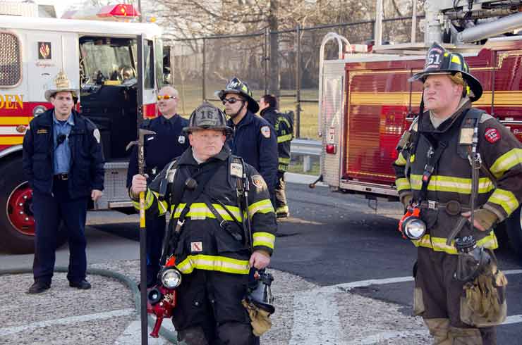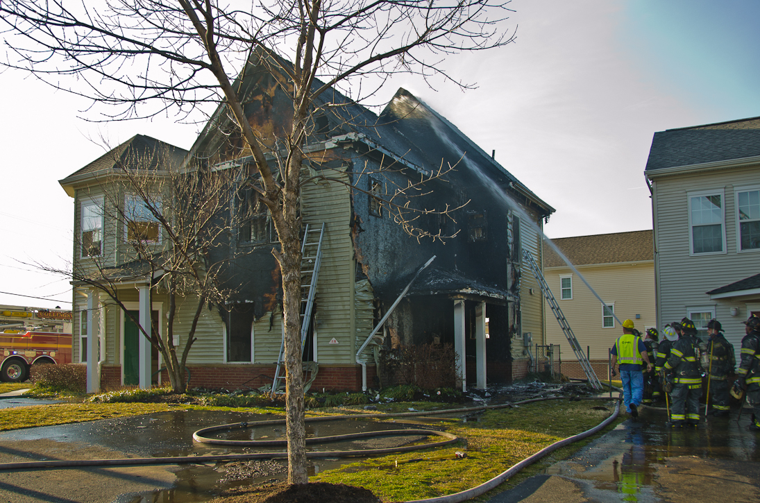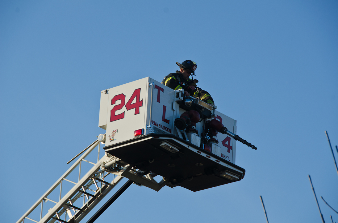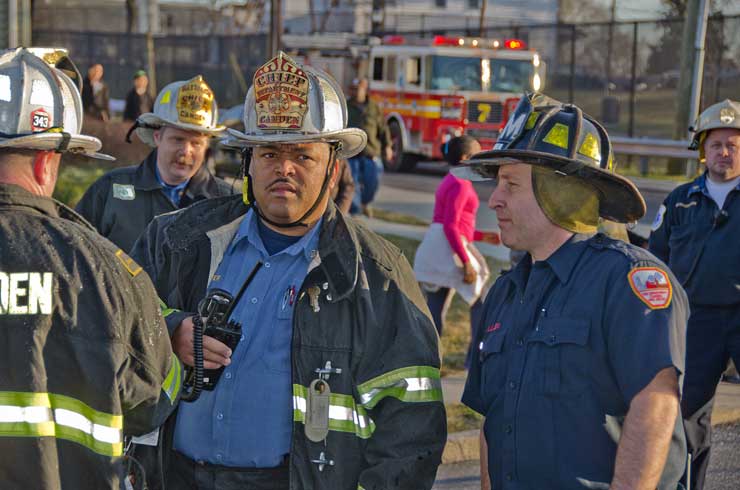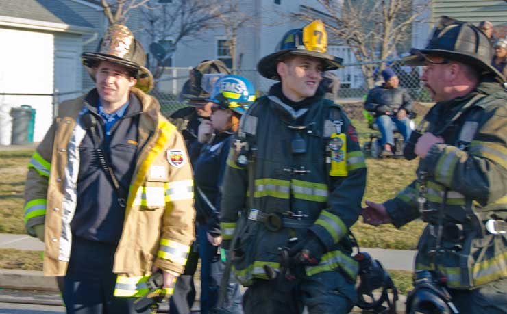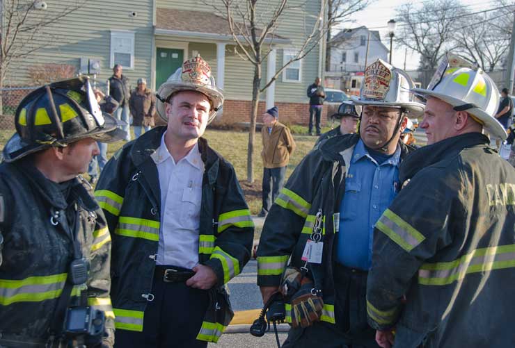 This page and the other pages in this series are the successors to the series of web-page about the Camden Fire Department that began with the page Camden Fire Department: The Fires of the Summer of 2011. On this and other pages in the series you will find pictures and information regarding different events and aspects of the fire service in Camden, New Jersey. On the evening of February 28, 2012 I was in Cherry Hill, New Jersey headed to my father's house to pick him up as we had plans to go to dinner. I was about 50 yards from his house when an alarm sounded for a house fire at 3133 Saunders Street in East Camden. This house was built about ten years ago on the site of the former Westfield Acres public housing project, and was located on the corner of Saunders Street and Rosedale Avenue. I stopped, got my father, and off we went to Camden. It took awhile to get there as it was rush hour and we had to come down Chapel Avenue in Cherry Hill, then down Maple Avenue in Merchantville to get to East Camden. The fire was under control when we arrived but there was still much to photograph. Camden Fire Department companies arrived with heavy fire conditions showing from the second story wood frame twin dwelling. Command struck a 2nd Alarm as crews operated in a defensive operation. Units from Collingswood and Pennsauken were also called on to rend assistance. As with the web page covering other Camden Fire Department events, if you can identify anyone that I've missed, please comment at the bottom of the page. (I'm terrible at at names and faces).. March 6, 2012 |