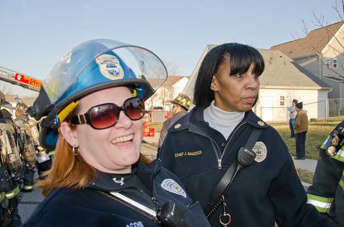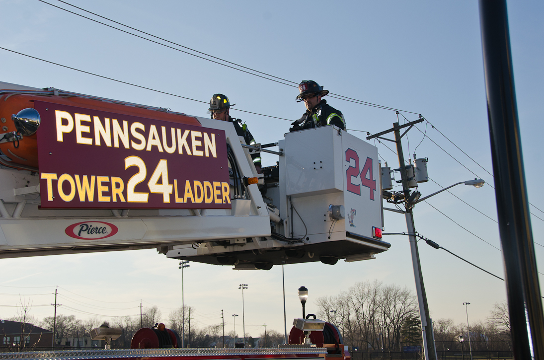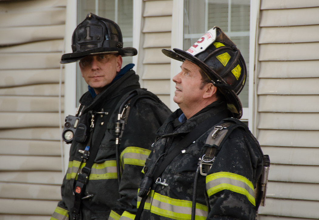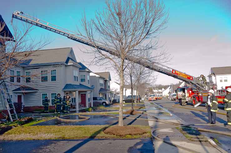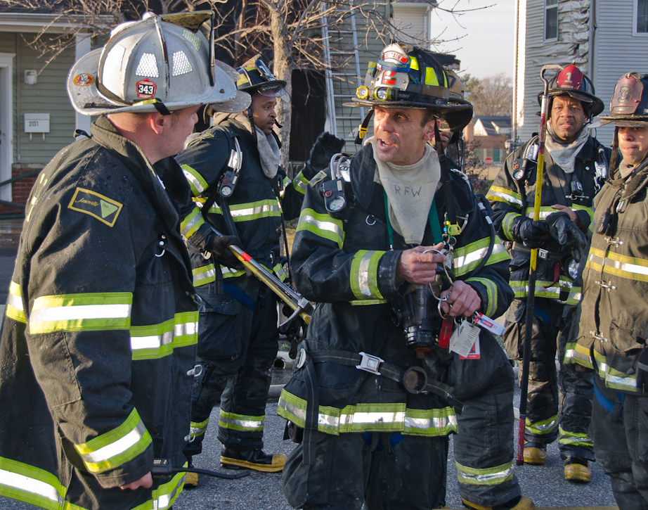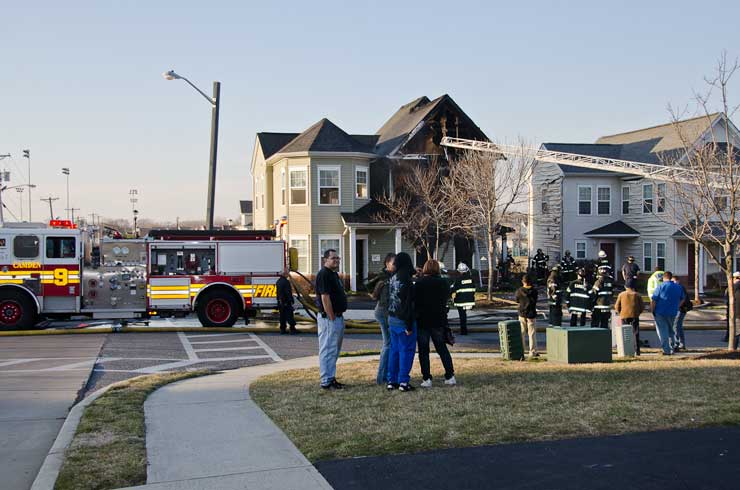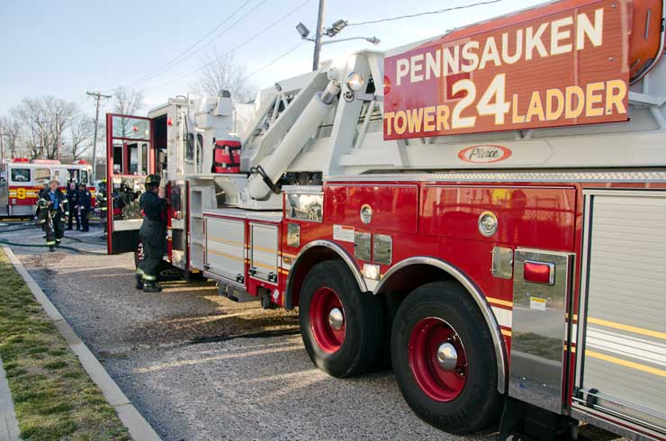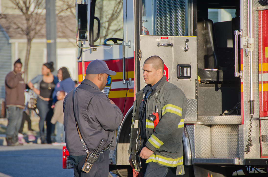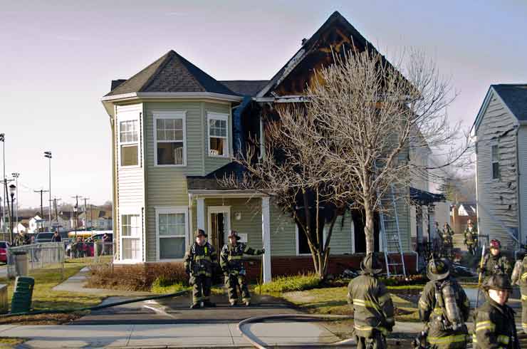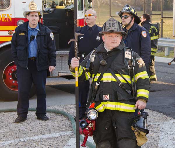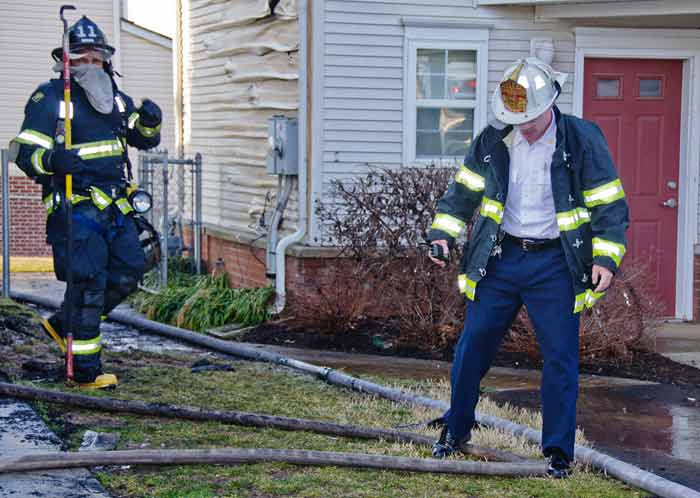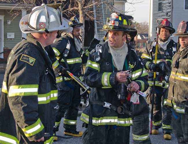 This page and the other pages in this series are the successors to the series of web-page about the Camden Fire Department that began with the page Camden Fire Department: The Fires of the Summer of 2011. On this and other pages in the series you will find pictures and information regarding different events and aspects of the fire service in Camden, New Jersey. On the evening of February 28, 2012 I was in Cherry Hill, New Jersey headed to my father's house to pick him up as we had plans to go to dinner. I was about 50 yards from his house when an alarm sounded for a house fire at 3133 Saunders Street in East Camden. This house was built about ten years ago on the site of the former Westfield Acres public housing project, and was located on the corner of Saunders Street and Rosedale Avenue. I stopped, got my father, and off we went to Camden. It took awhile to get there as it was rush hour and we had to come down Chapel Avenue in Cherry Hill, then down Maple Avenue in Merchantville to get to East Camden. The fire was under control when we arrived but there was still much to photograph. Camden Fire Department companies arrived with heavy fire conditions showing from the second story wood frame twin dwelling. Command struck a 2nd Alarm as crews operated in a defensive operation. Units from Collingswood and Pennsauken were also called on to rend assistance. As with the web page covering other Camden Fire Department events, if you can identify anyone that I've missed, please comment at the bottom of the page. (I'm terrible at at names and faces).. March 6, 2012 |