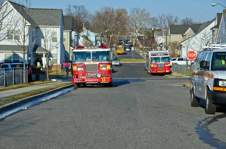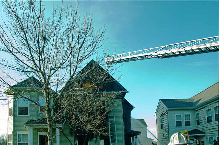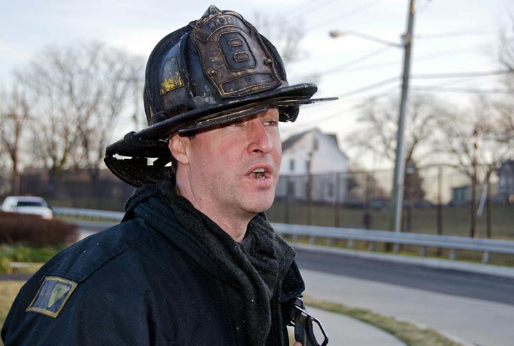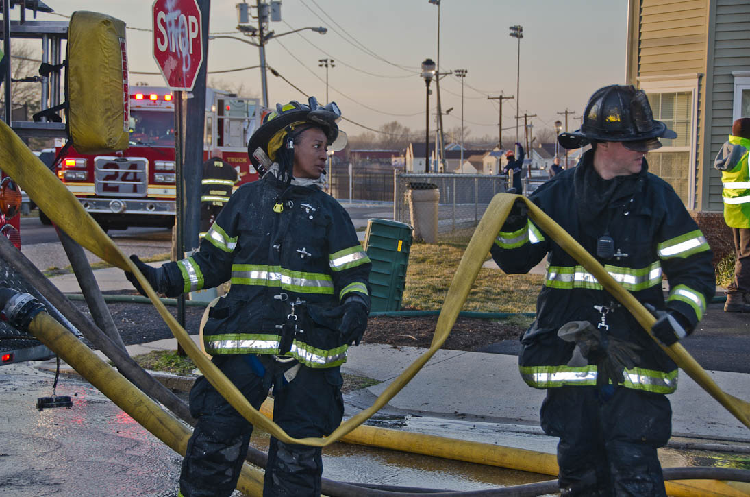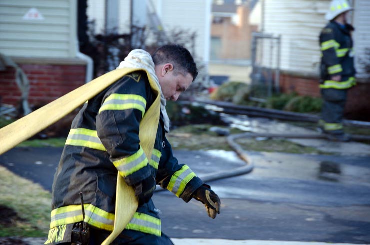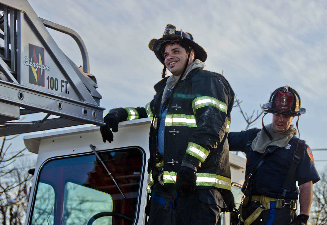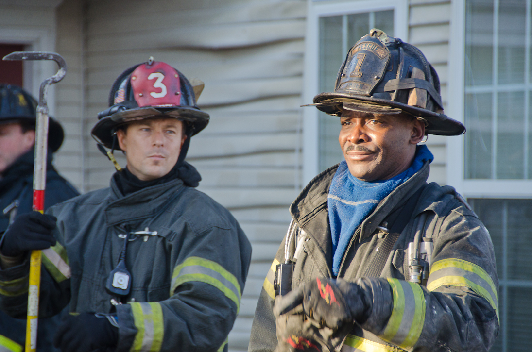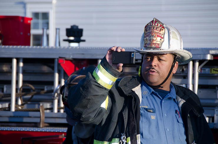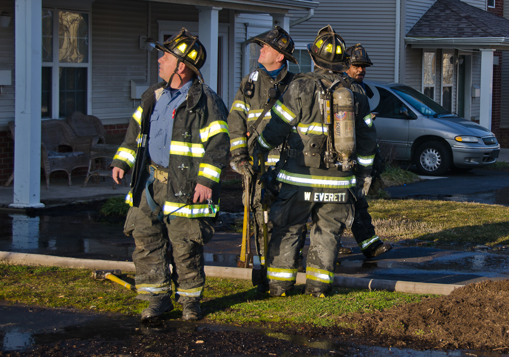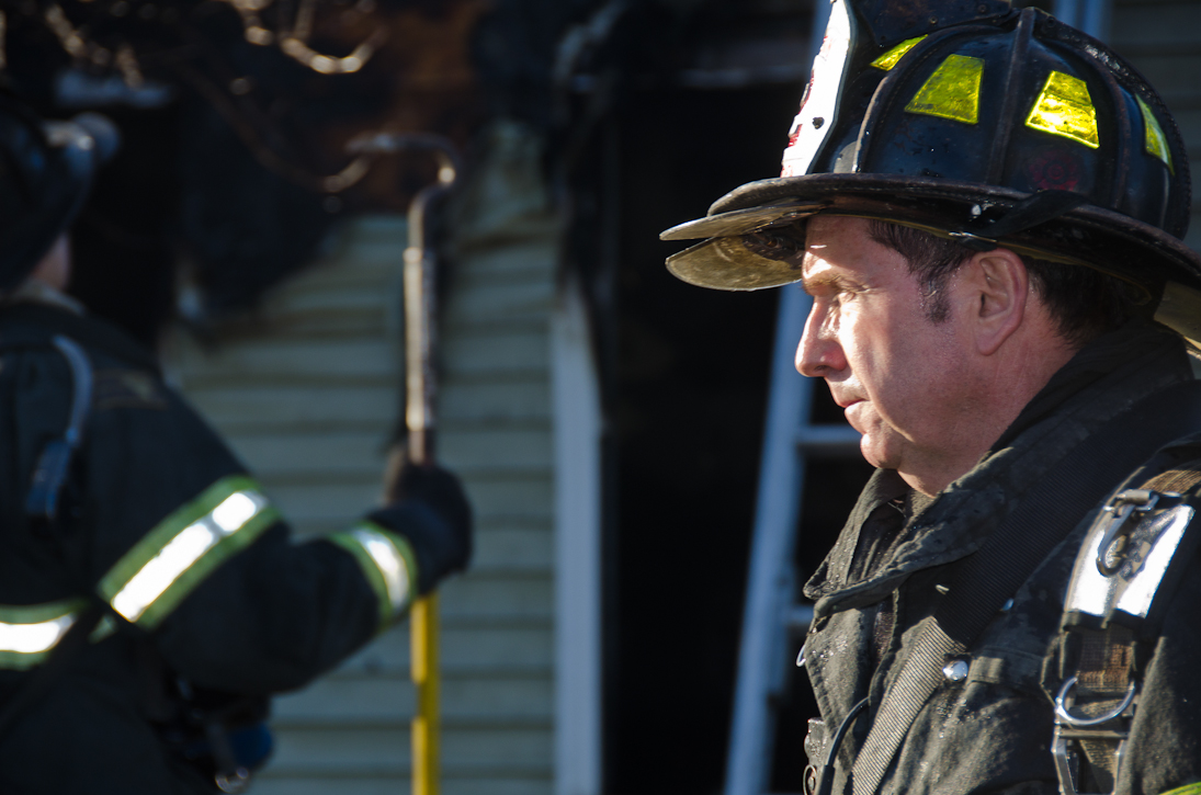 This page and the other pages in this series are the successors to the series of web-page about the Camden Fire Department that began with the page Camden Fire Department: The Fires of the Summer of 2011. On this and other pages in the series you will find pictures and information regarding different events and aspects of the fire service in Camden, New Jersey. On the evening of February 28, 2012 I was in Cherry Hill, New Jersey headed to my father's house to pick him up as we had plans to go to dinner. I was about 50 yards from his house when an alarm sounded for a house fire at 3133 Saunders Street in East Camden. This house was built about ten years ago on the site of the former Westfield Acres public housing project, and was located on the corner of Saunders Street and Rosedale Avenue. I stopped, got my father, and off we went to Camden. It took awhile to get there as it was rush hour and we had to come down Chapel Avenue in Cherry Hill, then down Maple Avenue in Merchantville to get to East Camden. The fire was under control when we arrived but there was still much to photograph. Camden Fire Department companies arrived with heavy fire conditions showing from the second story wood frame twin dwelling. Command struck a 2nd Alarm as crews operated in a defensive operation. Units from Collingswood and Pennsauken were also called on to rend assistance. As with the web page covering other Camden Fire Department events, if you can identify anyone that I've missed, please comment at the bottom of the page. (I'm terrible at at names and faces).. March 6, 2012 |