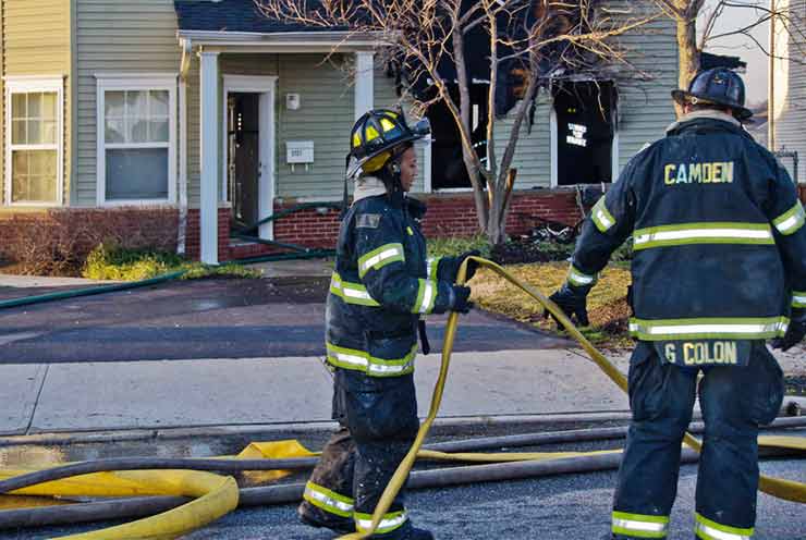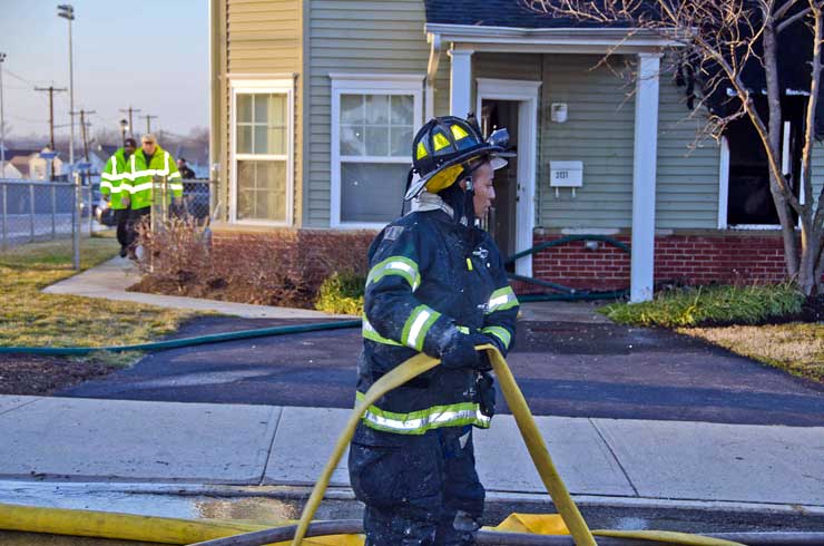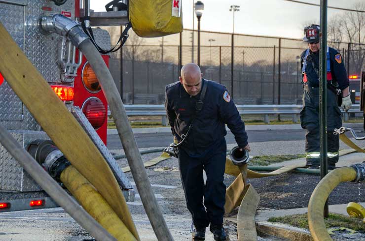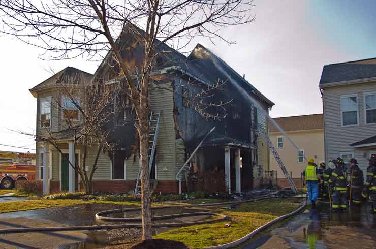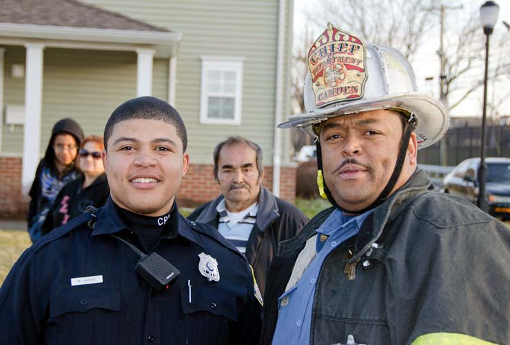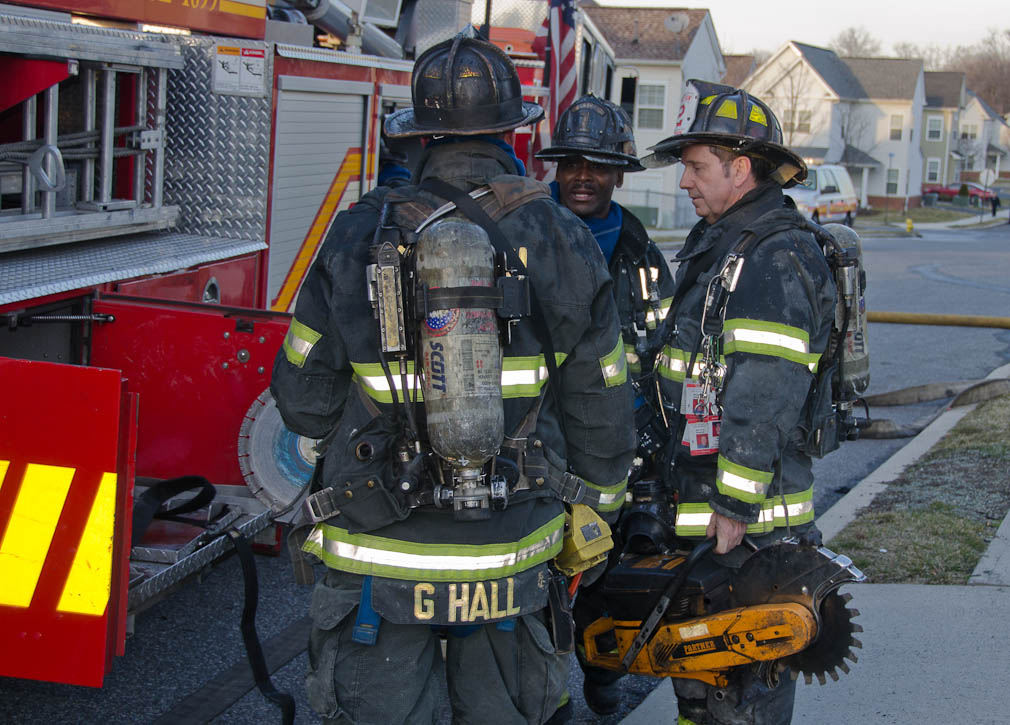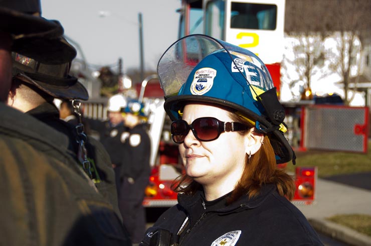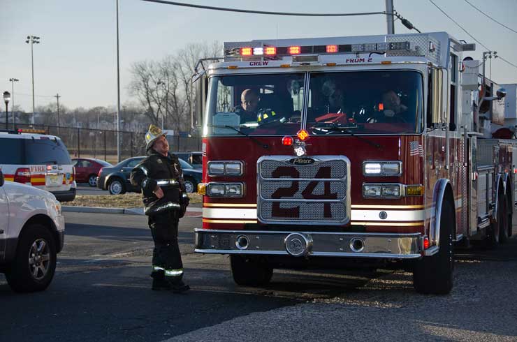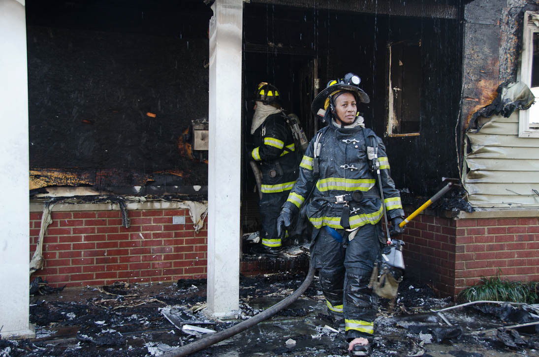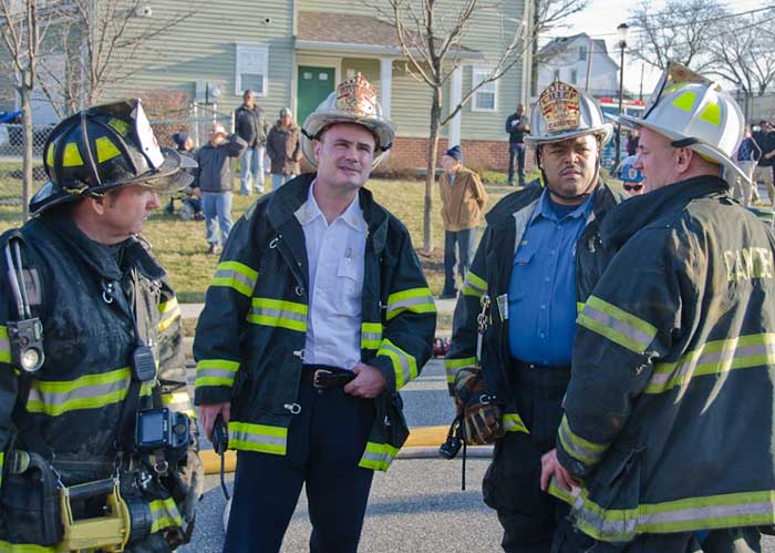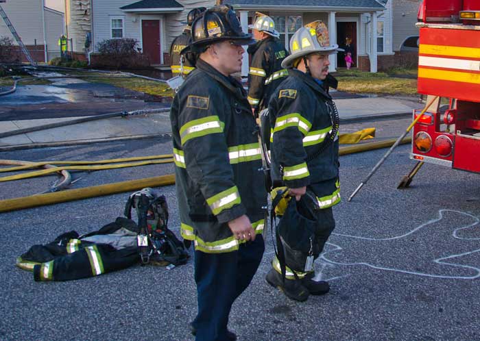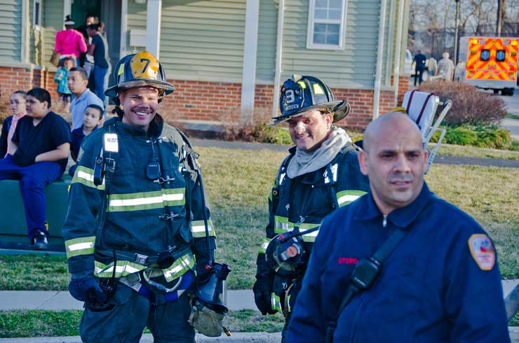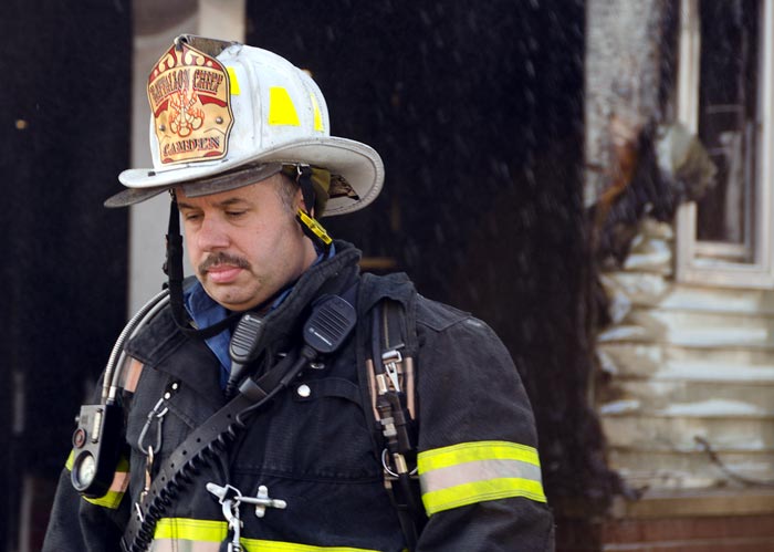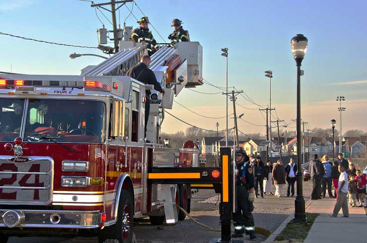 This page and the other pages in this series are the successors to the series of web-page about the Camden Fire Department that began with the page Camden Fire Department: The Fires of the Summer of 2011. On this and other pages in the series you will find pictures and information regarding different events and aspects of the fire service in Camden, New Jersey. On the evening of February 28, 2012 I was in Cherry Hill, New Jersey headed to my father's house to pick him up as we had plans to go to dinner. I was about 50 yards from his house when an alarm sounded for a house fire at 3133 Saunders Street in East Camden. This house was built about ten years ago on the site of the former Westfield Acres public housing project, and was located on the corner of Saunders Street and Rosedale Avenue. I stopped, got my father, and off we went to Camden. It took awhile to get there as it was rush hour and we had to come down Chapel Avenue in Cherry Hill, then down Maple Avenue in Merchantville to get to East Camden. The fire was under control when we arrived but there was still much to photograph. Camden Fire Department companies arrived with heavy fire conditions showing from the second story wood frame twin dwelling. Command struck a 2nd Alarm as crews operated in a defensive operation. Units from Collingswood and Pennsauken were also called on to rend assistance. As with the web page covering other Camden Fire Department events, if you can identify anyone that I've missed, please comment at the bottom of the page. (I'm terrible at at names and faces).. March 6, 2012 |