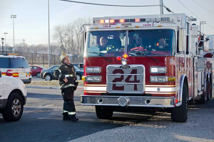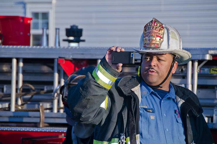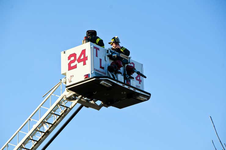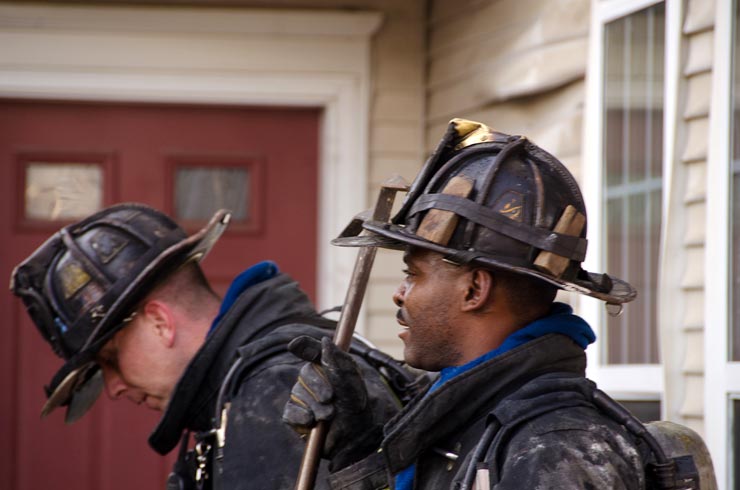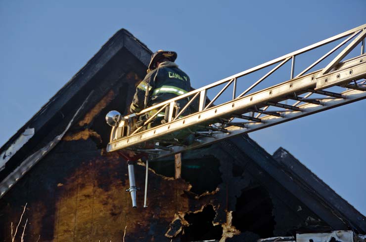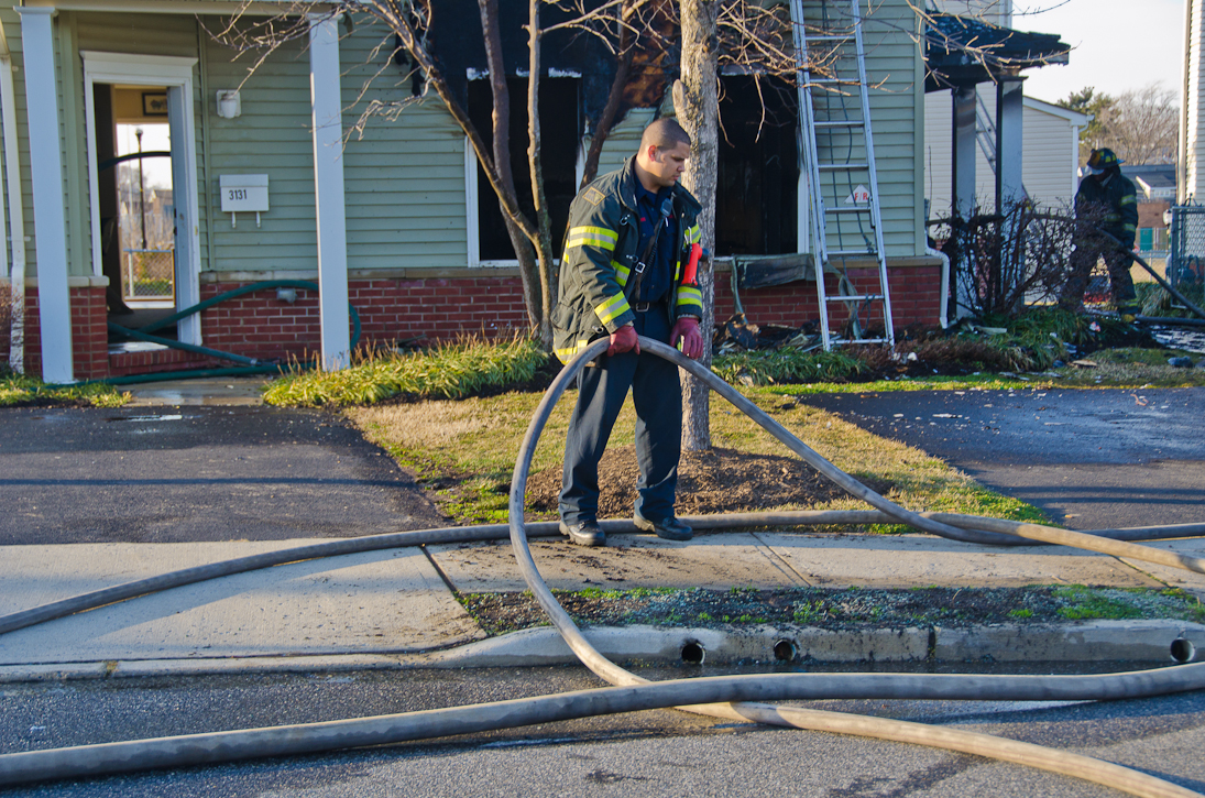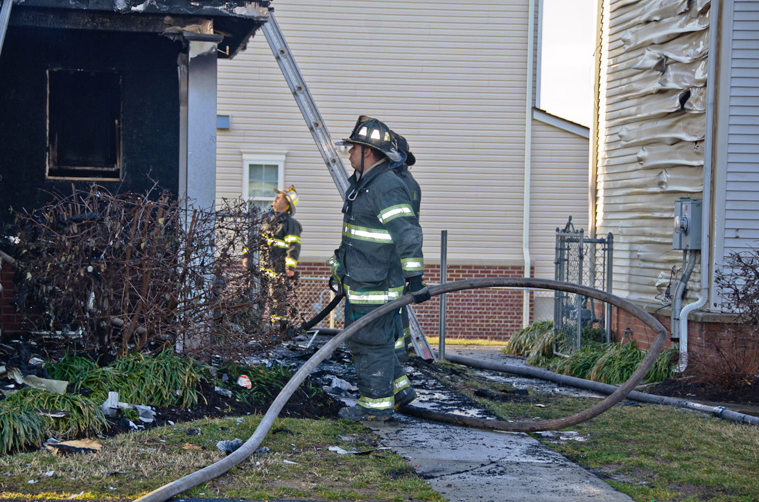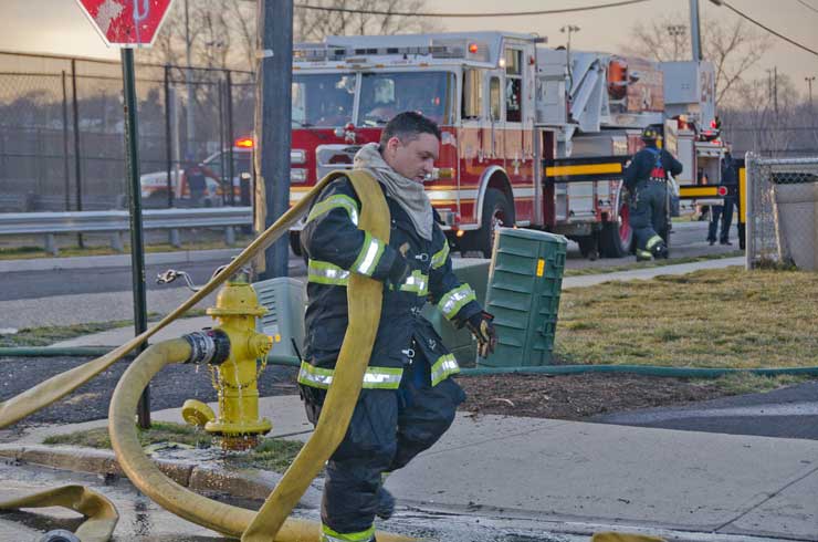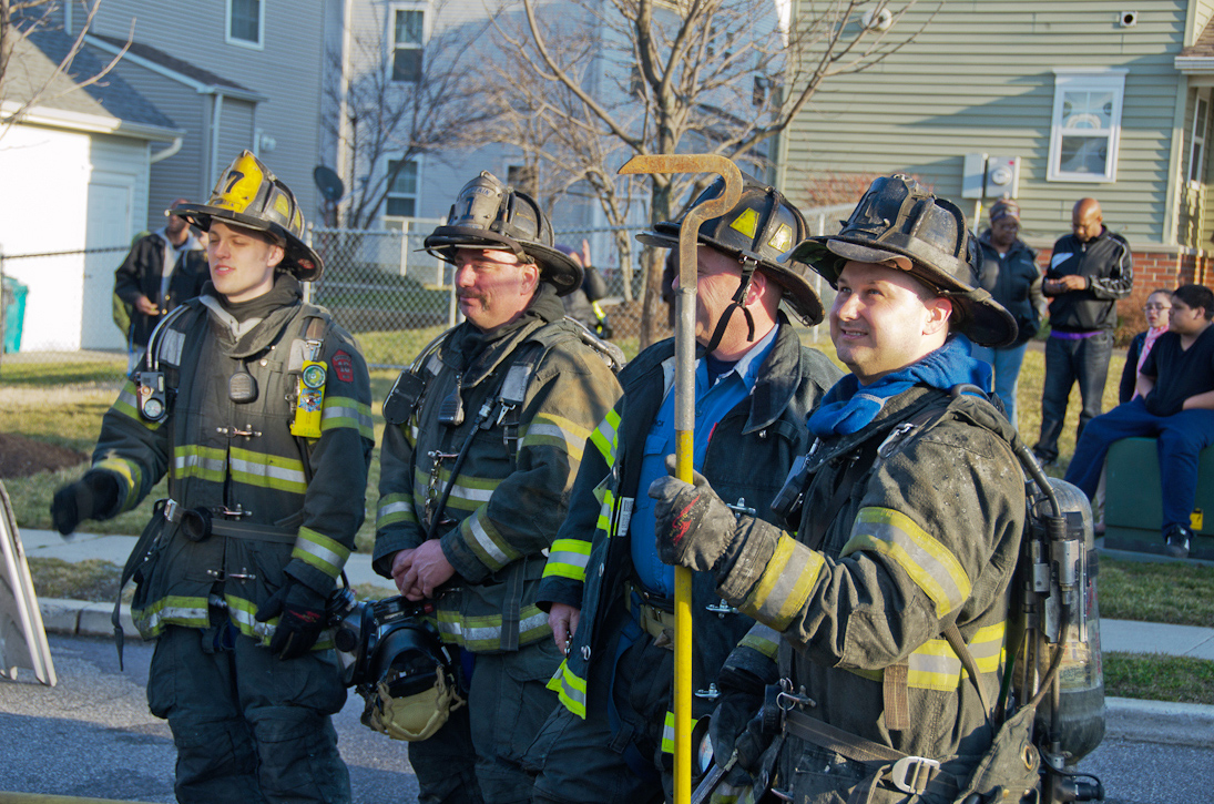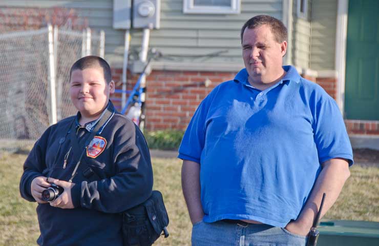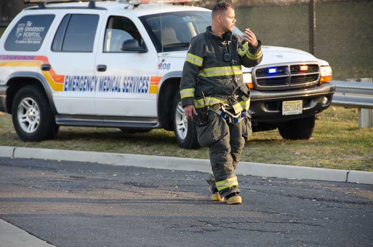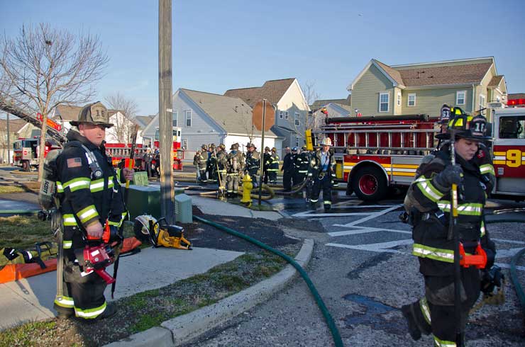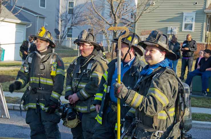 This page and the other pages in this series are the successors to the series of web-page about the Camden Fire Department that began with the page Camden Fire Department: The Fires of the Summer of 2011. On this and other pages in the series you will find pictures and information regarding different events and aspects of the fire service in Camden, New Jersey. On the evening of February 28, 2012 I was in Cherry Hill, New Jersey headed to my father's house to pick him up as we had plans to go to dinner. I was about 50 yards from his house when an alarm sounded for a house fire at 3133 Saunders Street in East Camden. This house was built about ten years ago on the site of the former Westfield Acres public housing project, and was located on the corner of Saunders Street and Rosedale Avenue. I stopped, got my father, and off we went to Camden. It took awhile to get there as it was rush hour and we had to come down Chapel Avenue in Cherry Hill, then down Maple Avenue in Merchantville to get to East Camden. The fire was under control when we arrived but there was still much to photograph. Camden Fire Department companies arrived with heavy fire conditions showing from the second story wood frame twin dwelling. Command struck a 2nd Alarm as crews operated in a defensive operation. Units from Collingswood and Pennsauken were also called on to rend assistance. As with the web page covering other Camden Fire Department events, if you can identify anyone that I've missed, please comment at the bottom of the page. (I'm terrible at at names and faces).. March 6, 2012 |
