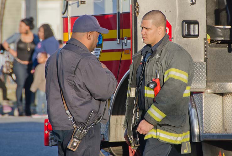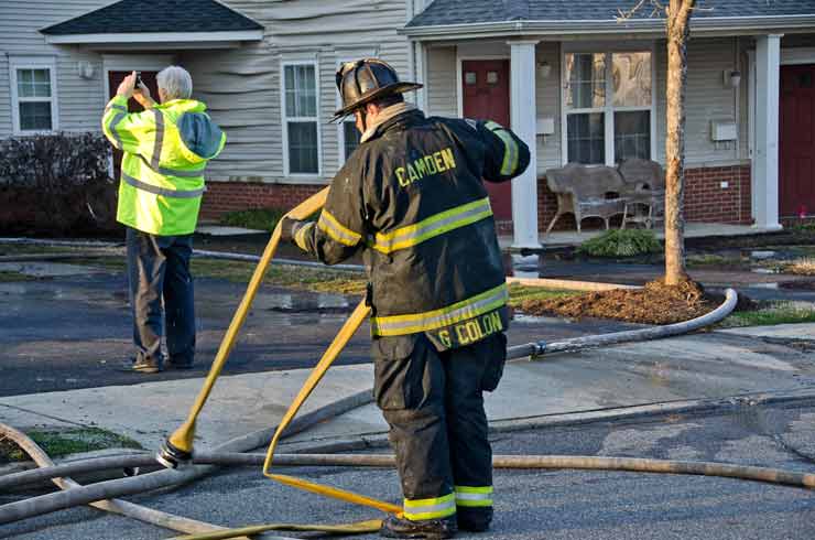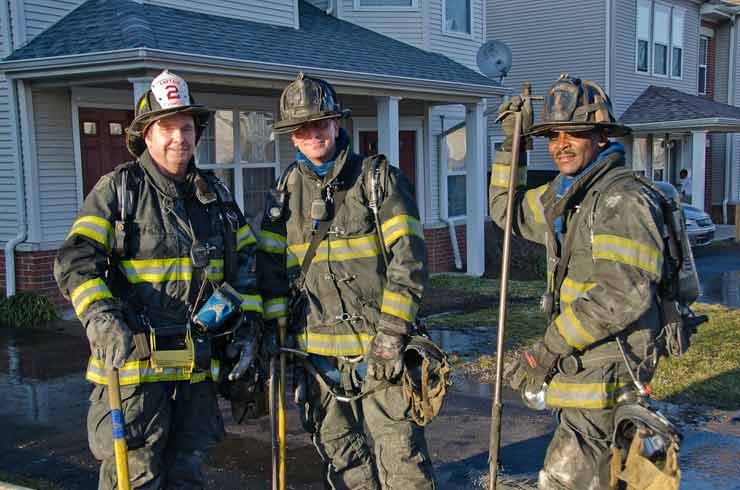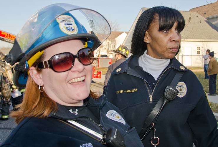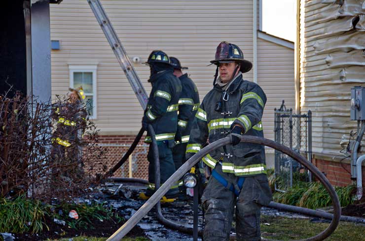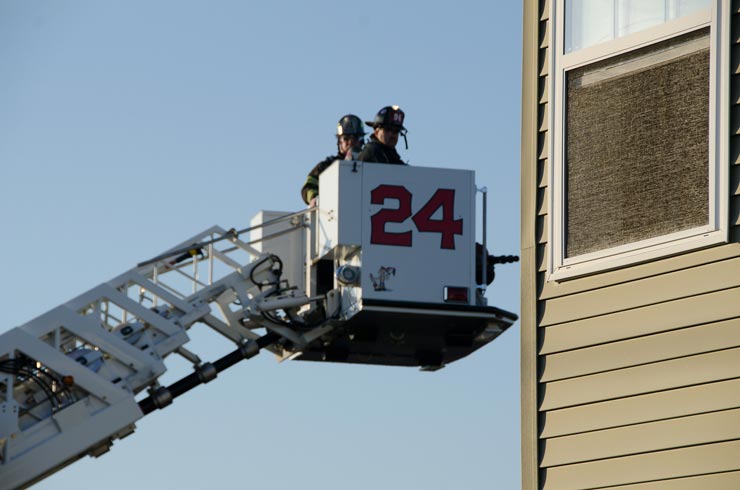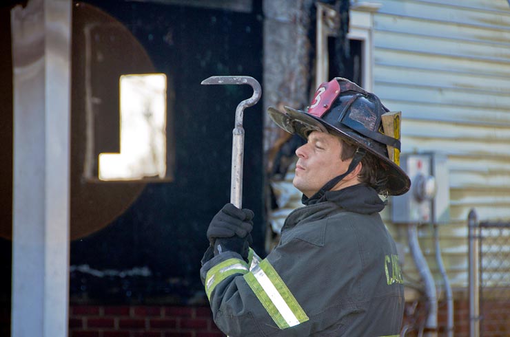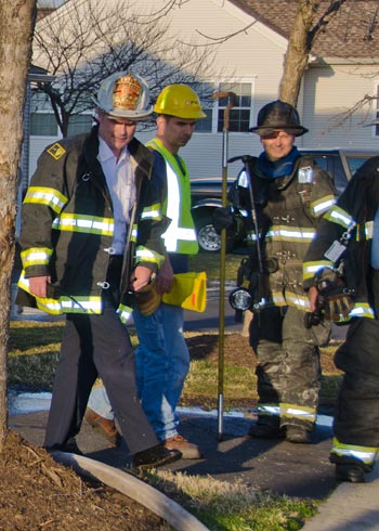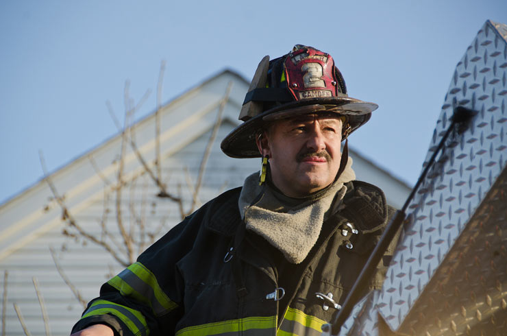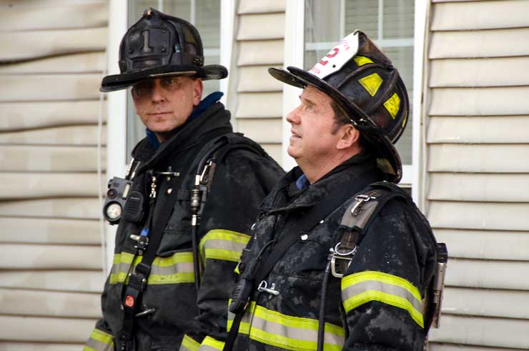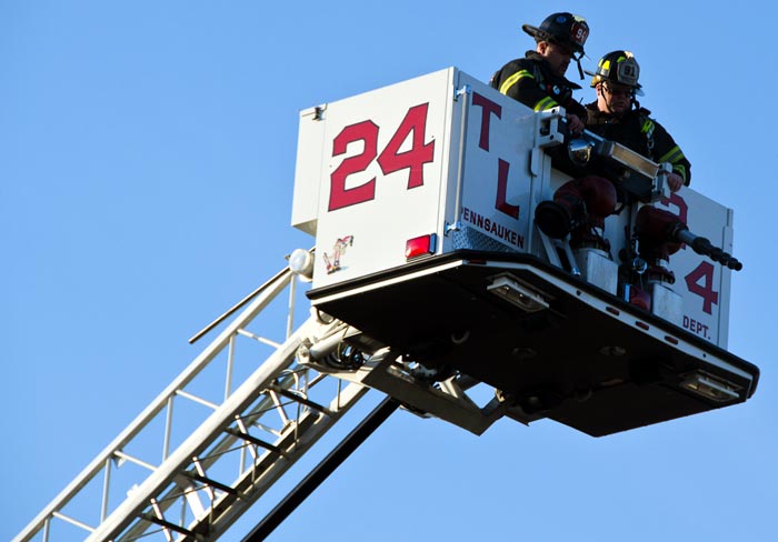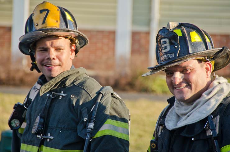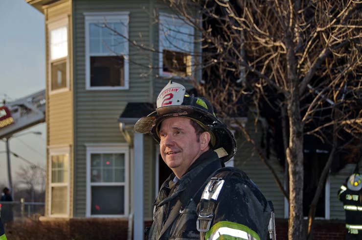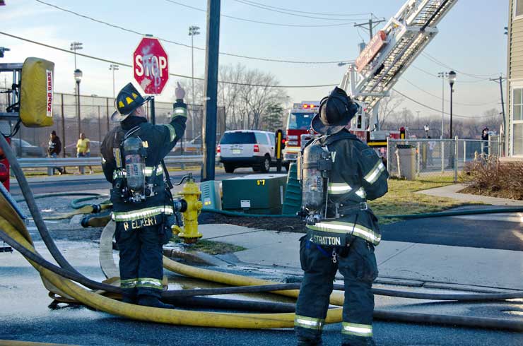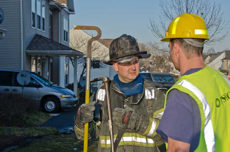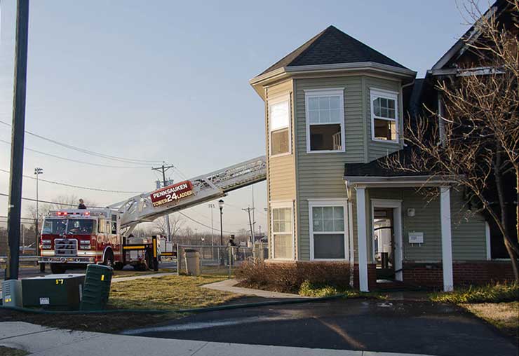 This page and the other pages in this series are the successors to the series of web-page about the Camden Fire Department that began with the page Camden Fire Department: The Fires of the Summer of 2011. On this and other pages in the series you will find pictures and information regarding different events and aspects of the fire service in Camden, New Jersey. On the evening of February 28, 2012 I was in Cherry Hill, New Jersey headed to my father's house to pick him up as we had plans to go to dinner. I was about 50 yards from his house when an alarm sounded for a house fire at 3133 Saunders Street in East Camden. This house was built about ten years ago on the site of the former Westfield Acres public housing project, and was located on the corner of Saunders Street and Rosedale Avenue. I stopped, got my father, and off we went to Camden. It took awhile to get there as it was rush hour and we had to come down Chapel Avenue in Cherry Hill, then down Maple Avenue in Merchantville to get to East Camden. The fire was under control when we arrived but there was still much to photograph. Camden Fire Department companies arrived with heavy fire conditions showing from the second story wood frame twin dwelling. Command struck a 2nd Alarm as crews operated in a defensive operation. Units from Collingswood and Pennsauken were also called on to rend assistance. As with the web page covering other Camden Fire Department events, if you can identify anyone that I've missed, please comment at the bottom of the page. (I'm terrible at at names and faces).. March 6, 2012 |