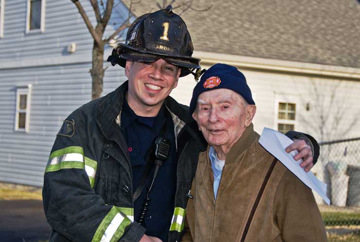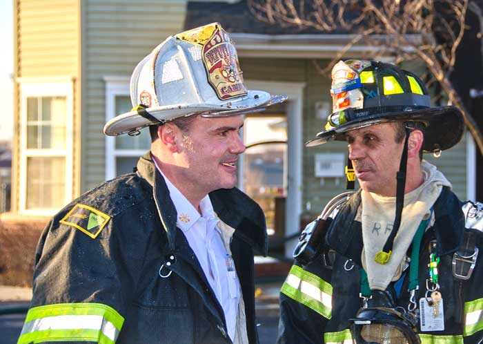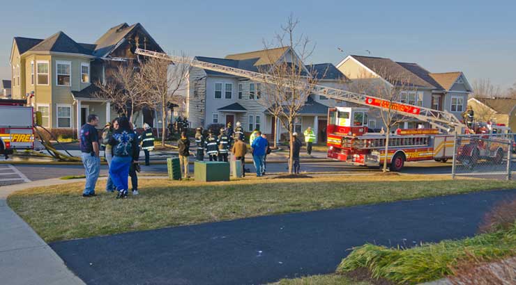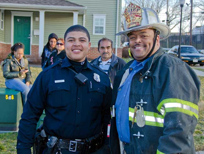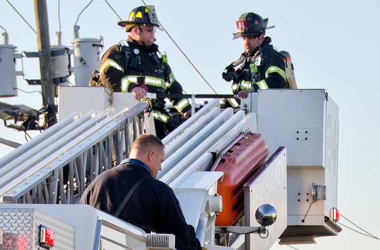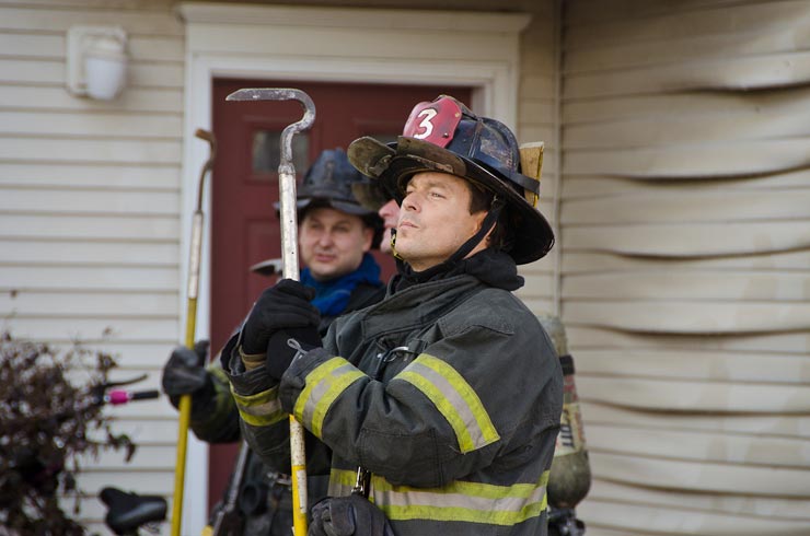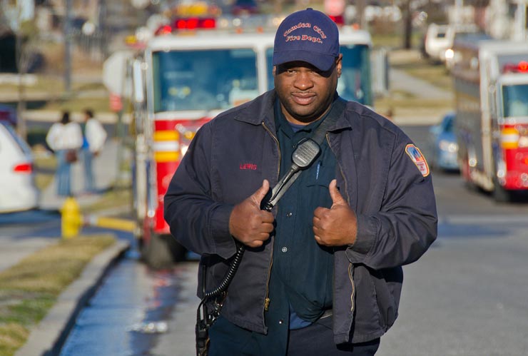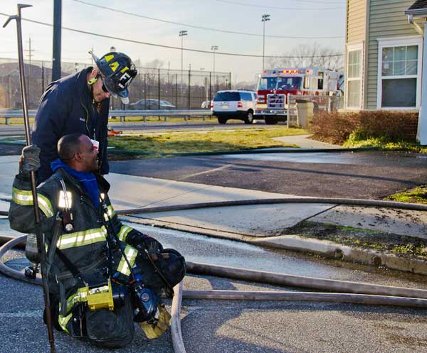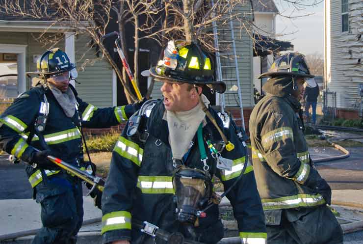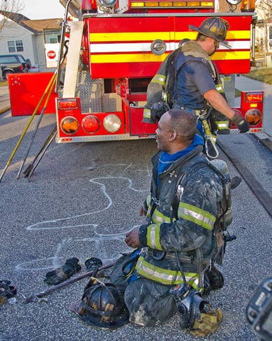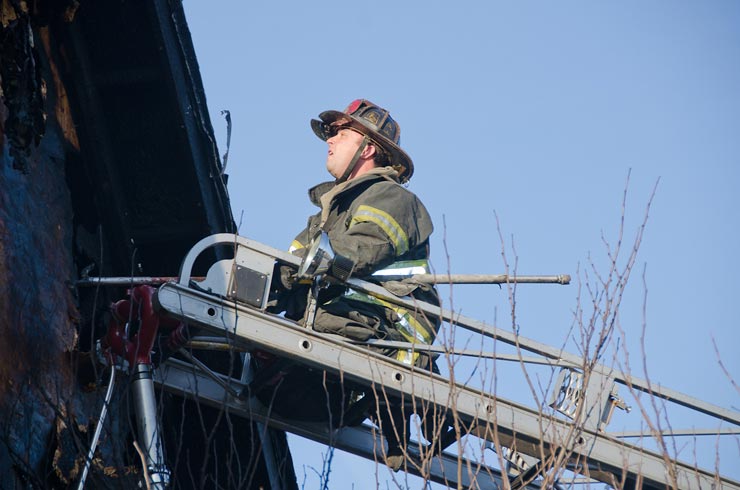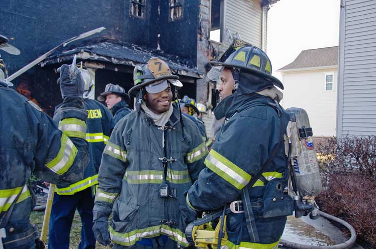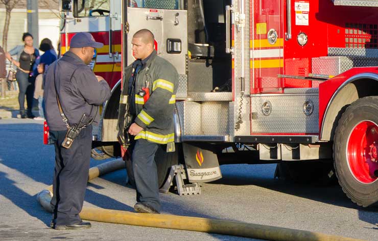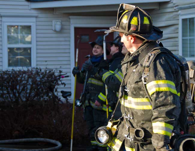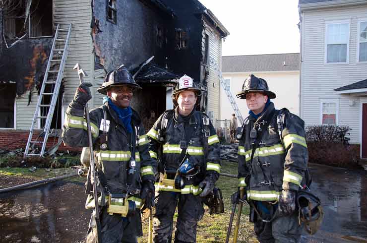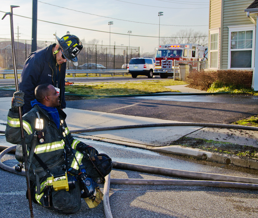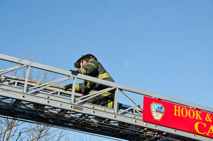 This page and the other pages in this series are the successors to the series of web-page about the Camden Fire Department that began with the page Camden Fire Department: The Fires of the Summer of 2011. On this and other pages in the series you will find pictures and information regarding different events and aspects of the fire service in Camden, New Jersey. On the evening of February 28, 2012 I was in Cherry Hill, New Jersey headed to my father's house to pick him up as we had plans to go to dinner. I was about 50 yards from his house when an alarm sounded for a house fire at 3133 Saunders Street in East Camden. This house was built about ten years ago on the site of the former Westfield Acres public housing project, and was located on the corner of Saunders Street and Rosedale Avenue. I stopped, got my father, and off we went to Camden. It took awhile to get there as it was rush hour and we had to come down Chapel Avenue in Cherry Hill, then down Maple Avenue in Merchantville to get to East Camden. The fire was under control when we arrived but there was still much to photograph. Camden Fire Department companies arrived with heavy fire conditions showing from the second story wood frame twin dwelling. Command struck a 2nd Alarm as crews operated in a defensive operation. Units from Collingswood and Pennsauken were also called on to rend assistance. As with the web page covering other Camden Fire Department events, if you can identify anyone that I've missed, please comment at the bottom of the page. (I'm terrible at at names and faces).. March 6, 2012 |