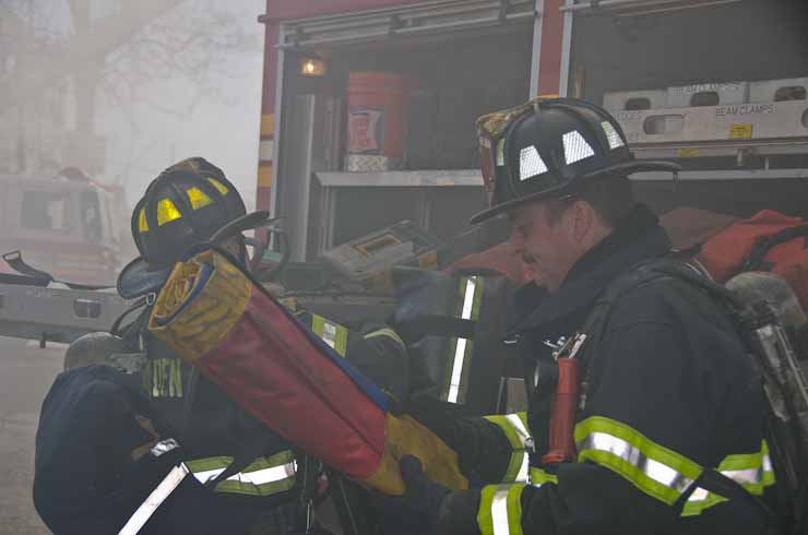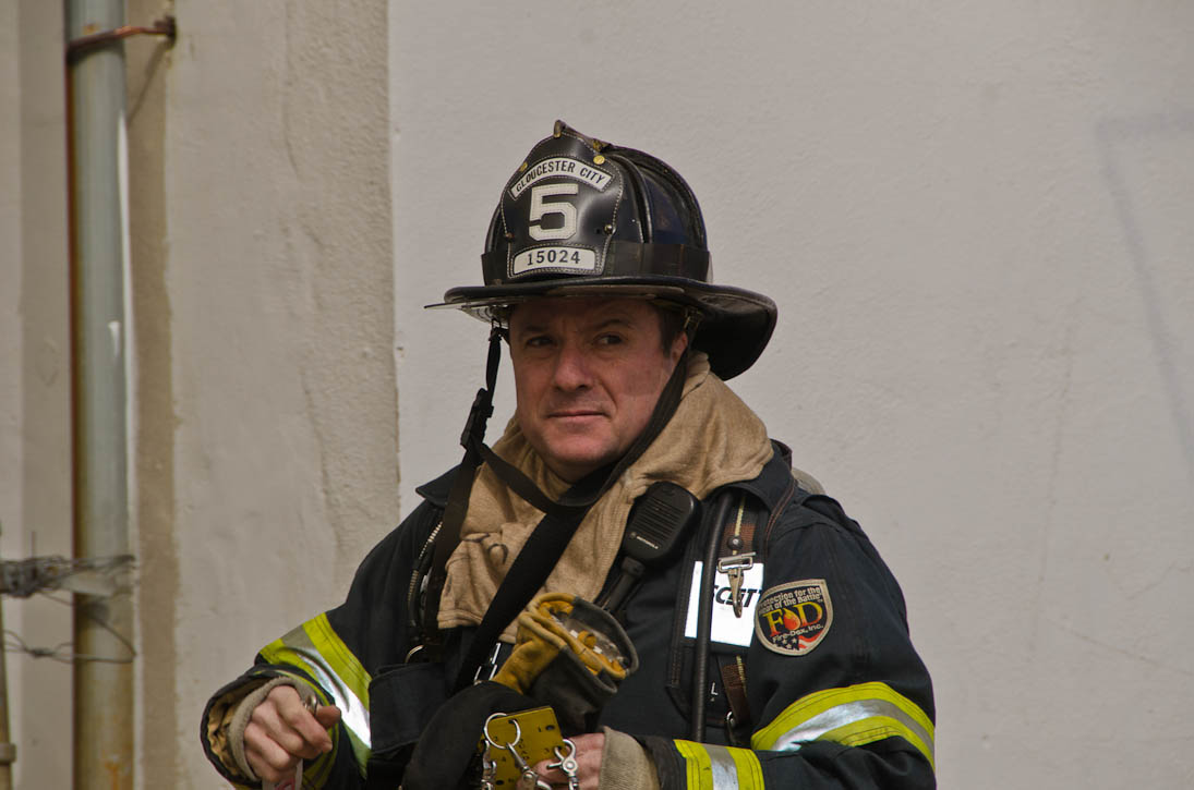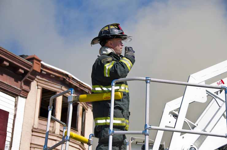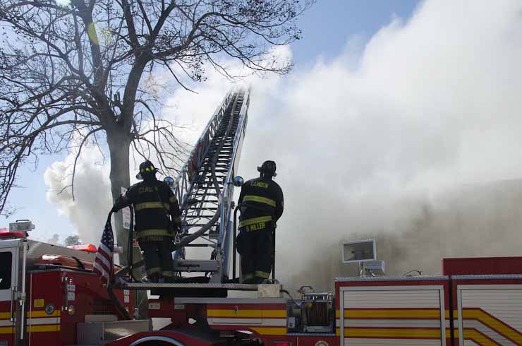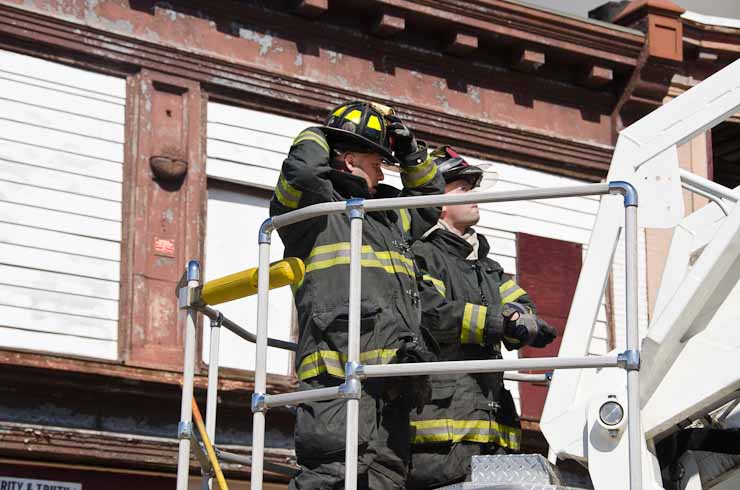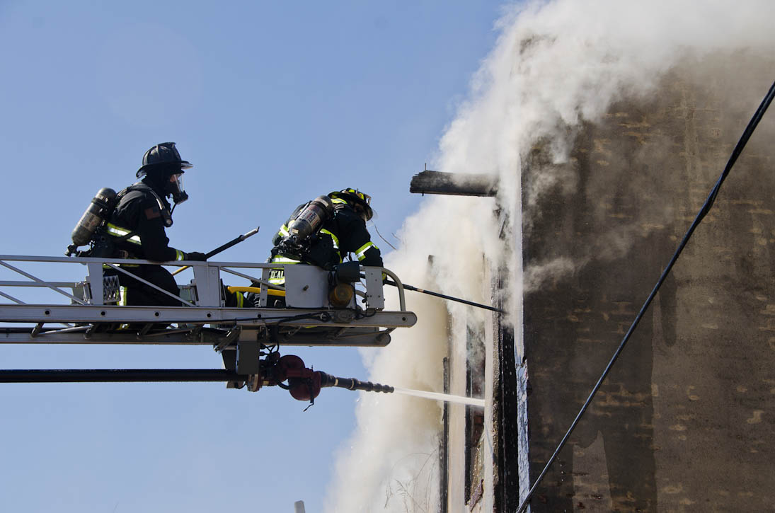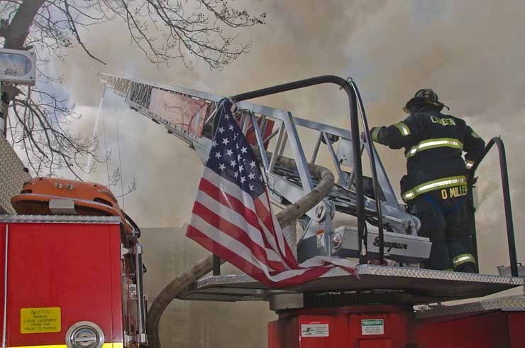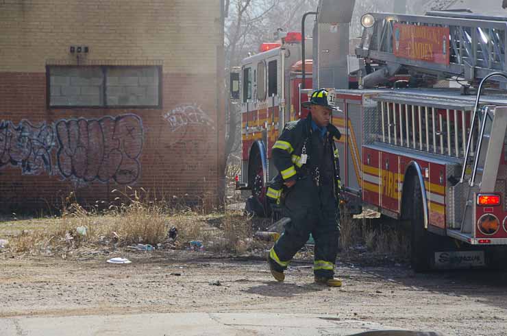 This page and the other pages in this series are the successors to the series of web-page about the Camden Fire Department that began with the page Camden Fire Department: The Fires of the Summer of 2011. On this and other pages in the series you will find pictures and information regarding different events and aspects of the fire service in Camden, New Jersey. At approximately 1:35 PM on March 6, 2012 a fire was reported in the abandoned building at 440-442 Kaighn Avenue, which until the mid-2000s had been the site of Henry Supply, a plumbing fixtures and supplies business which had been a fixture on Kaighn Avenue for decades. Long abandoned and used by squatters, addicts, and prostitutes, smoke and small fires had been reported at this location many times over the past few years, most reports turning out to be nothing of any consequence. This time would be different. Battalion reported heavy fire through the roof of the vacant building and requested the second alarm be struck. All companies were placed in service with master streams. Mutual Aid was rendered by Ladder 16 from Collingswood. Command reported water supply issues and special called two additional tower ladders and FAST company from Gloucester City. Command reported partial collapse of the roof and that there was difficulty getting water onto the fire due to the building's construction. Ladder 13-24 from Cherry Hill arrived and was placed in service in front of the building. With heavy fire coming through the roof, the building was soon a total loss. Crews performed defensive operations for several hours before clearing the scene. Ladder 13-24 was instrumental in pulling down the front wall of the building. The Camden County Fire Marshal, Camden City Fire Marshal, Camden Police Department, and numerous BLS units assisted at the scene. Besides the above mentioned departments, a company from Westmont also assisted at the scene All photos are presented in the order in which they were taken. There are so many images for this fire that I have split coverage of this fire into four parts, this being Page 1. There are links below to continue to Page 2, Page 3, and Page 4. As with the web page covering other Camden Fire Department events, if you can identify anyone that I've missed, please comment at the bottom of the page. (I'm terrible at at names and faces).. March 22, 2012 |