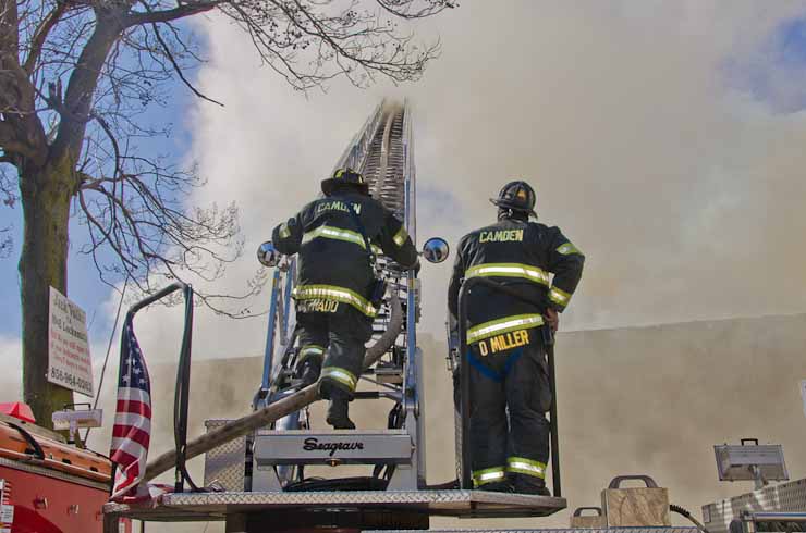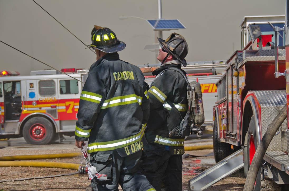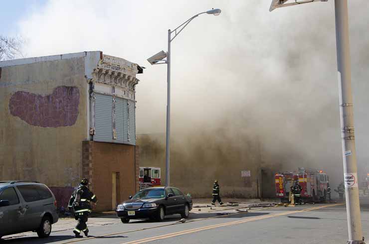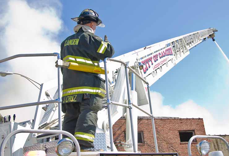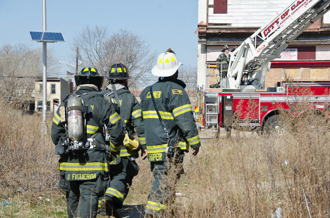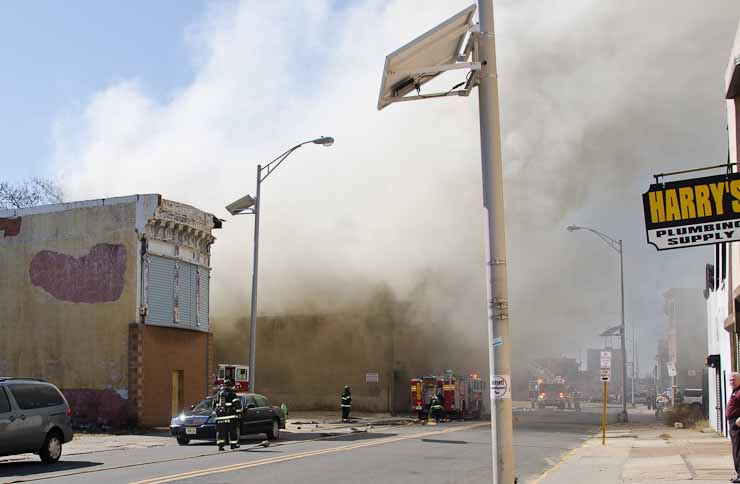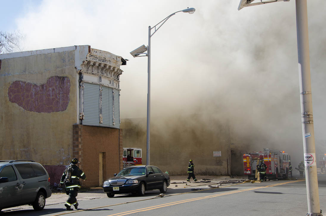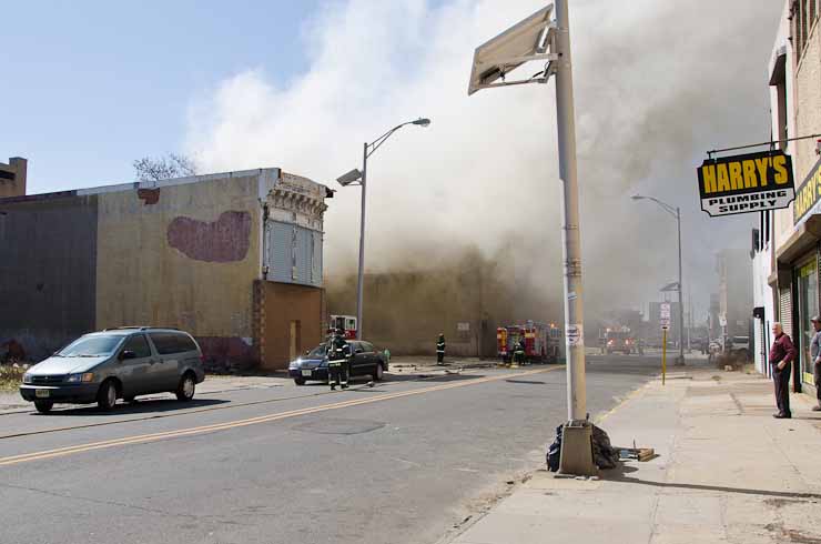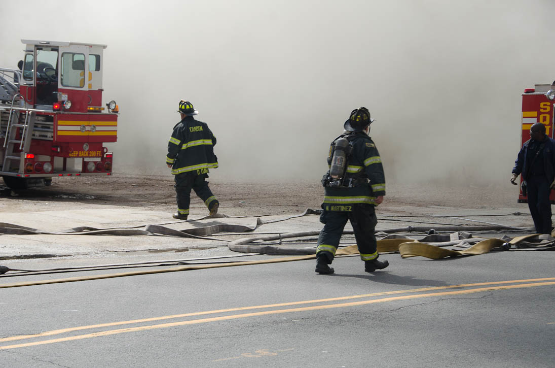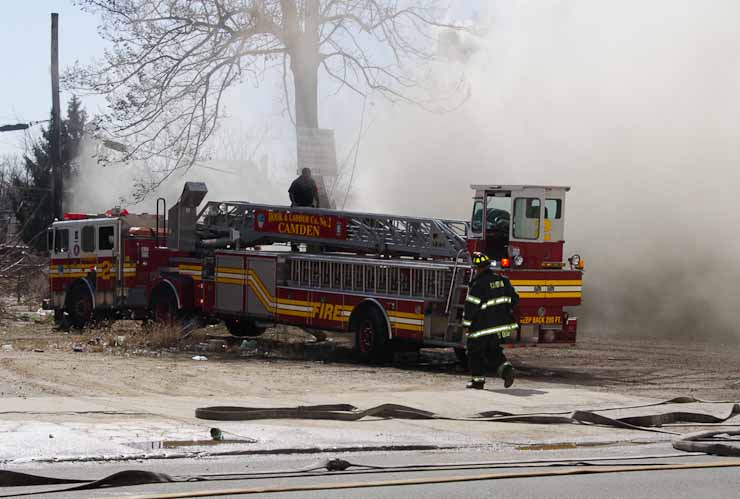several years ago. There used to be stores up and down here,” Williams said of the area at Kaighn and Broadway. “Now the whole row is gone.” However, the empty lots on either side of the old Henry’s Plumbing Supplies warehouse played to the advantage of firefighters Tuesday as they were able to set up apparatus on all sides of the burning building. Fires at abandoned homes and businesses have become a common problem for firefighters in the city. Last summer, a string of large warehouse fires sparked fear of an arsonist and ultimately prompted federal authorities to send in a team of arson investigators. A 12-alarm fire at the former Reliable Tire warehouse on June 9 destroyed the better part of two city blocks in the city’s Gateway section. Nearly 60 departments from across South Jersey responded to the scene. Within 36 hours of the first blaze, a similar fire destroyed the 130-year-old Howland Croft, Sons & Co. building on Broadway in Waterfront South. Ten days after the first fire, the vacant Concord Chemical Plant burned. Federal agents were called to the city after the third fire and determined the fire to have been arson. Arson has not been officially declared as the cause of the first two blazes. |