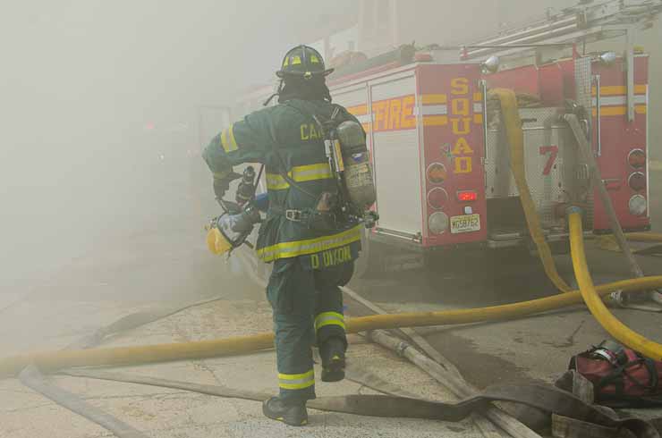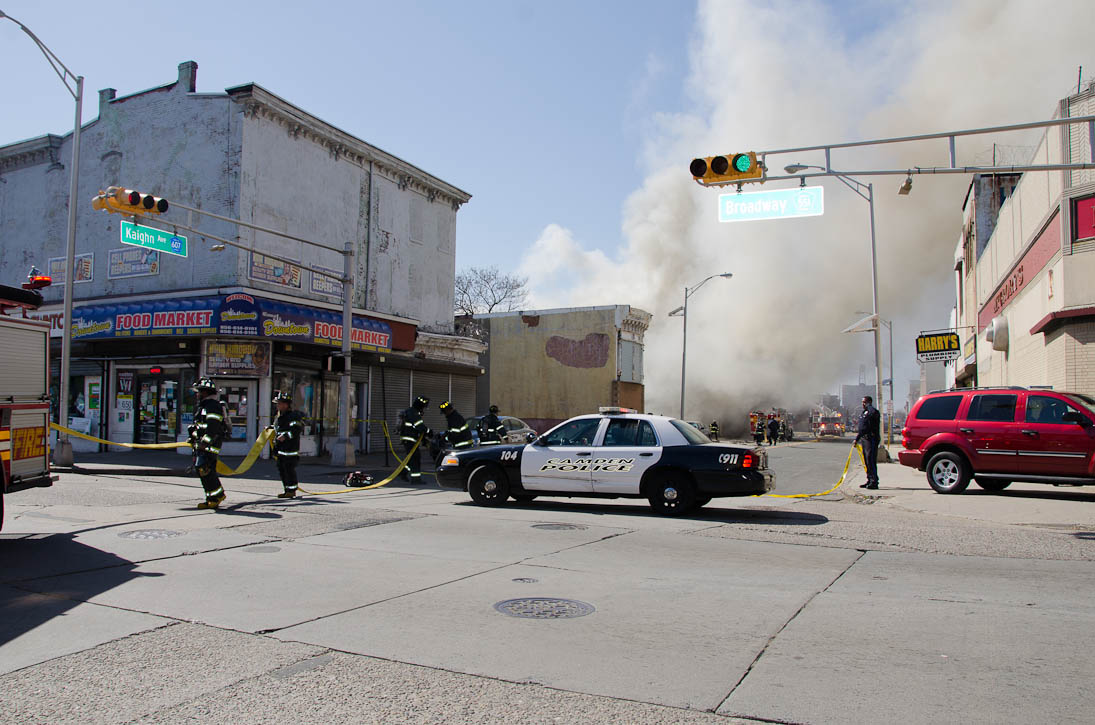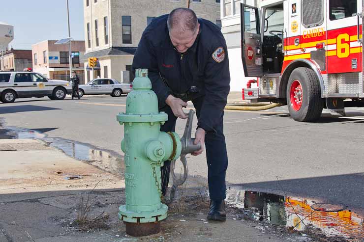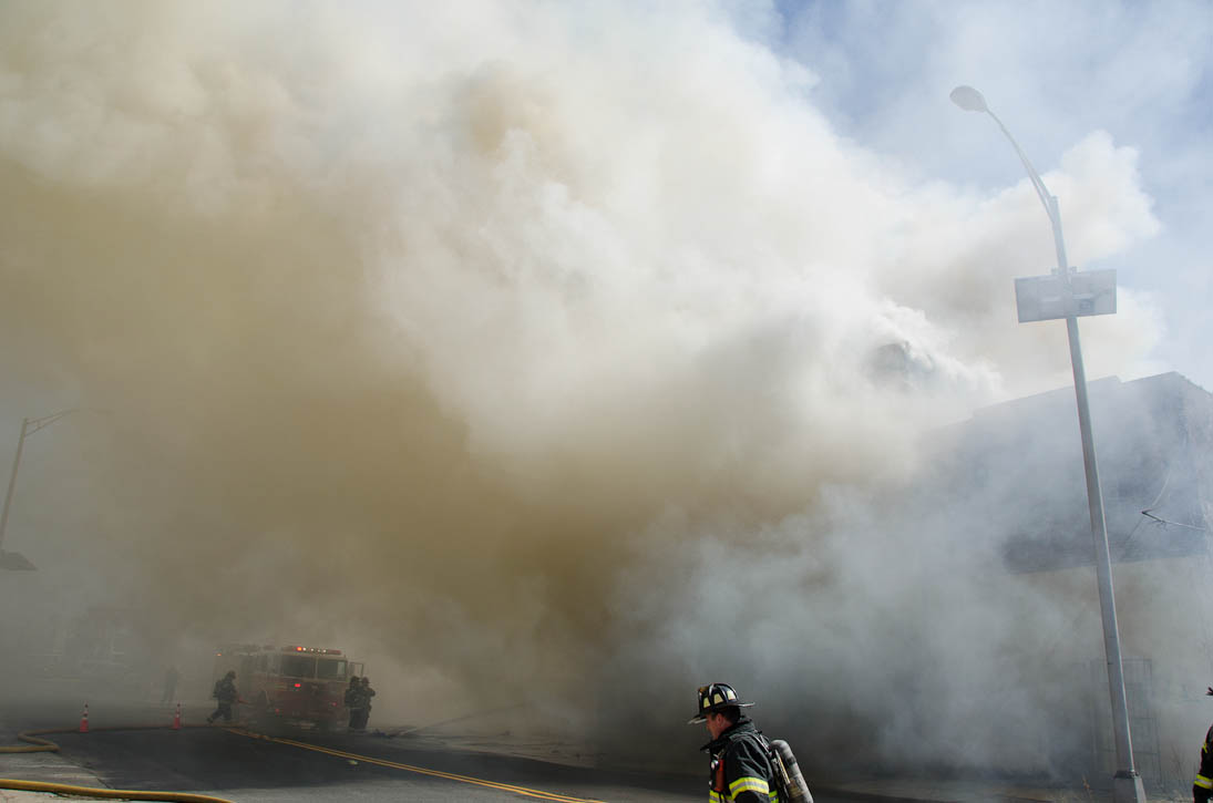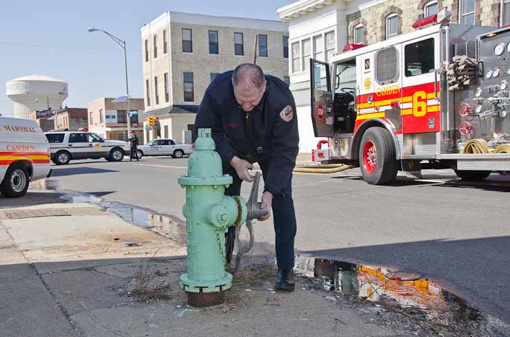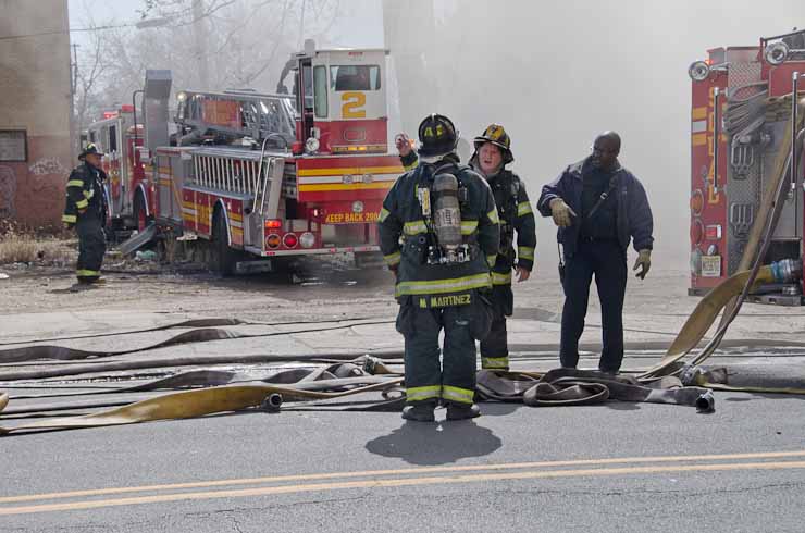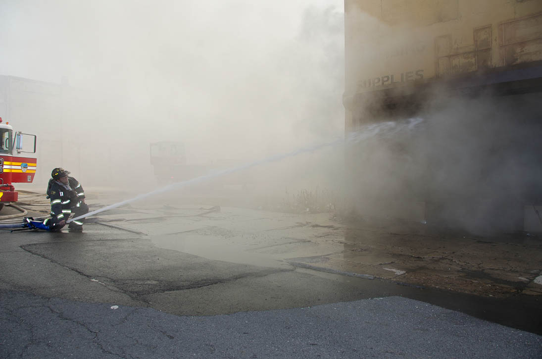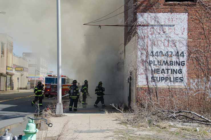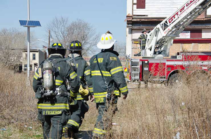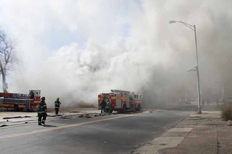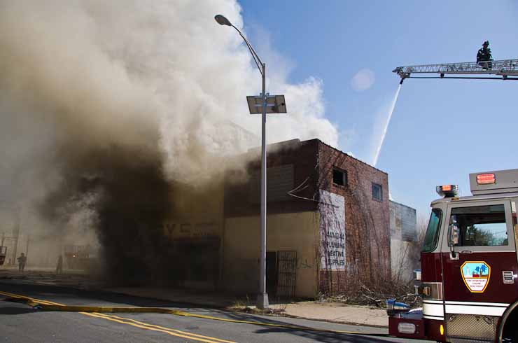 several years ago. There used to be stores up and down here,” Williams said of the area at Kaighn and Broadway. “Now the whole row is gone.” However, the empty lots on either side of the old Henry’s Plumbing Supplies warehouse played to the advantage of firefighters Tuesday as they were able to set up apparatus on all sides of the burning building. Fires at abandoned homes and businesses have become a common problem for firefighters in the city. Last summer, a string of large warehouse fires sparked fear of an arsonist and ultimately prompted federal authorities to send in a team of arson investigators. A 12-alarm fire at the former Reliable Tire warehouse on June 9 destroyed the better part of two city blocks in the city’s Gateway section. Nearly 60 departments from across South Jersey responded to the scene. Within 36 hours of the first blaze, a similar fire destroyed the 130-year-old Howland Croft, Sons & Co. building on Broadway in Waterfront South. Ten days after the first fire, the vacant Concord Chemical Plant burned. Federal agents were called to the city after the third fire and determined the fire to have been arson. Arson has not been officially declared as the cause of the first two blazes. |