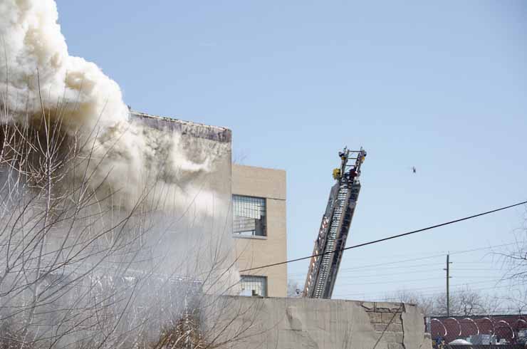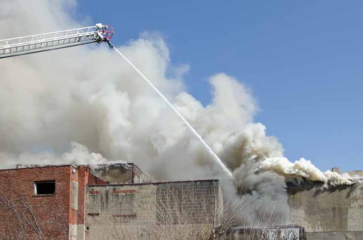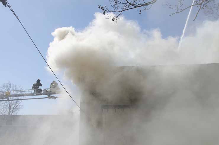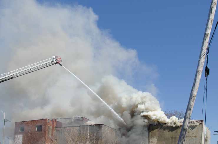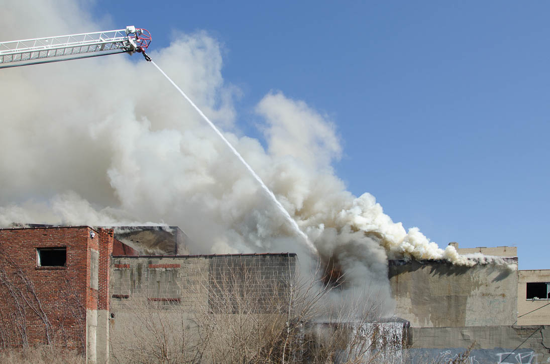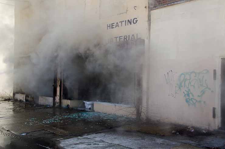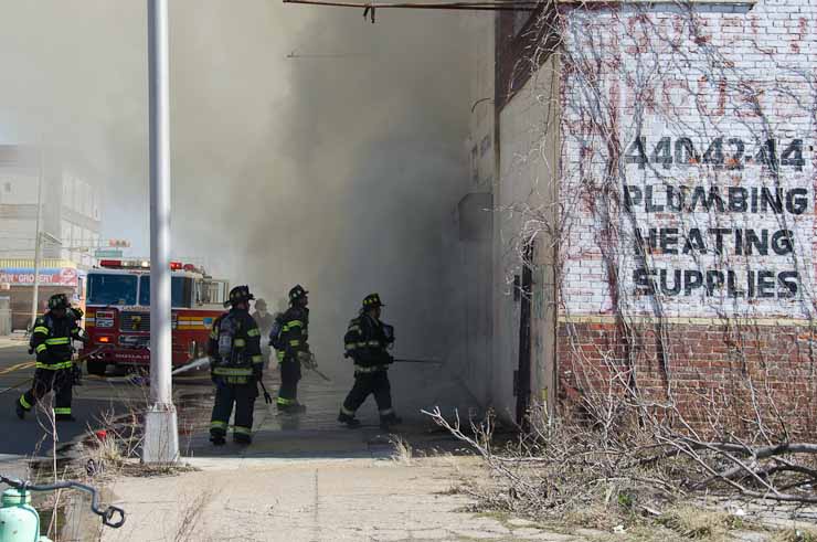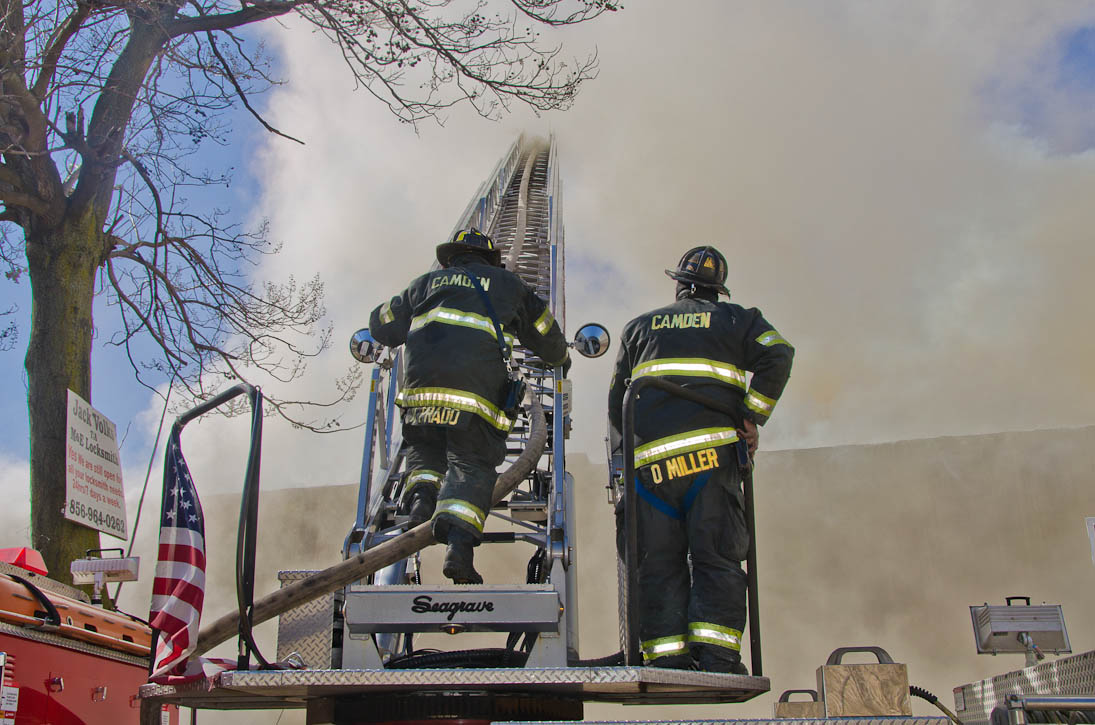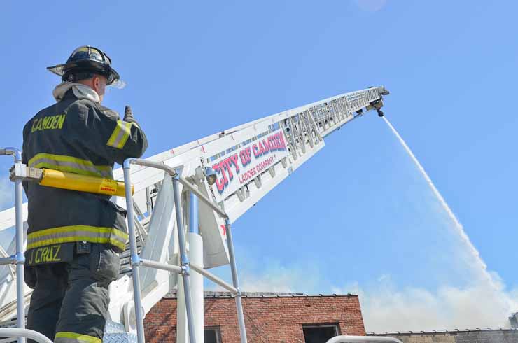 Fire guts abandoned warehouse in Camden Written by CAMDEN — A two-alarm fire ripped through an abandoned city warehouse Tuesday afternoon. The fire spewed flames through the collapsing roof of the long vacant Henry’s Plumbing Supplies warehouse along the 400 block of Kaighn Avenue, blocked traffic on the nearby Broadway corridor and filled surrounding neighborhoods with gray smoke. First reported around 1 p.m., firefighters from Camden, Gloucester City, Cherry Hill and Collingswood battled the blaze for more than an hour before the thick smoke that drew pockets of onlookers began to dissipate. No injuries were reported in the blaze, which remains under investigation, according to city fire officials. Nearby resident Belvin Williams said the plumbing supply store had been vacant for years and has been a target for scrappers. At another abandoned building a short distance from the plumbing supply store, scrappers have cut out sections of metal gates that once blocked access to the gutted building. Williams