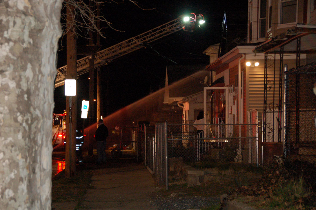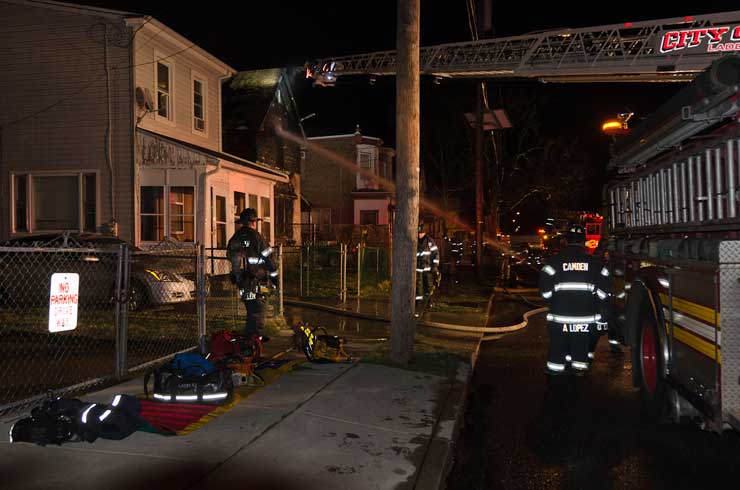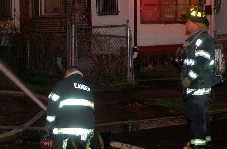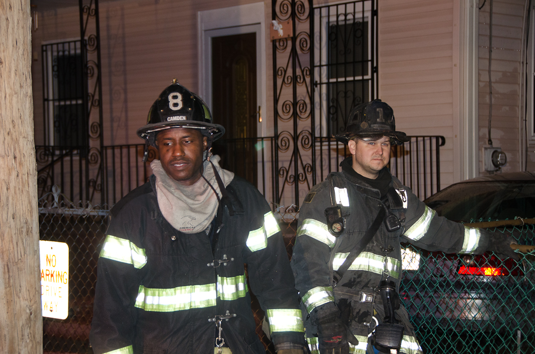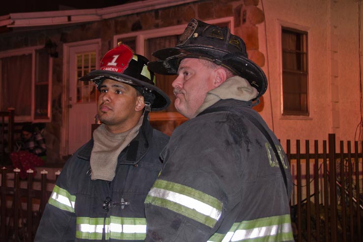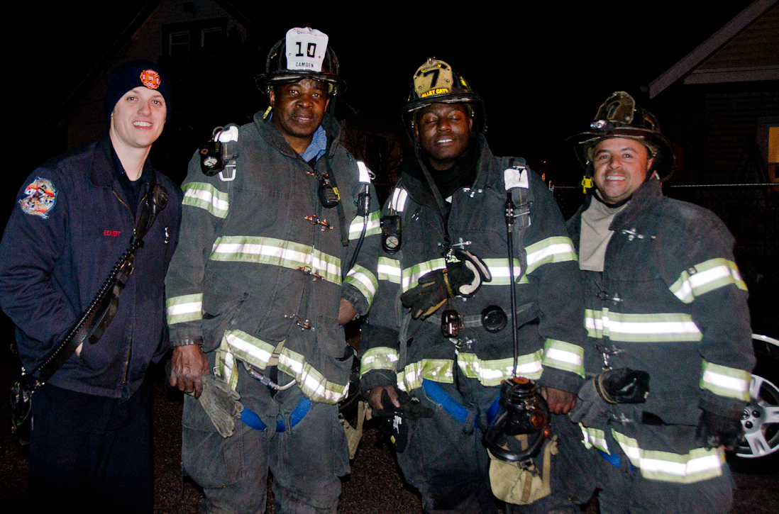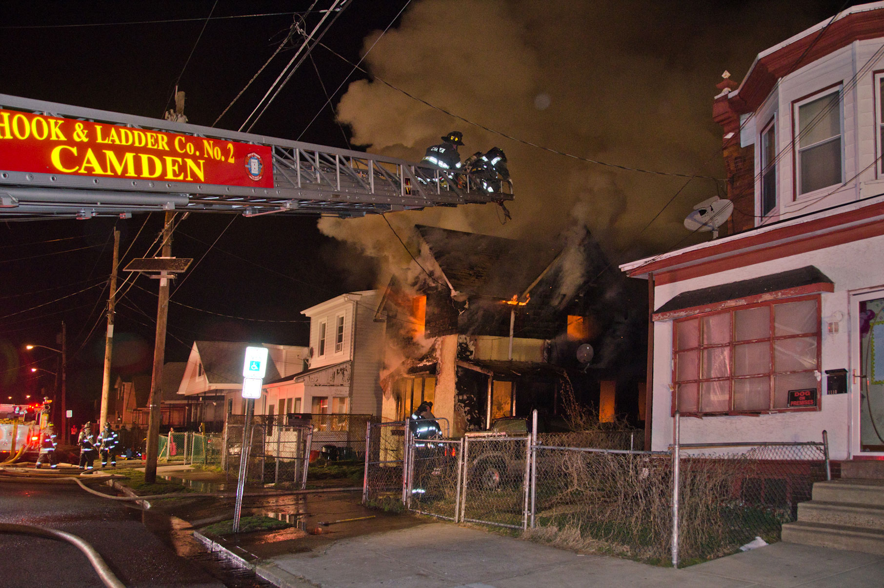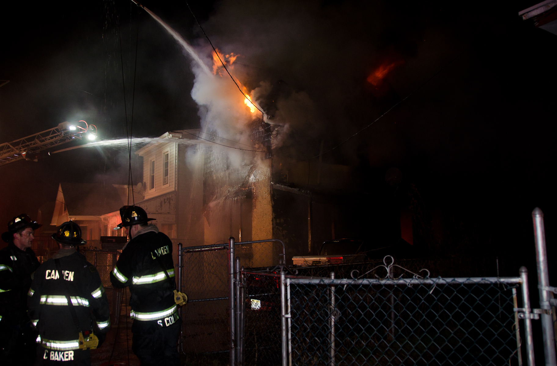 This page and the other pages in this series are the successors to the series of web-page about the Camden Fire Department that began with the page Camden Fire Department: The Fires of the Summer of 2011. On this and other pages in the series you will find pictures and information regarding different events and aspects of the fire service in Camden, New Jersey. At approximately 12:50 AM on the morning of March 12, 2012 a fire was reported at 1114 Lois Avenue in Camden's Cramer Hill section. Battalion 2 arrived on scene with heavy fire throughout a two-story single family dwelling, with exposure problems. All hands were placed all hands in service. Companies placed numerous lines in service with an exterior attack. The fire was confined to the dwelling, although adjacent properties did receive some smoke and water damage.. Four victims were transported to the hospital, fortunately, all were treated and released. Numerous special calls were made to the scene. At 1:08 AM command reported heavy fire conditions throughout the dwelling and exposures. An additional engine was requested to be sent to the scene to take a hydrant At 1:12 AM command reported for patients were being treated at that time. Engine 10 had arrived on scene to take up a hydrant, the nearest hydrant, however, was at River Avenue. At 1:43 AM command reported that with 4 pipes and lines in operation the fire was darkening down and was probable at that time. At 1:52 it was reported that the main bodies of fire had been knocked down. All searches had proven negative and the fire was placed under control. As with the web page covering other Camden Fire Department events, if you can identify anyone that I've missed, please comment at the bottom of the page. (I'm terrible at at names and faces).. March 23, 2012 P.S. I was sent five additional images from this fire… I'm pretty sure they came from someone who was working EMS that night, but for the life of me I can't find the e-mail that they came in, so I don't know who to credit here. The images are at the bottom of the page. I know I thanked the sender when I got them, well… THANKS AGAIN!!!! -