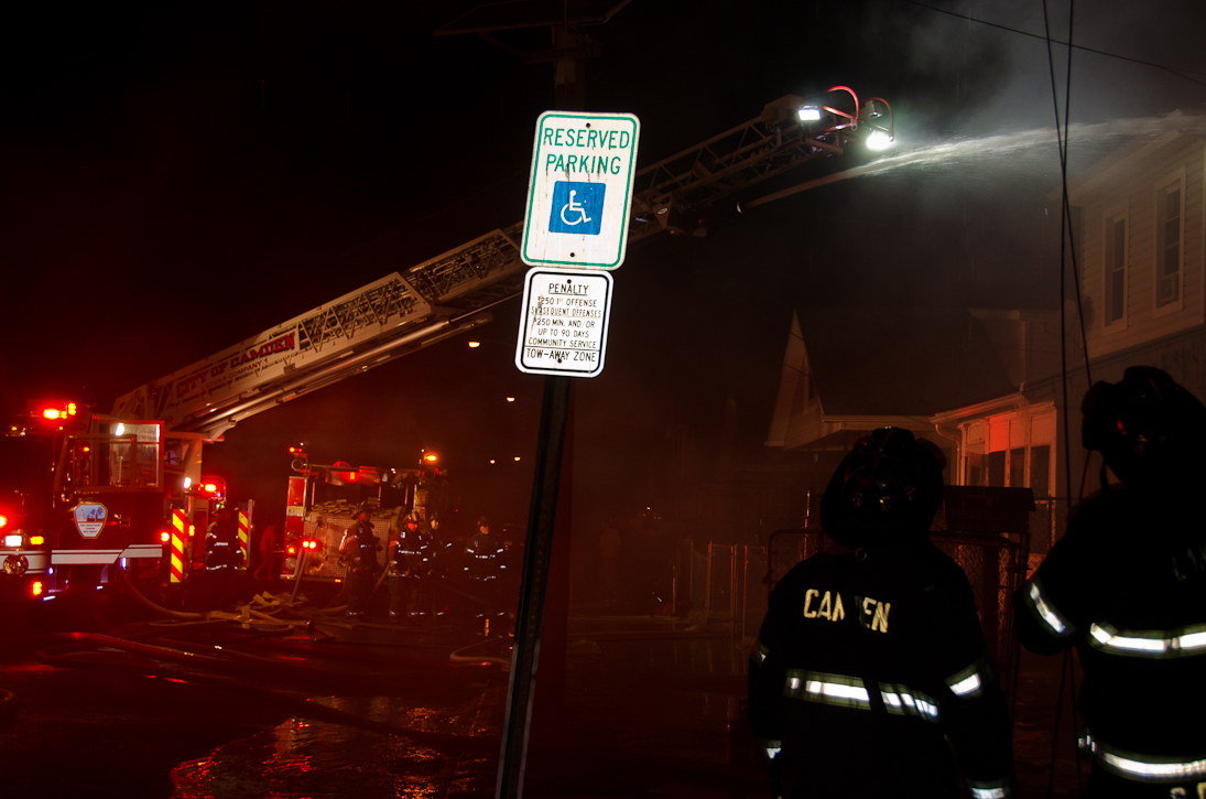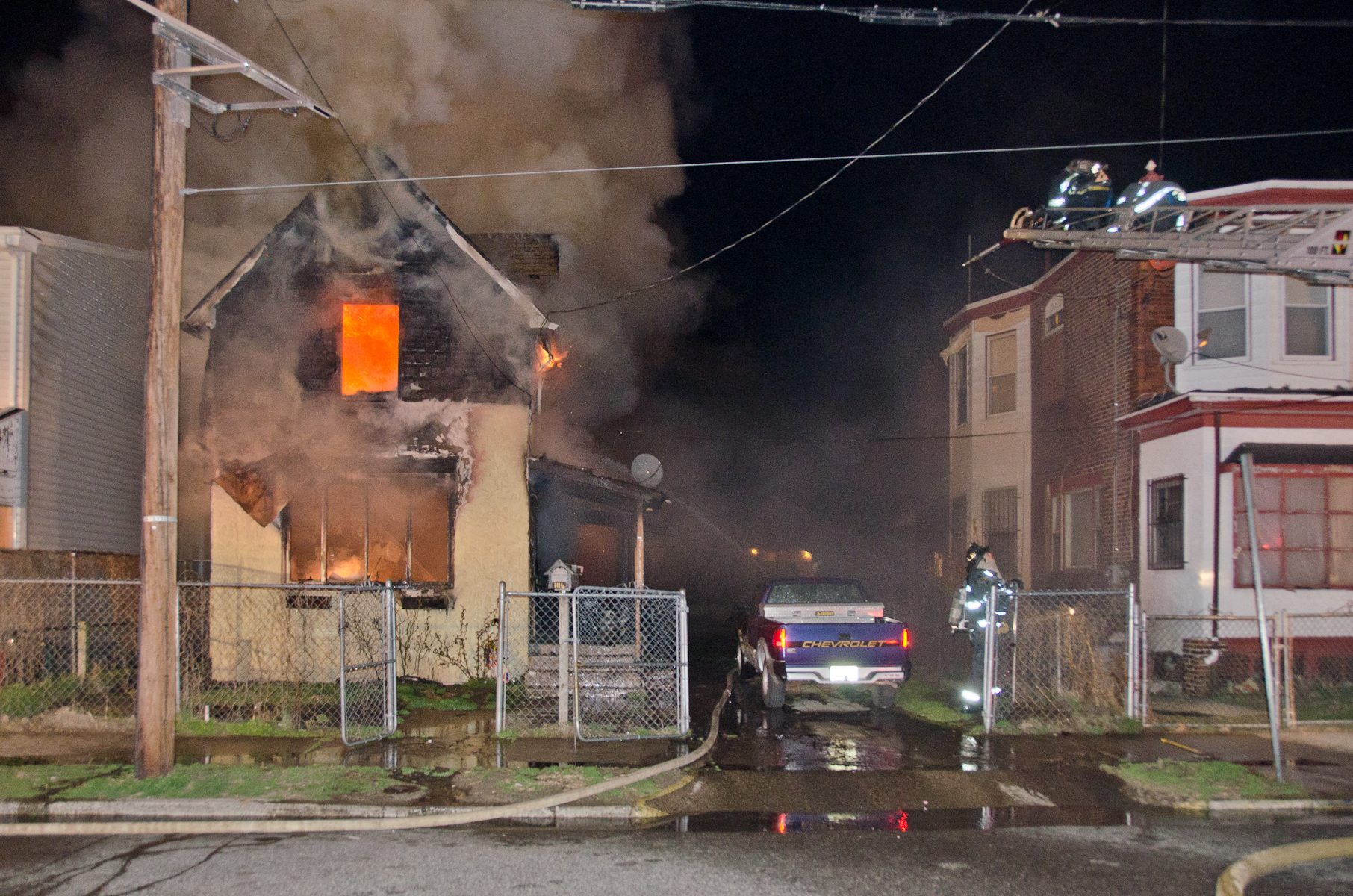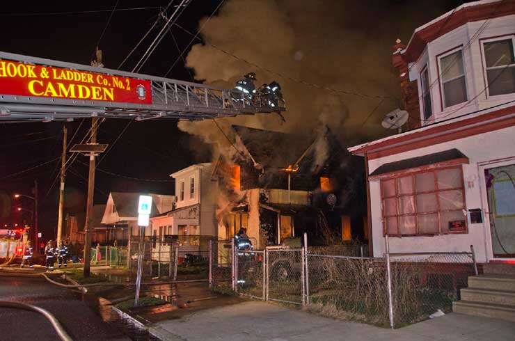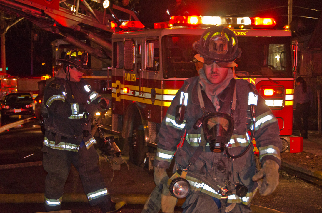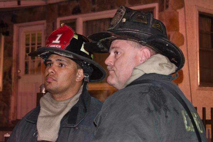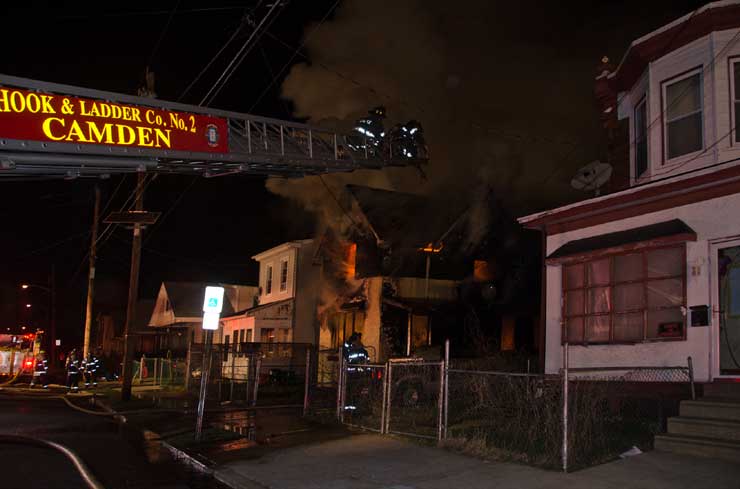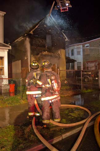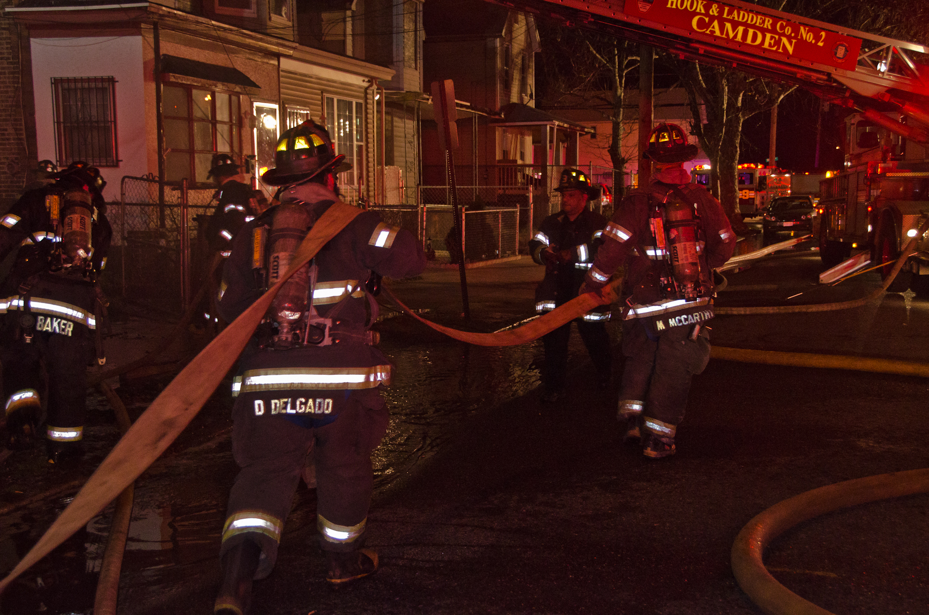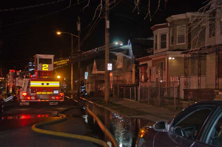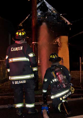 This page and the other pages in this series are the successors to the series of web-page about the Camden Fire Department that began with the page Camden Fire Department: The Fires of the Summer of 2011. On this and other pages in the series you will find pictures and information regarding different events and aspects of the fire service in Camden, New Jersey. At approximately 12:50 AM on the morning of March 12, 2012 a fire was reported at 1114 Lois Avenue in Camden's Cramer Hill section. Battalion 2 arrived on scene with heavy fire throughout a two-story single family dwelling, with exposure problems. All hands were placed all hands in service. Companies placed numerous lines in service with an exterior attack. The fire was confined to the dwelling, although adjacent properties did receive some smoke and water damage.. Four victims were transported to the hospital, fortunately, all were treated and released. Numerous special calls were made to the scene. At 1:08 AM command reported heavy fire conditions throughout the dwelling and exposures. An additional engine was requested to be sent to the scene to take a hydrant At 1:12 AM command reported for patients were being treated at that time. Engine 10 had arrived on scene to take up a hydrant, the nearest hydrant, however, was at River Avenue. At 1:43 AM command reported that with 4 pipes and lines in operation the fire was darkening down and was probable at that time. At 1:52 it was reported that the main bodies of fire had been knocked down. All searches had proven negative and the fire was placed under control. As with the web page covering other Camden Fire Department events, if you can identify anyone that I've missed, please comment at the bottom of the page. (I'm terrible at at names and faces).. March 23, 2012 P.S. I was sent five additional images from this fire… I'm pretty sure they came from someone who was working EMS that night, but for the life of me I can't find the e-mail that they came in, so I don't know who to credit here. The images are at the bottom of the page. I know I thanked the sender when I got them, well… THANKS AGAIN!!!! -