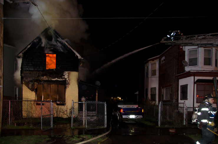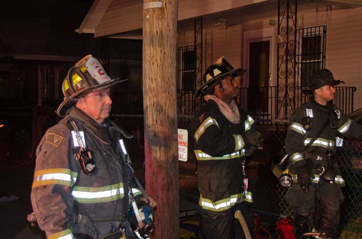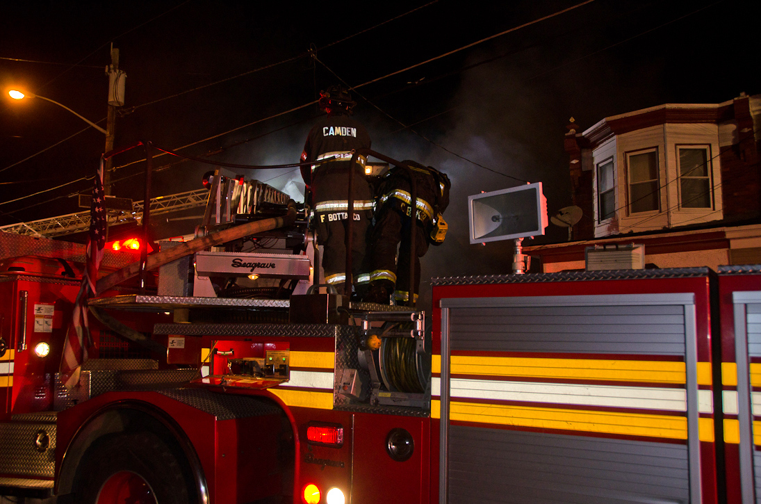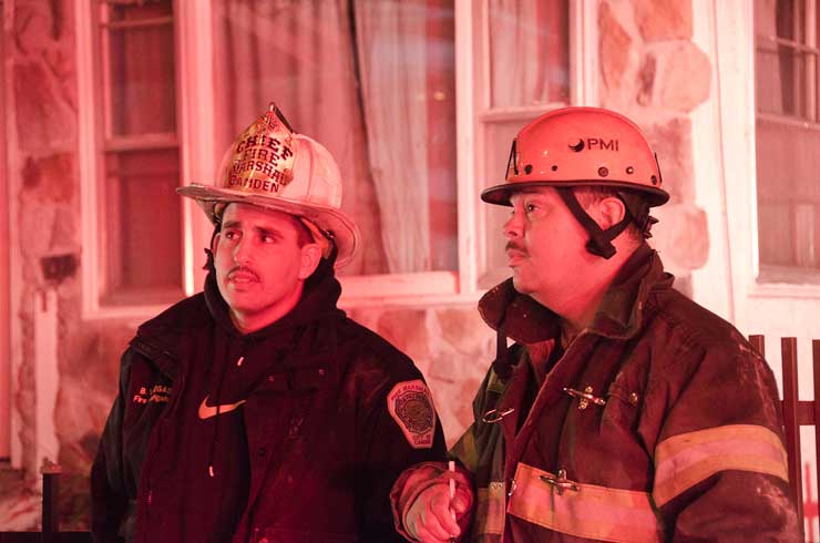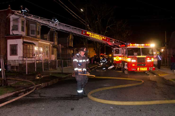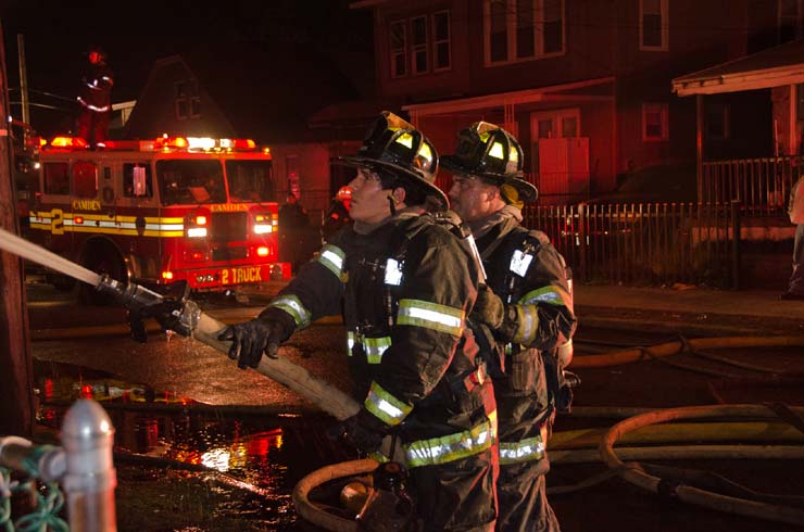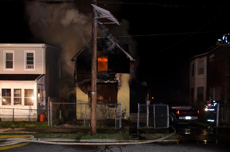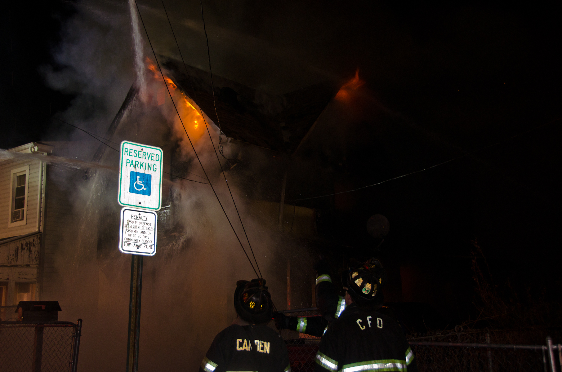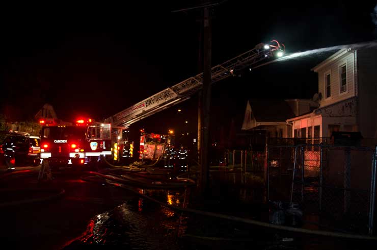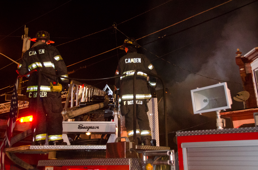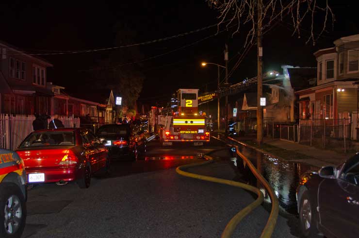 This page and the other pages in this series are the successors to the series of web-page about the Camden Fire Department that began with the page Camden Fire Department: The Fires of the Summer of 2011. On this and other pages in the series you will find pictures and information regarding different events and aspects of the fire service in Camden, New Jersey. At approximately 12:50 AM on the morning of March 12, 2012 a fire was reported at 1114 Lois Avenue in Camden's Cramer Hill section. Battalion 2 arrived on scene with heavy fire throughout a two-story single family dwelling, with exposure problems. All hands were placed all hands in service. Companies placed numerous lines in service with an exterior attack. The fire was confined to the dwelling, although adjacent properties did receive some smoke and water damage.. Four victims were transported to the hospital, fortunately, all were treated and released. Numerous special calls were made to the scene. At 1:08 AM command reported heavy fire conditions throughout the dwelling and exposures. An additional engine was requested to be sent to the scene to take a hydrant At 1:12 AM command reported for patients were being treated at that time. Engine 10 had arrived on scene to take up a hydrant, the nearest hydrant, however, was at River Avenue. At 1:43 AM command reported that with 4 pipes and lines in operation the fire was darkening down and was probable at that time. At 1:52 it was reported that the main bodies of fire had been knocked down. All searches had proven negative and the fire was placed under control. As with the web page covering other Camden Fire Department events, if you can identify anyone that I've missed, please comment at the bottom of the page. (I'm terrible at at names and faces).. March 23, 2012 P.S. I was sent five additional images from this fire… I'm pretty sure they came from someone who was working EMS that night, but for the life of me I can't find the e-mail that they came in, so I don't know who to credit here. The images are at the bottom of the page. I know I thanked the sender when I got them, well… THANKS AGAIN!!!! -