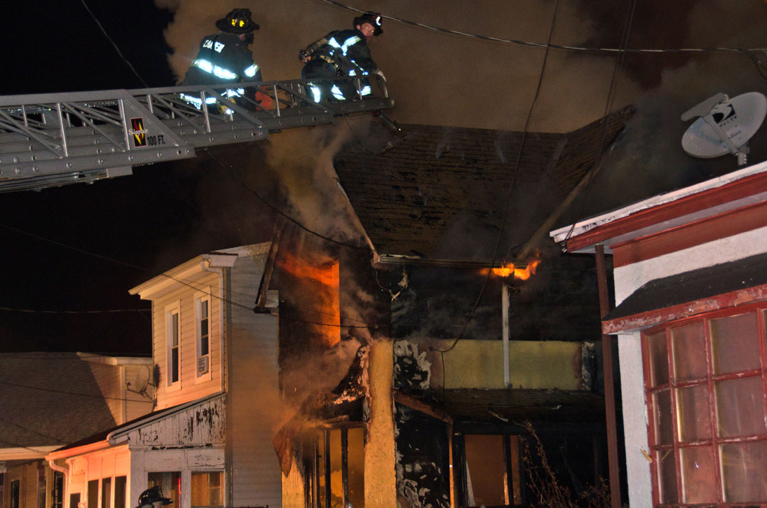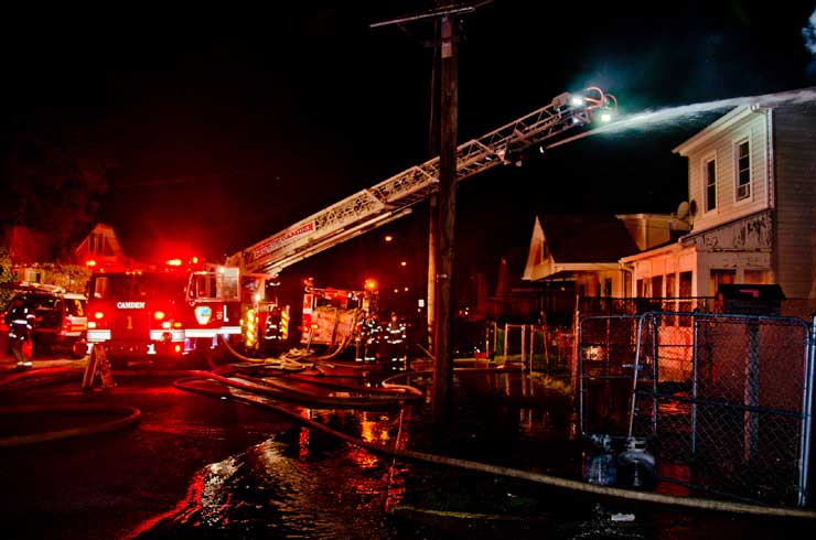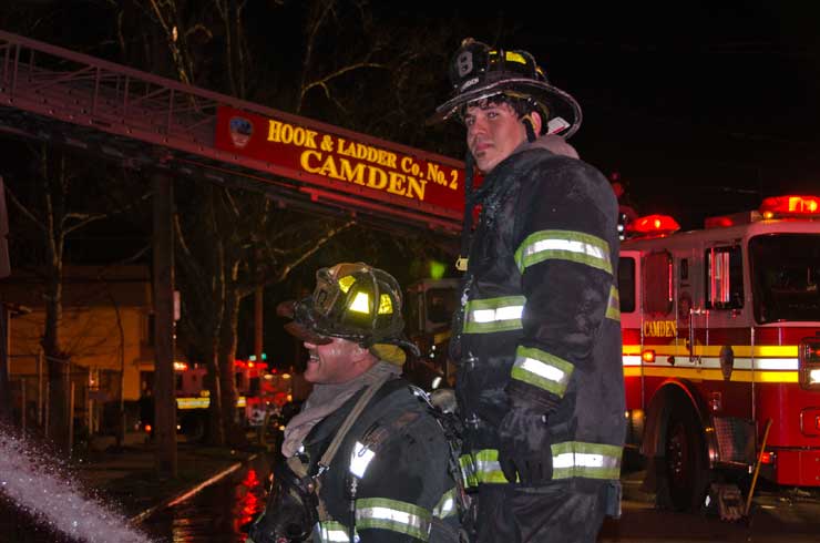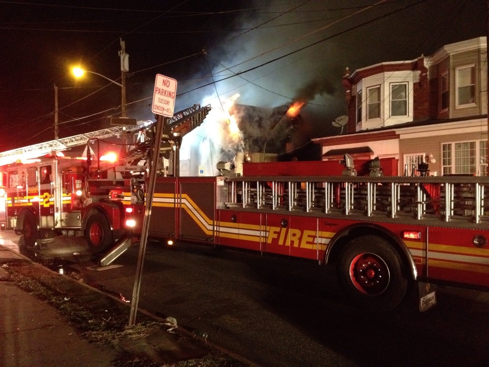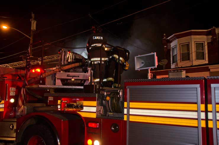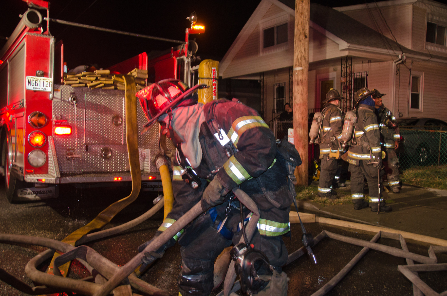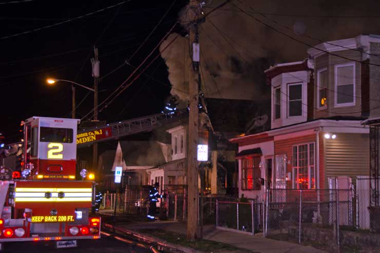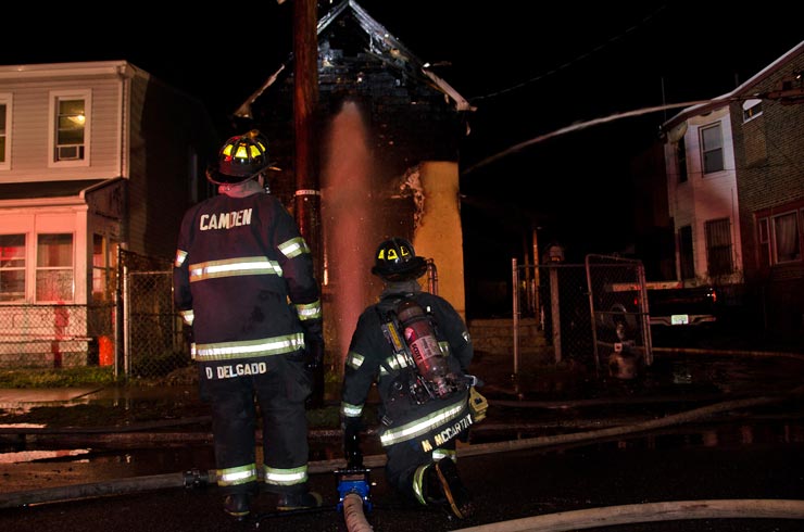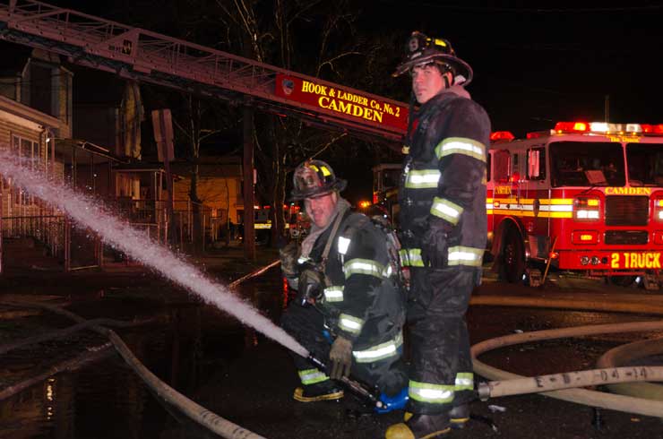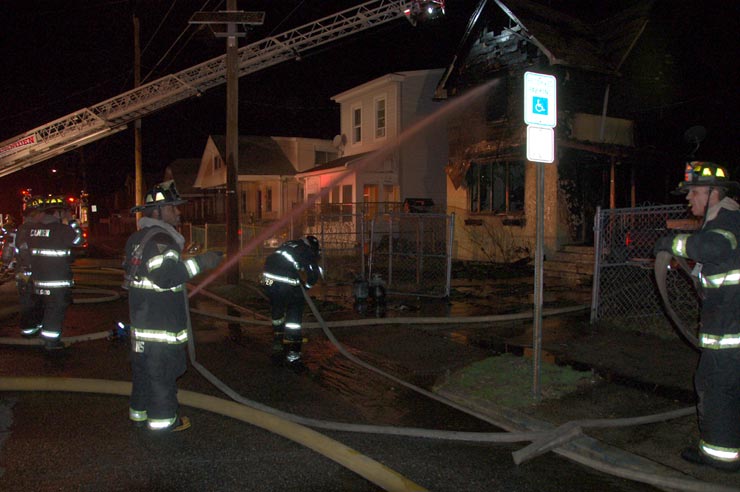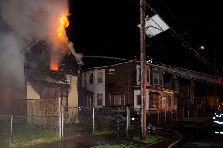 This page and the other pages in this series are the successors to the series of web-page about the Camden Fire Department that began with the page Camden Fire Department: The Fires of the Summer of 2011. On this and other pages in the series you will find pictures and information regarding different events and aspects of the fire service in Camden, New Jersey. At approximately 12:50 AM on the morning of March 12, 2012 a fire was reported at 1114 Lois Avenue in Camden's Cramer Hill section. Battalion 2 arrived on scene with heavy fire throughout a two-story single family dwelling, with exposure problems. All hands were placed all hands in service. Companies placed numerous lines in service with an exterior attack. The fire was confined to the dwelling, although adjacent properties did receive some smoke and water damage.. Four victims were transported to the hospital, fortunately, all were treated and released. Numerous special calls were made to the scene. At 1:08 AM command reported heavy fire conditions throughout the dwelling and exposures. An additional engine was requested to be sent to the scene to take a hydrant At 1:12 AM command reported for patients were being treated at that time. Engine 10 had arrived on scene to take up a hydrant, the nearest hydrant, however, was at River Avenue. At 1:43 AM command reported that with 4 pipes and lines in operation the fire was darkening down and was probable at that time. At 1:52 it was reported that the main bodies of fire had been knocked down. All searches had proven negative and the fire was placed under control. As with the web page covering other Camden Fire Department events, if you can identify anyone that I've missed, please comment at the bottom of the page. (I'm terrible at at names and faces).. March 23, 2012 P.S. I was sent five additional images from this fire… I'm pretty sure they came from someone who was working EMS that night, but for the life of me I can't find the e-mail that they came in, so I don't know who to credit here. The images are at the bottom of the page. I know I thanked the sender when I got them, well… THANKS AGAIN!!!! -