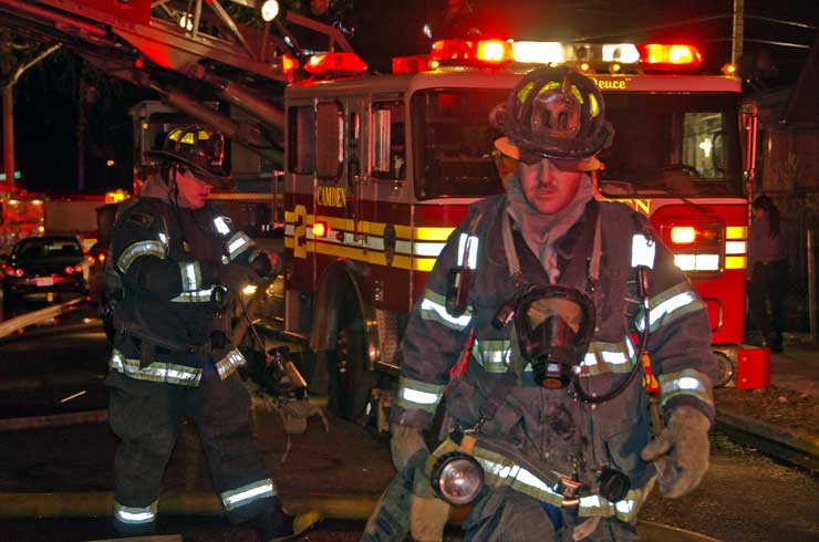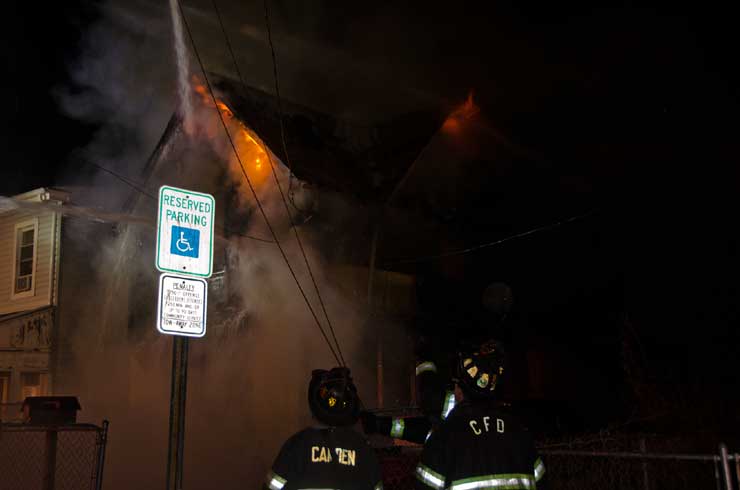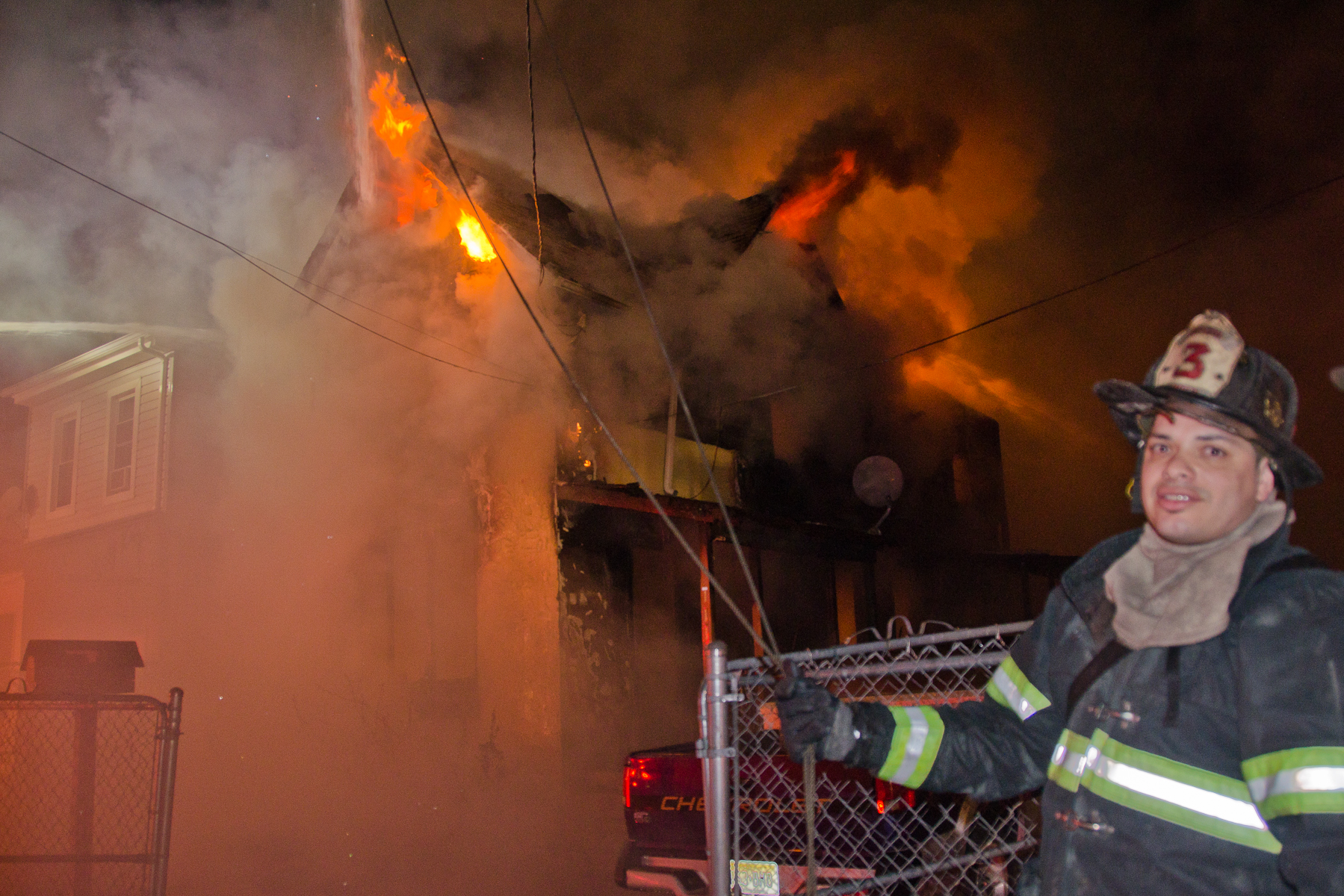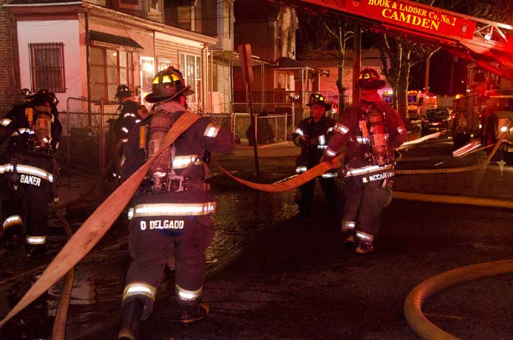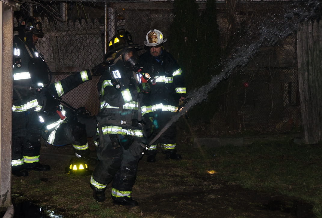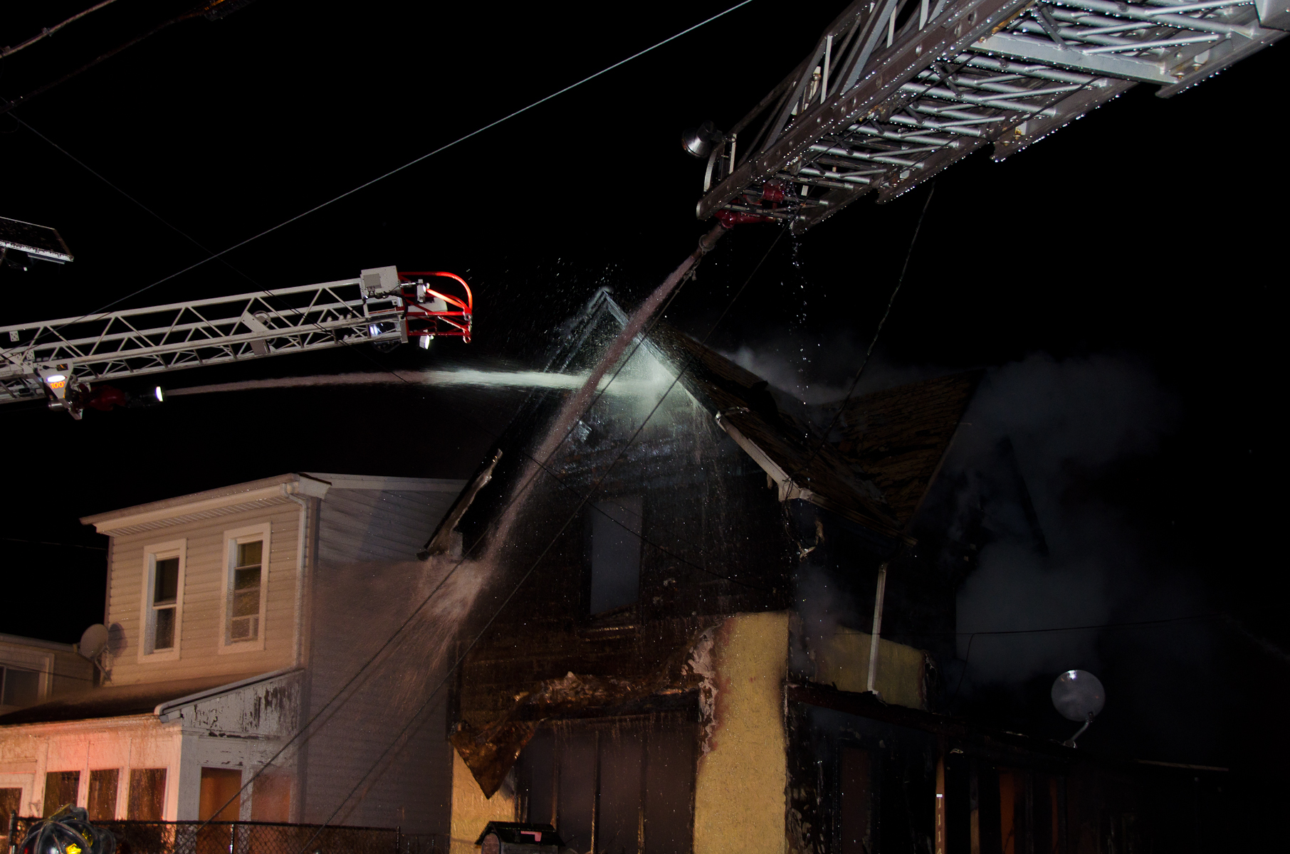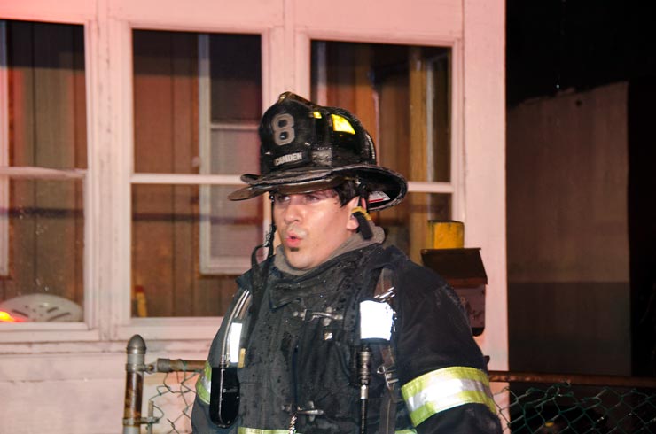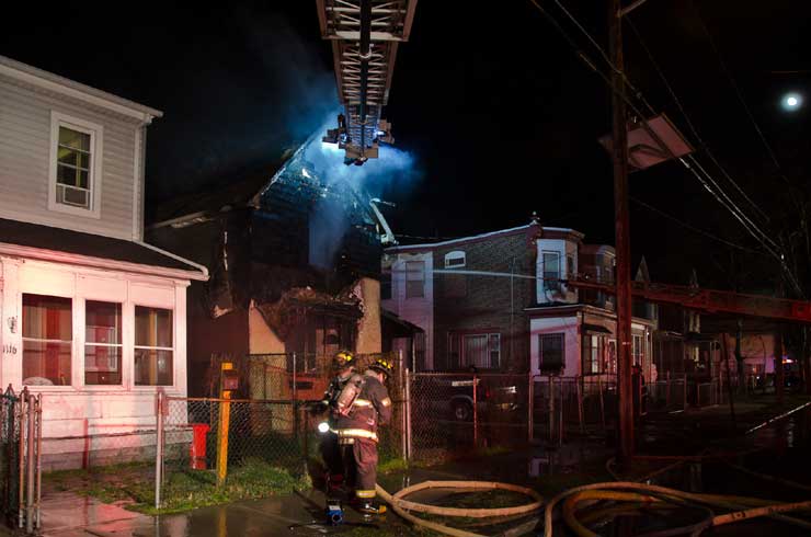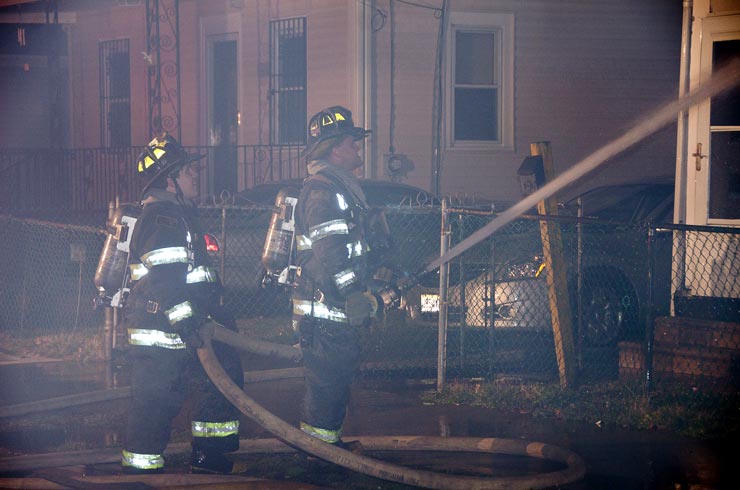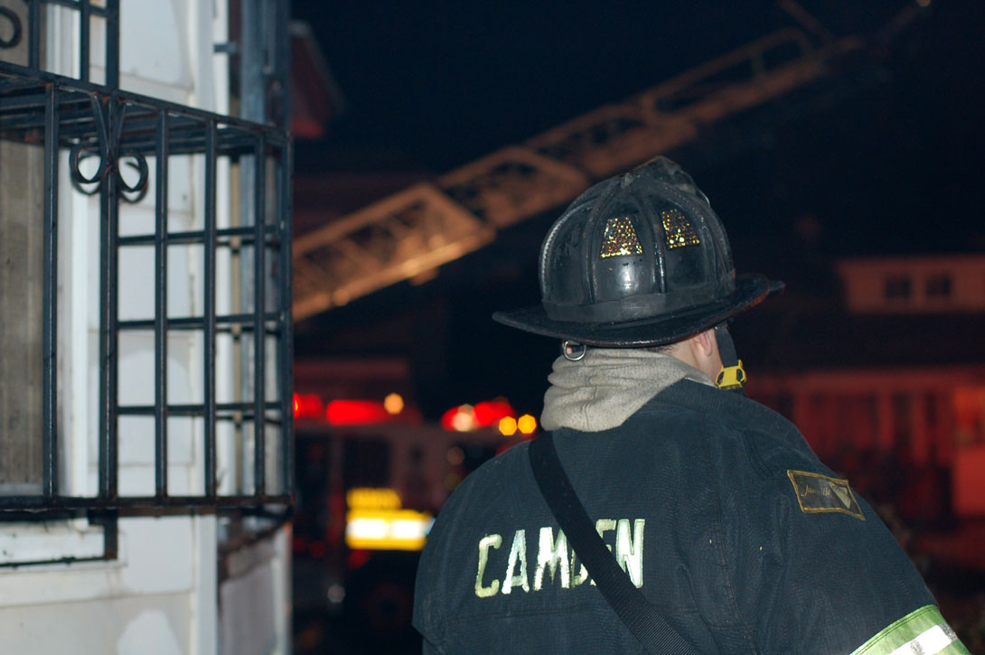 This page and the other pages in this series are the successors to the series of web-page about the Camden Fire Department that began with the page Camden Fire Department: The Fires of the Summer of 2011. On this and other pages in the series you will find pictures and information regarding different events and aspects of the fire service in Camden, New Jersey. At approximately 12:50 AM on the morning of March 12, 2012 a fire was reported at 1114 Lois Avenue in Camden's Cramer Hill section. Battalion 2 arrived on scene with heavy fire throughout a two-story single family dwelling, with exposure problems. All hands were placed all hands in service. Companies placed numerous lines in service with an exterior attack. The fire was confined to the dwelling, although adjacent properties did receive some smoke and water damage.. Four victims were transported to the hospital, fortunately, all were treated and released. Numerous special calls were made to the scene. At 1:08 AM command reported heavy fire conditions throughout the dwelling and exposures. An additional engine was requested to be sent to the scene to take a hydrant At 1:12 AM command reported for patients were being treated at that time. Engine 10 had arrived on scene to take up a hydrant, the nearest hydrant, however, was at River Avenue. At 1:43 AM command reported that with 4 pipes and lines in operation the fire was darkening down and was probable at that time. At 1:52 it was reported that the main bodies of fire had been knocked down. All searches had proven negative and the fire was placed under control. As with the web page covering other Camden Fire Department events, if you can identify anyone that I've missed, please comment at the bottom of the page. (I'm terrible at at names and faces).. March 23, 2012 P.S. I was sent five additional images from this fire… I'm pretty sure they came from someone who was working EMS that night, but for the life of me I can't find the e-mail that they came in, so I don't know who to credit here. The images are at the bottom of the page. I know I thanked the sender when I got them, well… THANKS AGAIN!!!! -