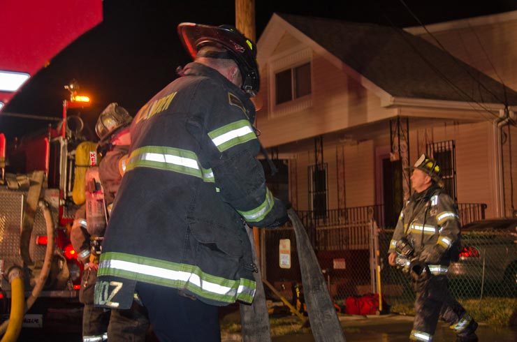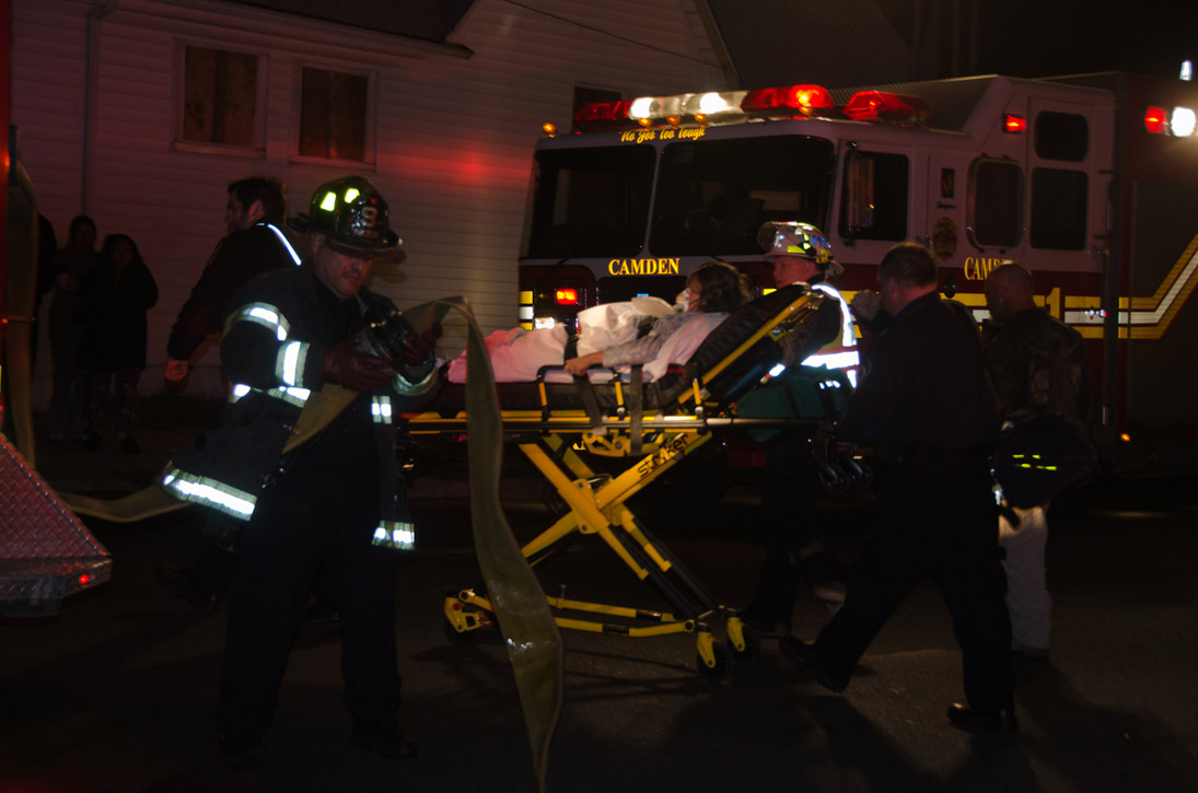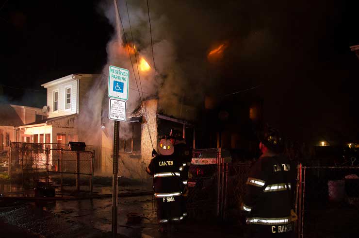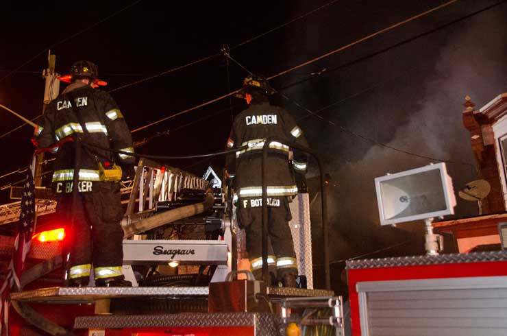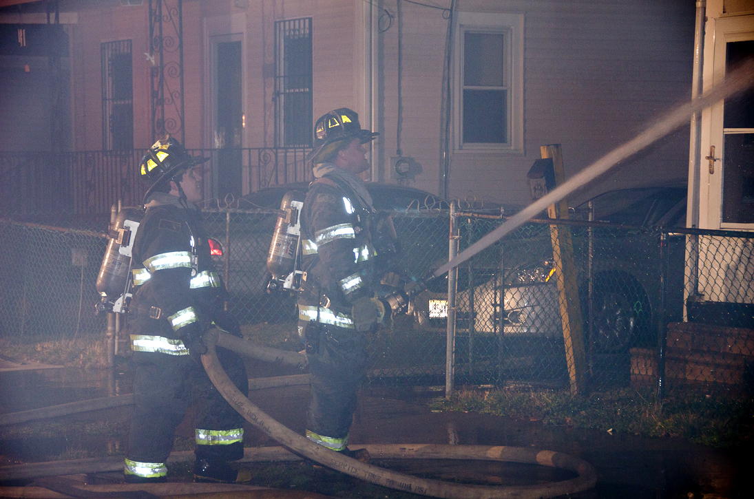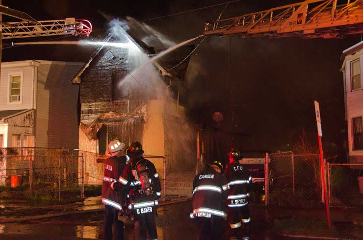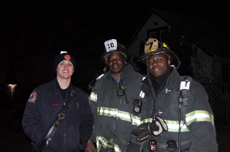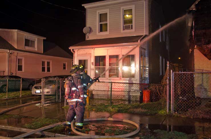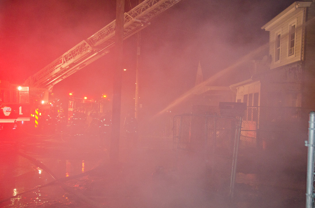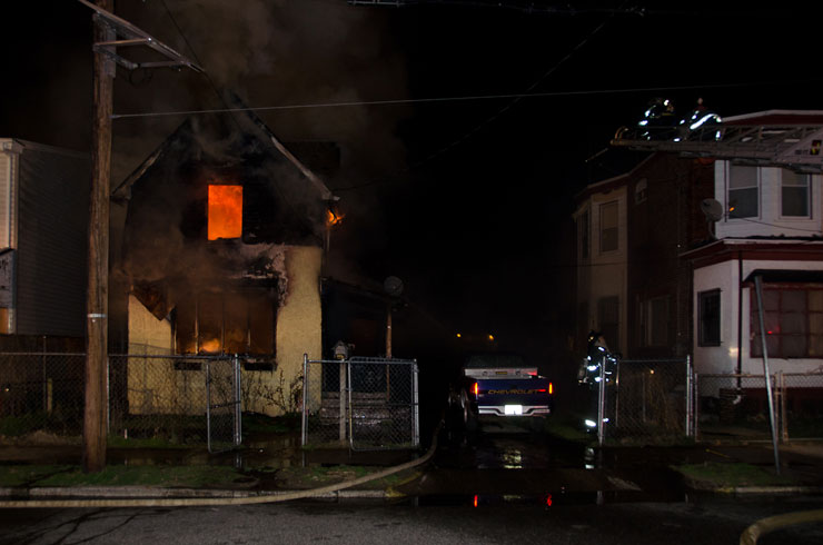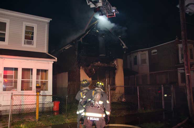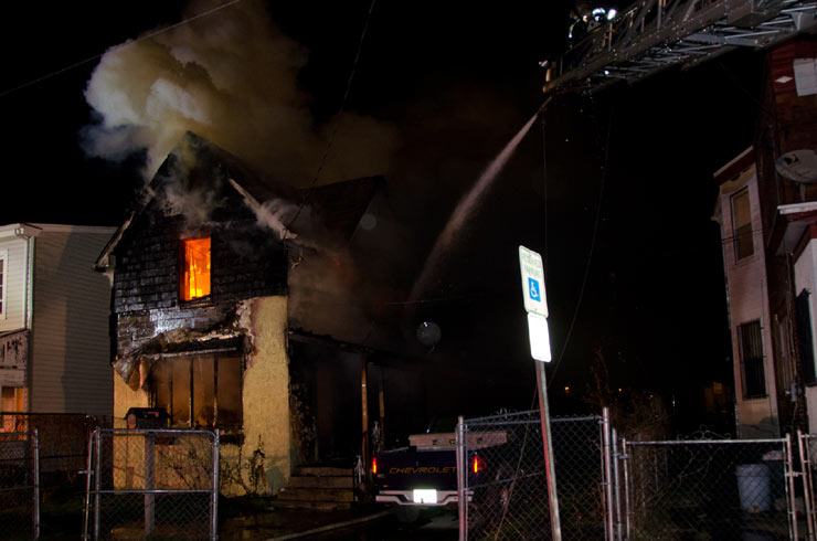 This page and the other pages in this series are the successors to the series of web-page about the Camden Fire Department that began with the page Camden Fire Department: The Fires of the Summer of 2011. On this and other pages in the series you will find pictures and information regarding different events and aspects of the fire service in Camden, New Jersey. At approximately 12:50 AM on the morning of March 12, 2012 a fire was reported at 1114 Lois Avenue in Camden's Cramer Hill section. Battalion 2 arrived on scene with heavy fire throughout a two-story single family dwelling, with exposure problems. All hands were placed all hands in service. Companies placed numerous lines in service with an exterior attack. The fire was confined to the dwelling, although adjacent properties did receive some smoke and water damage.. Four victims were transported to the hospital, fortunately, all were treated and released. Numerous special calls were made to the scene. At 1:08 AM command reported heavy fire conditions throughout the dwelling and exposures. An additional engine was requested to be sent to the scene to take a hydrant At 1:12 AM command reported for patients were being treated at that time. Engine 10 had arrived on scene to take up a hydrant, the nearest hydrant, however, was at River Avenue. At 1:43 AM command reported that with 4 pipes and lines in operation the fire was darkening down and was probable at that time. At 1:52 it was reported that the main bodies of fire had been knocked down. All searches had proven negative and the fire was placed under control. As with the web page covering other Camden Fire Department events, if you can identify anyone that I've missed, please comment at the bottom of the page. (I'm terrible at at names and faces).. March 23, 2012 P.S. I was sent five additional images from this fire… I'm pretty sure they came from someone who was working EMS that night, but for the life of me I can't find the e-mail that they came in, so I don't know who to credit here. The images are at the bottom of the page. I know I thanked the sender when I got them, well… THANKS AGAIN!!!! -