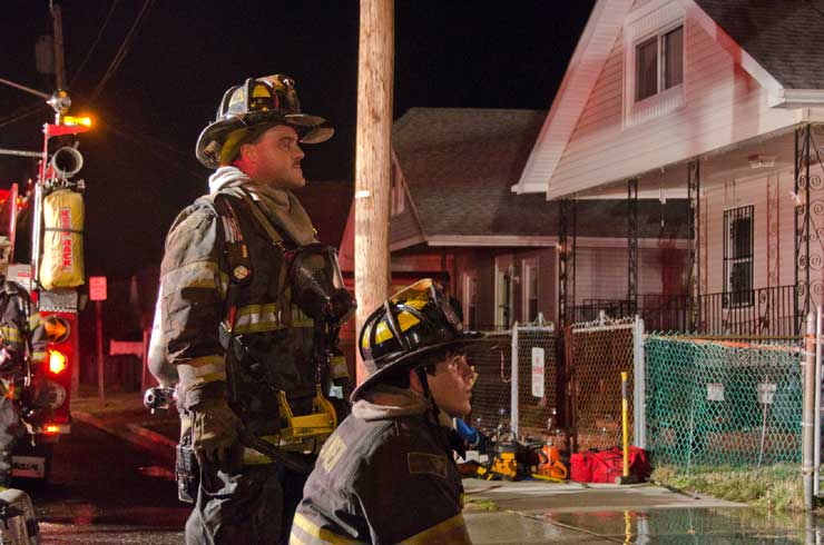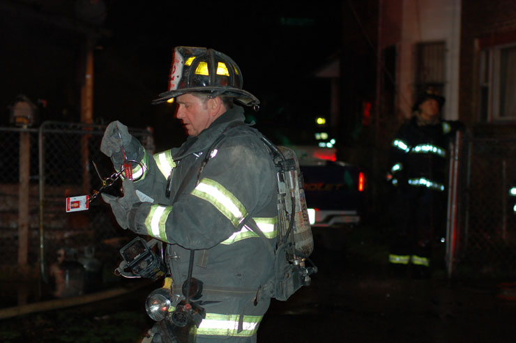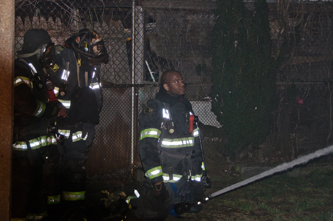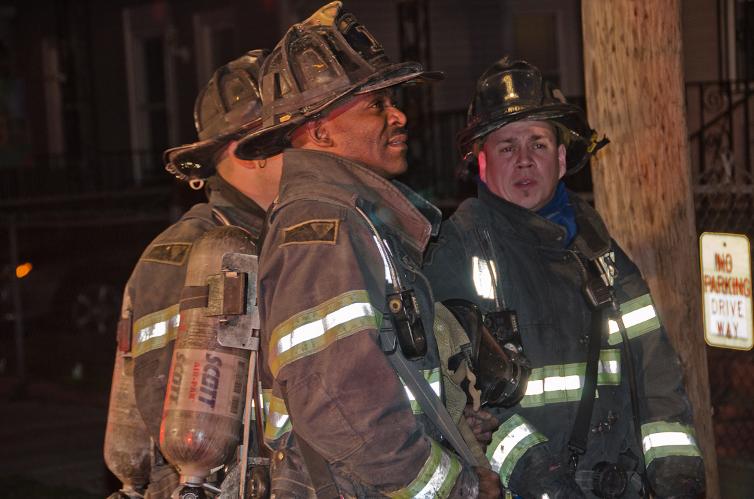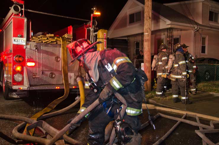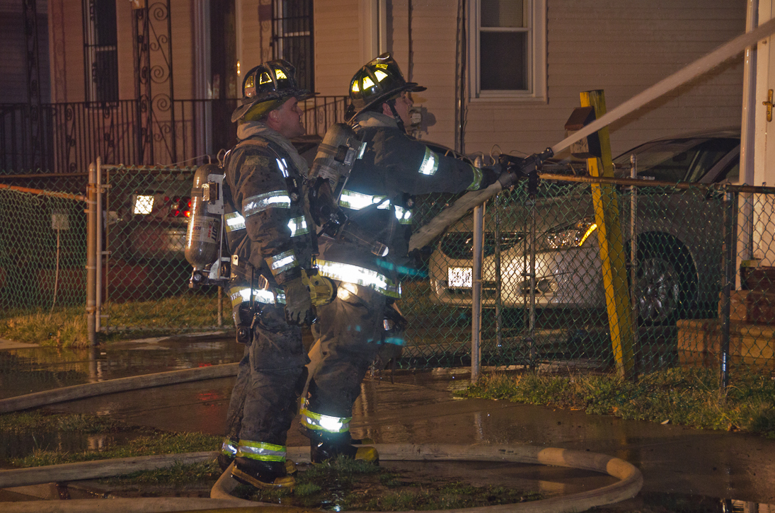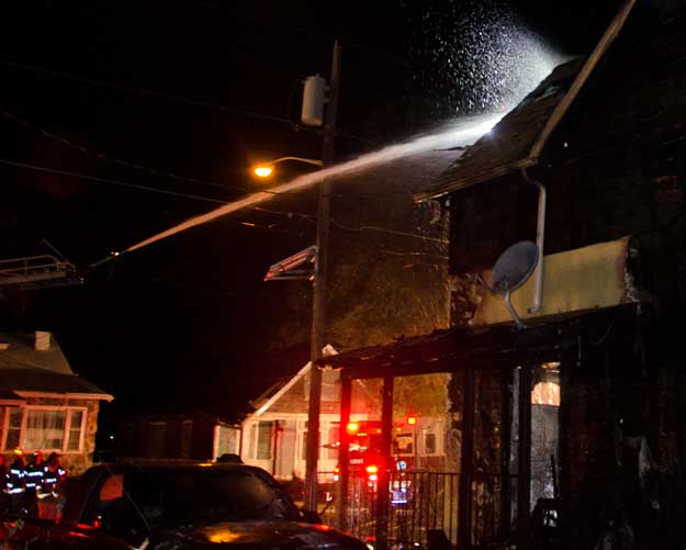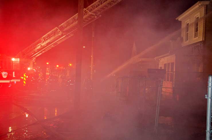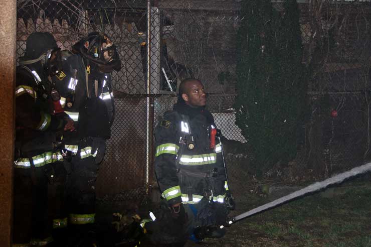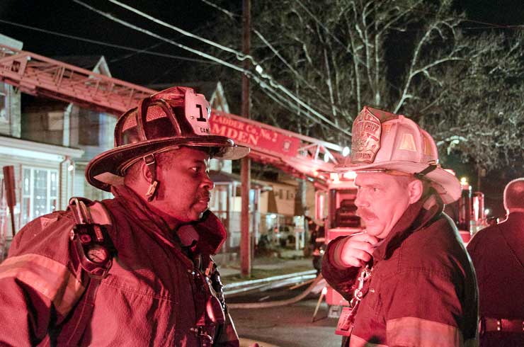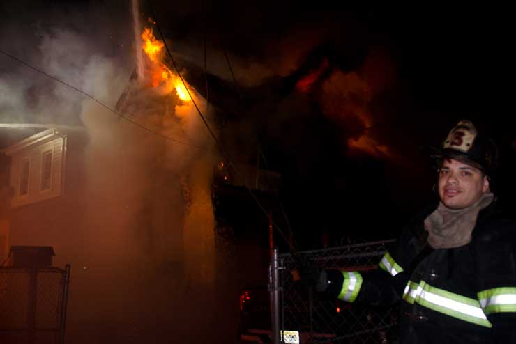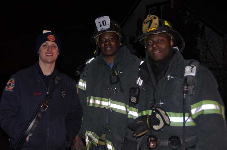 This page and the other pages in this series are the successors to the series of web-page about the Camden Fire Department that began with the page Camden Fire Department: The Fires of the Summer of 2011. On this and other pages in the series you will find pictures and information regarding different events and aspects of the fire service in Camden, New Jersey. At approximately 12:50 AM on the morning of March 12, 2012 a fire was reported at 1114 Lois Avenue in Camden's Cramer Hill section. Battalion 2 arrived on scene with heavy fire throughout a two-story single family dwelling, with exposure problems. All hands were placed all hands in service. Companies placed numerous lines in service with an exterior attack. The fire was confined to the dwelling, although adjacent properties did receive some smoke and water damage.. Four victims were transported to the hospital, fortunately, all were treated and released. Numerous special calls were made to the scene. At 1:08 AM command reported heavy fire conditions throughout the dwelling and exposures. An additional engine was requested to be sent to the scene to take a hydrant At 1:12 AM command reported for patients were being treated at that time. Engine 10 had arrived on scene to take up a hydrant, the nearest hydrant, however, was at River Avenue. At 1:43 AM command reported that with 4 pipes and lines in operation the fire was darkening down and was probable at that time. At 1:52 it was reported that the main bodies of fire had been knocked down. All searches had proven negative and the fire was placed under control. As with the web page covering other Camden Fire Department events, if you can identify anyone that I've missed, please comment at the bottom of the page. (I'm terrible at at names and faces).. March 23, 2012 P.S. I was sent five additional images from this fire… I'm pretty sure they came from someone who was working EMS that night, but for the life of me I can't find the e-mail that they came in, so I don't know who to credit here. The images are at the bottom of the page. I know I thanked the sender when I got them, well… THANKS AGAIN!!!! -