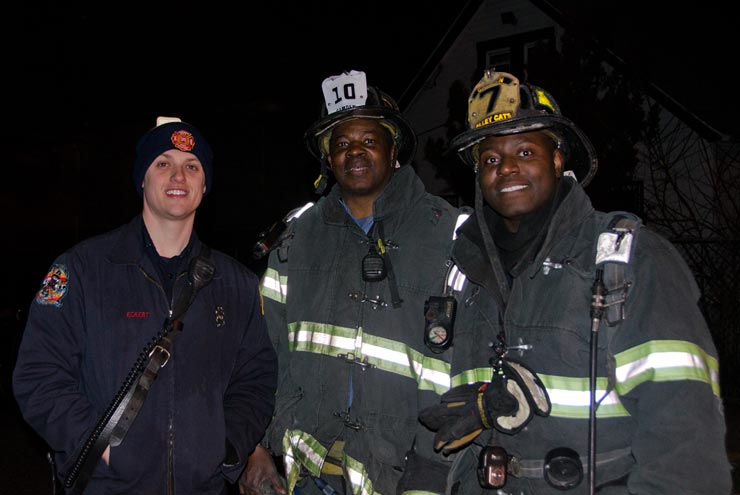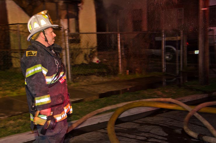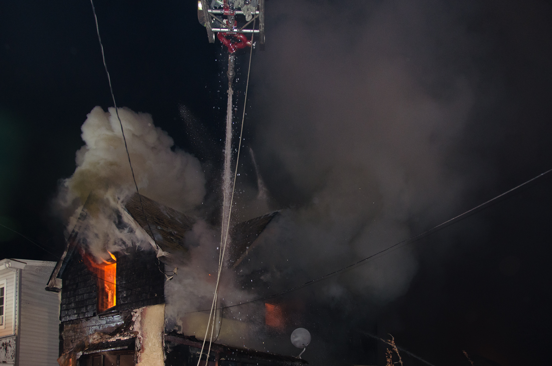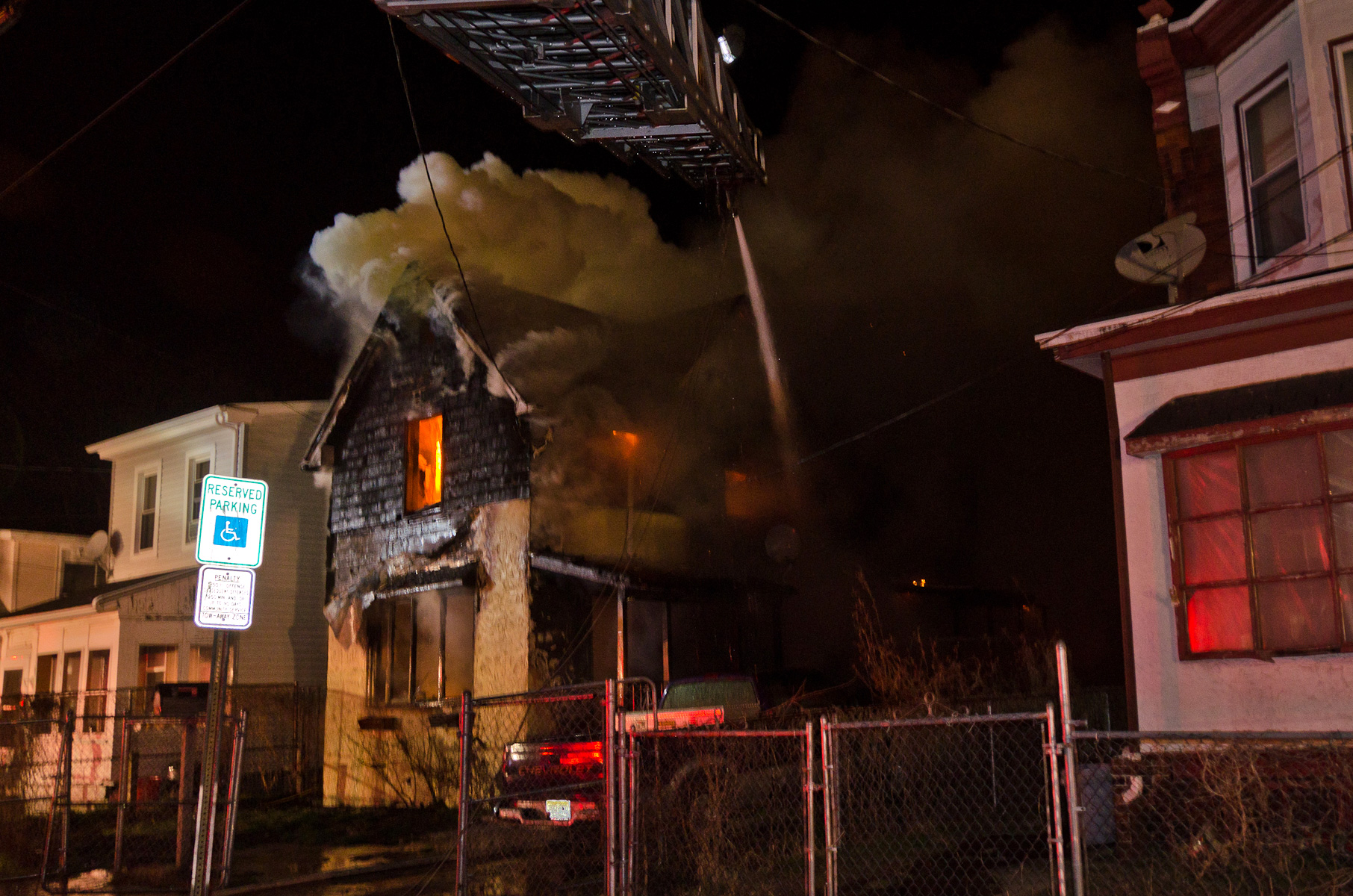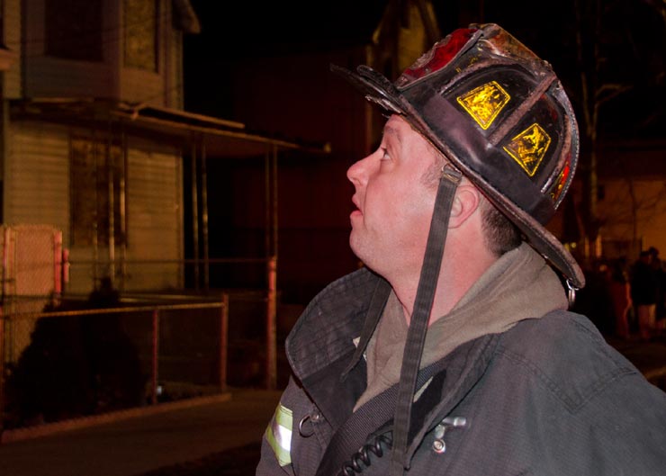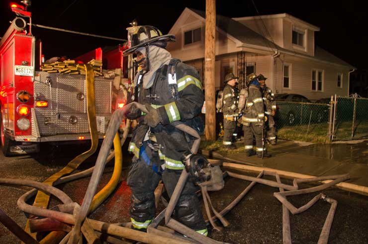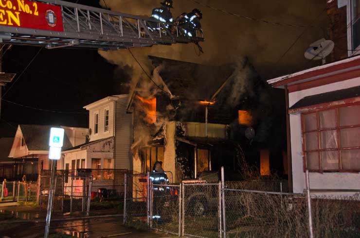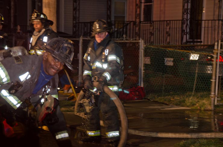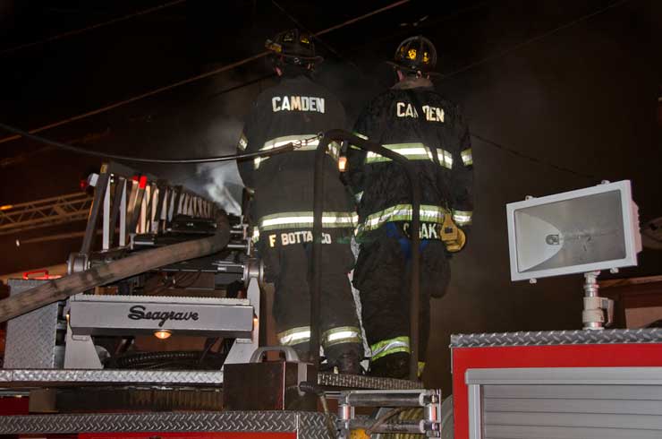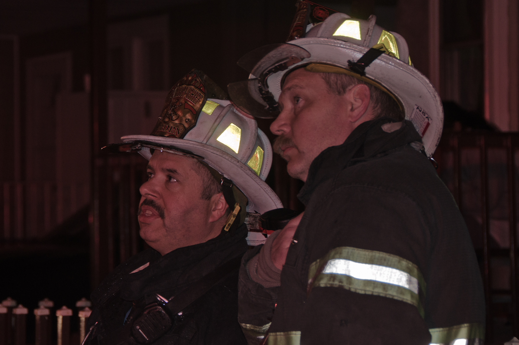This page and the other pages in this series are the successors to the series of web-page about the Camden Fire Department that began with the page Camden Fire Department: The Fires of the Summer of 2011. On this and other pages in the series you will find pictures and information regarding different events and aspects of the fire service in Camden, New Jersey. At approximately 12:50 AM on the morning of March 12, 2012 a fire was reported at 1114 Lois Avenue in Camden's Cramer Hill section. Battalion 2 arrived on scene with heavy fire throughout a two-story single family dwelling, with exposure problems. All hands were placed all hands in service. Companies placed numerous lines in service with an exterior attack. The fire was confined to the dwelling, although adjacent properties did receive some smoke and water damage.. Four victims were transported to the hospital, fortunately, all were treated and released. Numerous special calls were made to the scene. At 1:08 AM command reported heavy fire conditions throughout the dwelling and exposures. An additional engine was requested to be sent to the scene to take a hydrant At 1:12 AM command reported for patients were being treated at that time. Engine 10 had arrived on scene to take up a hydrant, the nearest hydrant, however, was at River Avenue. At 1:43 AM command reported that with 4 pipes and lines in operation the fire was darkening down and was probable at that time. At 1:52 it was reported that the main bodies of fire had been knocked down. All searches had proven negative and the fire was placed under control. As with the web page covering other Camden Fire Department events, if you can identify anyone that I've missed, please comment at the bottom of the page. (I'm terrible at at names and faces).. March 23, 2012 P.S. I was sent five additional images from this fire… I'm pretty sure they came from someone who was working EMS that night, but for the life of me I can't find the e-mail that they came in, so I don't know who to credit here. The images are at the bottom of the page. I know I thanked the sender when I got them, well… THANKS AGAIN!!!! -