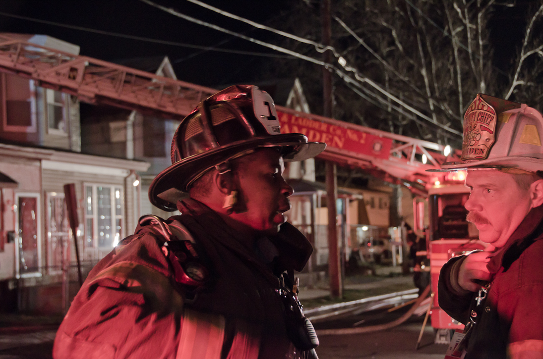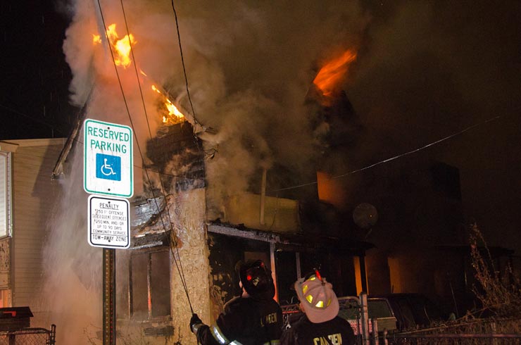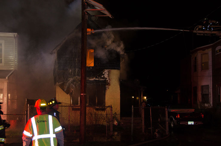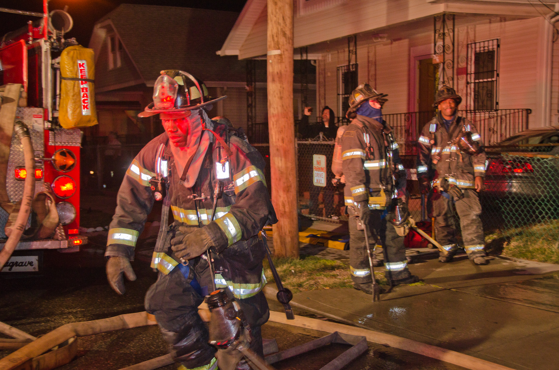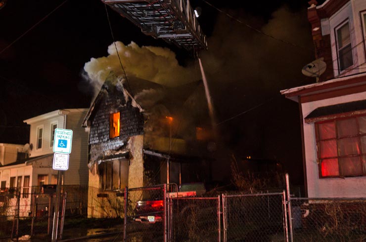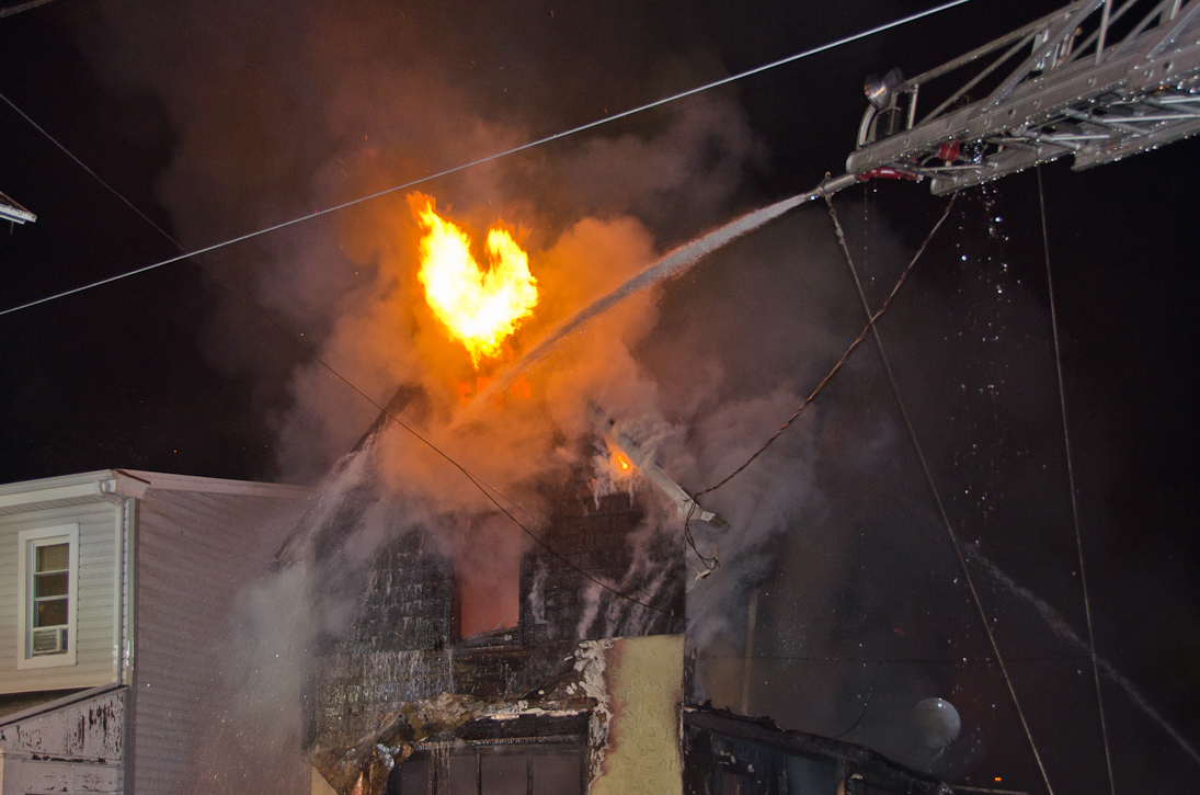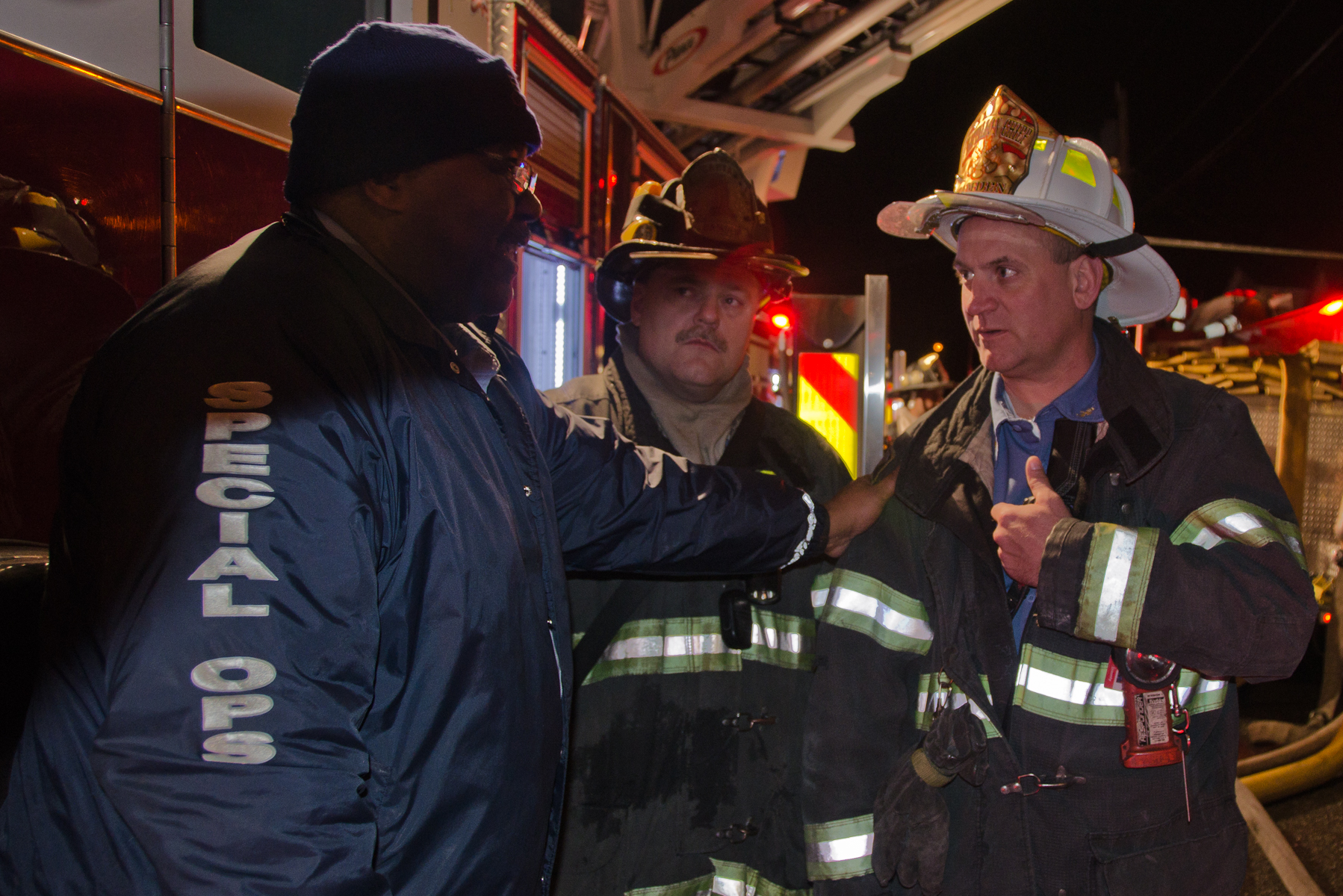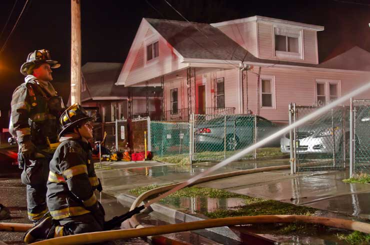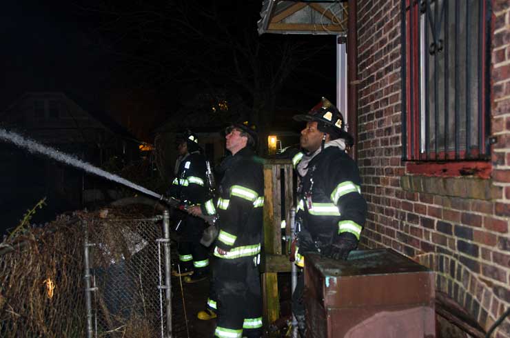 This page and the other pages in this series are the successors to the series of web-page about the Camden Fire Department that began with the page Camden Fire Department: The Fires of the Summer of 2011. On this and other pages in the series you will find pictures and information regarding different events and aspects of the fire service in Camden, New Jersey. At approximately 12:50 AM on the morning of March 12, 2012 a fire was reported at 1114 Lois Avenue in Camden's Cramer Hill section. Battalion 2 arrived on scene with heavy fire throughout a two-story single family dwelling, with exposure problems. All hands were placed all hands in service. Companies placed numerous lines in service with an exterior attack. The fire was confined to the dwelling, although adjacent properties did receive some smoke and water damage.. Four victims were transported to the hospital, fortunately, all were treated and released. Numerous special calls were made to the scene. At 1:08 AM command reported heavy fire conditions throughout the dwelling and exposures. An additional engine was requested to be sent to the scene to take a hydrant At 1:12 AM command reported for patients were being treated at that time. Engine 10 had arrived on scene to take up a hydrant, the nearest hydrant, however, was at River Avenue. At 1:43 AM command reported that with 4 pipes and lines in operation the fire was darkening down and was probable at that time. At 1:52 it was reported that the main bodies of fire had been knocked down. All searches had proven negative and the fire was placed under control. As with the web page covering other Camden Fire Department events, if you can identify anyone that I've missed, please comment at the bottom of the page. (I'm terrible at at names and faces).. March 23, 2012 P.S. I was sent five additional images from this fire… I'm pretty sure they came from someone who was working EMS that night, but for the life of me I can't find the e-mail that they came in, so I don't know who to credit here. The images are at the bottom of the page. I know I thanked the sender when I got them, well… THANKS AGAIN!!!! -
