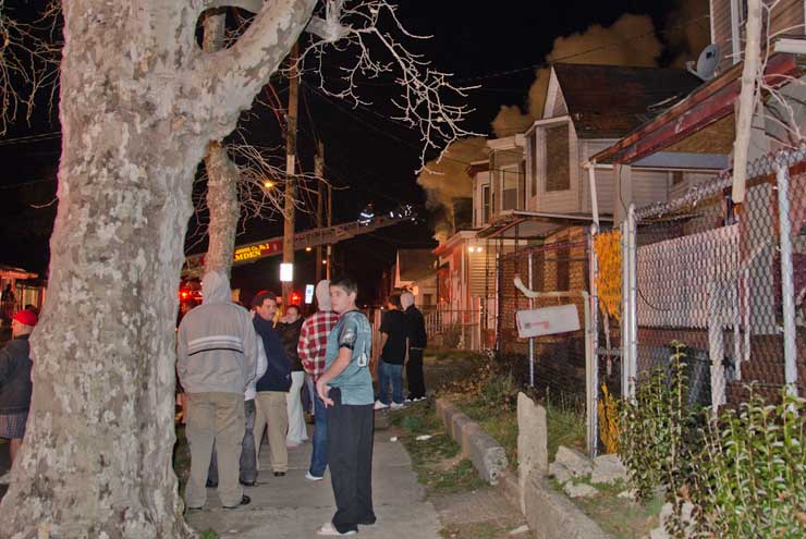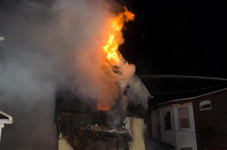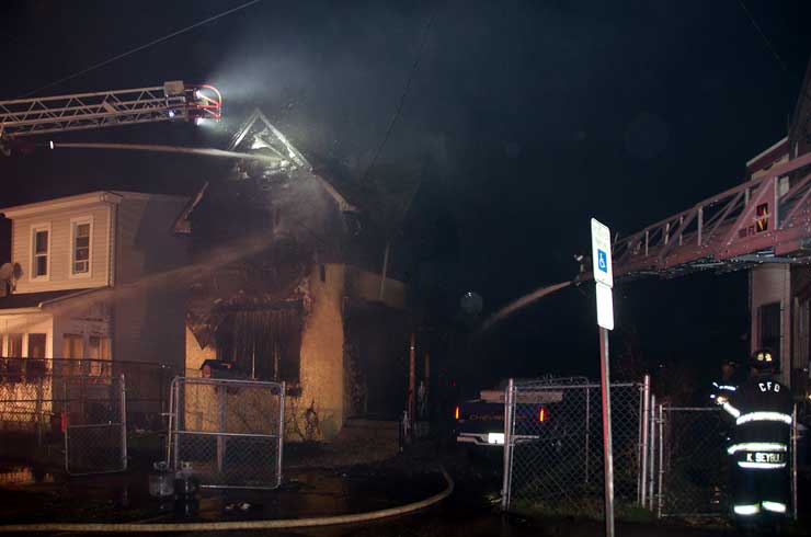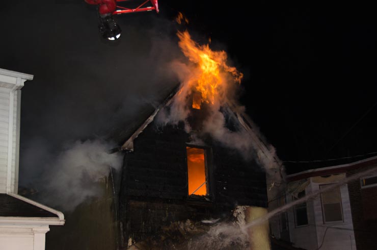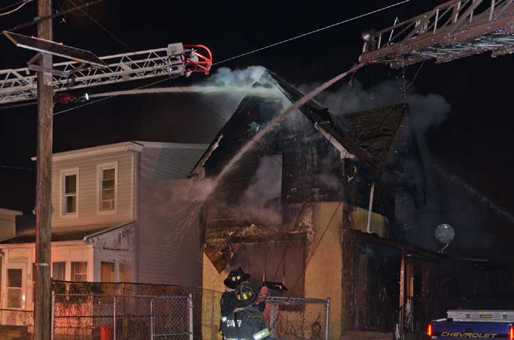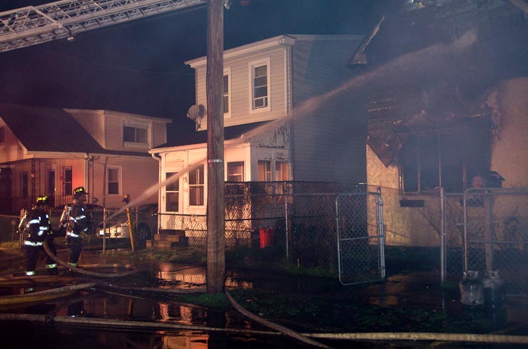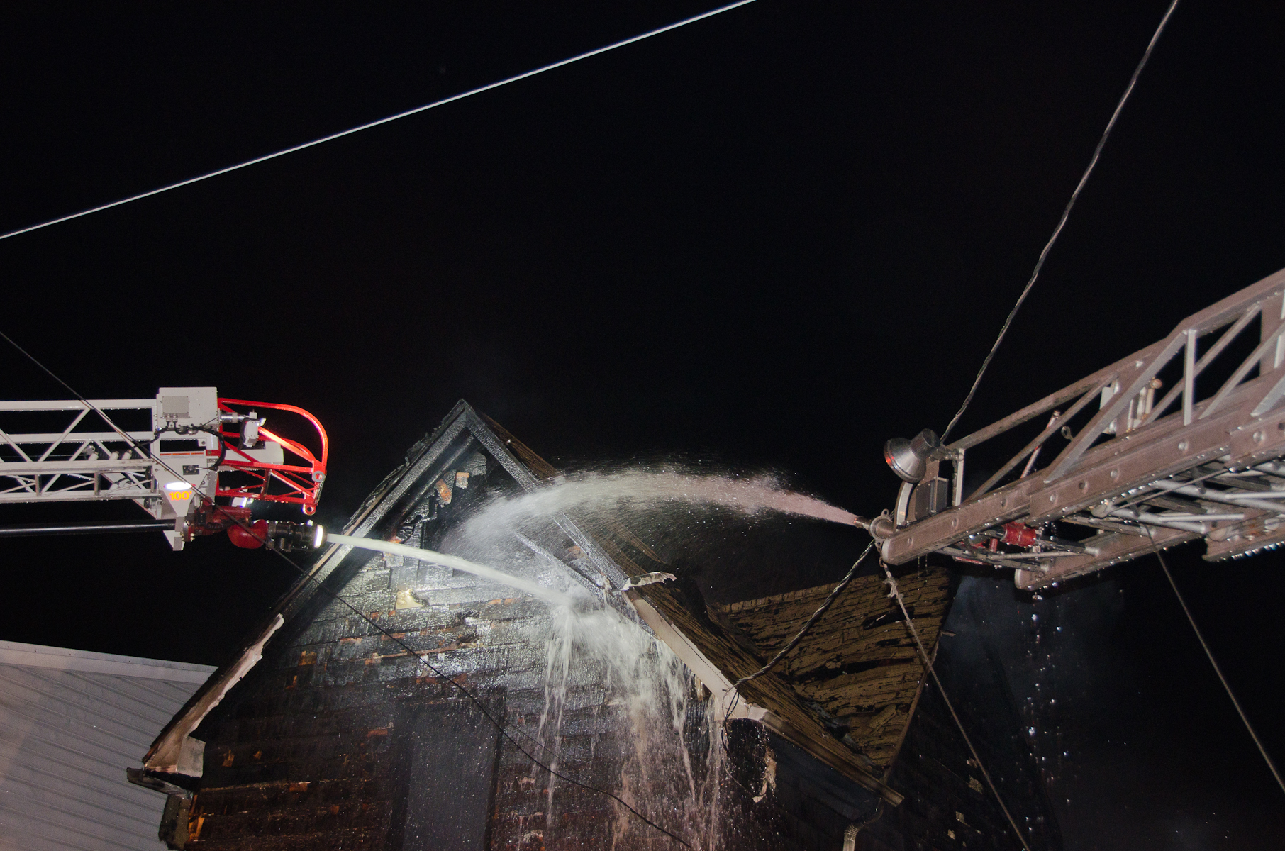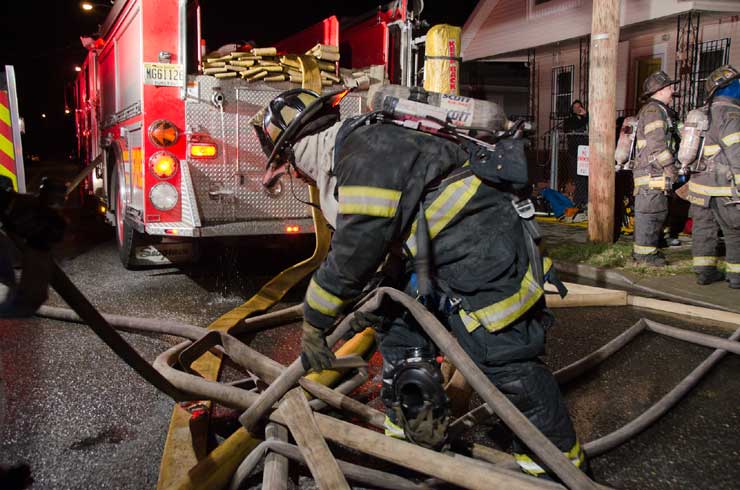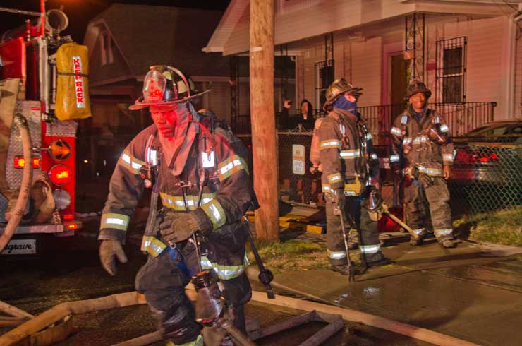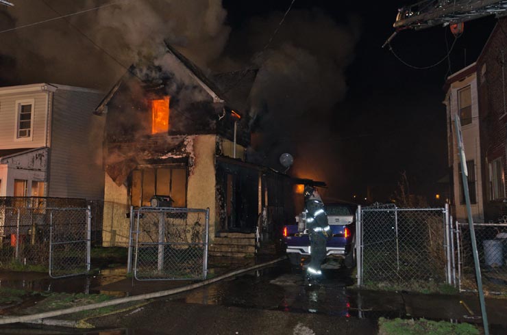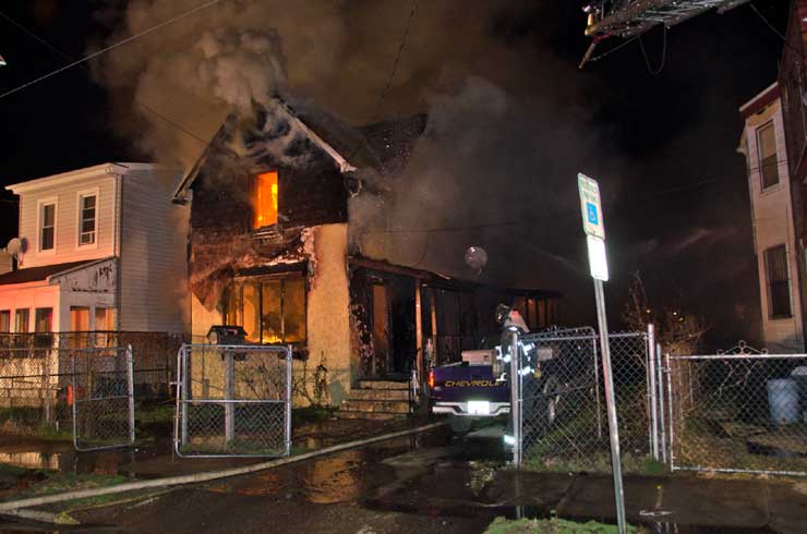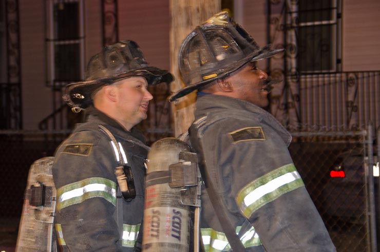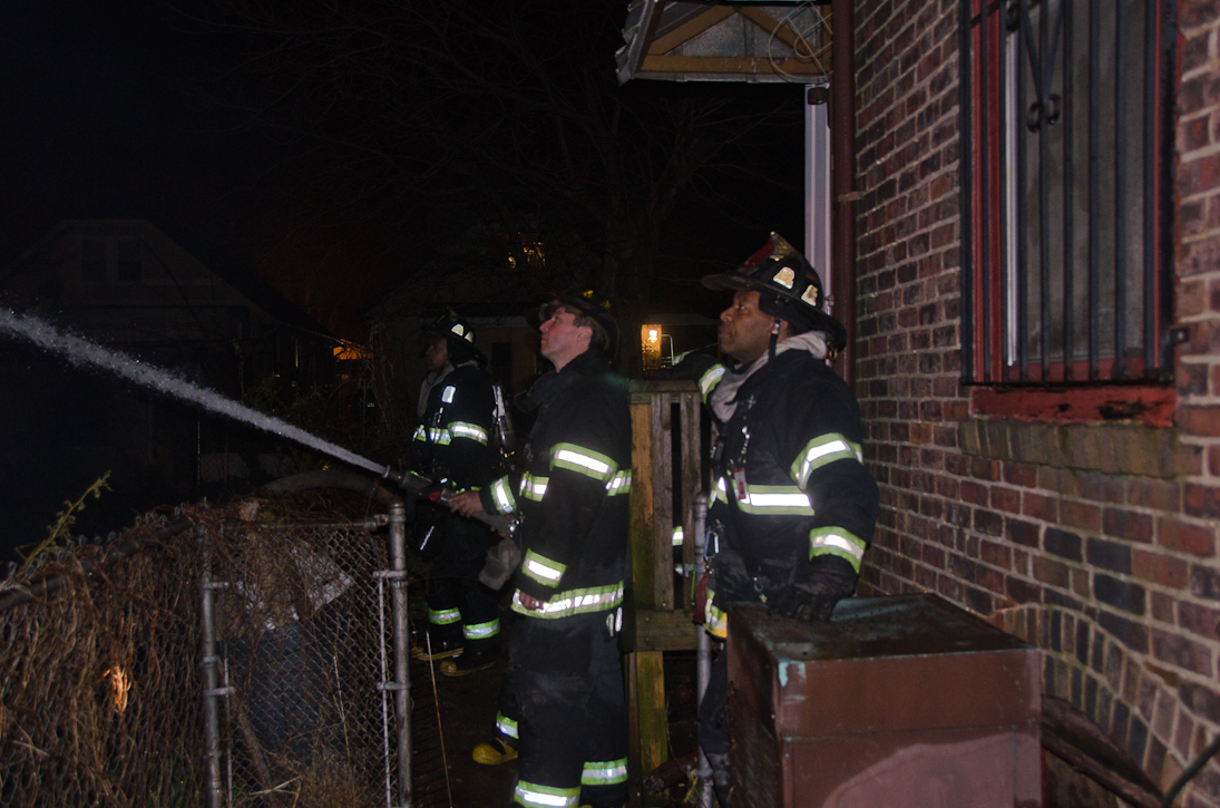 This page and the other pages in this series are the successors to the series of web-page about the Camden Fire Department that began with the page Camden Fire Department: The Fires of the Summer of 2011. On this and other pages in the series you will find pictures and information regarding different events and aspects of the fire service in Camden, New Jersey. At approximately 12:50 AM on the morning of March 12, 2012 a fire was reported at 1114 Lois Avenue in Camden's Cramer Hill section. Battalion 2 arrived on scene with heavy fire throughout a two-story single family dwelling, with exposure problems. All hands were placed all hands in service. Companies placed numerous lines in service with an exterior attack. The fire was confined to the dwelling, although adjacent properties did receive some smoke and water damage.. Four victims were transported to the hospital, fortunately, all were treated and released. Numerous special calls were made to the scene. At 1:08 AM command reported heavy fire conditions throughout the dwelling and exposures. An additional engine was requested to be sent to the scene to take a hydrant At 1:12 AM command reported for patients were being treated at that time. Engine 10 had arrived on scene to take up a hydrant, the nearest hydrant, however, was at River Avenue. At 1:43 AM command reported that with 4 pipes and lines in operation the fire was darkening down and was probable at that time. At 1:52 it was reported that the main bodies of fire had been knocked down. All searches had proven negative and the fire was placed under control. As with the web page covering other Camden Fire Department events, if you can identify anyone that I've missed, please comment at the bottom of the page. (I'm terrible at at names and faces).. March 23, 2012 P.S. I was sent five additional images from this fire… I'm pretty sure they came from someone who was working EMS that night, but for the life of me I can't find the e-mail that they came in, so I don't know who to credit here. The images are at the bottom of the page. I know I thanked the sender when I got them, well… THANKS AGAIN!!!! -