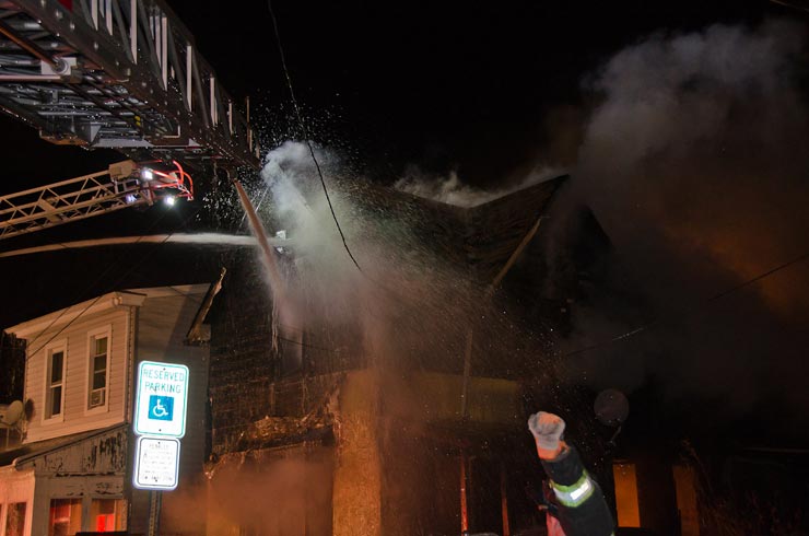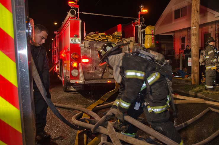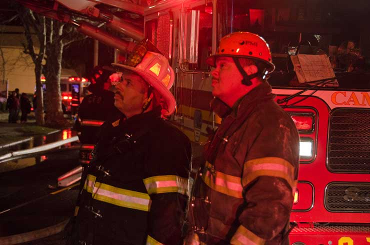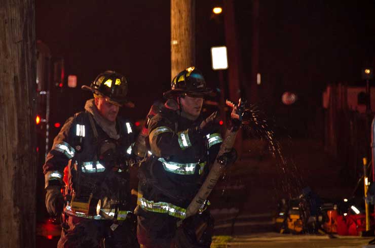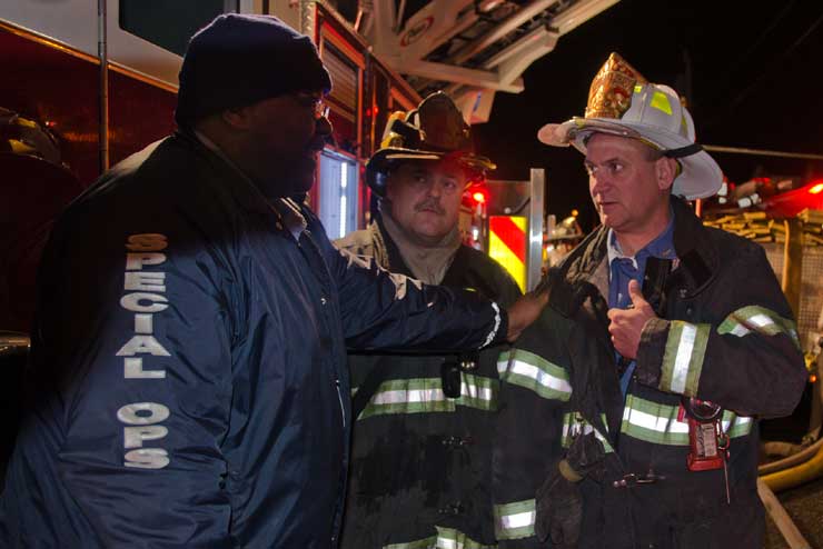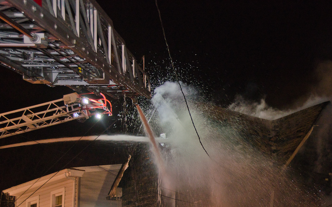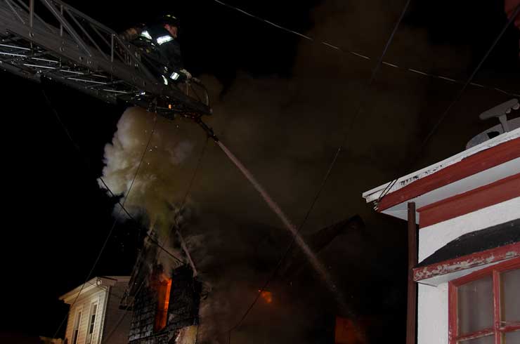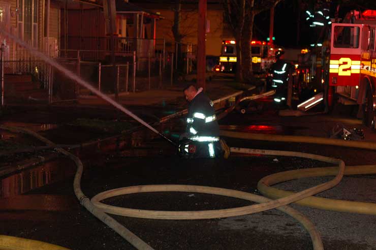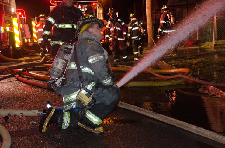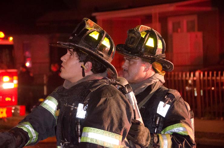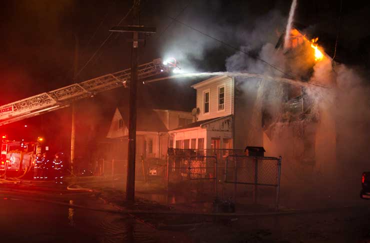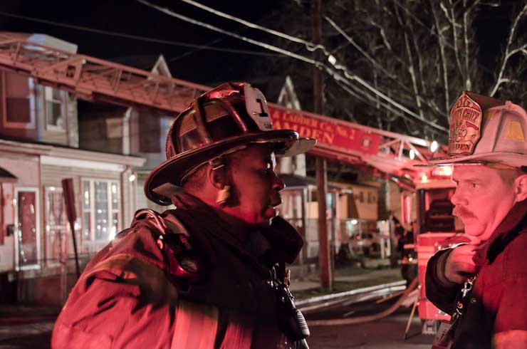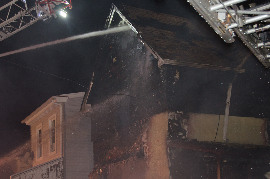 This page and the other pages in this series are the successors to the series of web-page about the Camden Fire Department that began with the page Camden Fire Department: The Fires of the Summer of 2011. On this and other pages in the series you will find pictures and information regarding different events and aspects of the fire service in Camden, New Jersey. At approximately 12:50 AM on the morning of March 12, 2012 a fire was reported at 1114 Lois Avenue in Camden's Cramer Hill section. Battalion 2 arrived on scene with heavy fire throughout a two-story single family dwelling, with exposure problems. All hands were placed all hands in service. Companies placed numerous lines in service with an exterior attack. The fire was confined to the dwelling, although adjacent properties did receive some smoke and water damage.. Four victims were transported to the hospital, fortunately, all were treated and released. Numerous special calls were made to the scene. At 1:08 AM command reported heavy fire conditions throughout the dwelling and exposures. An additional engine was requested to be sent to the scene to take a hydrant At 1:12 AM command reported for patients were being treated at that time. Engine 10 had arrived on scene to take up a hydrant, the nearest hydrant, however, was at River Avenue. At 1:43 AM command reported that with 4 pipes and lines in operation the fire was darkening down and was probable at that time. At 1:52 it was reported that the main bodies of fire had been knocked down. All searches had proven negative and the fire was placed under control. As with the web page covering other Camden Fire Department events, if you can identify anyone that I've missed, please comment at the bottom of the page. (I'm terrible at at names and faces).. March 23, 2012 P.S. I was sent five additional images from this fire… I'm pretty sure they came from someone who was working EMS that night, but for the life of me I can't find the e-mail that they came in, so I don't know who to credit here. The images are at the bottom of the page. I know I thanked the sender when I got them, well… THANKS AGAIN!!!! -