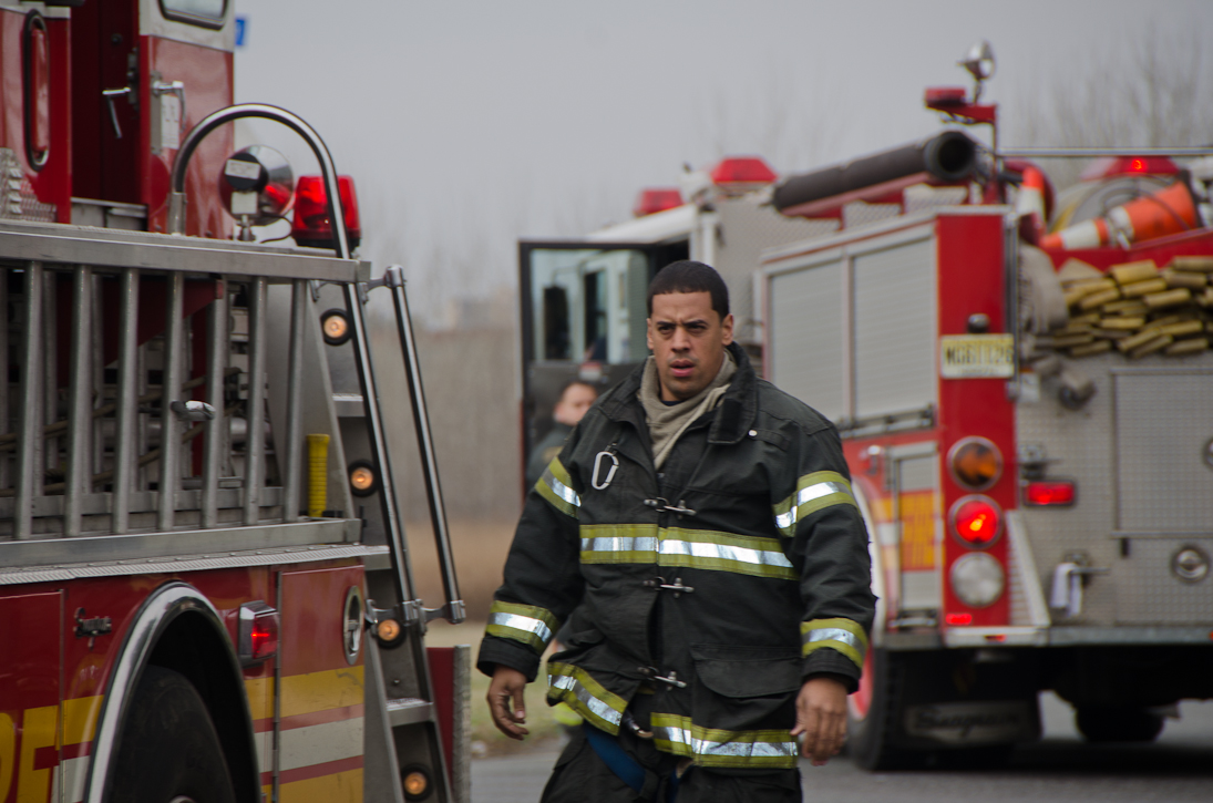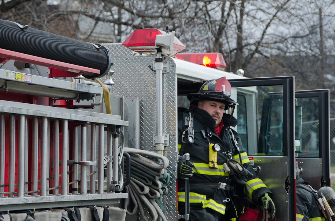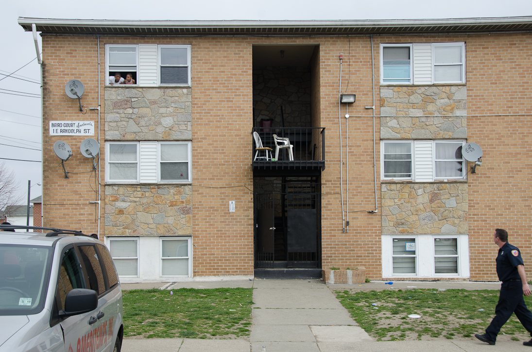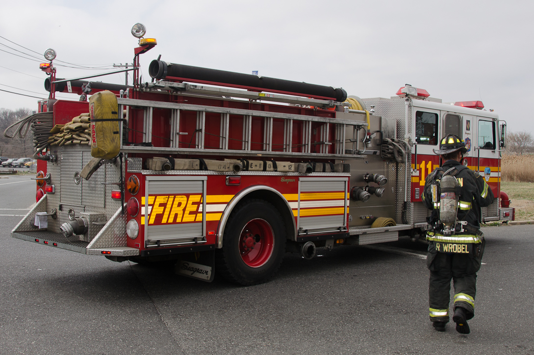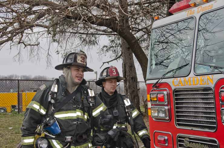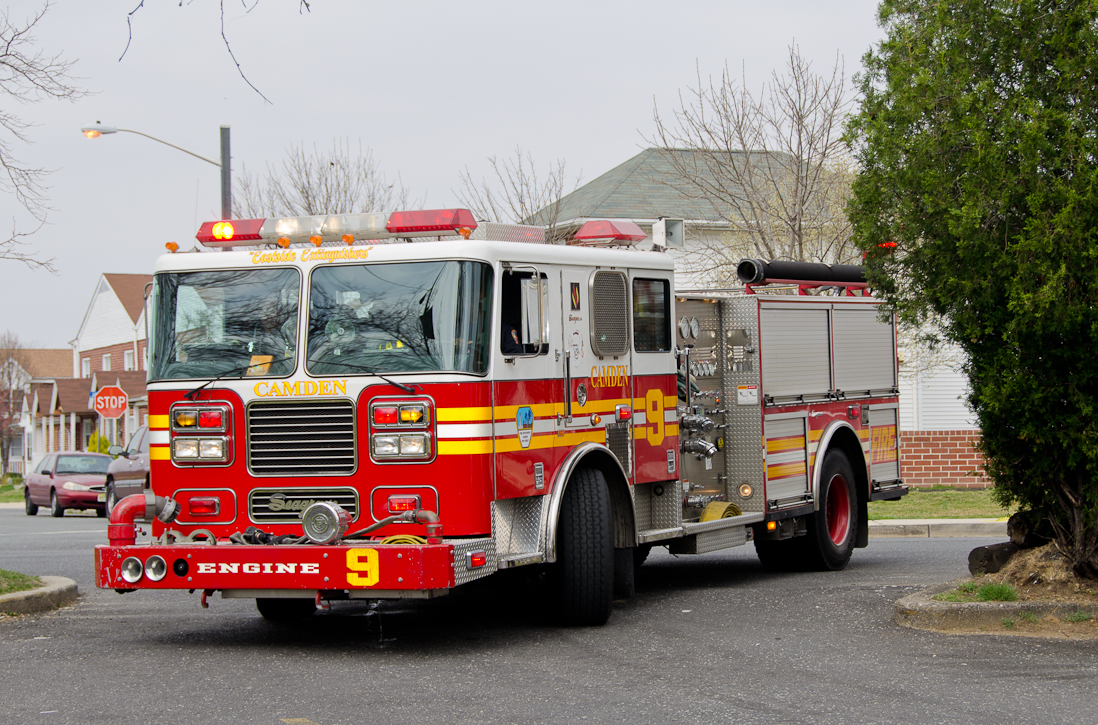 This page and the other pages in this series are the successors to the series of web-page about the Camden Fire Department that began with the page Camden Fire Department: The Fires of the Summer of 2011. On this and other pages in the series you will find pictures and information regarding different events and aspects of the fire service in Camden, New Jersey. Unseasonably warm weather brought people outside to do yard work and some outdoor cooking. One by product of this was a number of calls by worried residents who smelled smoke. A typical incident of this nature happened on March 15, 2012. I was in the 2300 block of Howell Street on my way to photographed an abandoned building that was slated for demolition when a call came over the radio at 12:37 PM for 1 Randolph Street, the Baird Court Apartments, just off the Admiral Wilson Boulevard at Westminster Street. I got there literally seconds after Ladder 3 arrived to investigate. I took my first photo at 12:41 PM. The investigation determined that one of the residents had smelled smoke emanating from a neighbor's barbecue at the rear of the property. Units returned to quarters at 12:50 PM. As with the web page covering other Camden Fire Department events, if you can identify anyone that I've missed, please comment at the bottom of the page. (I'm terrible at at names and faces). March 23, 2012 |