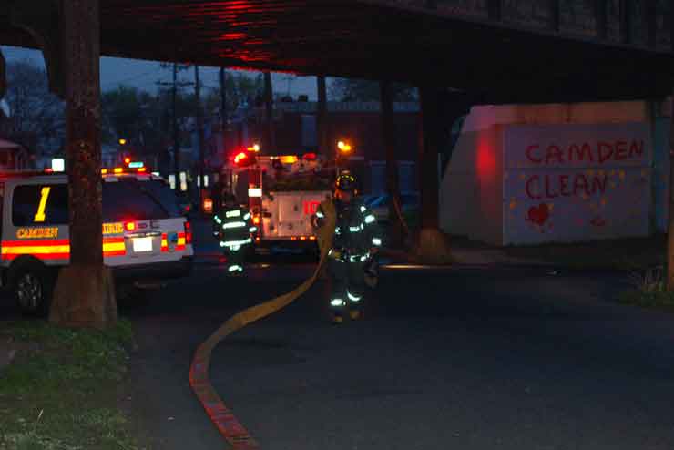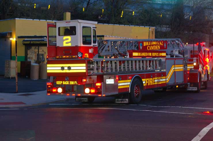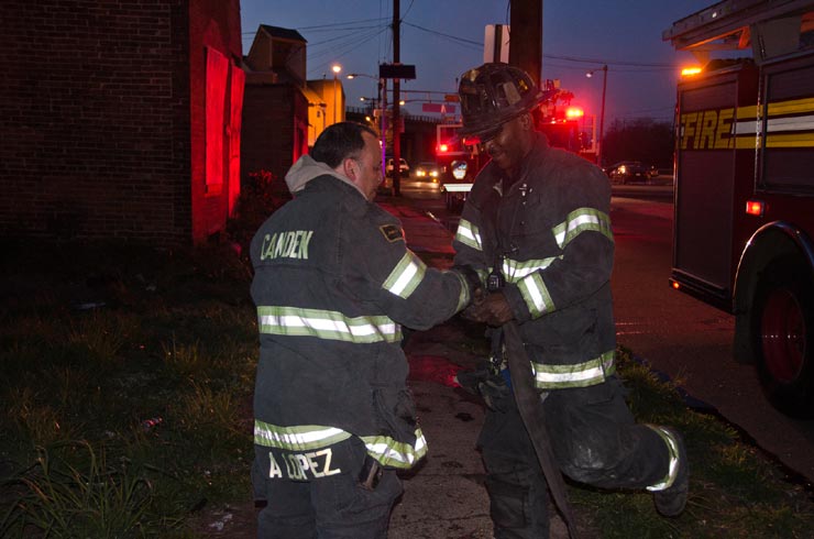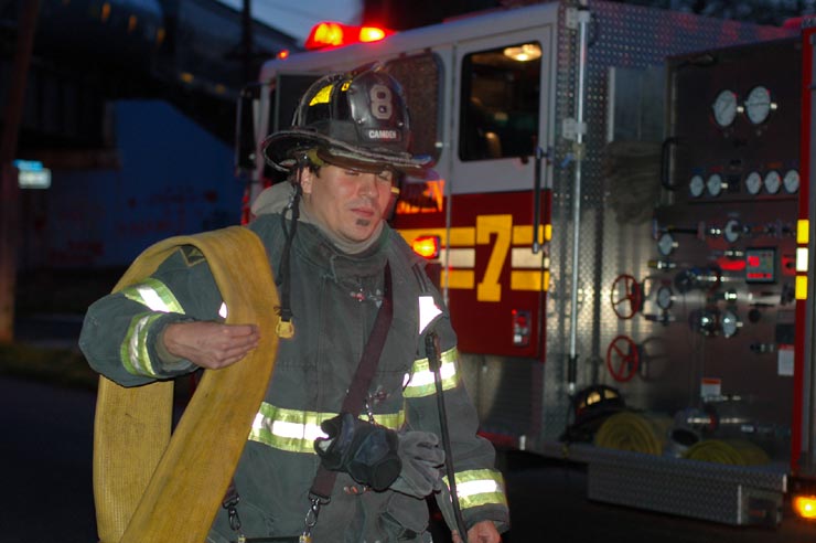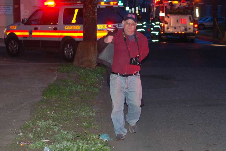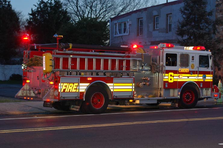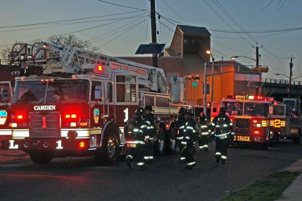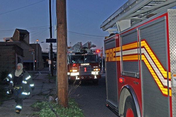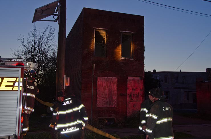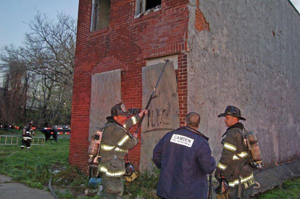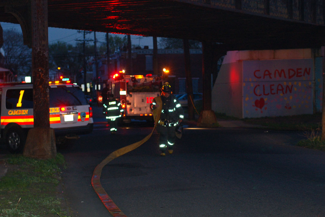This page and the other pages in this series are the successors to the series of web-page about the Camden Fire Department that began with the page Camden Fire Department: The Fires of the Summer of 2011. On this and other pages in the series you will find pictures and information regarding different events and aspects of the fire service in Camden, New Jersey. In the early evening hours of March 27, 2012 units of the Camden Fire Department responded to a report of a fire in a vacant two-story stand-alone building at 1215 South 9th Street, between Kaighn Avenue and Liberty Street. Coming in from Pennsauken, by the time I arrived on scene companies were wrapping up Unlike most other pages covering Camden Fire Department activity, photos here are not necessarily presented in the order in which they were taken. I was using two cameras that night and I hope I've got these sorted out correctly! There are also some photos courtesy of fire photographer Dom Patricelli. As with the web page covering other Camden Fire Department events, if you can identify anyone that I've missed, please comment at the bottom of the page. (I'm terrible at at names and faces). April 7, 2012 |