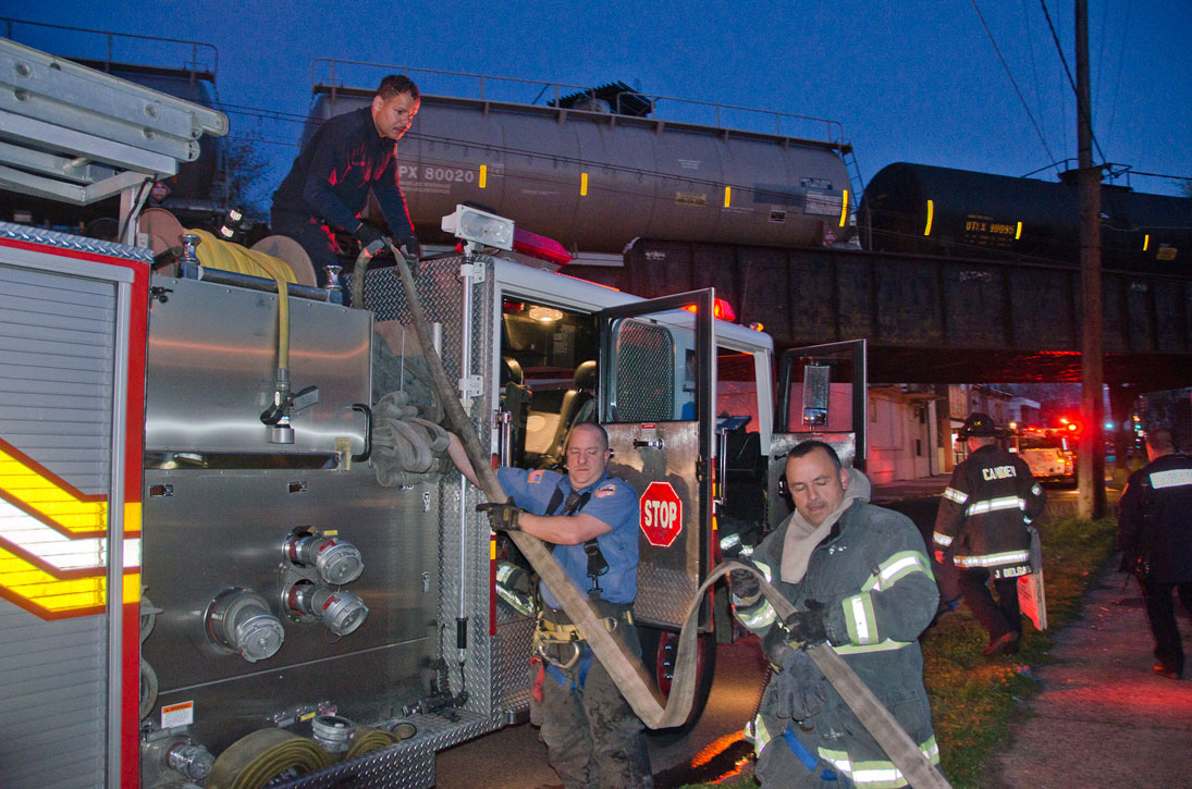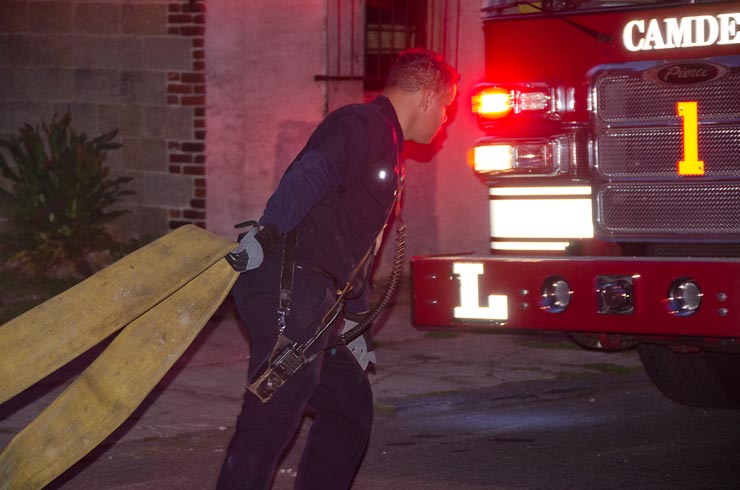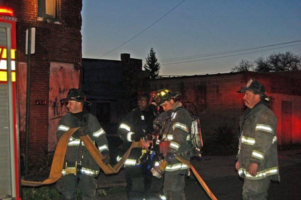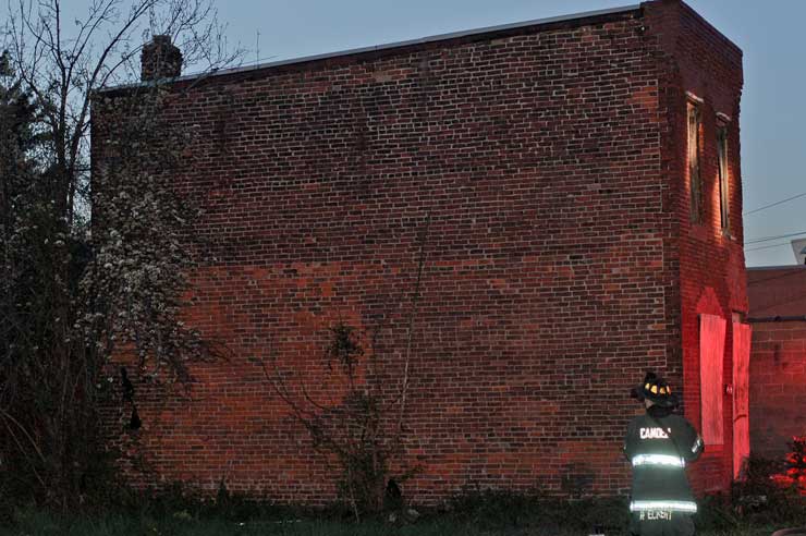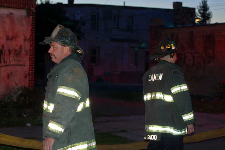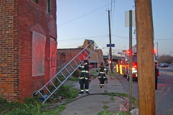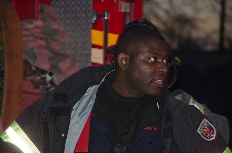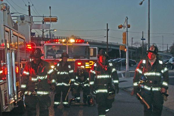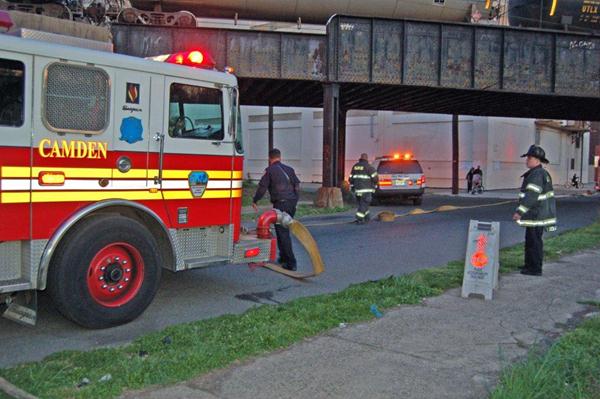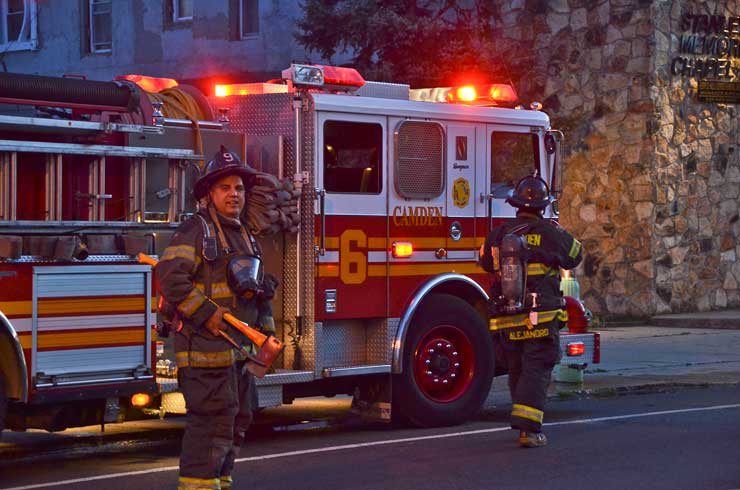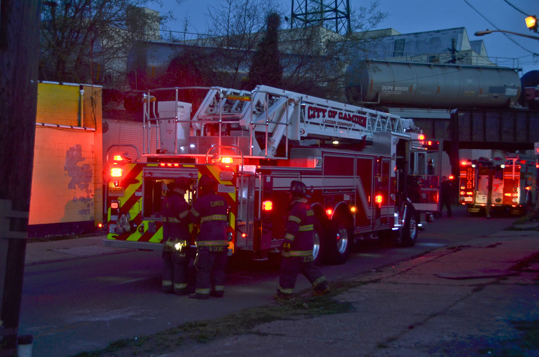 This page and the other pages in this series are the successors to the series of web-page about the Camden Fire Department that began with the page Camden Fire Department: The Fires of the Summer of 2011. On this and other pages in the series you will find pictures and information regarding different events and aspects of the fire service in Camden, New Jersey. In the early evening hours of March 27, 2012 units of the Camden Fire Department responded to a report of a fire in a vacant two-story stand-alone building at 1215 South 9th Street, between Kaighn Avenue and Liberty Street. Coming in from Pennsauken, by the time I arrived on scene companies were wrapping up Unlike most other pages covering Camden Fire Department activity, photos here are not necessarily presented in the order in which they were taken. I was using two cameras that night and I hope I've got these sorted out correctly! There are also some photos courtesy of fire photographer Dom Patricelli. As with the web page covering other Camden Fire Department events, if you can identify anyone that I've missed, please comment at the bottom of the page. (I'm terrible at at names and faces). April 7, 2012 |