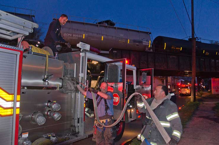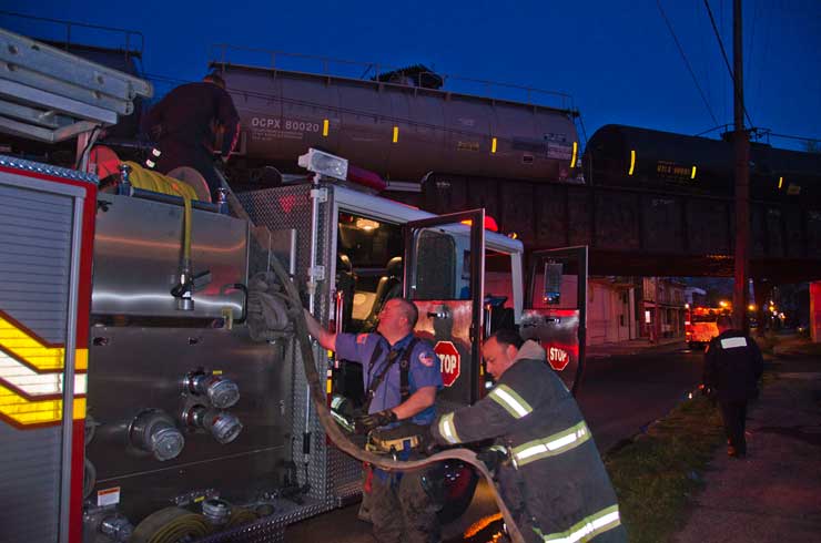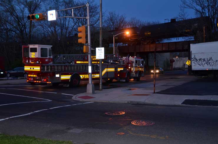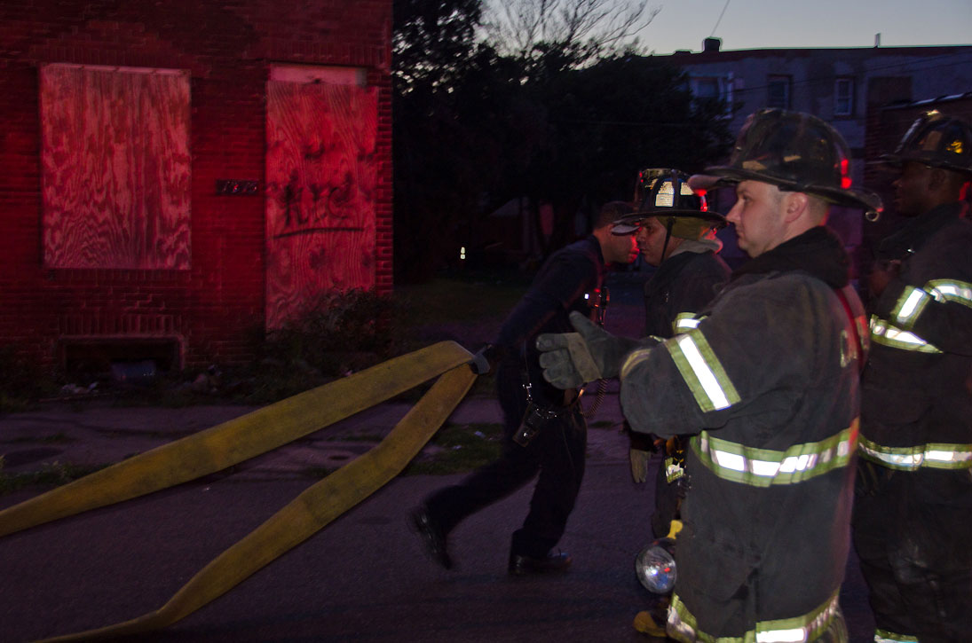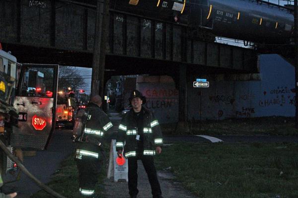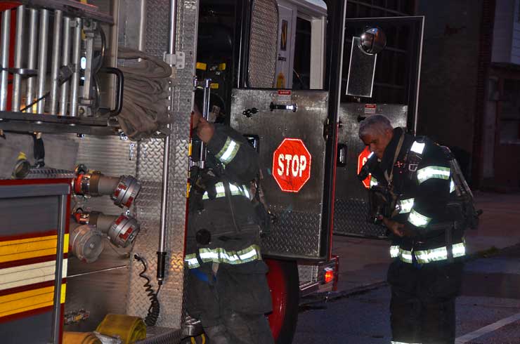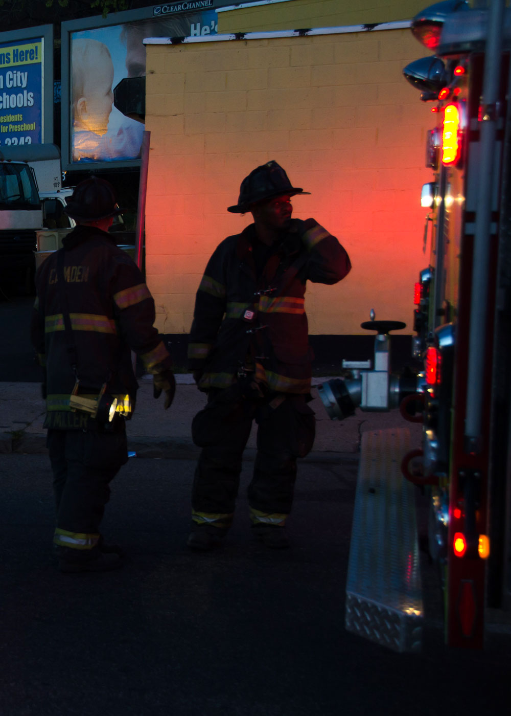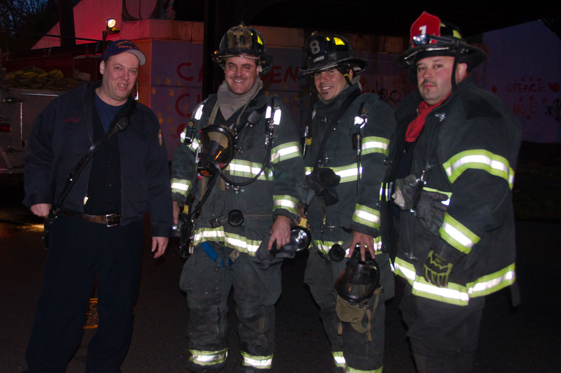 This page and the other pages in this series are the successors to the series of web-page about the Camden Fire Department that began with the page Camden Fire Department: The Fires of the Summer of 2011. On this and other pages in the series you will find pictures and information regarding different events and aspects of the fire service in Camden, New Jersey. In the early evening hours of March 27, 2012 units of the Camden Fire Department responded to a report of a fire in a vacant two-story stand-alone building at 1215 South 9th Street, between Kaighn Avenue and Liberty Street. Coming in from Pennsauken, by the time I arrived on scene companies were wrapping up Unlike most other pages covering Camden Fire Department activity, photos here are not necessarily presented in the order in which they were taken. I was using two cameras that night and I hope I've got these sorted out correctly! There are also some photos courtesy of fire photographer Dom Patricelli. As with the web page covering other Camden Fire Department events, if you can identify anyone that I've missed, please comment at the bottom of the page. (I'm terrible at at names and faces). April 7, 2012 |