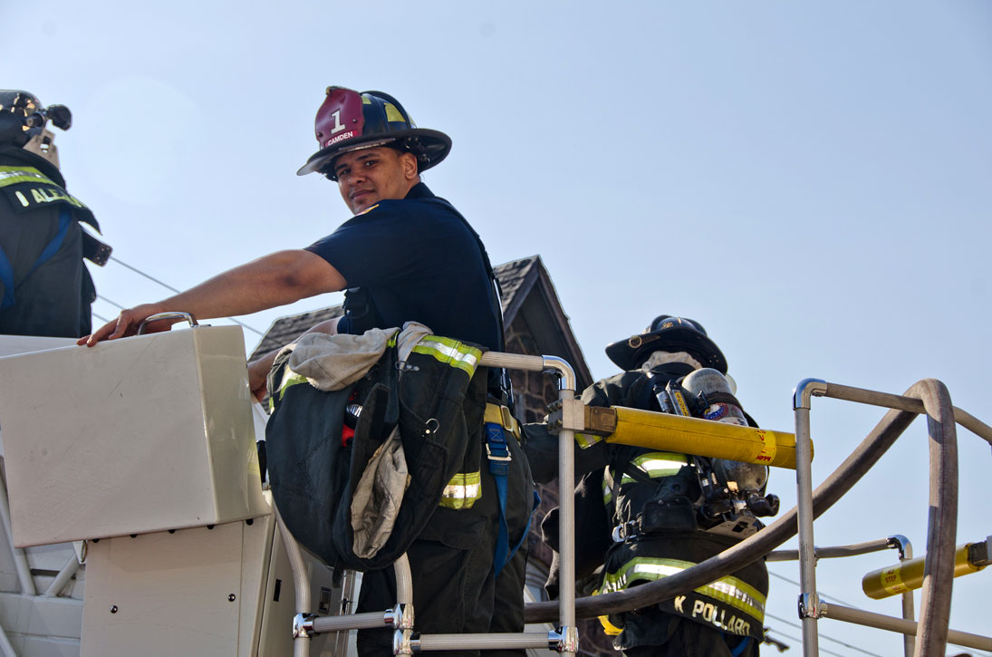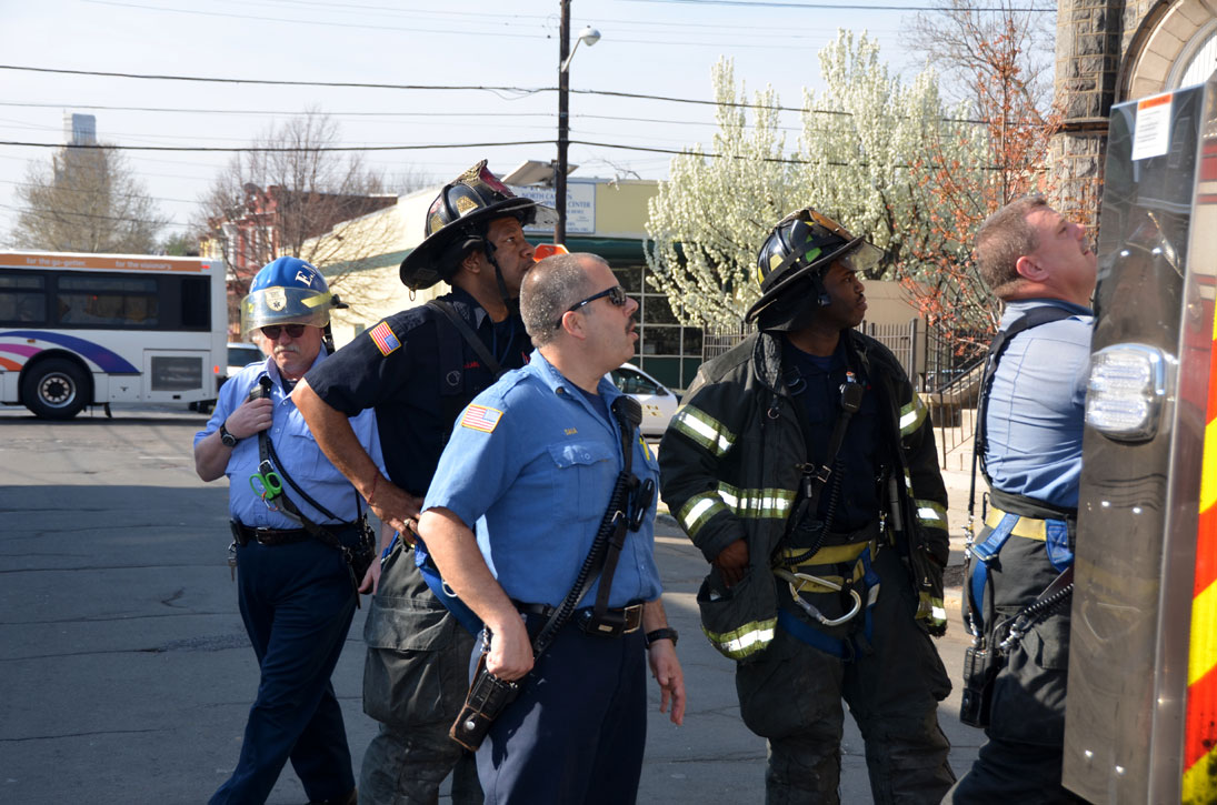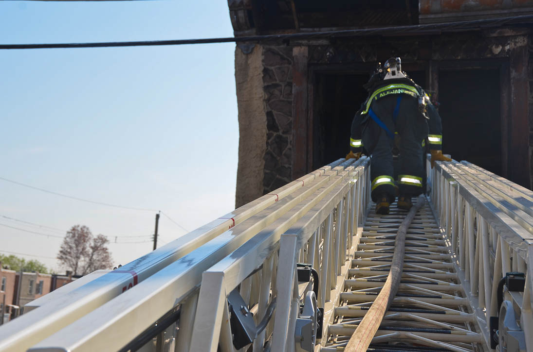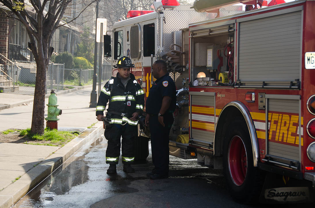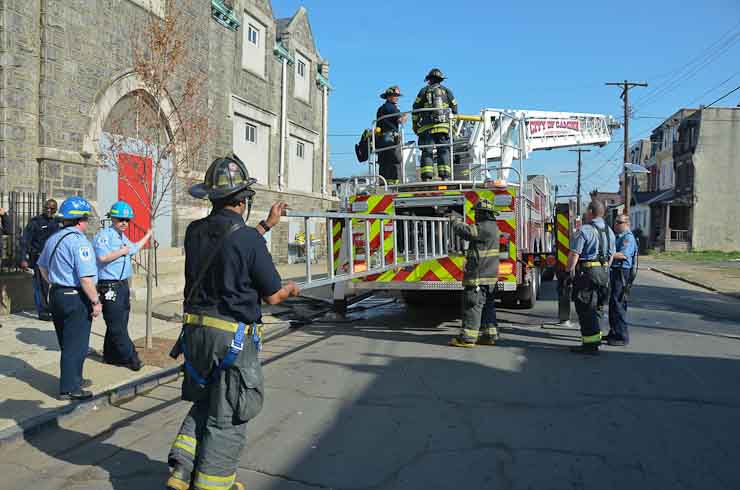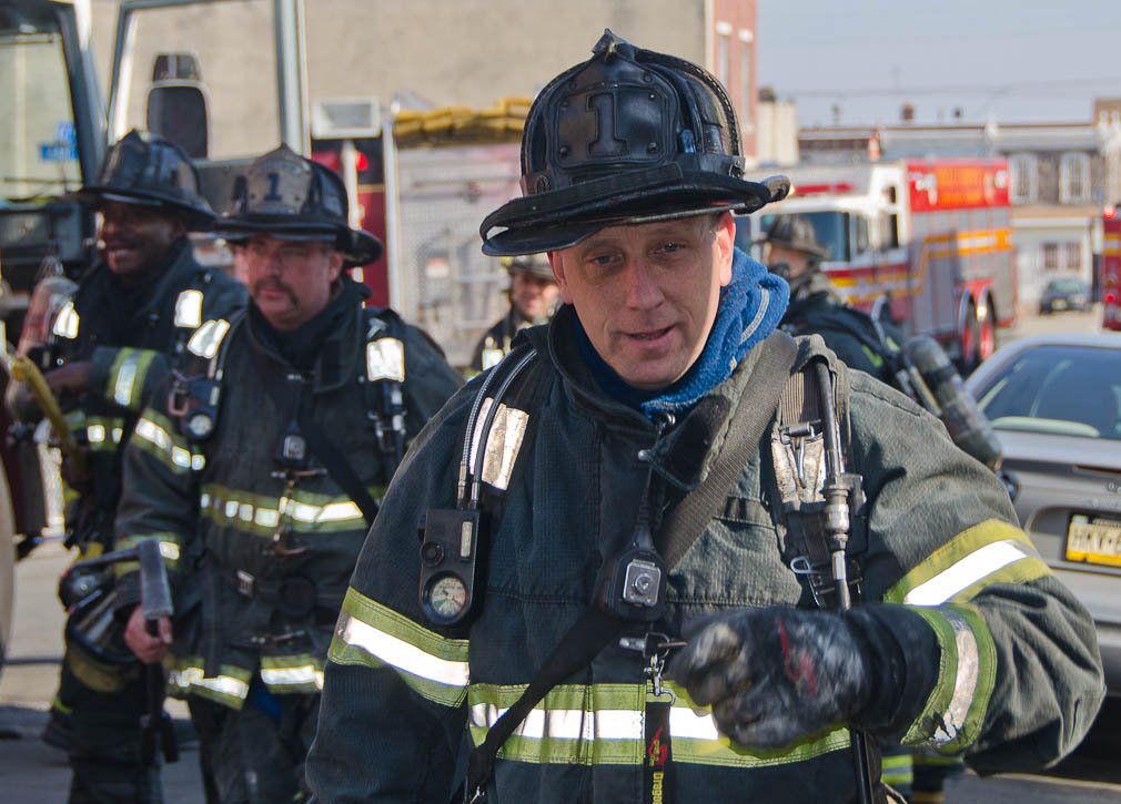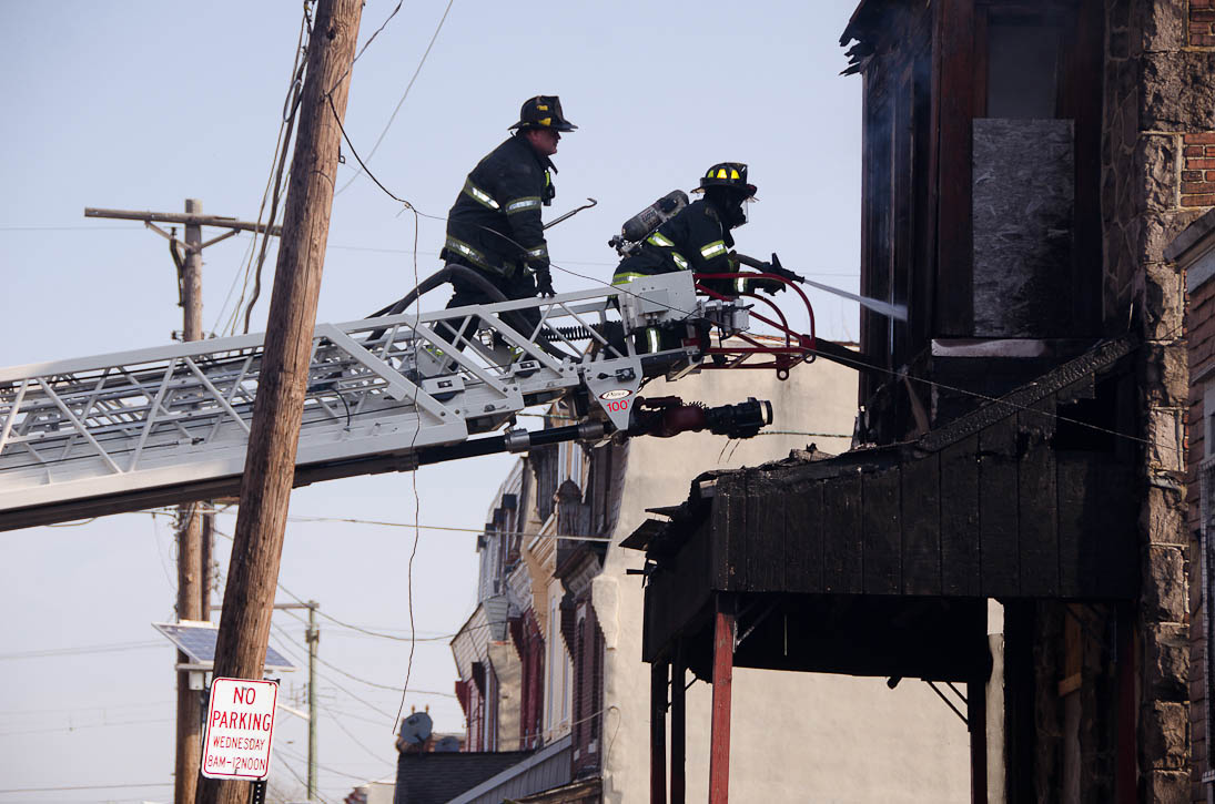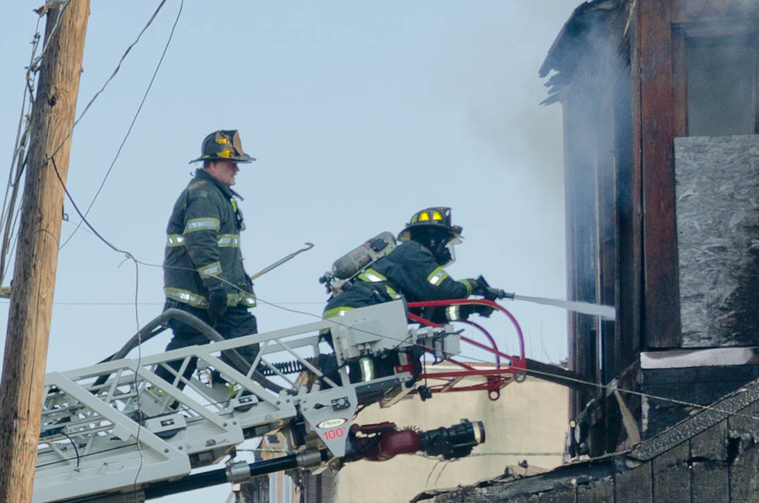 This page and the other pages in this series are the successors to the series of web-page about the Camden Fire Department that began with the page Camden Fire Department: The Fires of the Summer of 2011. On this and other pages in the series you will find pictures and information regarding different events and aspects of the fire service in Camden, New Jersey. At approximately 9:45 PM on March 23, 2012 units of the Camden Fire Department were dispatched to a dwelling a vacant dwelling at 806 North 6th Street in North Camden. This two-story building had once been an attached dwelling, but had long been a stand-alone, and had been the scene of several fires previously. Only three weeks previously the building had been slated for demolition, however, the wreckers had not yet arrived when this fire took place. This was the first of three small fire that the Camden Fire Department addressed that day. All photos here are presented in the order in which they were taken. My first photograph was shot at 9:59 AM. The last picture presented here was taken at 10:22 AM. By 10:47 I was shooting pictures at another fire at Broadway and Washington Street. As with the web page covering other Camden Fire Department events, if you can identify anyone that I've missed, please comment at the bottom of the page. (I'm terrible at at names and faces). April 6, 2012 |