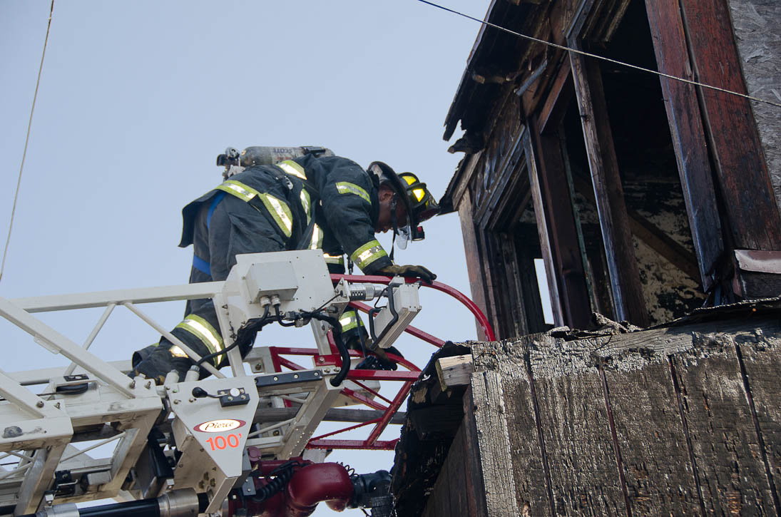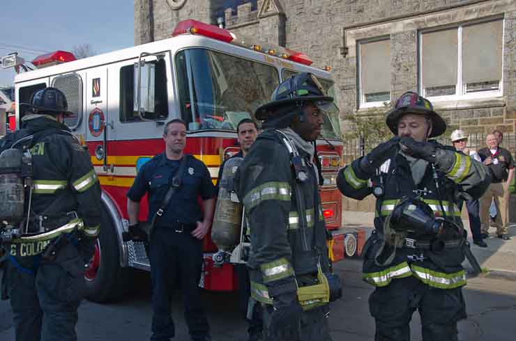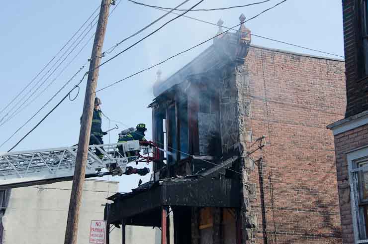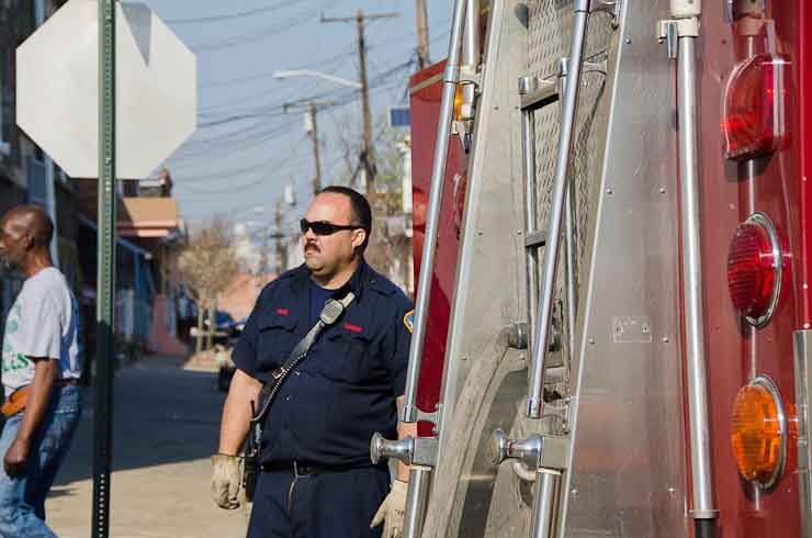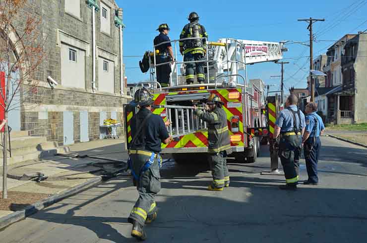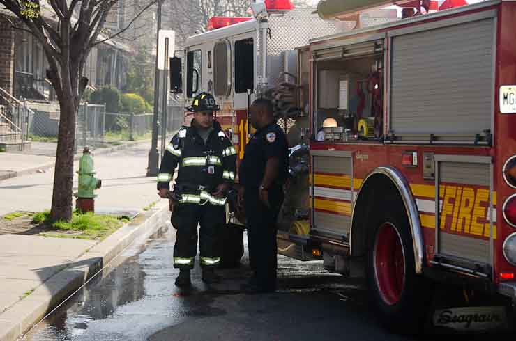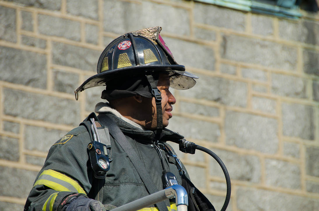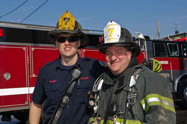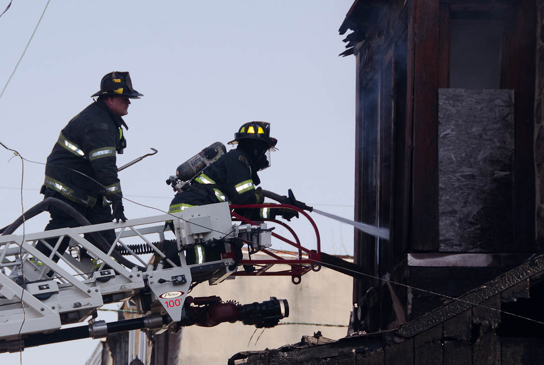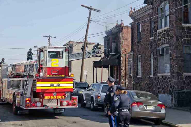 This page and the other pages in this series are the successors to the series of web-page about the Camden Fire Department that began with the page Camden Fire Department: The Fires of the Summer of 2011. On this and other pages in the series you will find pictures and information regarding different events and aspects of the fire service in Camden, New Jersey. At approximately 9:45 PM on March 23, 2012 units of the Camden Fire Department were dispatched to a dwelling a vacant dwelling at 806 North 6th Street in North Camden. This two-story building had once been an attached dwelling, but had long been a stand-alone, and had been the scene of several fires previously. Only three weeks previously the building had been slated for demolition, however, the wreckers had not yet arrived when this fire took place. This was the first of three small fire that the Camden Fire Department addressed that day. All photos here are presented in the order in which they were taken. My first photograph was shot at 9:59 AM. The last picture presented here was taken at 10:22 AM. By 10:47 I was shooting pictures at another fire at Broadway and Washington Street. As with the web page covering other Camden Fire Department events, if you can identify anyone that I've missed, please comment at the bottom of the page. (I'm terrible at at names and faces). April 6, 2012 |