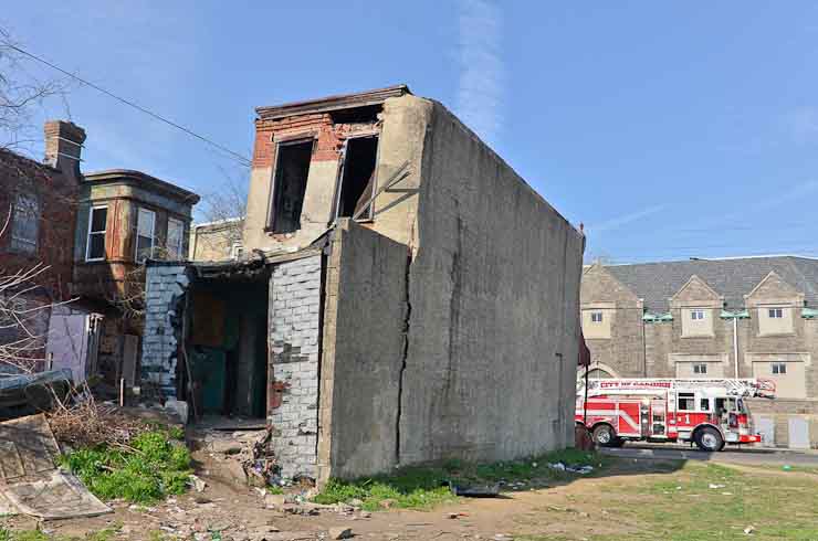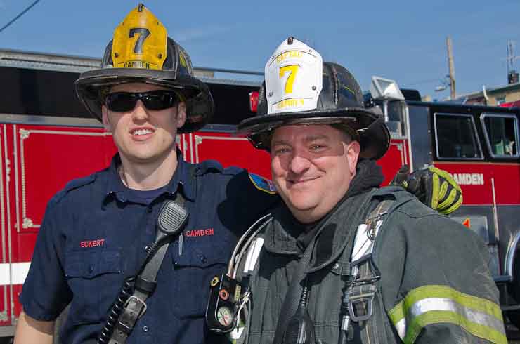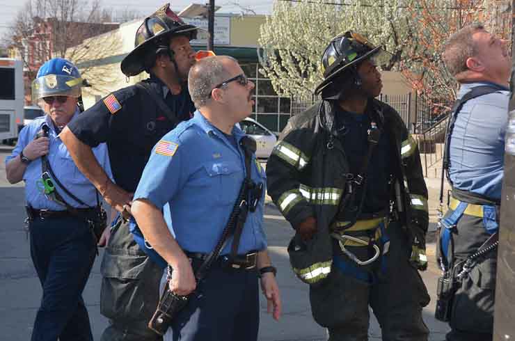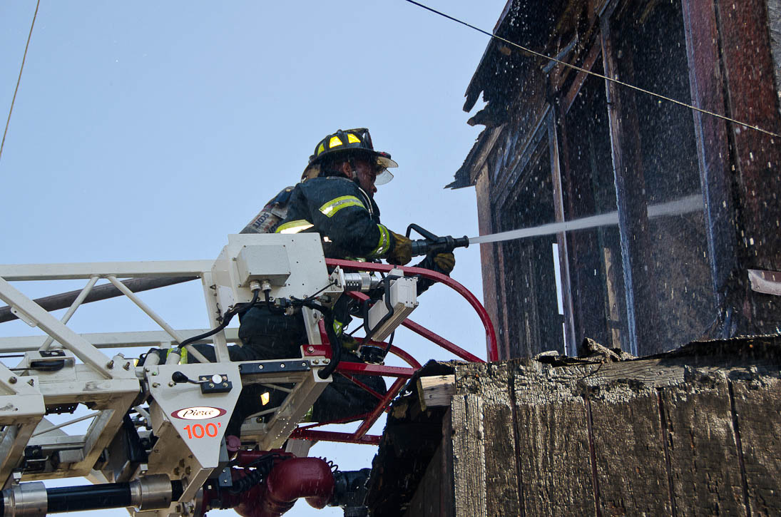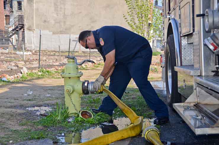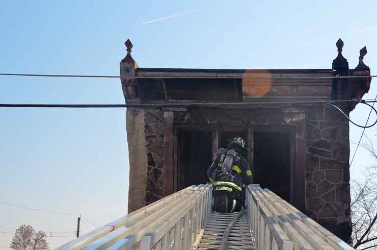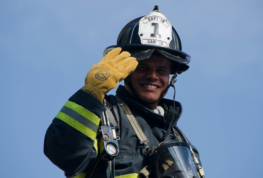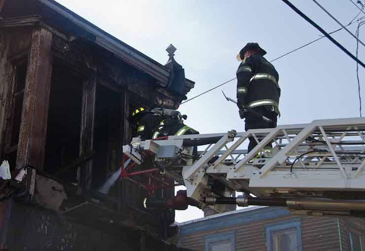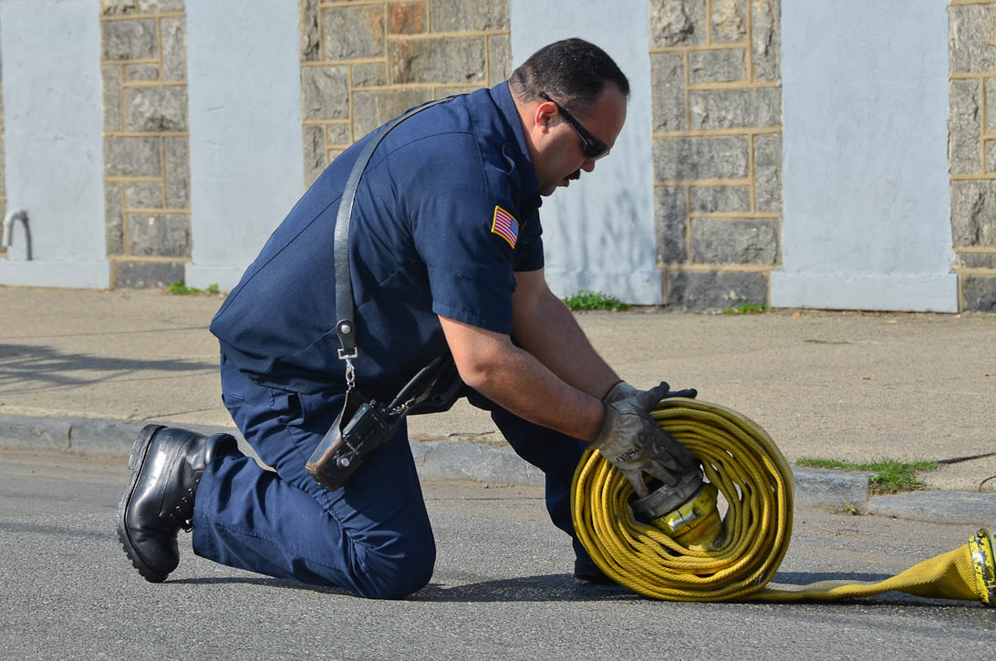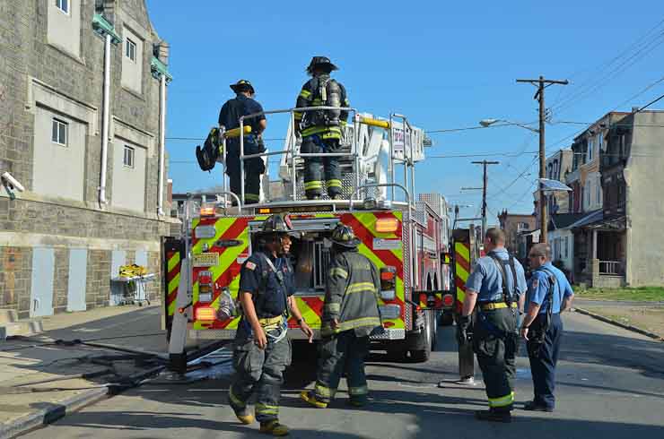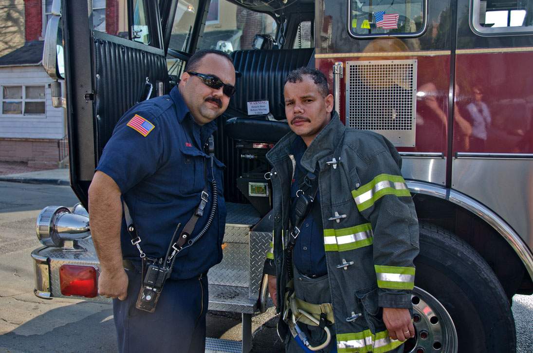 This page and the other pages in this series are the successors to the series of web-page about the Camden Fire Department that began with the page Camden Fire Department: The Fires of the Summer of 2011. On this and other pages in the series you will find pictures and information regarding different events and aspects of the fire service in Camden, New Jersey. At approximately 9:45 PM on March 23, 2012 units of the Camden Fire Department were dispatched to a dwelling a vacant dwelling at 806 North 6th Street in North Camden. This two-story building had once been an attached dwelling, but had long been a stand-alone, and had been the scene of several fires previously. Only three weeks previously the building had been slated for demolition, however, the wreckers had not yet arrived when this fire took place. This was the first of three small fire that the Camden Fire Department addressed that day. All photos here are presented in the order in which they were taken. My first photograph was shot at 9:59 AM. The last picture presented here was taken at 10:22 AM. By 10:47 I was shooting pictures at another fire at Broadway and Washington Street. As with the web page covering other Camden Fire Department events, if you can identify anyone that I've missed, please comment at the bottom of the page. (I'm terrible at at names and faces). April 6, 2012 |