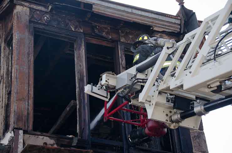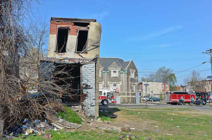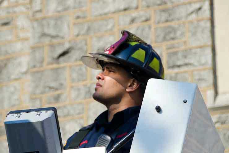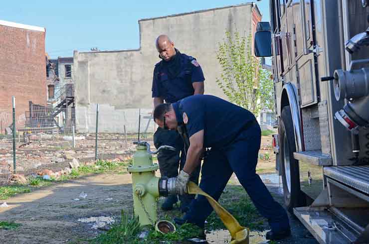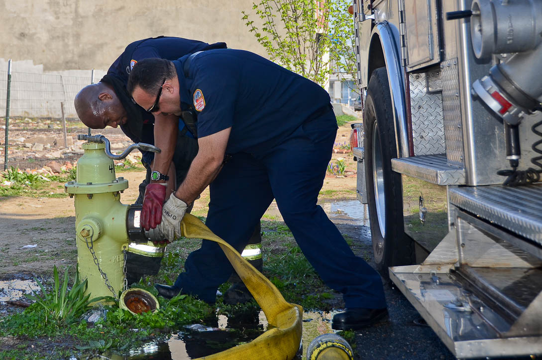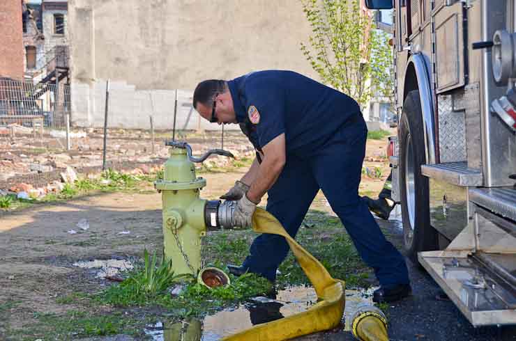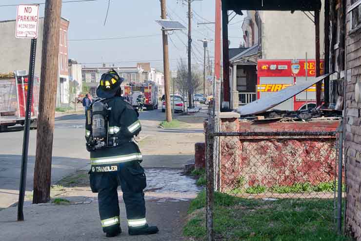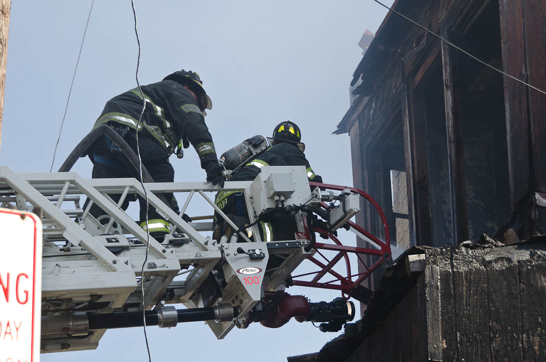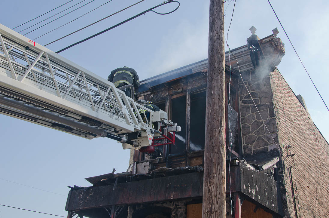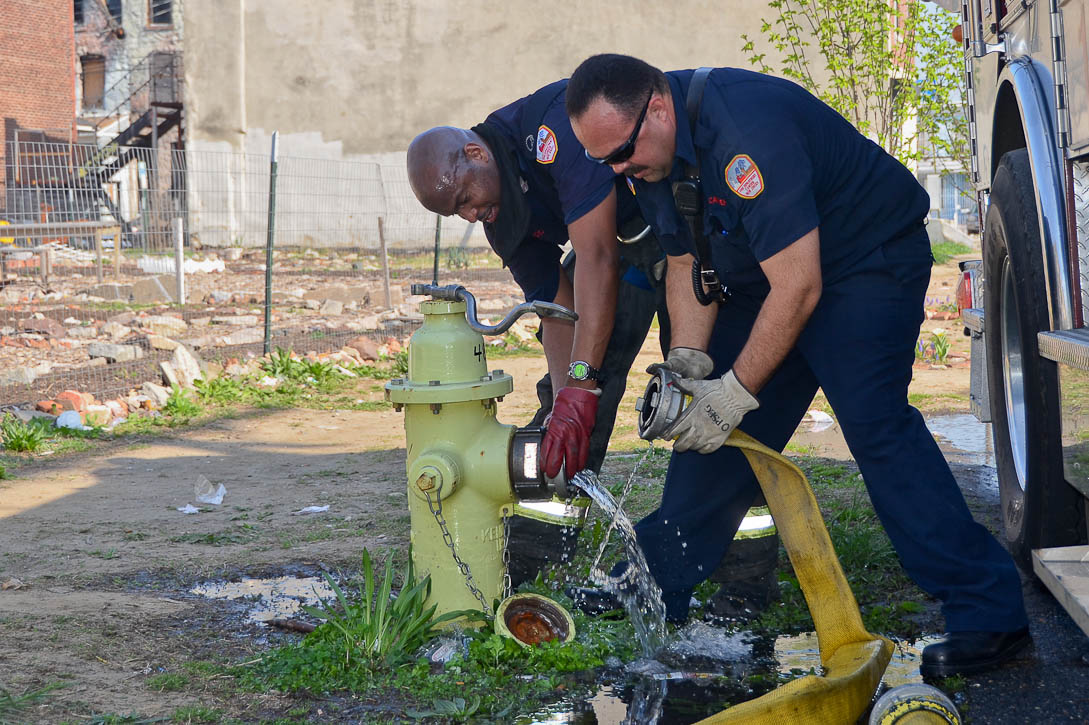 This page and the other pages in this series are the successors to the series of web-page about the Camden Fire Department that began with the page Camden Fire Department: The Fires of the Summer of 2011. On this and other pages in the series you will find pictures and information regarding different events and aspects of the fire service in Camden, New Jersey. At approximately 9:45 PM on March 23, 2012 units of the Camden Fire Department were dispatched to a dwelling a vacant dwelling at 806 North 6th Street in North Camden. This two-story building had once been an attached dwelling, but had long been a stand-alone, and had been the scene of several fires previously. Only three weeks previously the building had been slated for demolition, however, the wreckers had not yet arrived when this fire took place. This was the first of three small fire that the Camden Fire Department addressed that day. All photos here are presented in the order in which they were taken. My first photograph was shot at 9:59 AM. The last picture presented here was taken at 10:22 AM. By 10:47 I was shooting pictures at another fire at Broadway and Washington Street. As with the web page covering other Camden Fire Department events, if you can identify anyone that I've missed, please comment at the bottom of the page. (I'm terrible at at names and faces). April 6, 2012 |