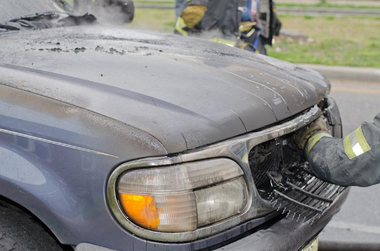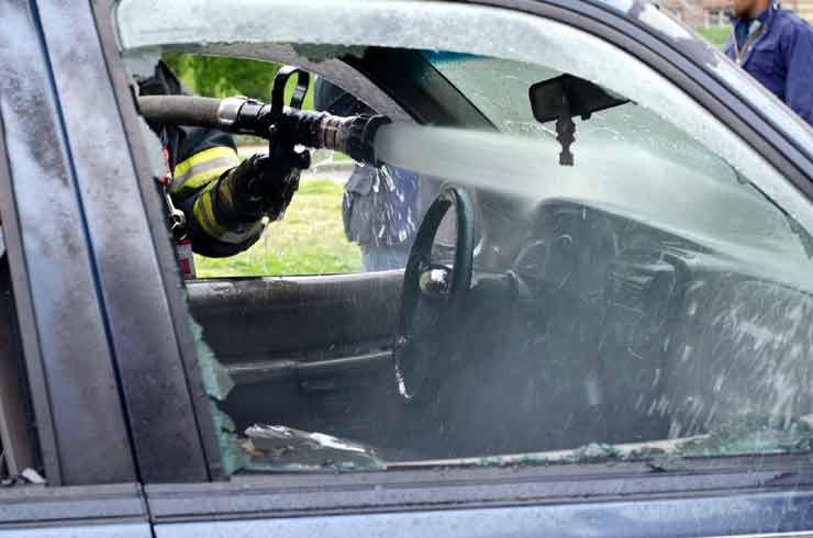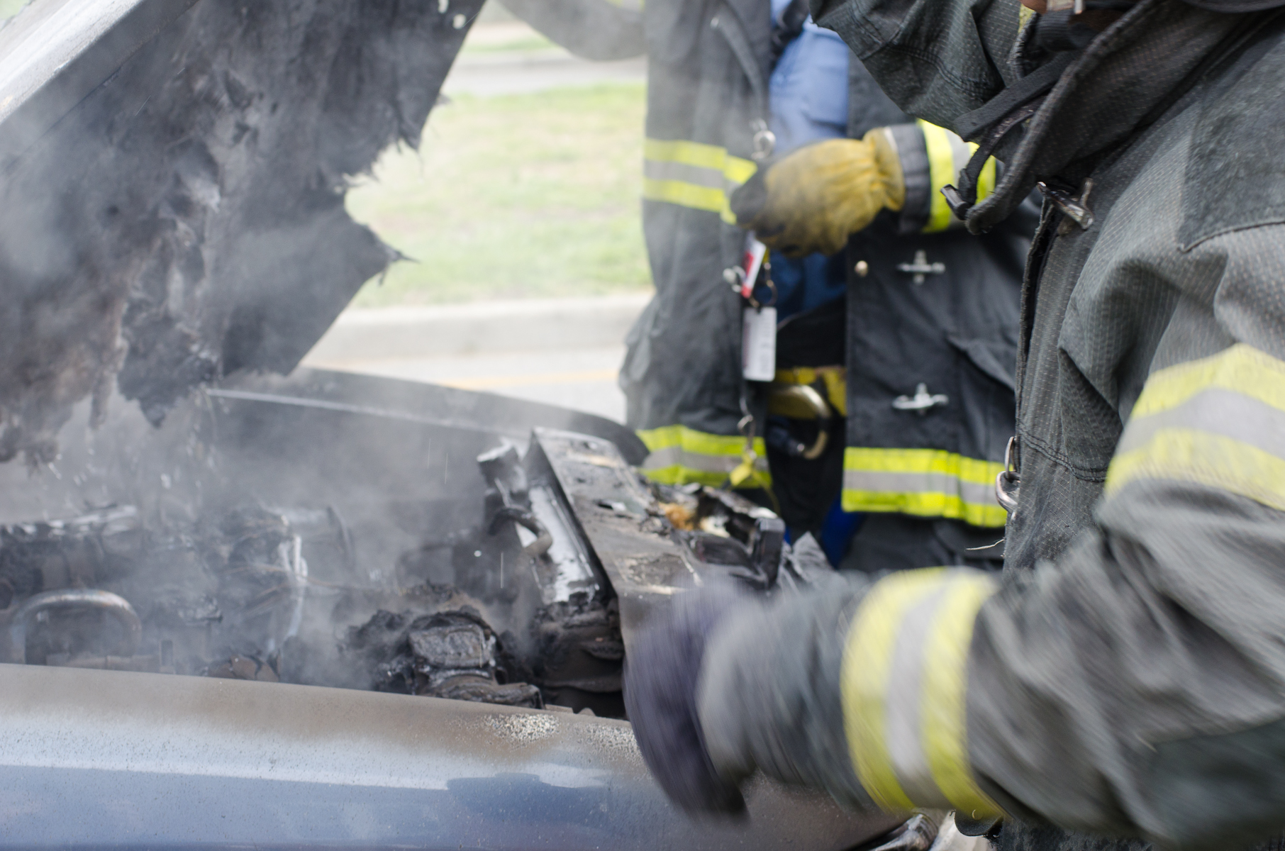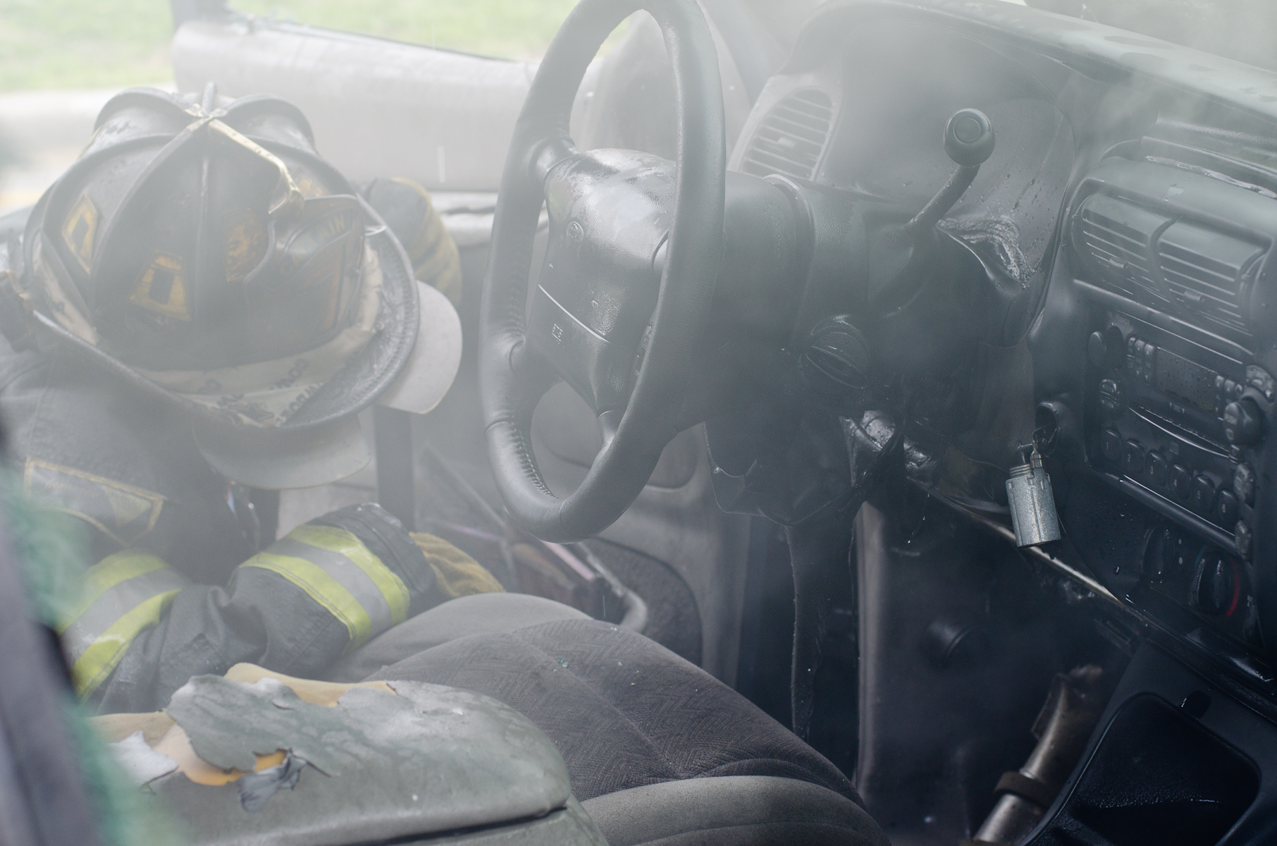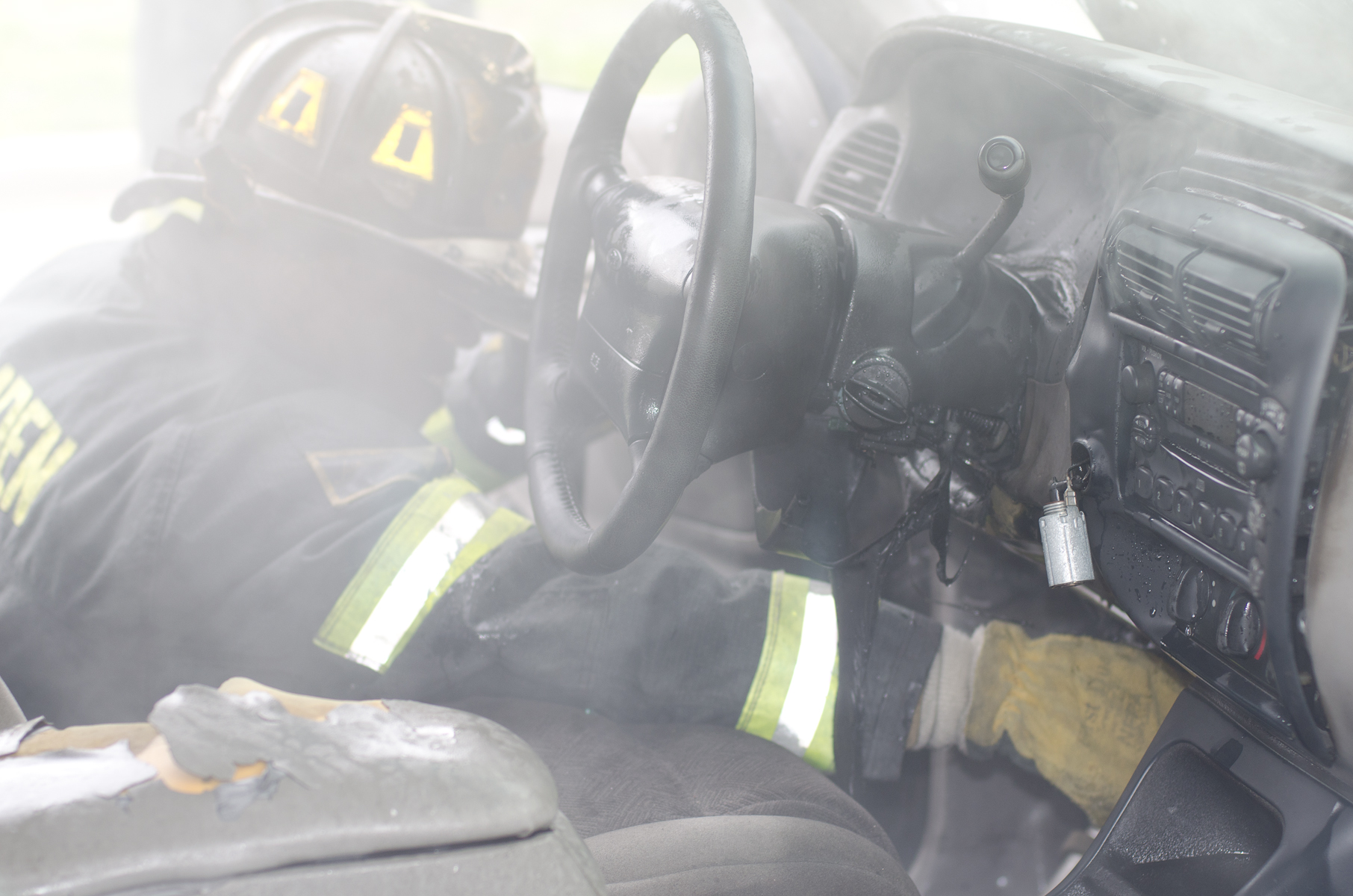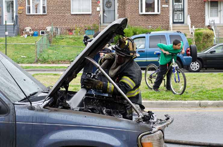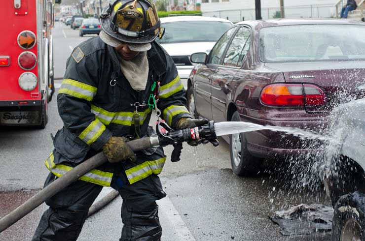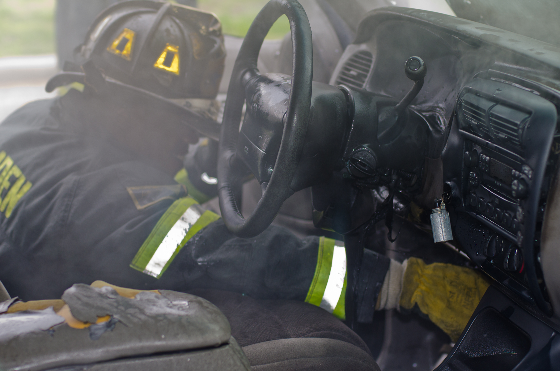 This page and the other pages in this series are the successors to the series of web-page about the Camden Fire Department that began with the page Camden Fire Department: The Fires of the Summer of 2011. On this and other pages in the series you will find pictures and information regarding different events and aspects of the fire service in Camden, New Jersey. A quiet Sunday in Camden found me at Liberty Station, shooting the breeze with fire photographer Dave Hernandez, who also is a Captain with he Medford, New Jersey Fire Department. A call came over the radio concerning a car fire on Park Boulevard, near Empire Avenue, so we jumped into my truck and rode over. Dave shot video, while I took still photos. Squad Company 7, consisting of Captain Al Ashley and firefighters Asante Wilson, David Smalls and Craig Spearman, was on scene with a Ford minivan fully involved. The fire was out when we arrived, but as always there was still much to record. As with the web page covering other Camden Fire Department events, if you can identify anyone that I've missed, please comment at the bottom of the page. (I'm terrible at at names and faces). April 7, 2012 |