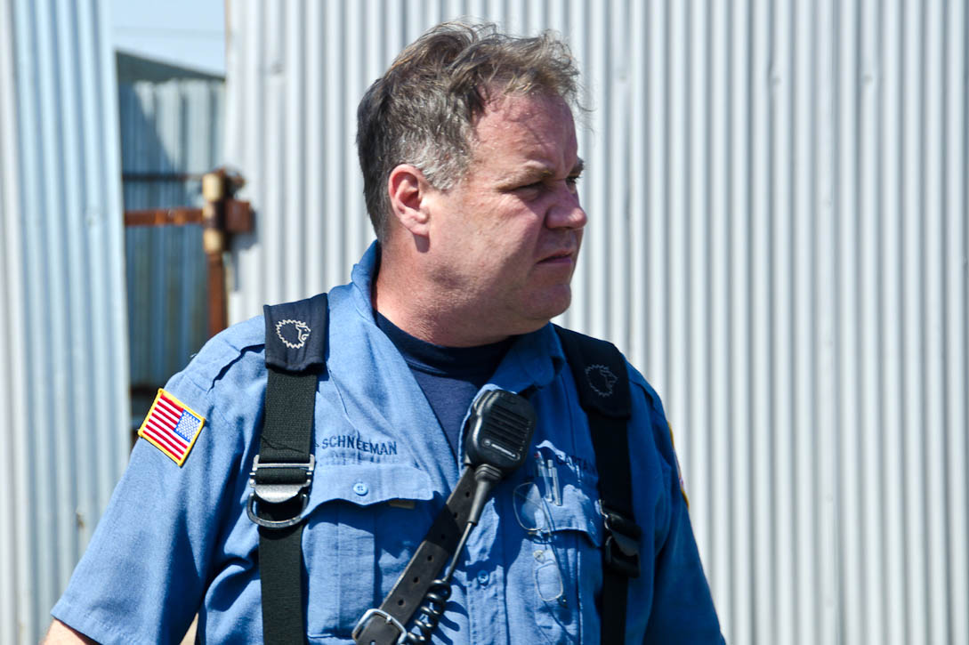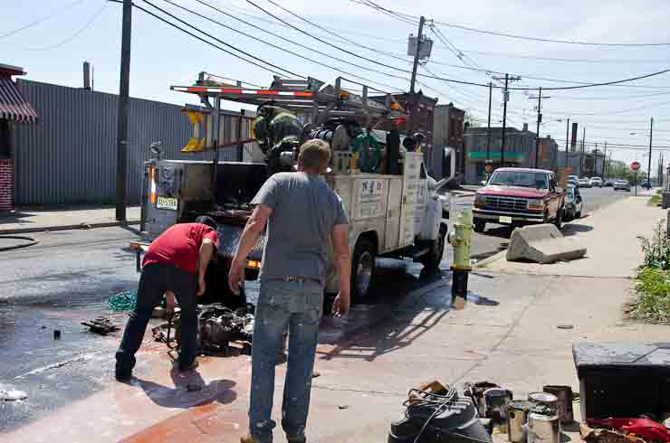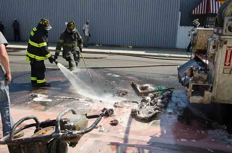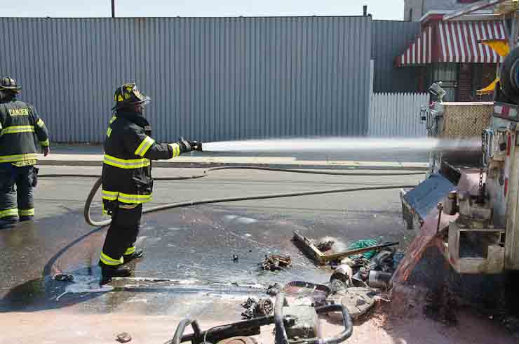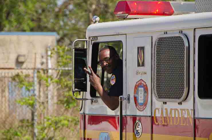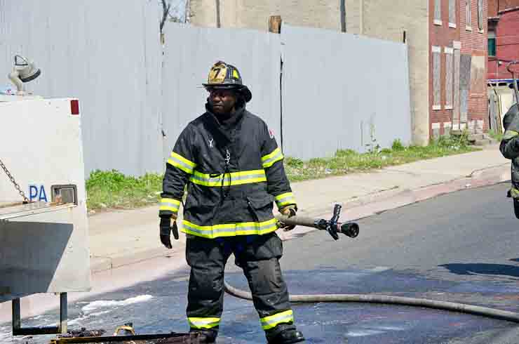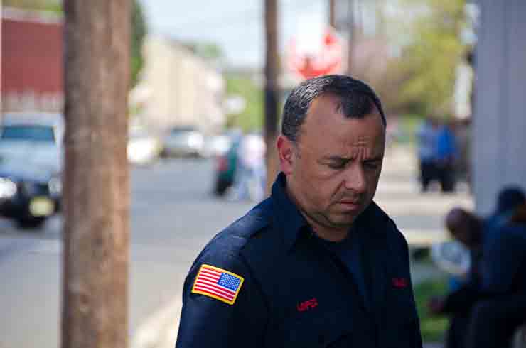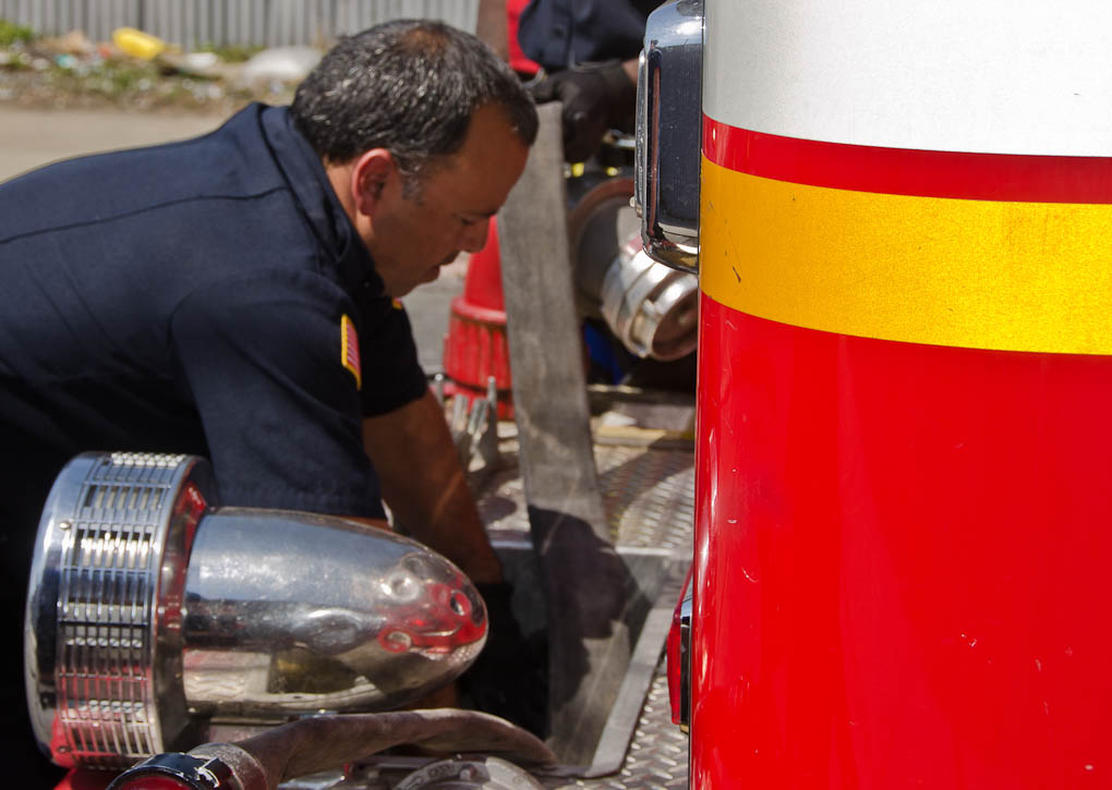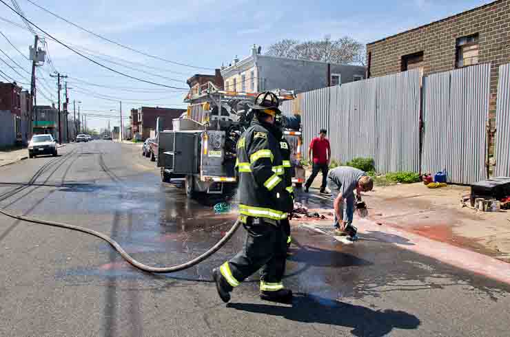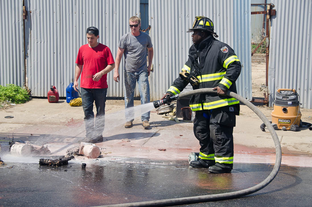 This page and the other pages in this series are the successors to the series of web-page about the Camden Fire Department that began with the page Camden Fire Department: The Fires of the Summer of 2011. On this and other pages in the series you will find pictures and information regarding different events and aspects of the fire service in Camden, New Jersey. I was in town with a friend, Merchantville volunteer fireman Rob Kanauss, running a few errands and stopping in to say hello here and there. After spending some time at the East Camden firehouse we had gone downtown and were at Fire Headquarters when a call came in concerning a car fire at South 7th and Chestnut Streets. We drove on down, making pretty good time taking the back streets, and got to the 600 block of Chestnut Street to find Squad Company 7 operating. A utility body truck had been traveling northbound on Route 676 when materials in the rear had ignited. The driver got off the highway at Atlantic Avenue, unaware of his problem until pedestrians in the vicinity of South 7th Street and Kaighn Avenue alerted him. Squad 7 made short work of the fire. We stopped by Liberty Station for a bit, before leaving the city when Ladder 2 went off to the Maintenance Shop. Before we left Camden Fire Department member Craig Spearman drove past, and I got a shot of him driving his car! It was home for me to take my dogs for their daily late afternoon walk… not knowing that I would be back in Camden within a few hours to photograph a dwelling fire at 2819 Benson Street. As with the web page covering other Camden Fire Department events, if you can identify anyone that I've missed, please comment at the bottom of the page. (I'm terrible at at names and faces). May 8, 2012 |