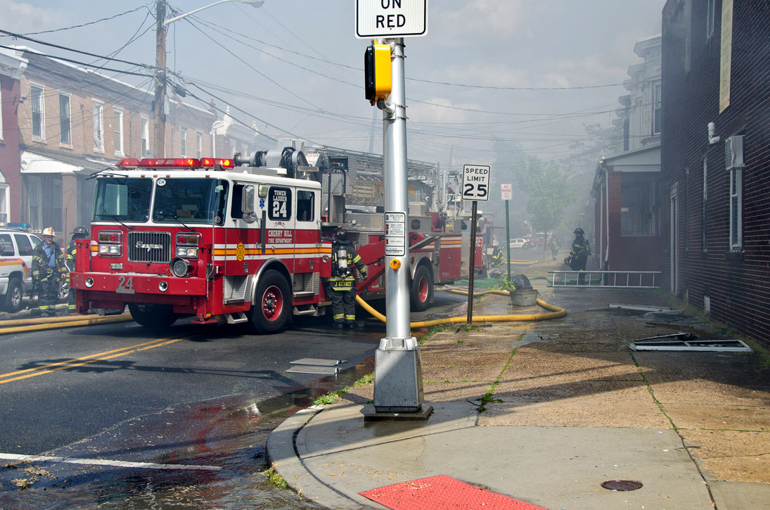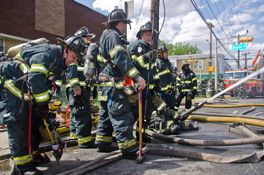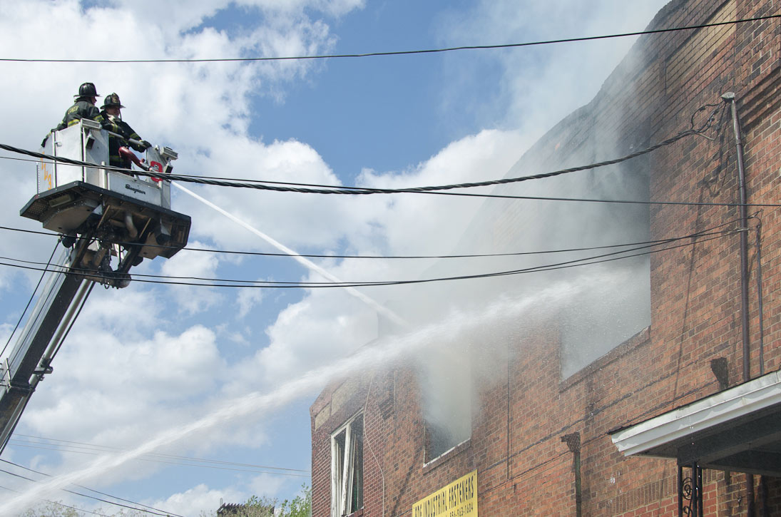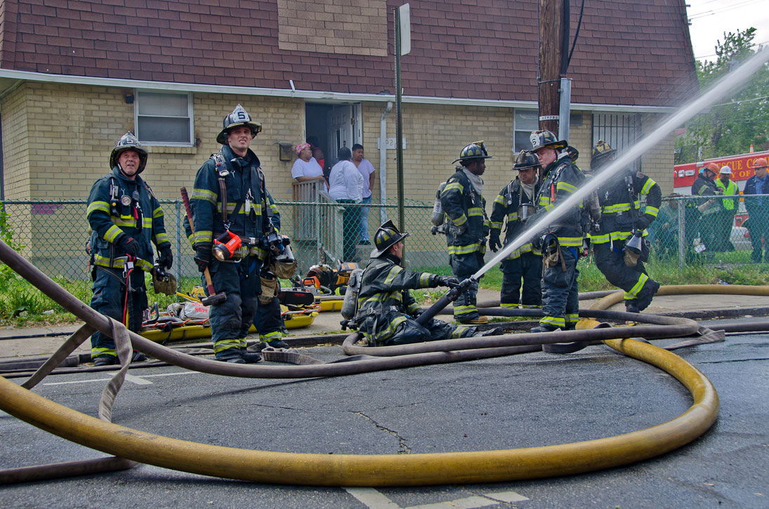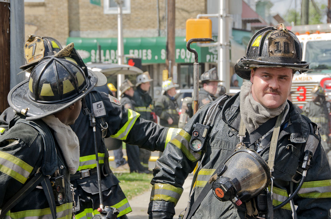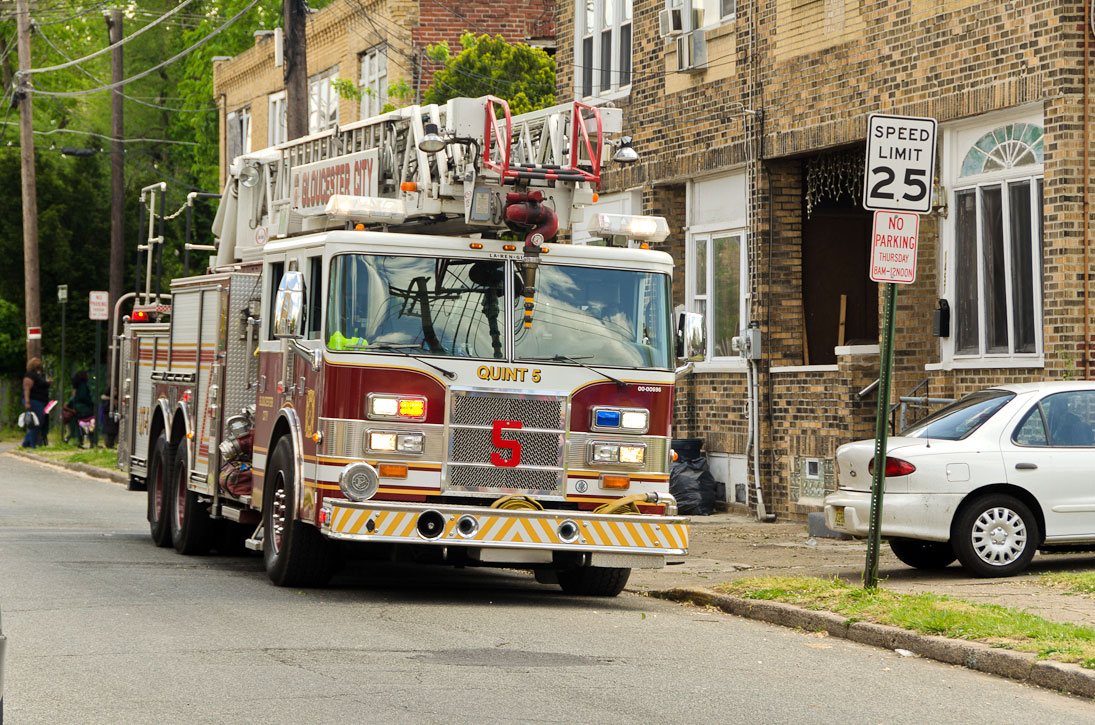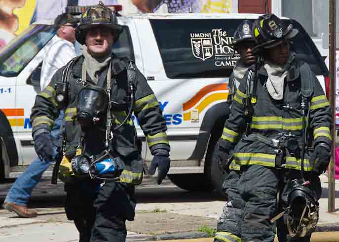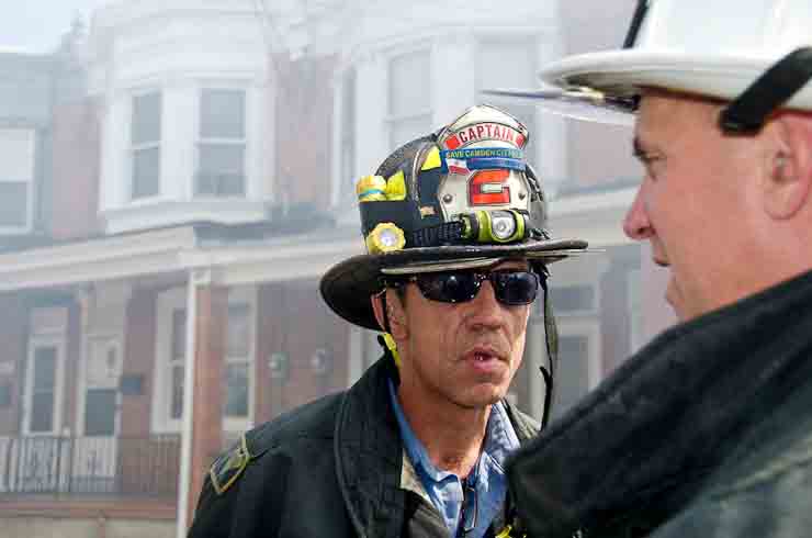 This page and the other pages in this series are the successors to the series of web-page about the Camden Fire Department that began with the page Camden Fire Department: The Fires of the Summer of 2011. On this and other pages in the series you will find pictures and information regarding different events and aspects of the fire service in Camden, New Jersey. This is the third of three pages covering the fire at BDF Industrial Fasteners, 1026-1030 South 10th Street, Camden NJ on April 24, 2012. There are links here and below to return to the first page or return to the second page. I had stopped by Liberty Station when around 2:20 PM a call came for Rescue Company 1 to go to a car accident on Admiral Wilson Boulevard. We were on Newton Avenue between South 7th and South 8th Streets when we were diverted to a report of a fire at South 9th Street and Atlantic Avenue. We turned right onto Mt Ephraim Avenue and smelled smoke almost as soon as we crossed Mechanic Street, a good two blocks away from the fire. This fire went to 2 alarms with companies from Gloucester City, Collingswood, Pennsauken, and Cherry Hill assisting. It took about an hour to bring under control, and there were no injuries. The photos and videos on this page are presented in the order in which they were taken. This page begins at 2:54 PM and ends when my battery ran out. Lesson learned… don't leave the spare battery at home! As stated above, this is the third of three pages, covering this fire. There are five video clips, each running about 24 seconds each. One is on this page. The videos have been uploaded to YOUTUBE. They are all MOV files and you can also download them by right-clicking on the links provided and saving them. All photos are also downloadable, click on each to get a larger and higher resolution version, then right-click and save. . . As with the web page covering other Camden Fire Department events, if you can identify anyone that I've missed, please comment at the bottom of the page. (I'm terrible at at names and faces). May 9, 2012 |