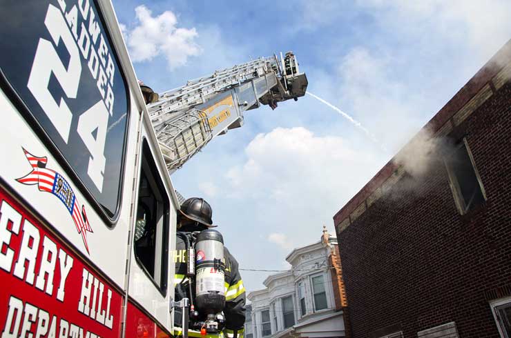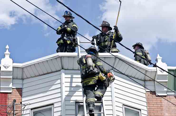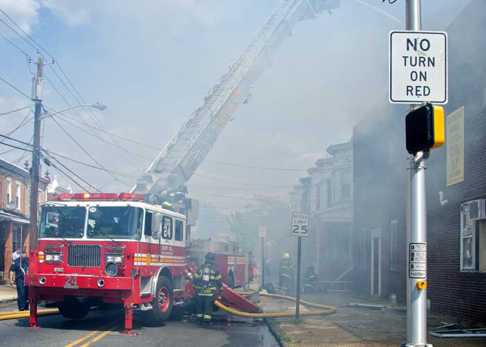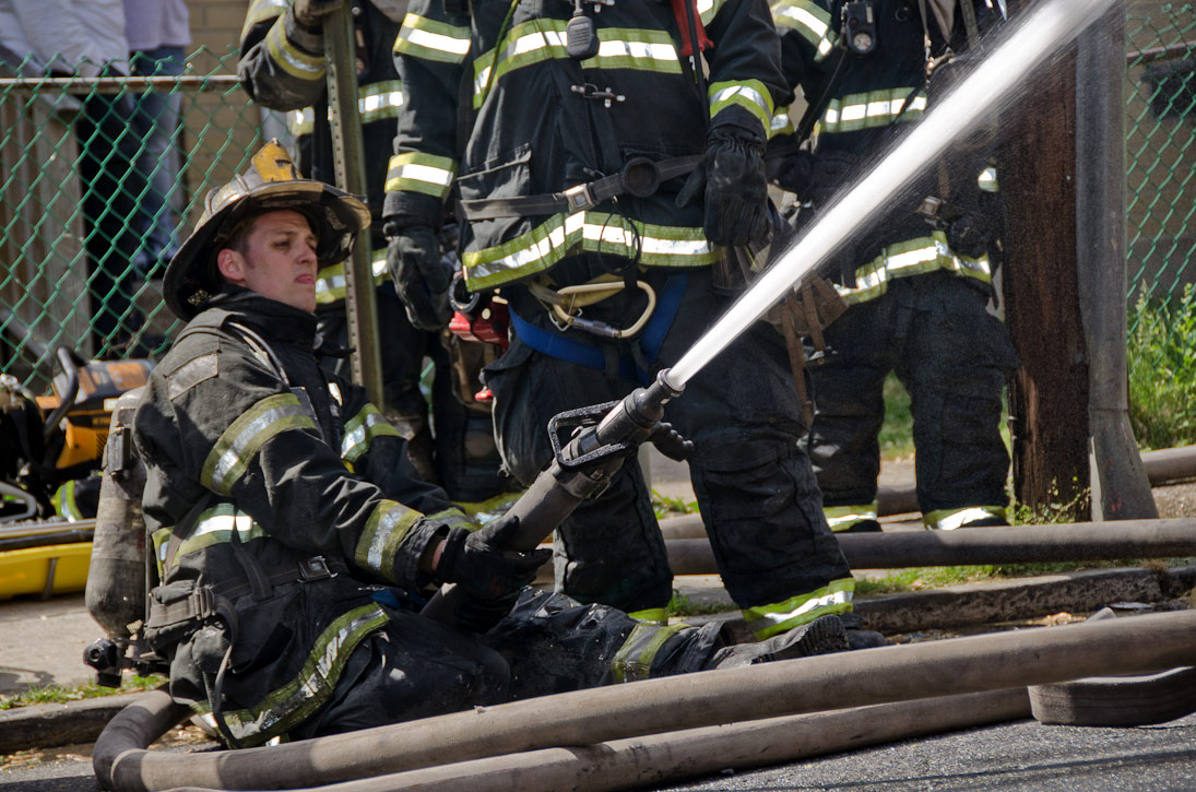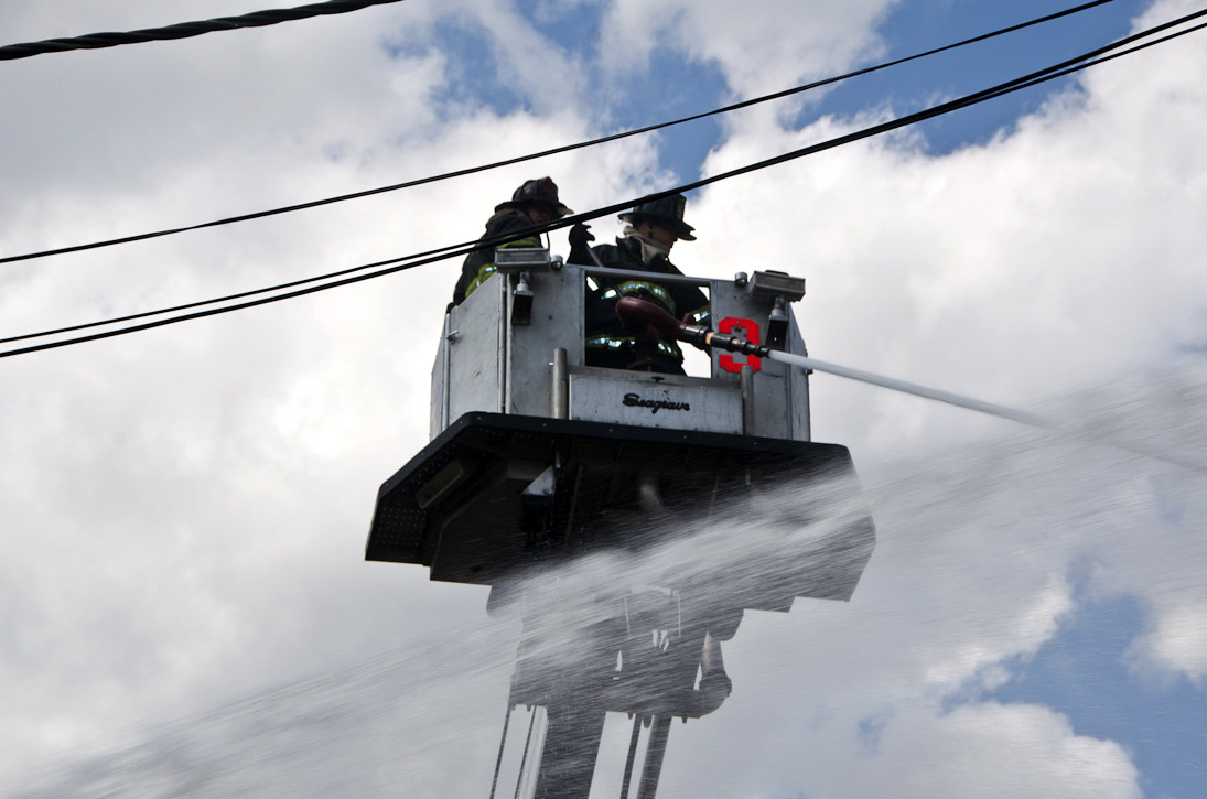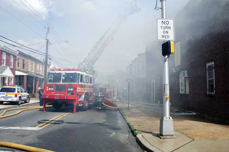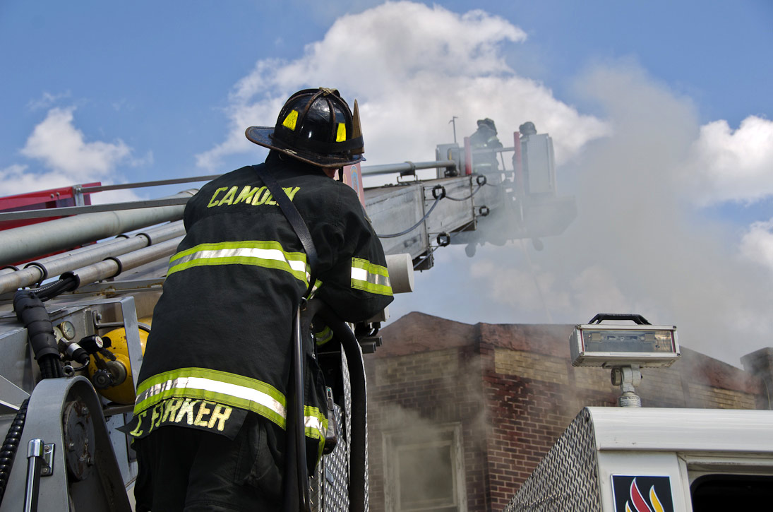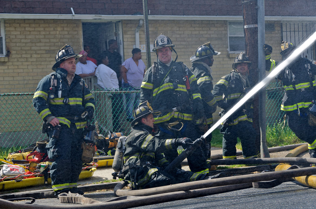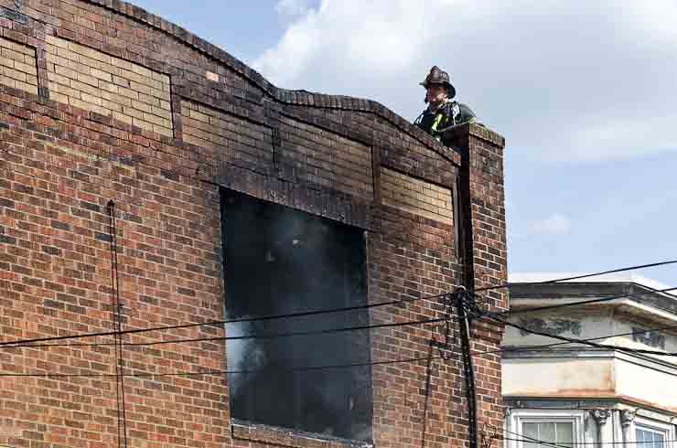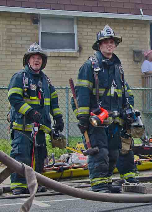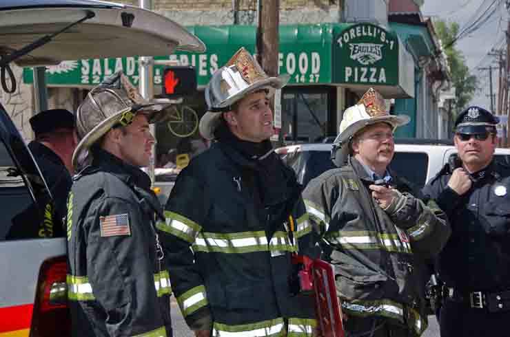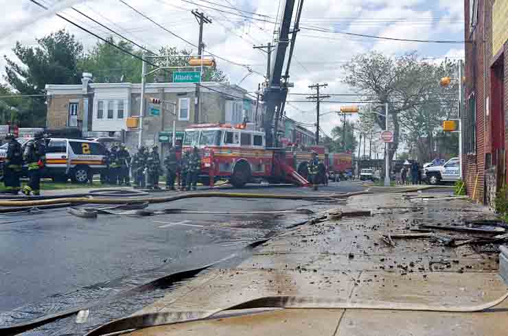 This page and the other pages in this series are the successors to the series of web-page about the Camden Fire Department that began with the page Camden Fire Department: The Fires of the Summer of 2011. On this and other pages in the series you will find pictures and information regarding different events and aspects of the fire service in Camden, New Jersey. This is the third of three pages covering the fire at BDF Industrial Fasteners, 1026-1030 South 10th Street, Camden NJ on April 24, 2012. There are links here and below to return to the first page or return to the second page. I had stopped by Liberty Station when around 2:20 PM a call came for Rescue Company 1 to go to a car accident on Admiral Wilson Boulevard. We were on Newton Avenue between South 7th and South 8th Streets when we were diverted to a report of a fire at South 9th Street and Atlantic Avenue. We turned right onto Mt Ephraim Avenue and smelled smoke almost as soon as we crossed Mechanic Street, a good two blocks away from the fire. This fire went to 2 alarms with companies from Gloucester City, Collingswood, Pennsauken, and Cherry Hill assisting. It took about an hour to bring under control, and there were no injuries. The photos and videos on this page are presented in the order in which they were taken. This page begins at 2:54 PM and ends when my battery ran out. Lesson learned… don't leave the spare battery at home! As stated above, this is the third of three pages, covering this fire. There are five video clips, each running about 24 seconds each. One is on this page. The videos have been uploaded to YOUTUBE. They are all MOV files and you can also download them by right-clicking on the links provided and saving them. All photos are also downloadable, click on each to get a larger and higher resolution version, then right-click and save. . . As with the web page covering other Camden Fire Department events, if you can identify anyone that I've missed, please comment at the bottom of the page. (I'm terrible at at names and faces). May 9, 2012 |