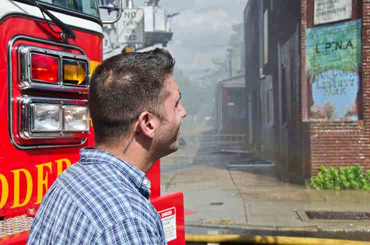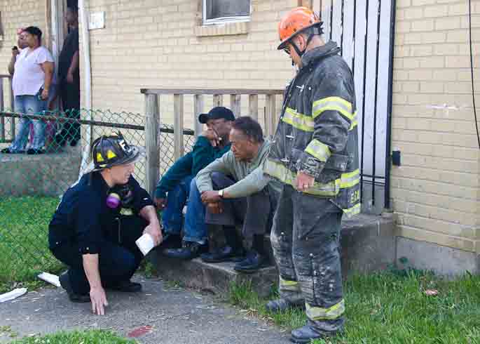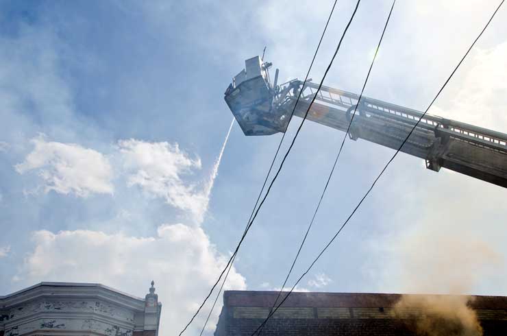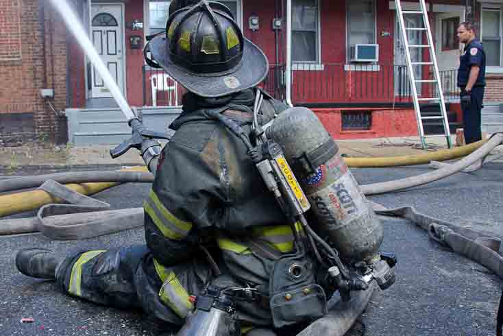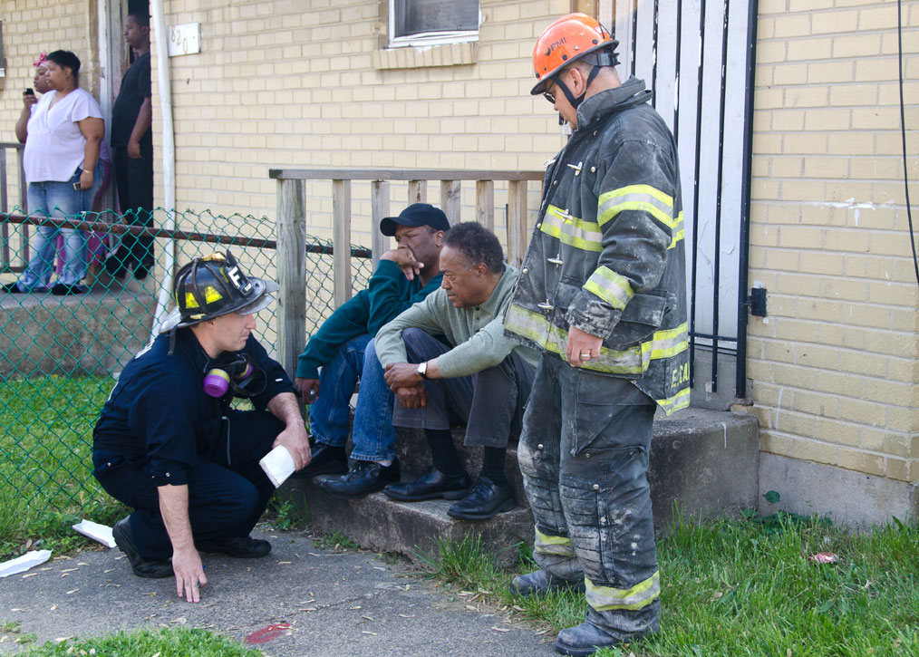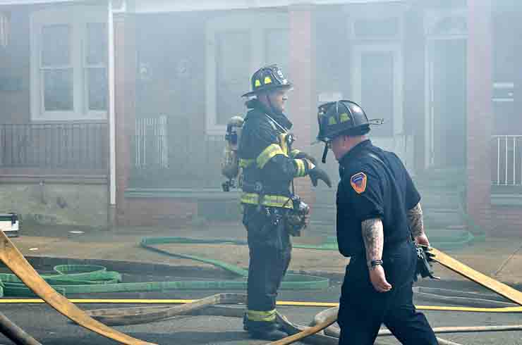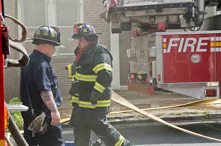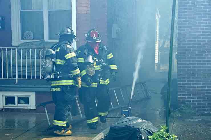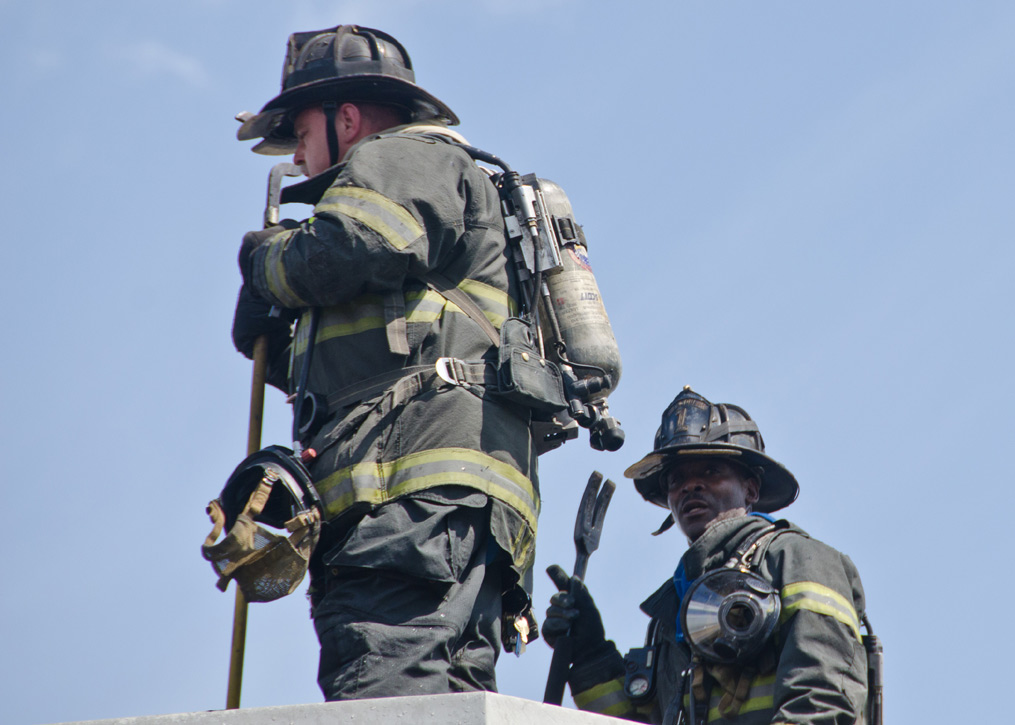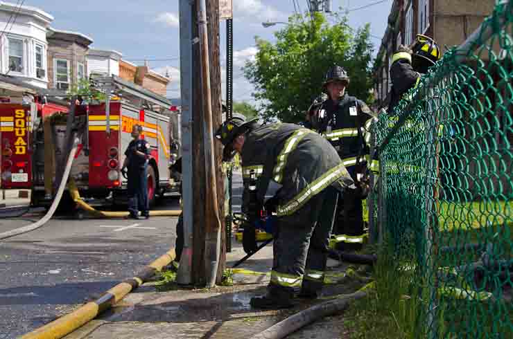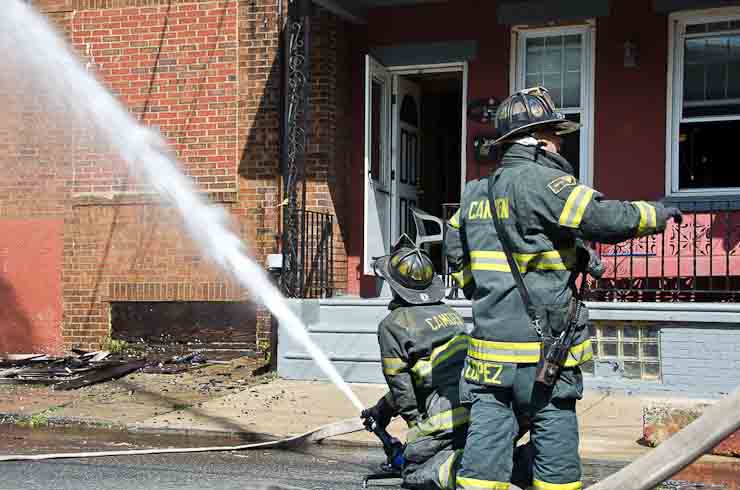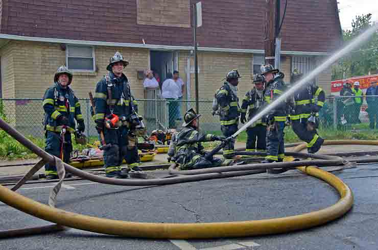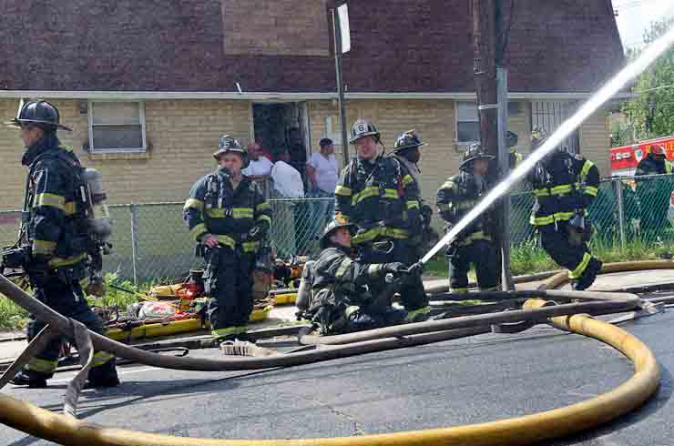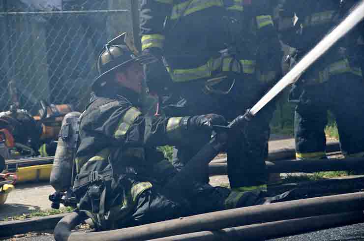 This page and the other pages in this series are the successors to the series of web-page about the Camden Fire Department that began with the page Camden Fire Department: The Fires of the Summer of 2011. On this and other pages in the series you will find pictures and information regarding different events and aspects of the fire service in Camden, New Jersey. This is the third of three pages covering the fire at BDF Industrial Fasteners, 1026-1030 South 10th Street, Camden NJ on April 24, 2012. There are links here and below to return to the first page or return to the second page. I had stopped by Liberty Station when around 2:20 PM a call came for Rescue Company 1 to go to a car accident on Admiral Wilson Boulevard. We were on Newton Avenue between South 7th and South 8th Streets when we were diverted to a report of a fire at South 9th Street and Atlantic Avenue. We turned right onto Mt Ephraim Avenue and smelled smoke almost as soon as we crossed Mechanic Street, a good two blocks away from the fire. This fire went to 2 alarms with companies from Gloucester City, Collingswood, Pennsauken, and Cherry Hill assisting. It took about an hour to bring under control, and there were no injuries. The photos and videos on this page are presented in the order in which they were taken. This page begins at 2:54 PM and ends when my battery ran out. Lesson learned… don't leave the spare battery at home! As stated above, this is the third of three pages, covering this fire. There are five video clips, each running about 24 seconds each. One is on this page. The videos have been uploaded to YOUTUBE. They are all MOV files and you can also download them by right-clicking on the links provided and saving them. All photos are also downloadable, click on each to get a larger and higher resolution version, then right-click and save. . . As with the web page covering other Camden Fire Department events, if you can identify anyone that I've missed, please comment at the bottom of the page. (I'm terrible at at names and faces). May 9, 2012 |
